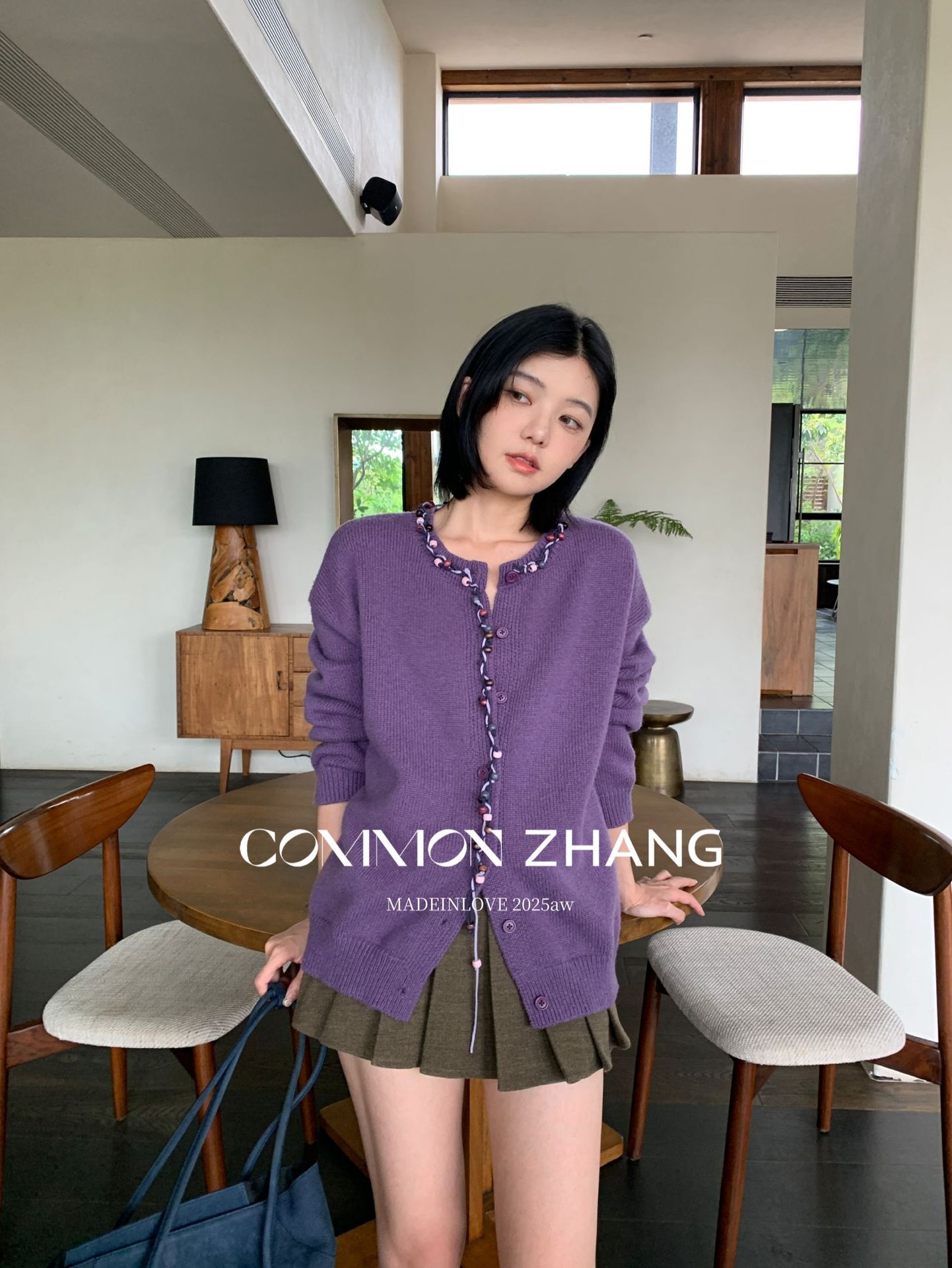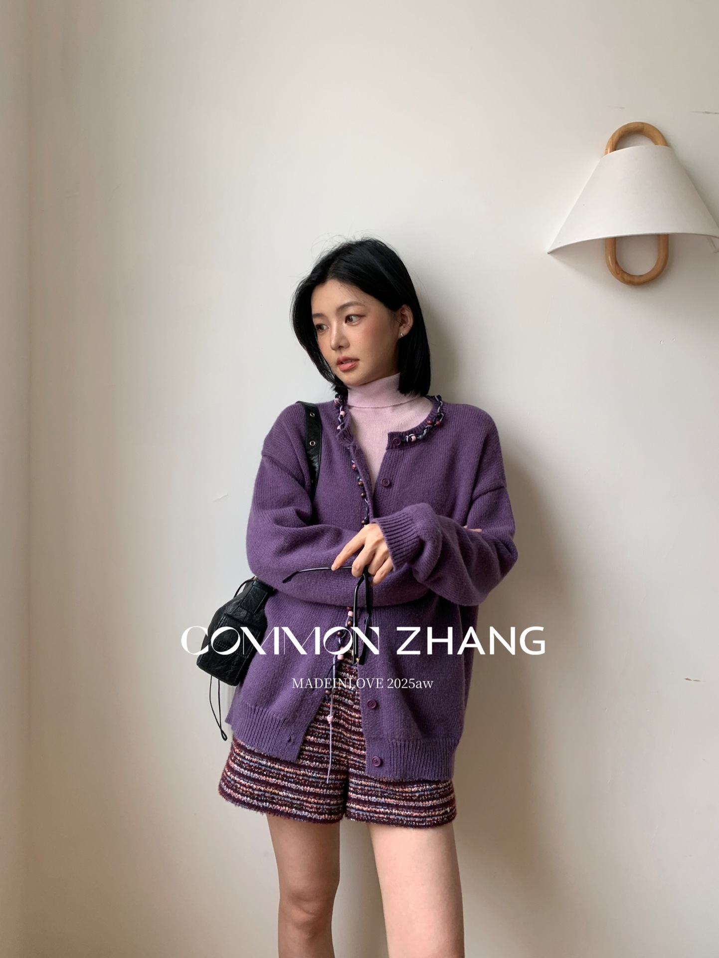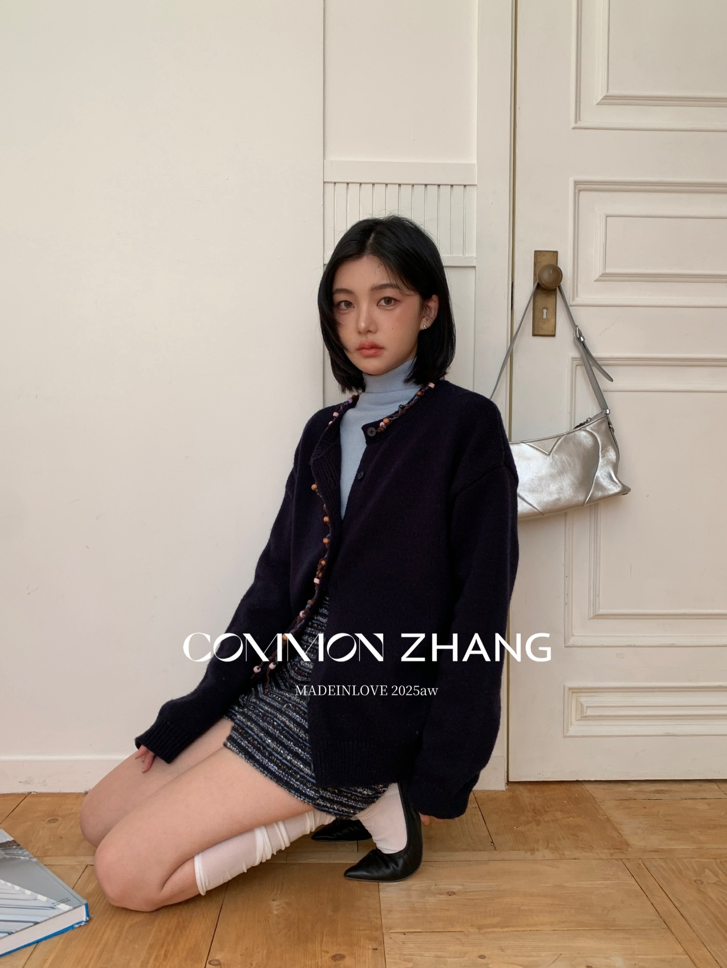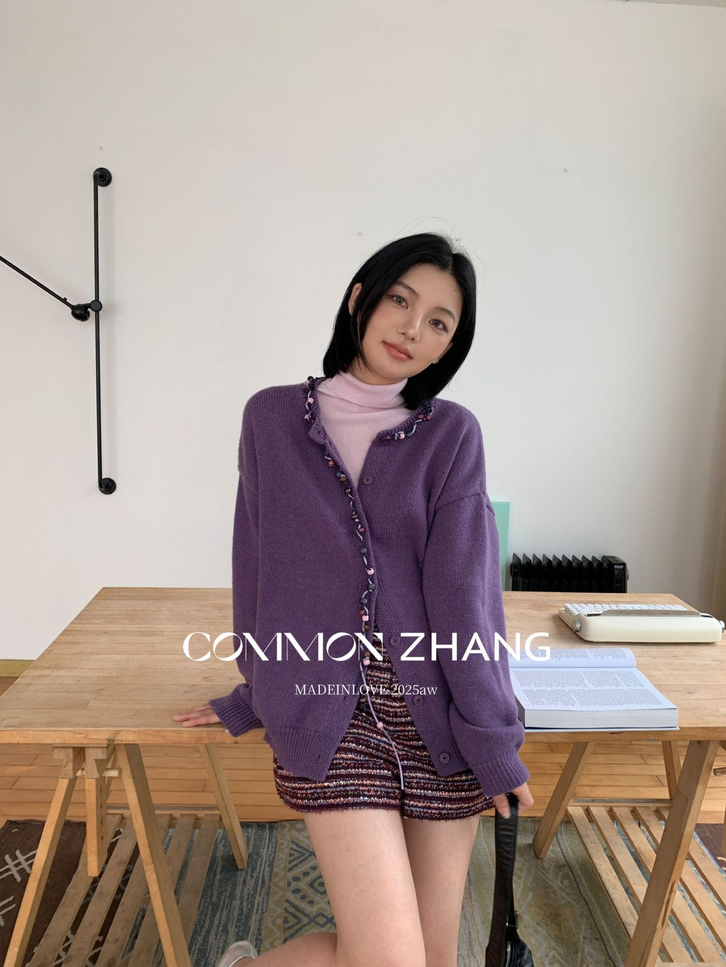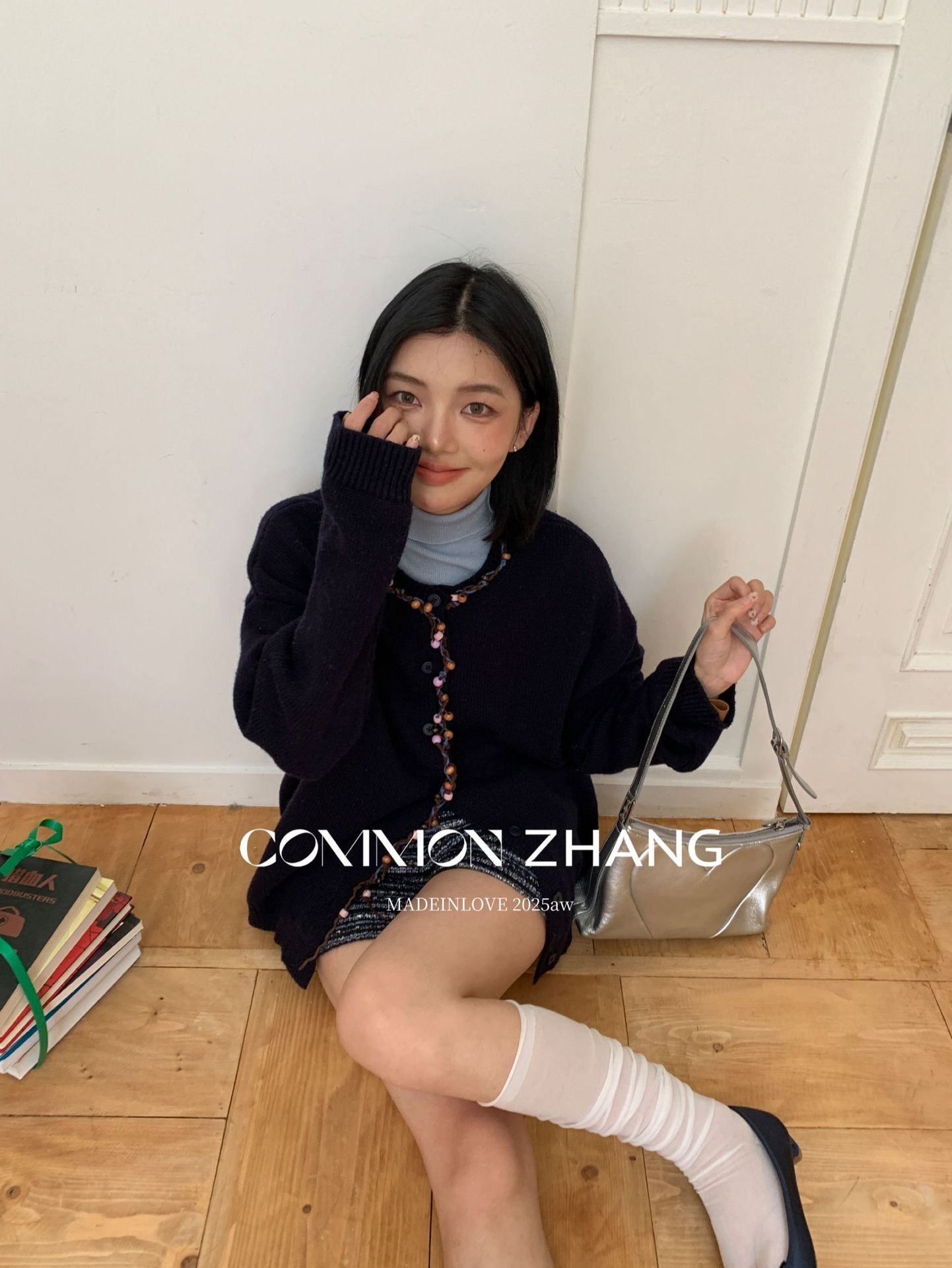*o-ha-you*【FCZB305883】秋羊毛針織開襟衫女重工撞色釘珠寬鬆休閒毛衣外套-4色
