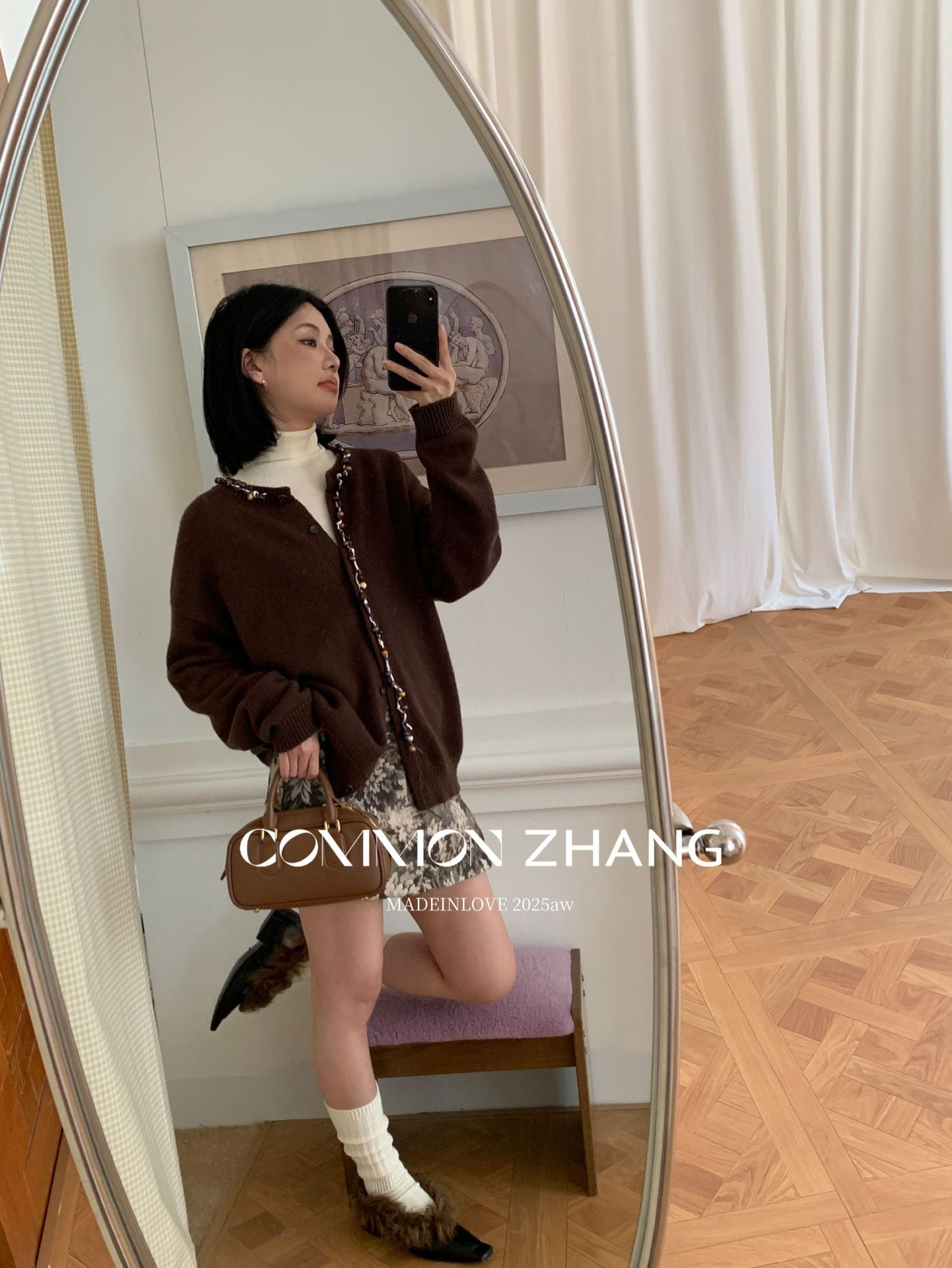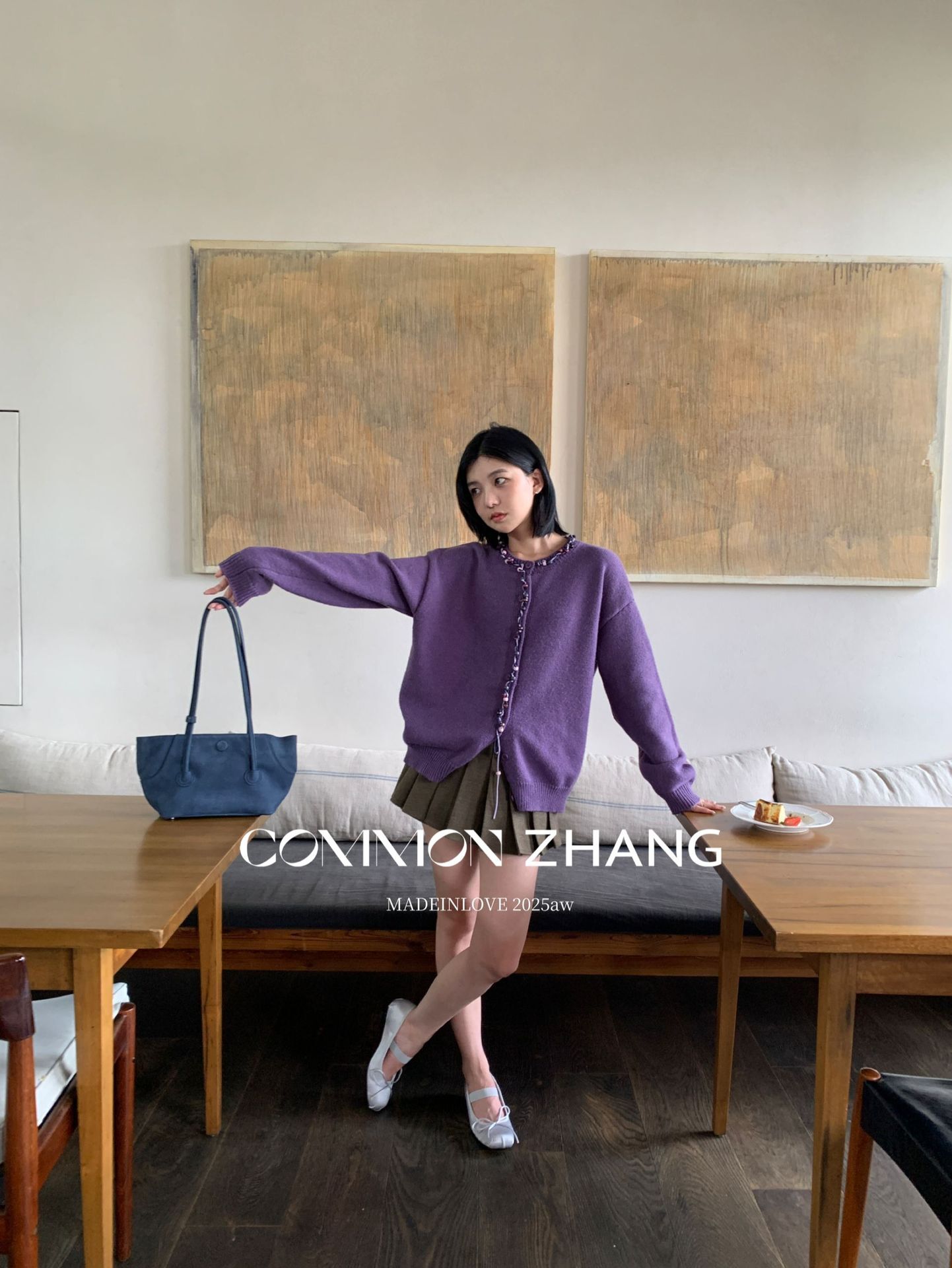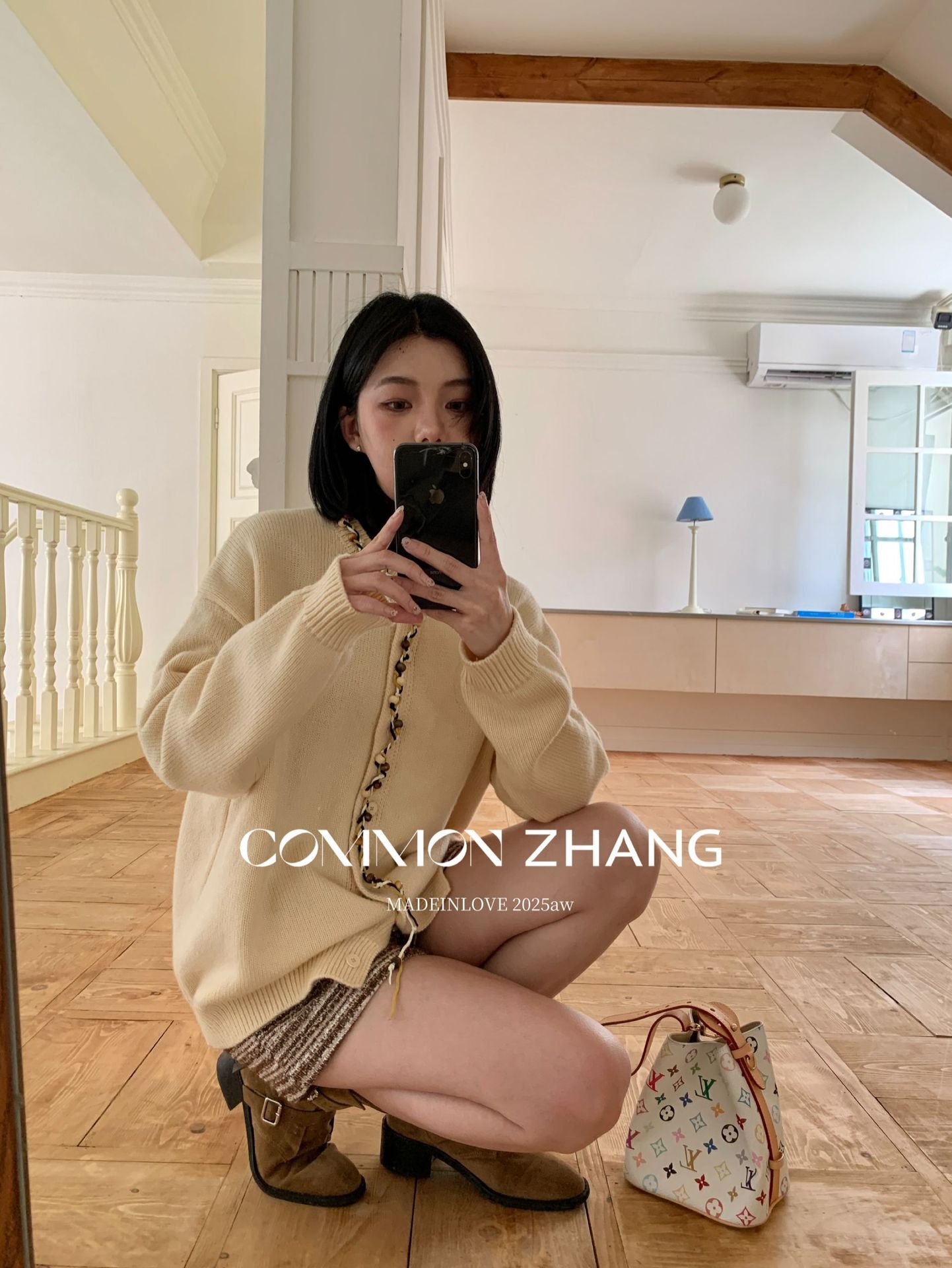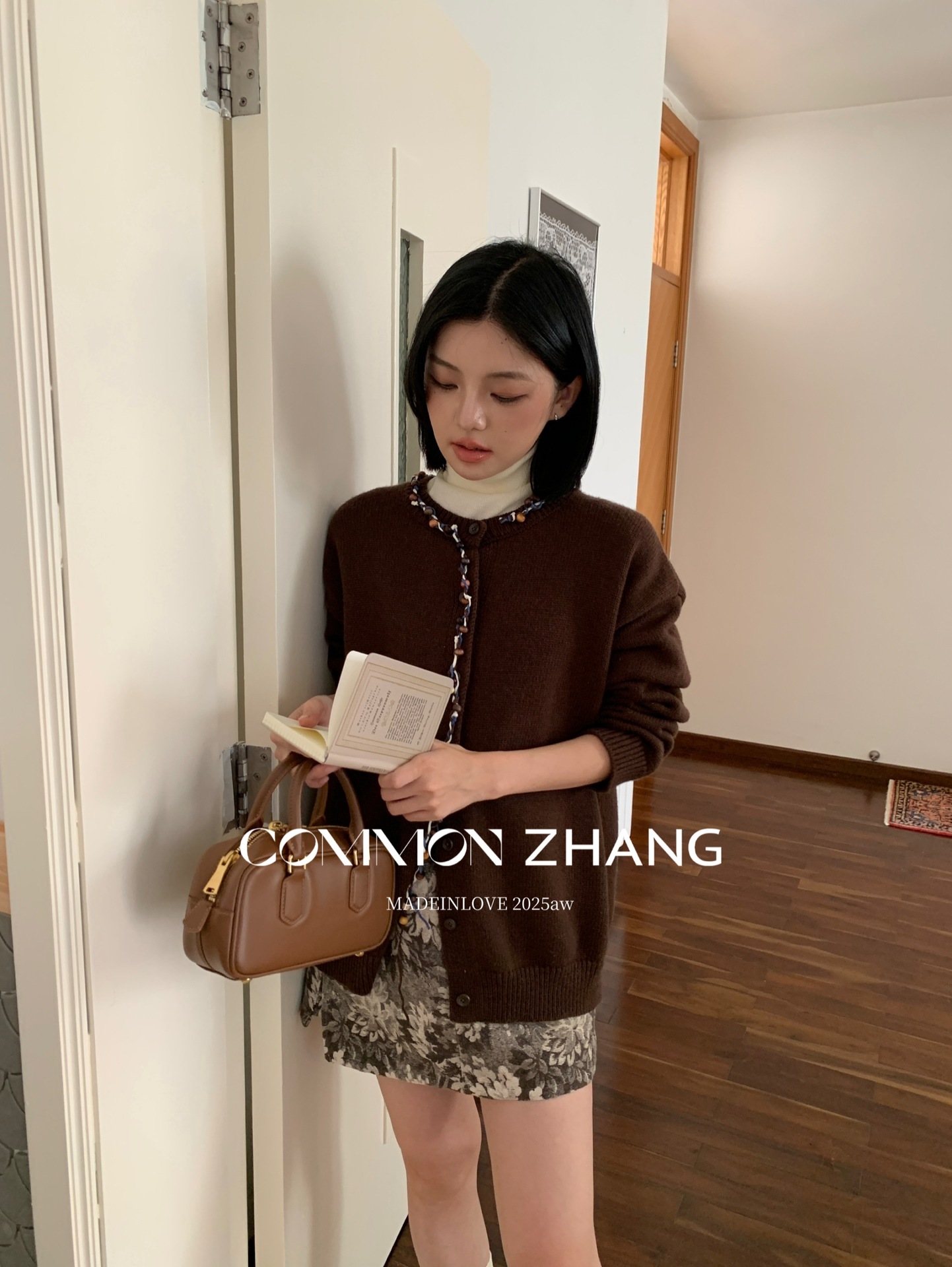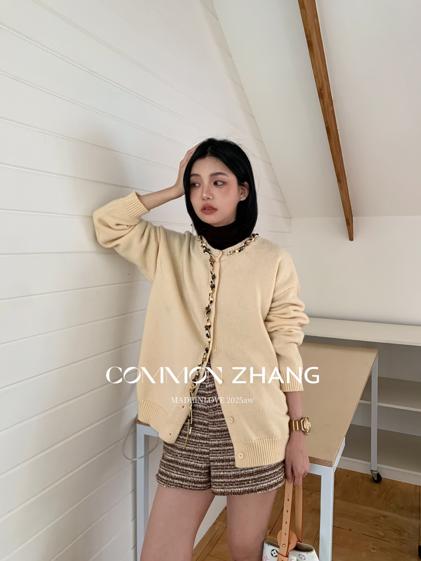 *o-ha-you*【FCZB305883】秋羊毛針織開襟衫女重工撞色釘珠寬鬆休閒毛衣外套-4色