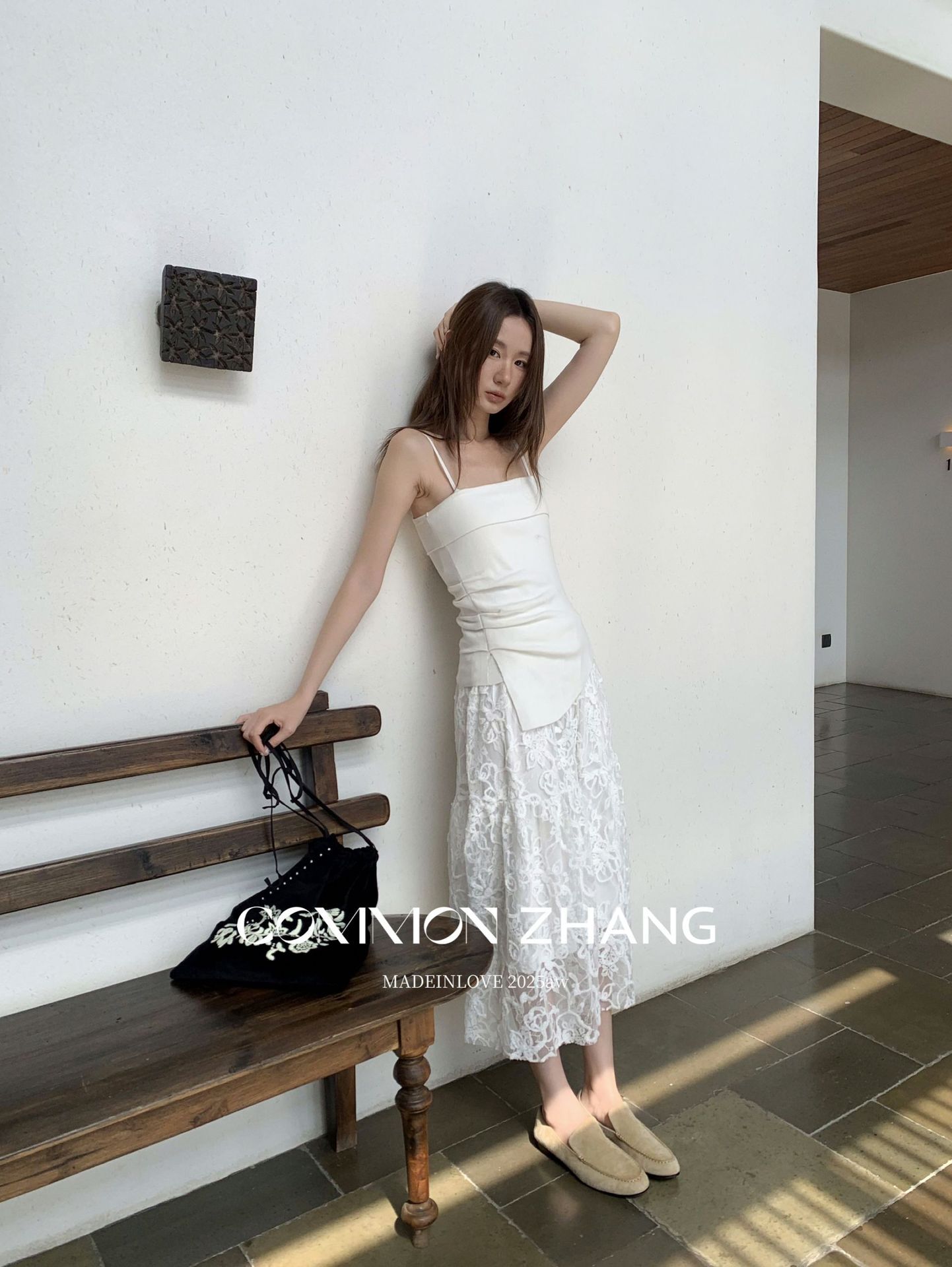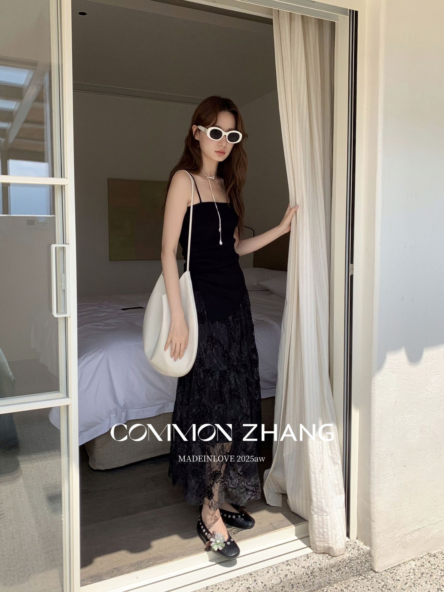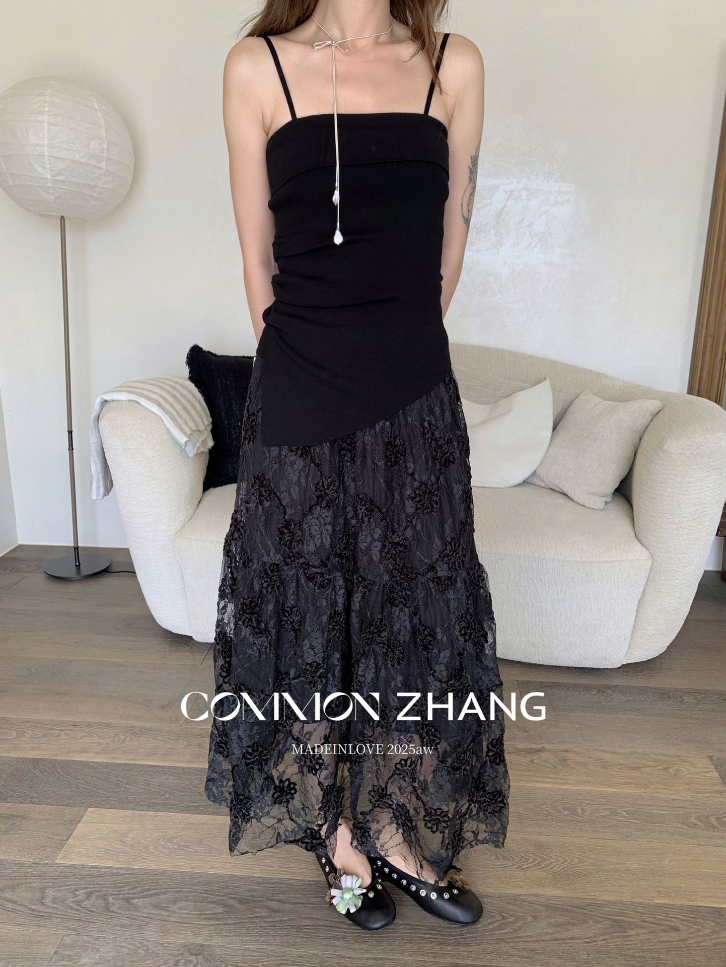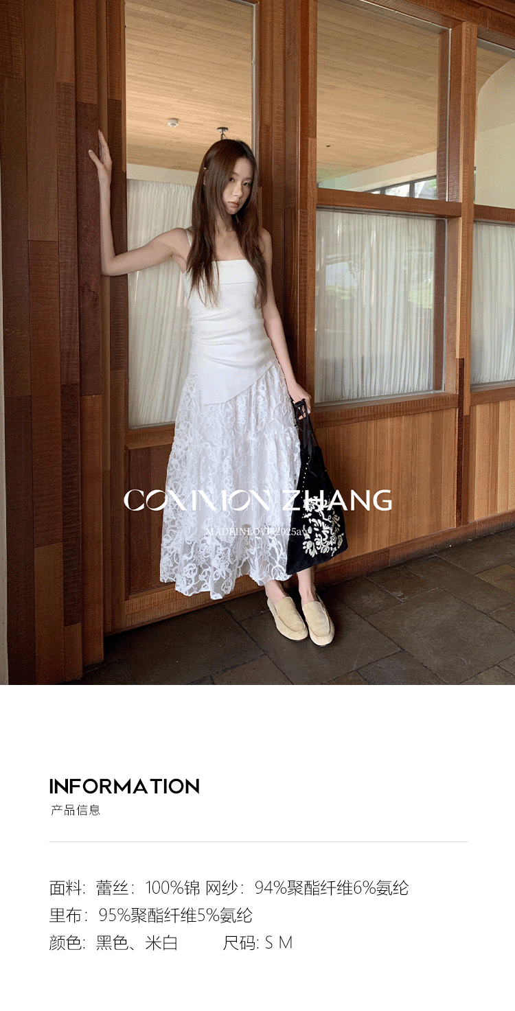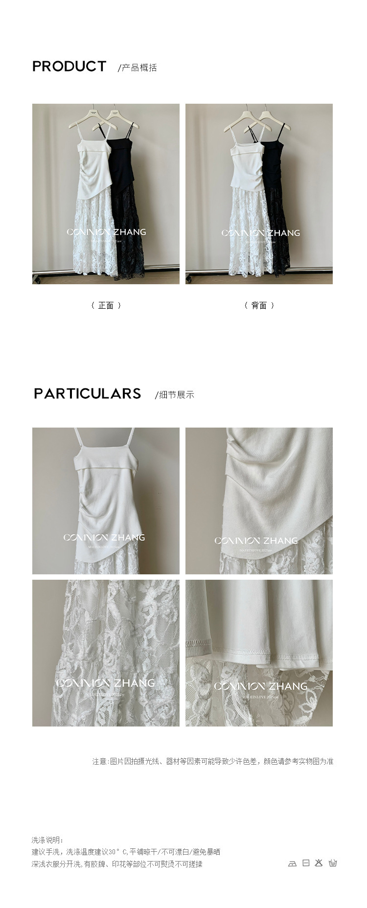 *o-ha-you*【FCZB306615】秋假兩件針織吊帶拼接蕾絲半身裙名媛修身連衣裙洋裝-2色