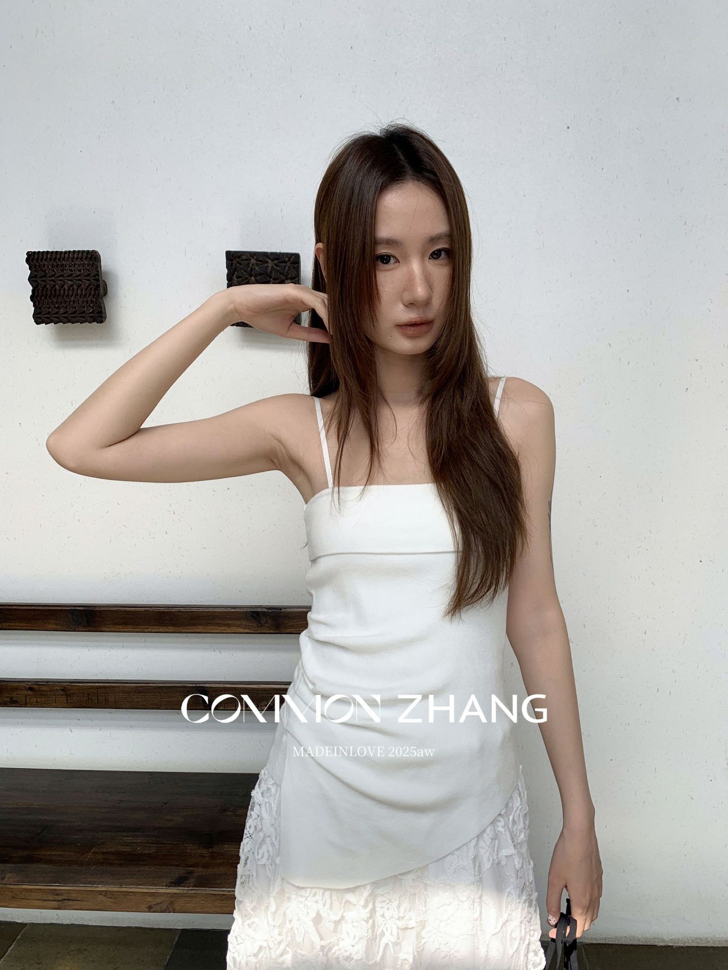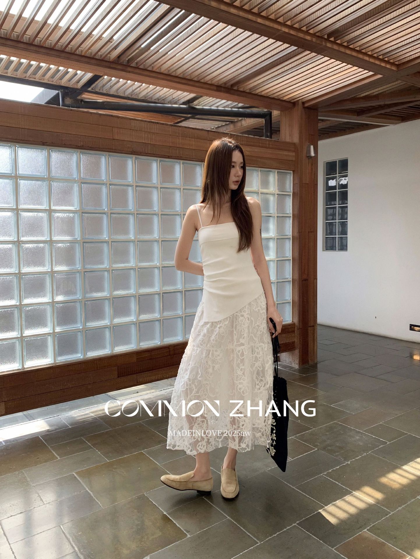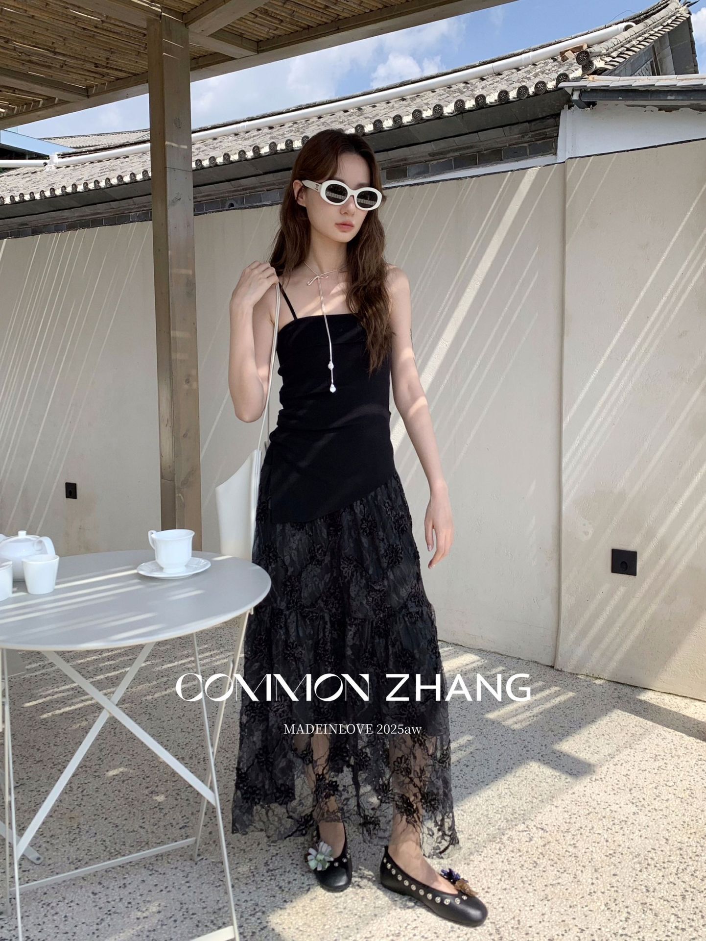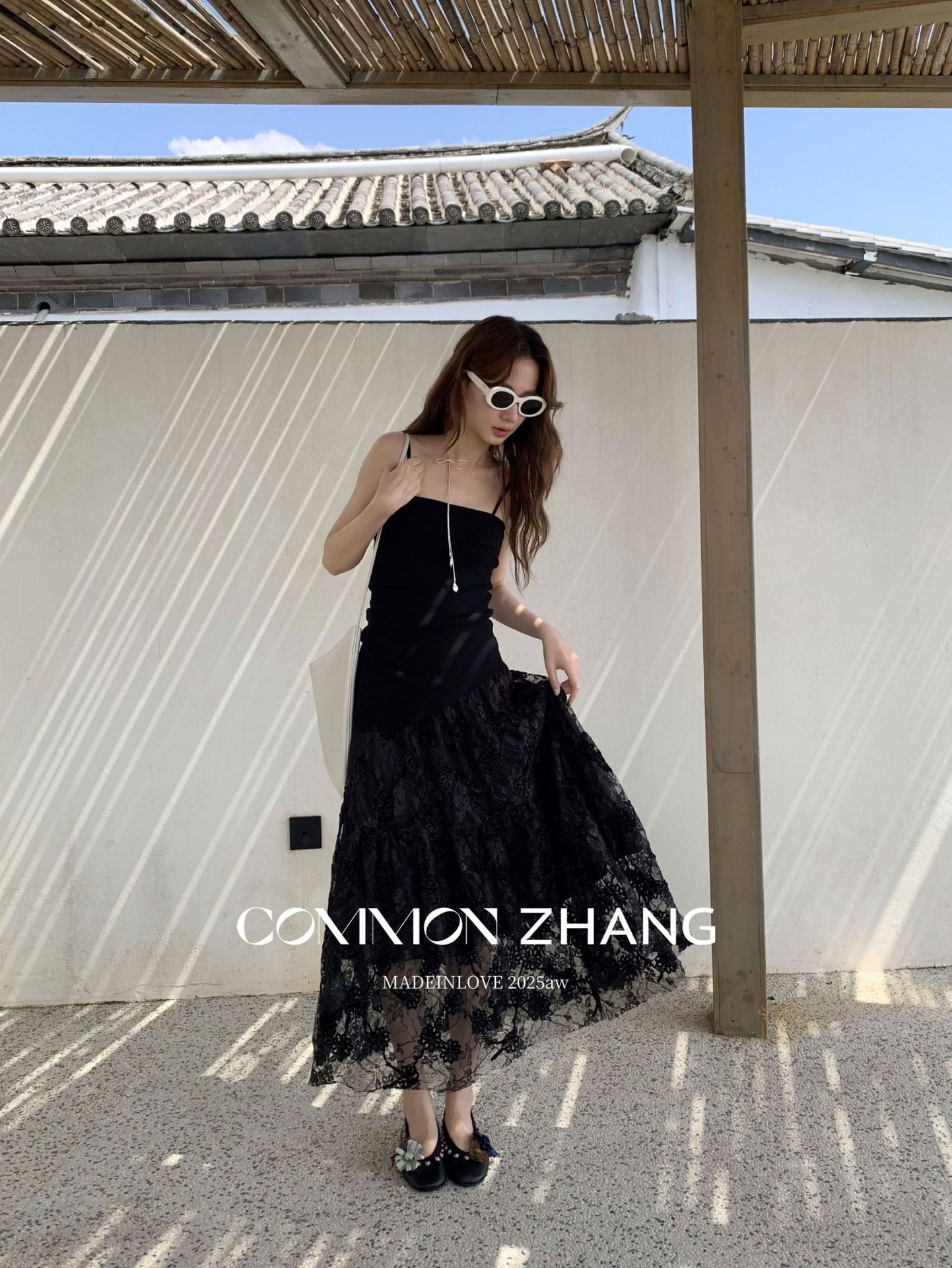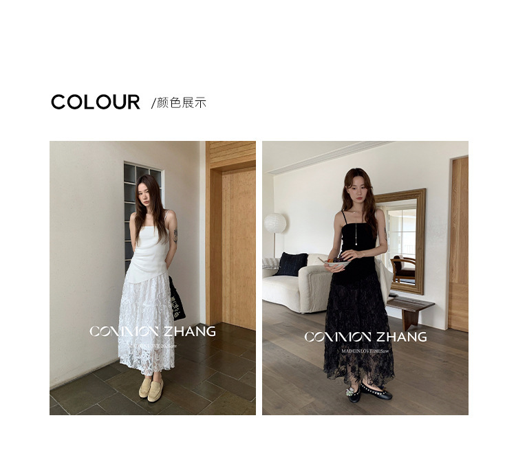 *o-ha-you*【FCZB306615】秋假兩件針織吊帶拼接蕾絲半身裙名媛修身連衣裙洋裝-2色