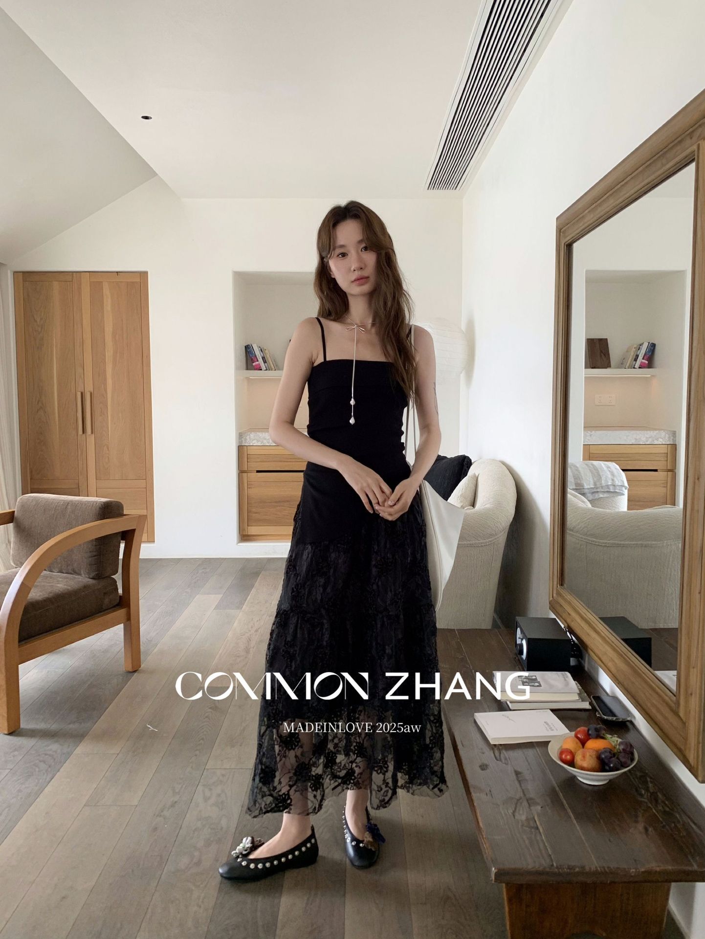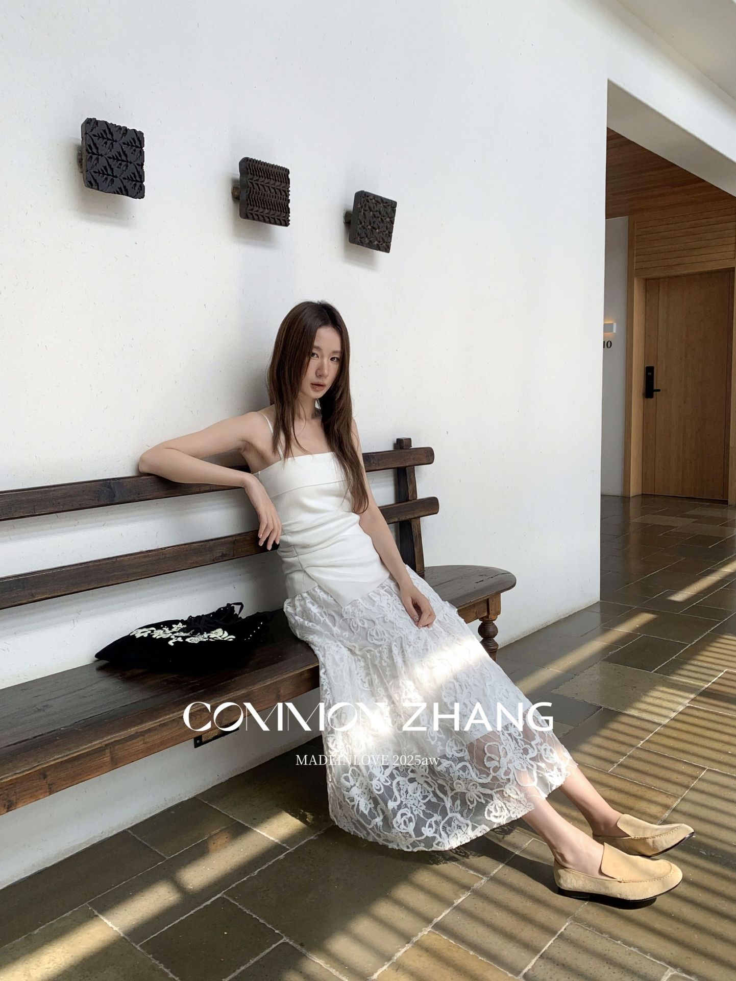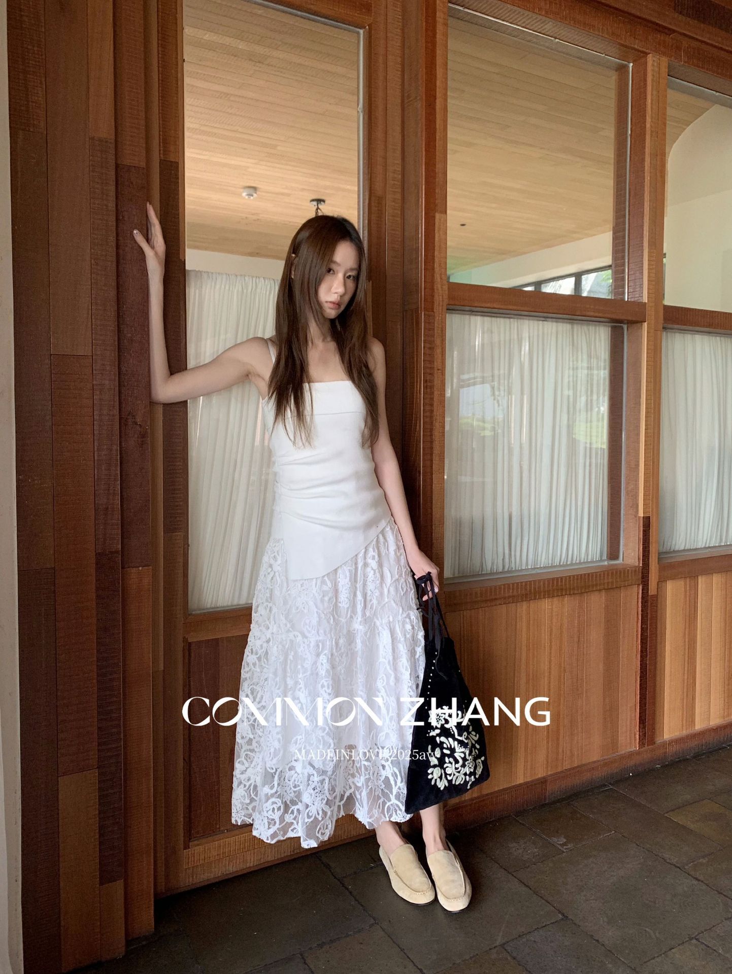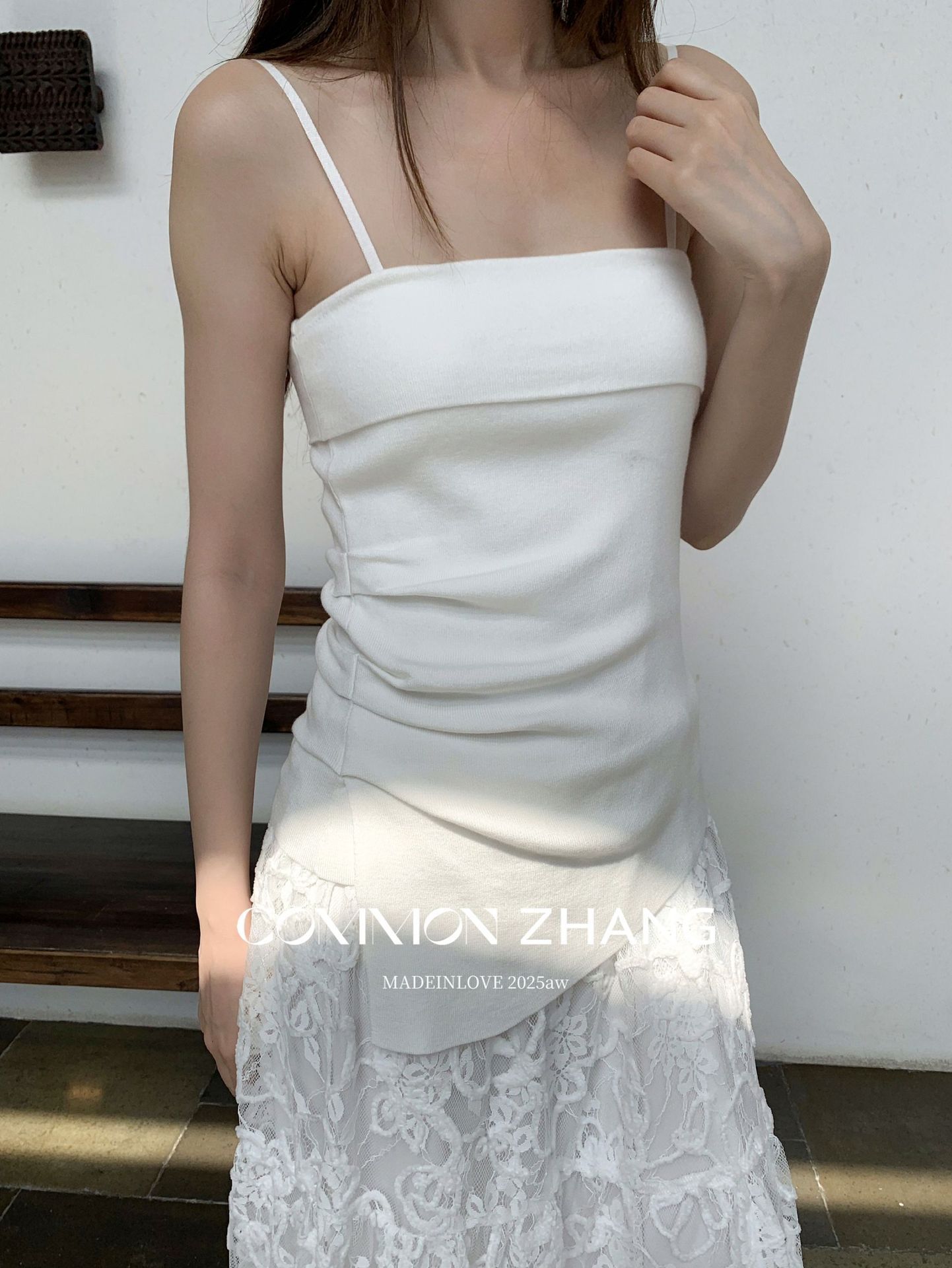*o-ha-you*【FCZB306615】秋假兩件針織吊帶拼接蕾絲半身裙名媛修身連衣裙洋裝-2色