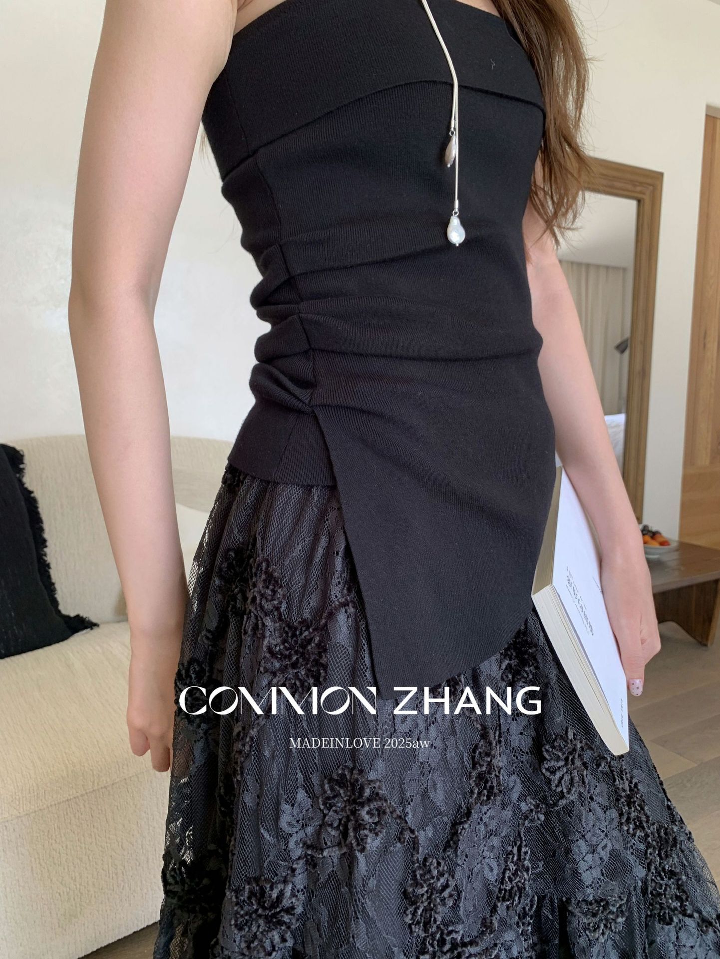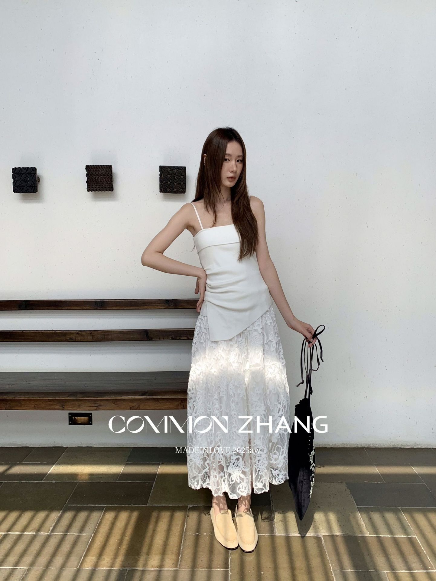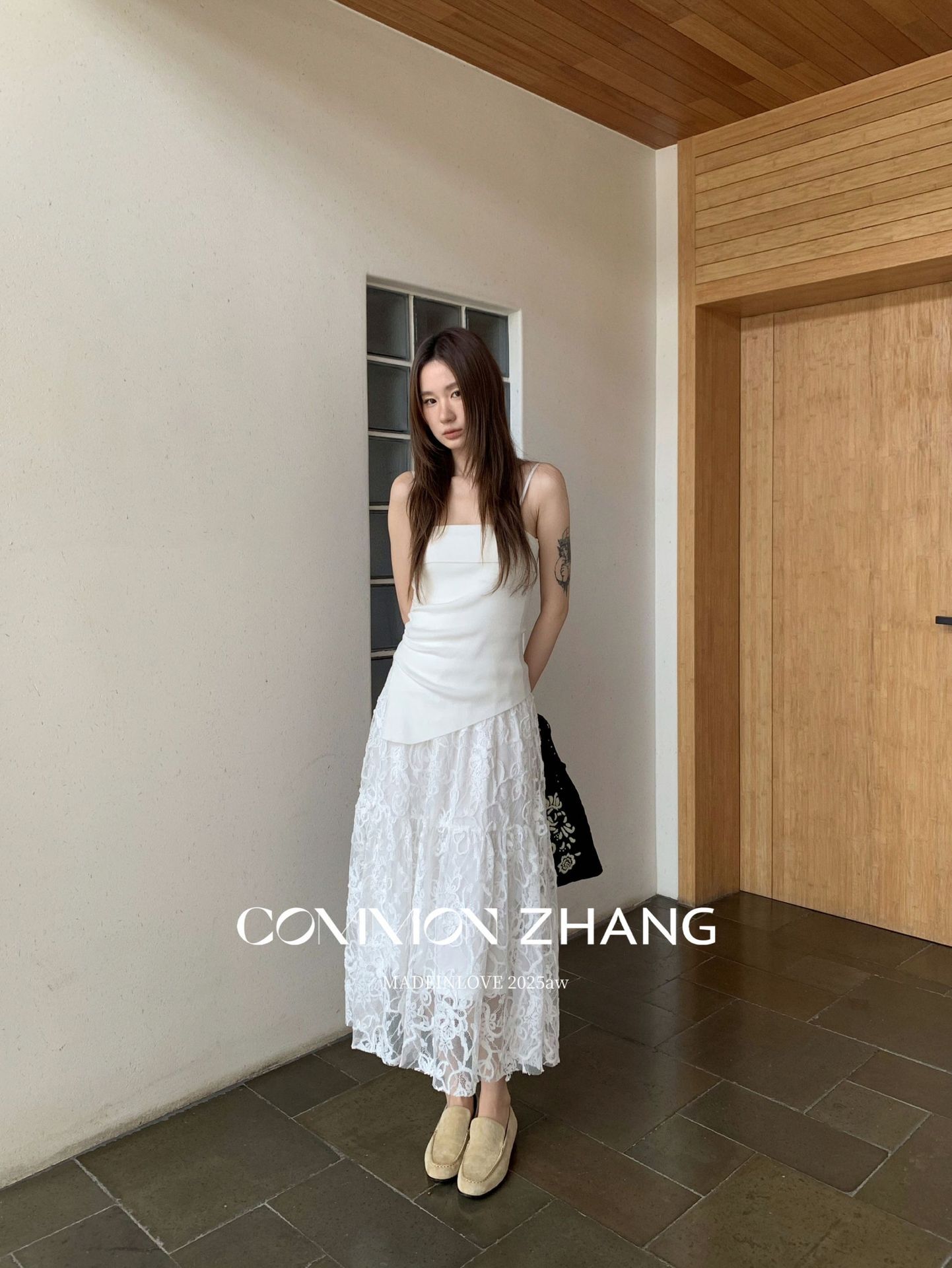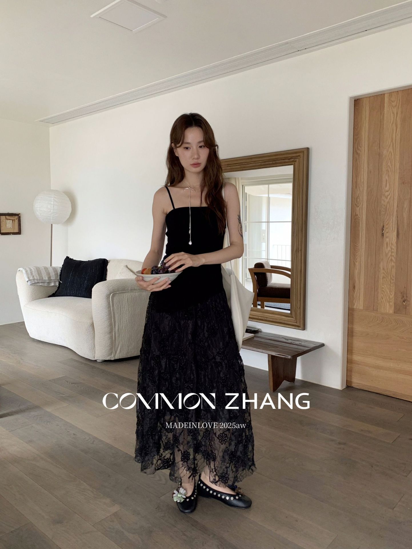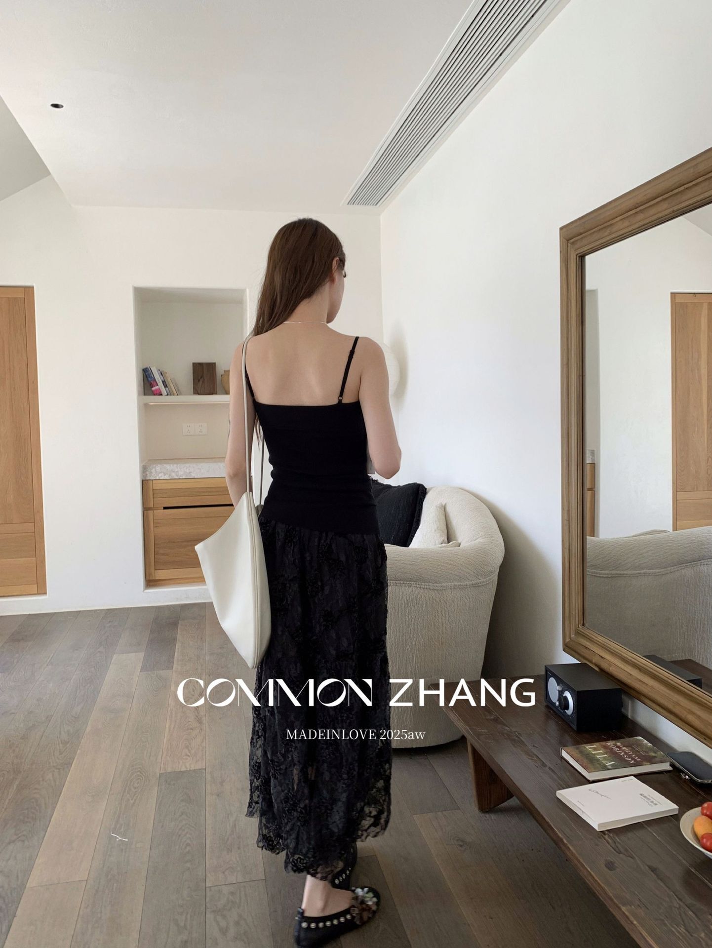 *o-ha-you*【FCZB306615】秋假兩件針織吊帶拼接蕾絲半身裙名媛修身連衣裙洋裝-2色