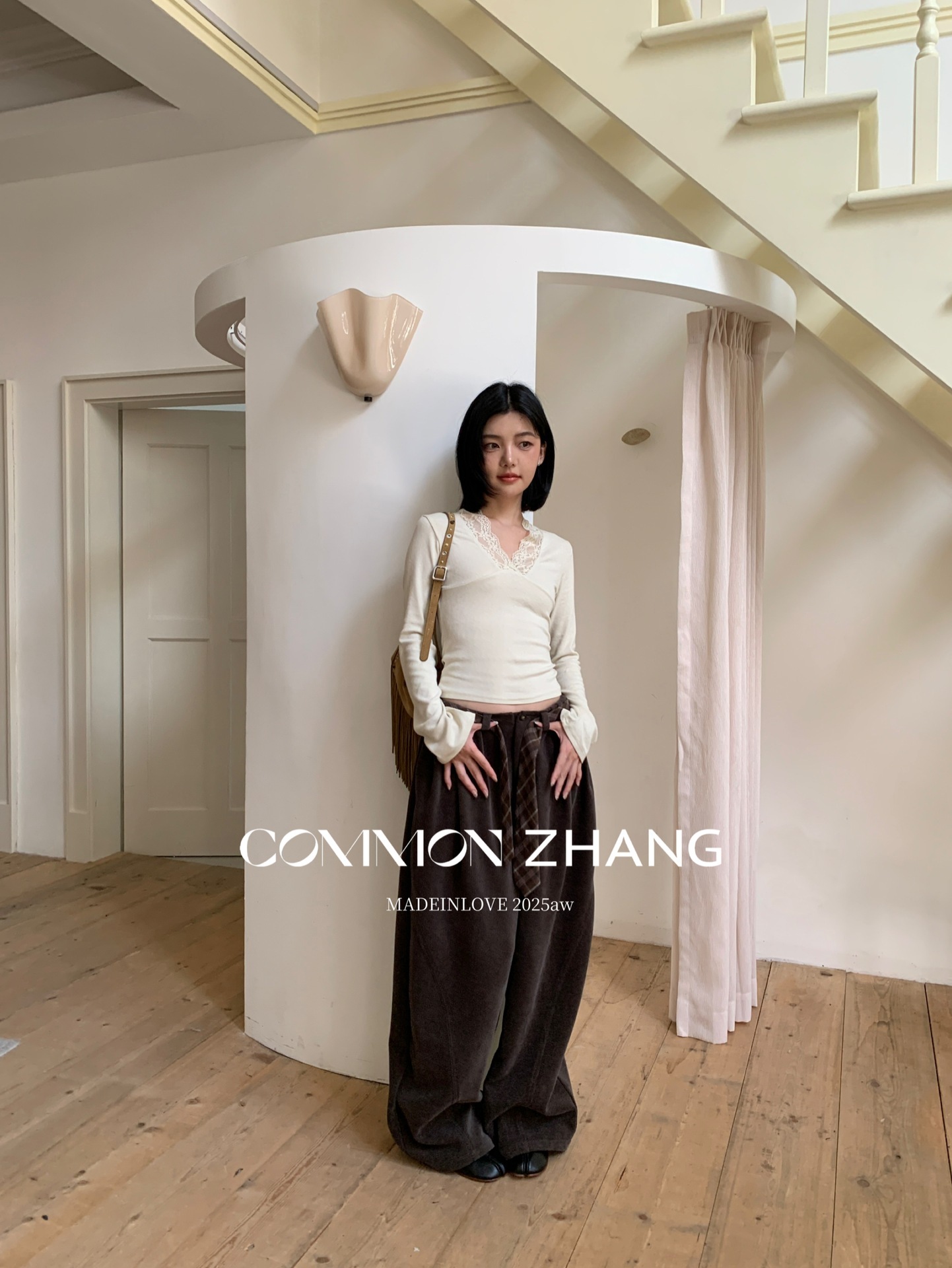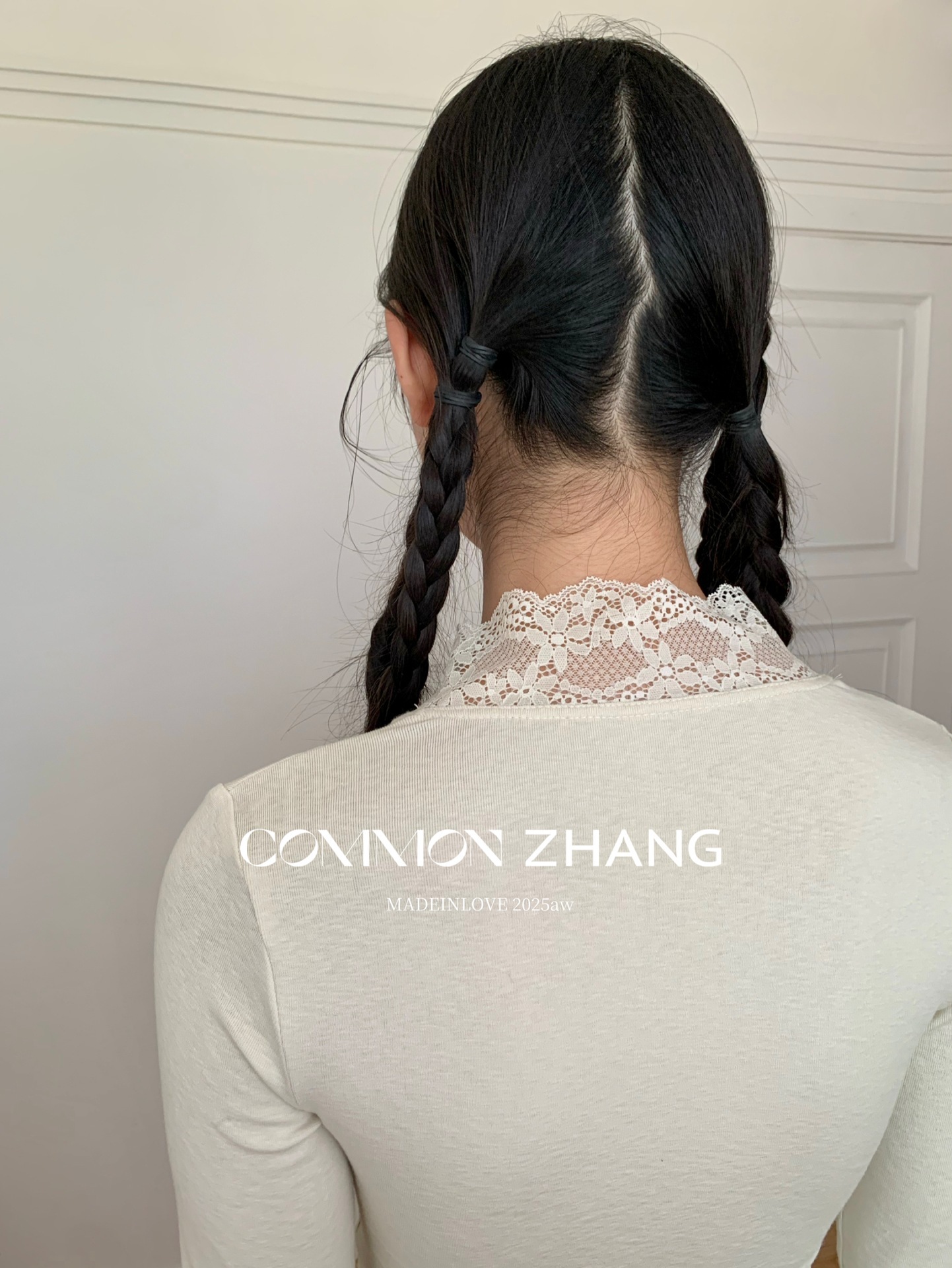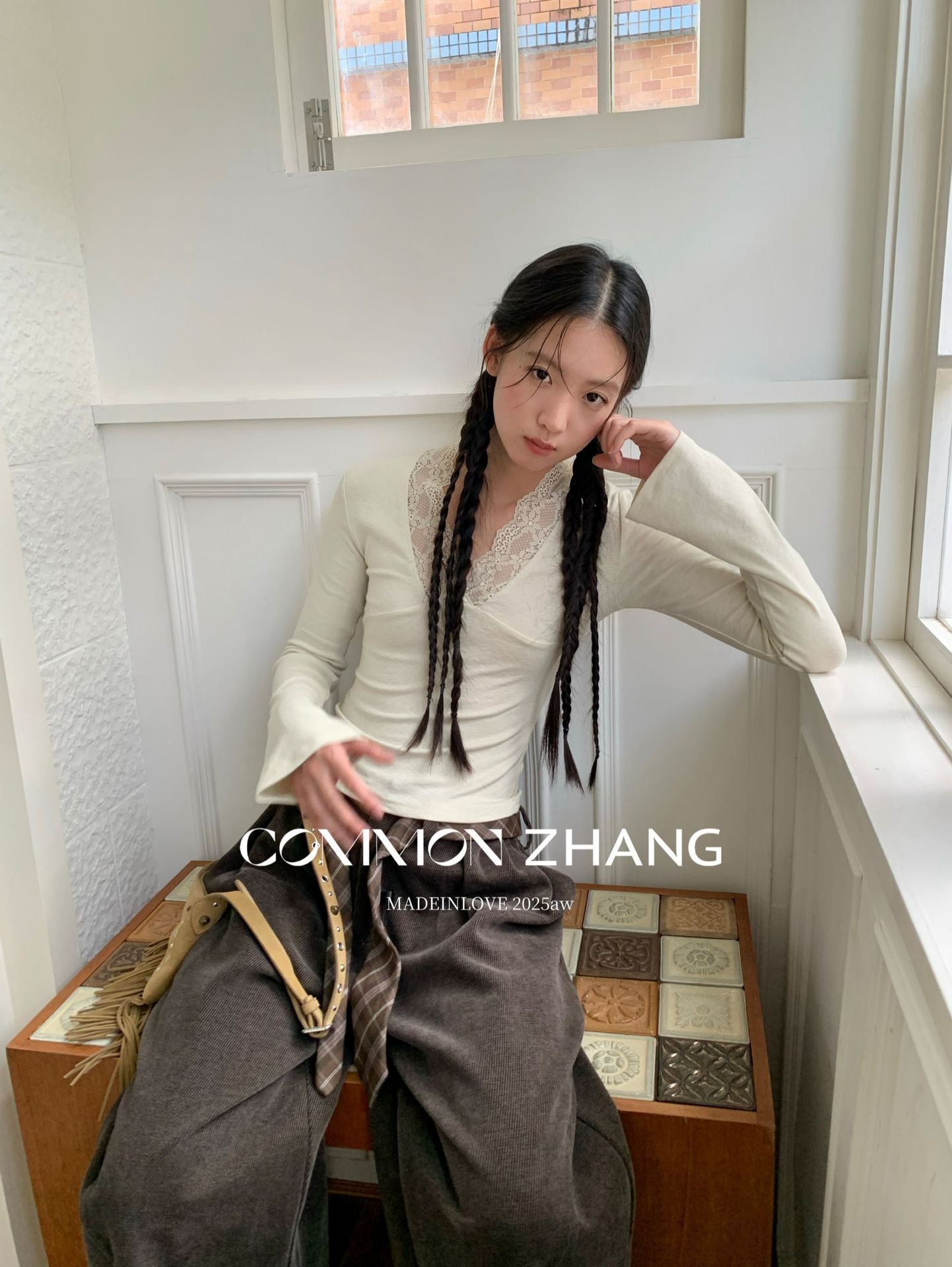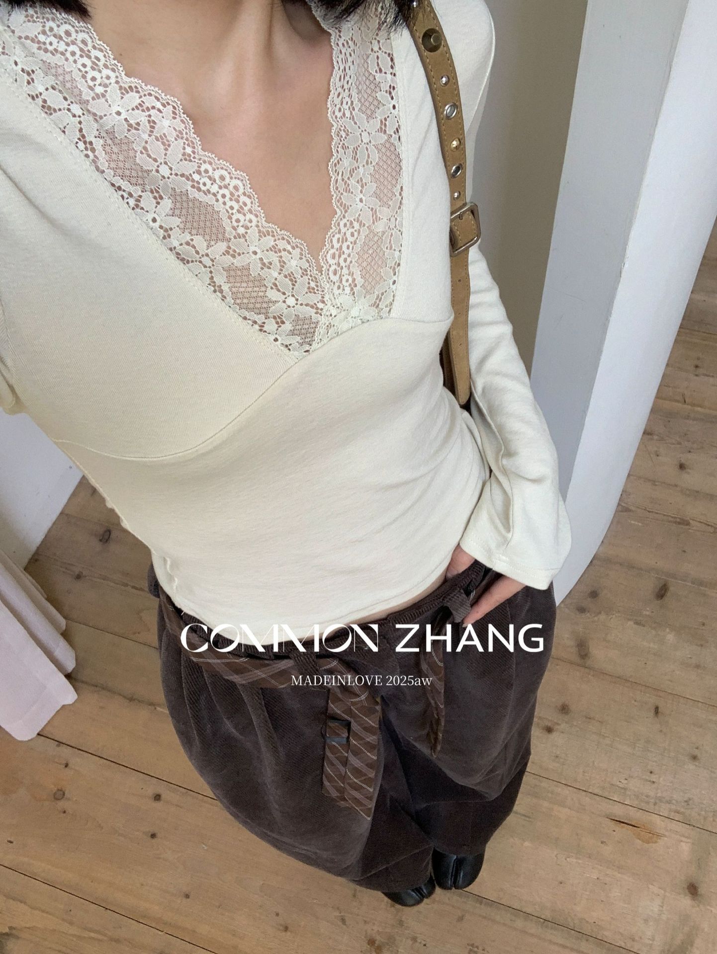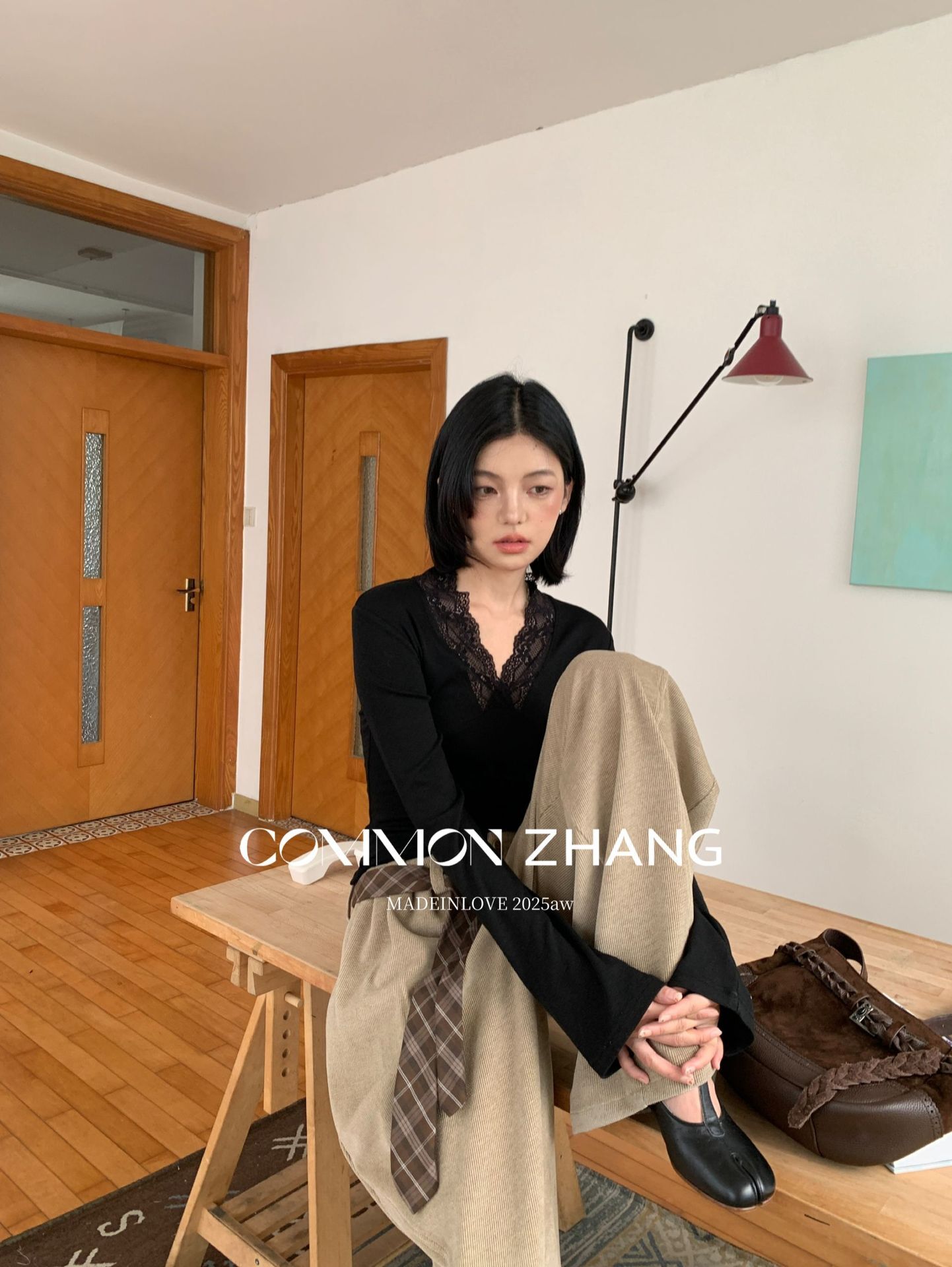 *o-ha-you*【FCZB400078】秋蕾絲拼接V領針織衫女名媛修身顯瘦長袖打底T恤-2色