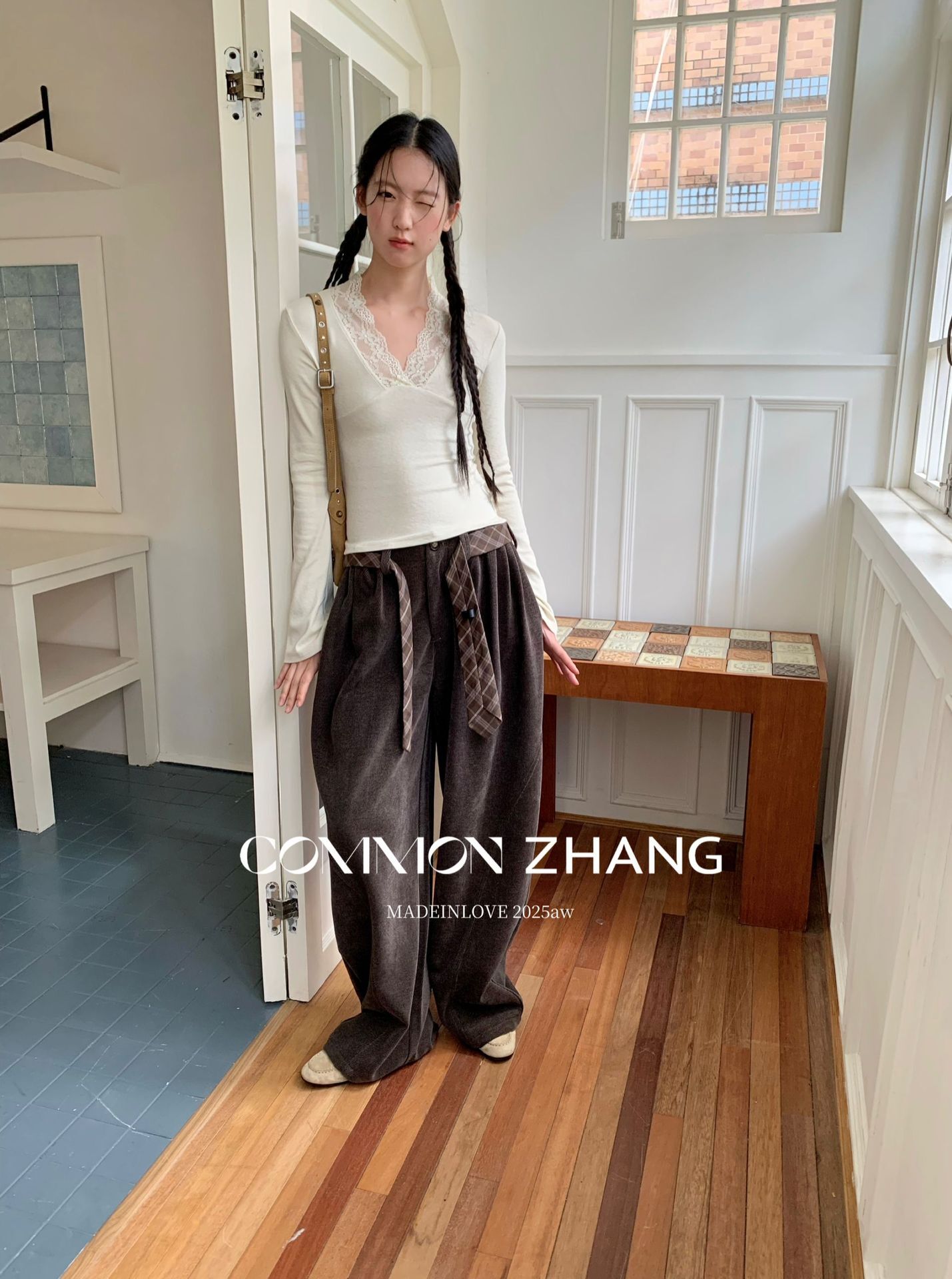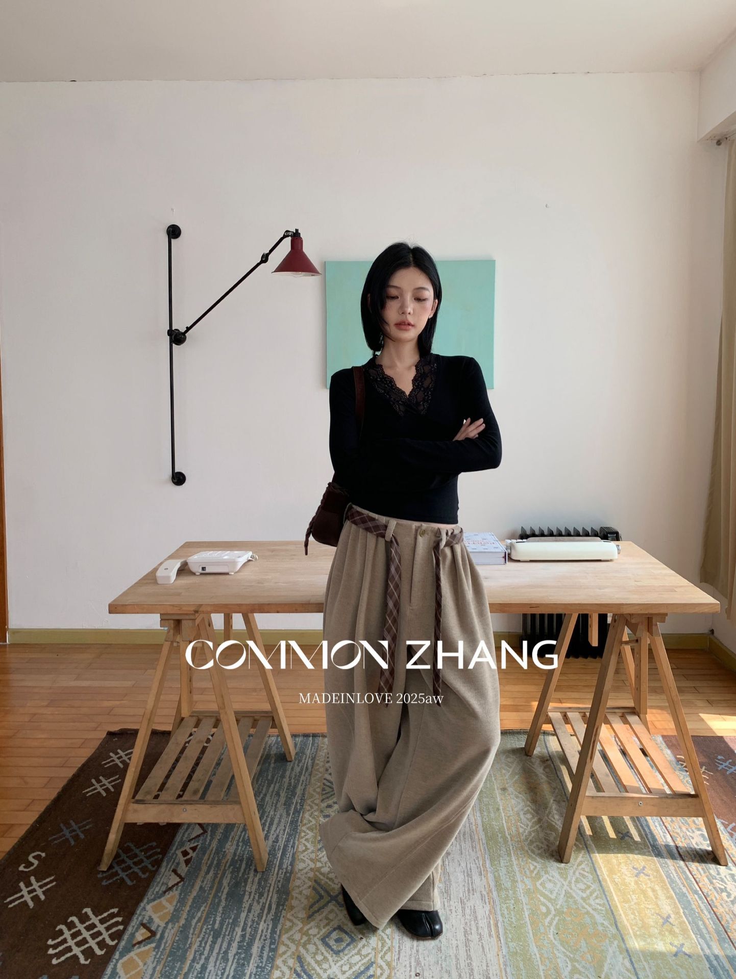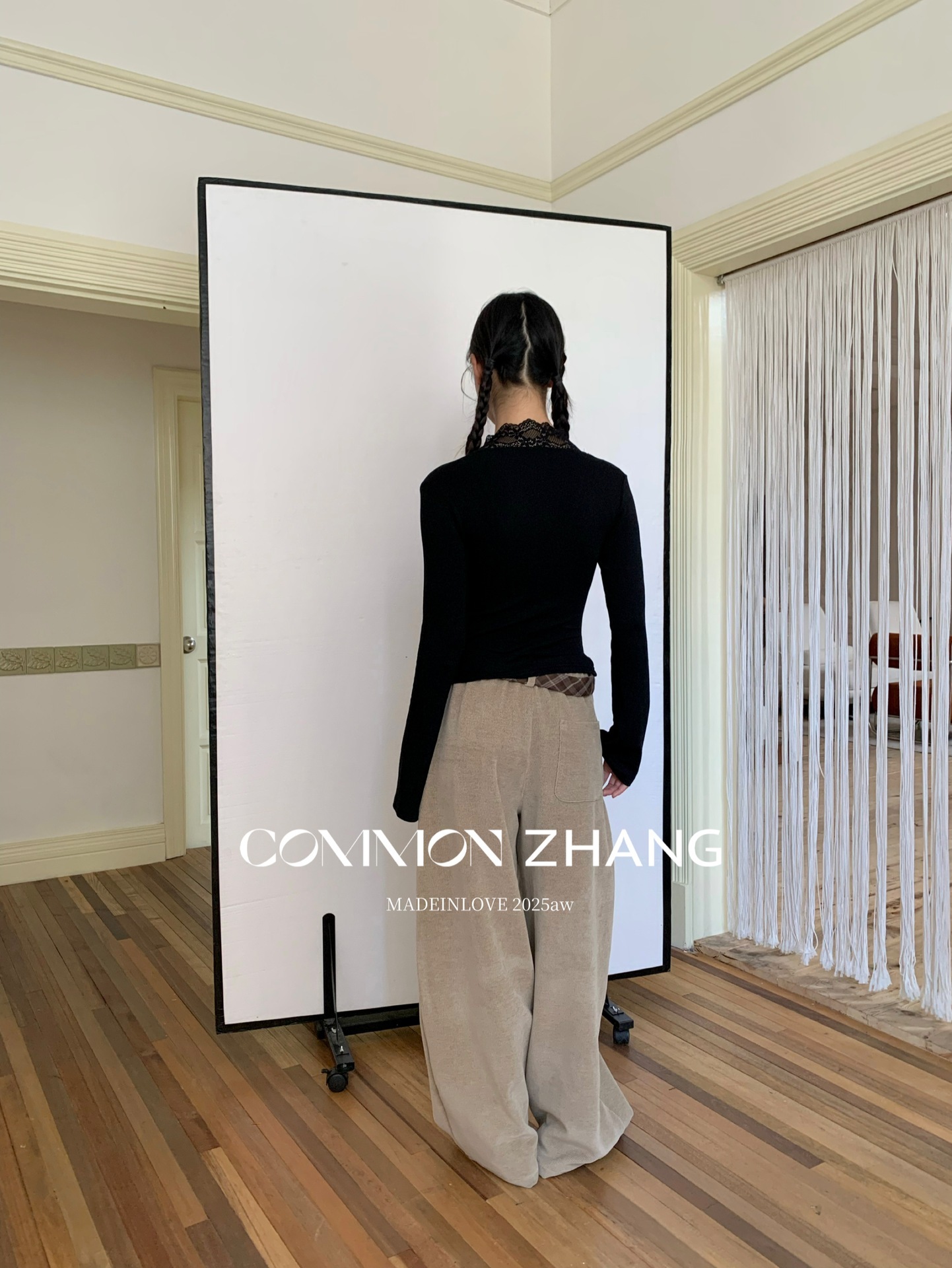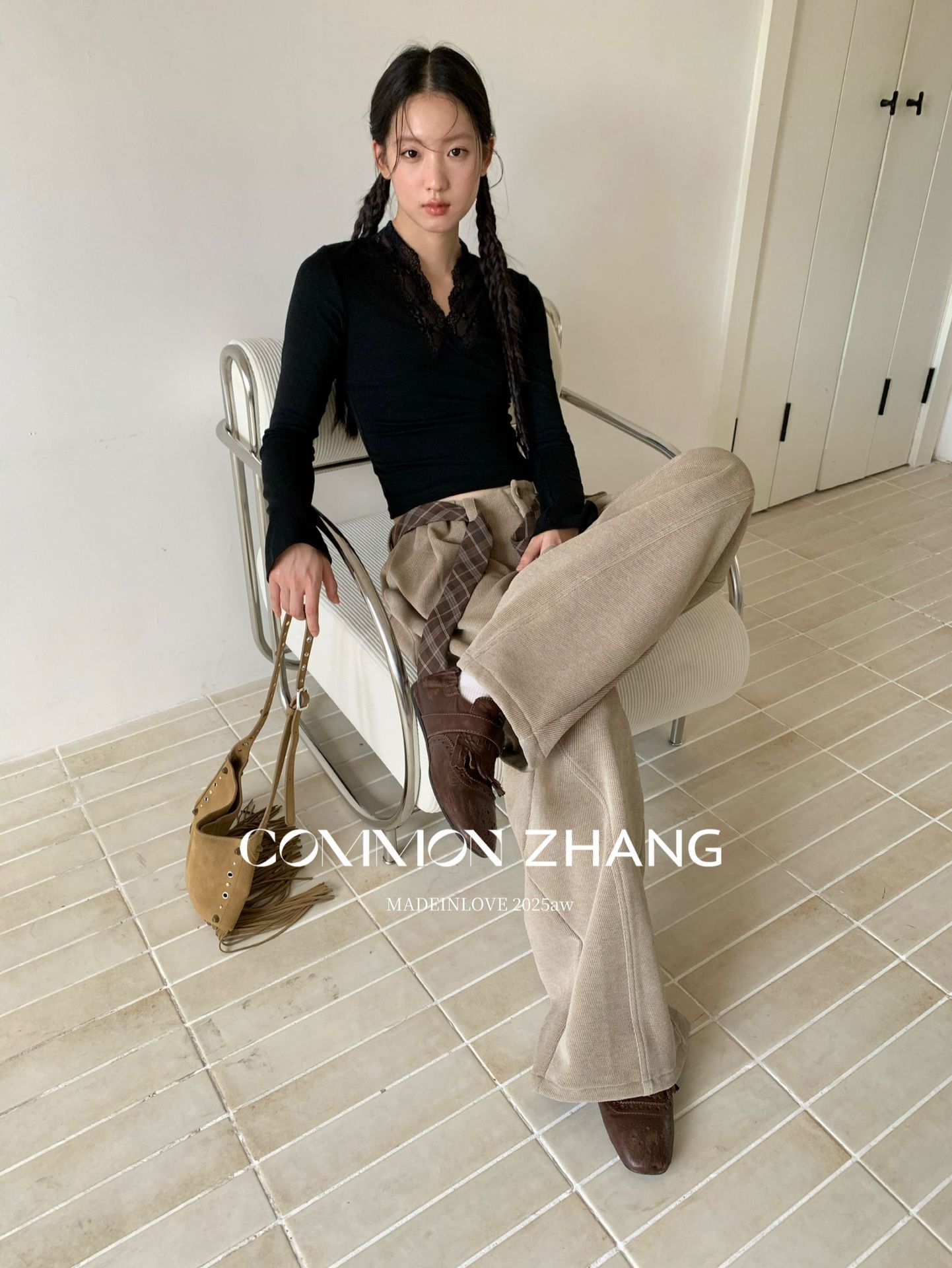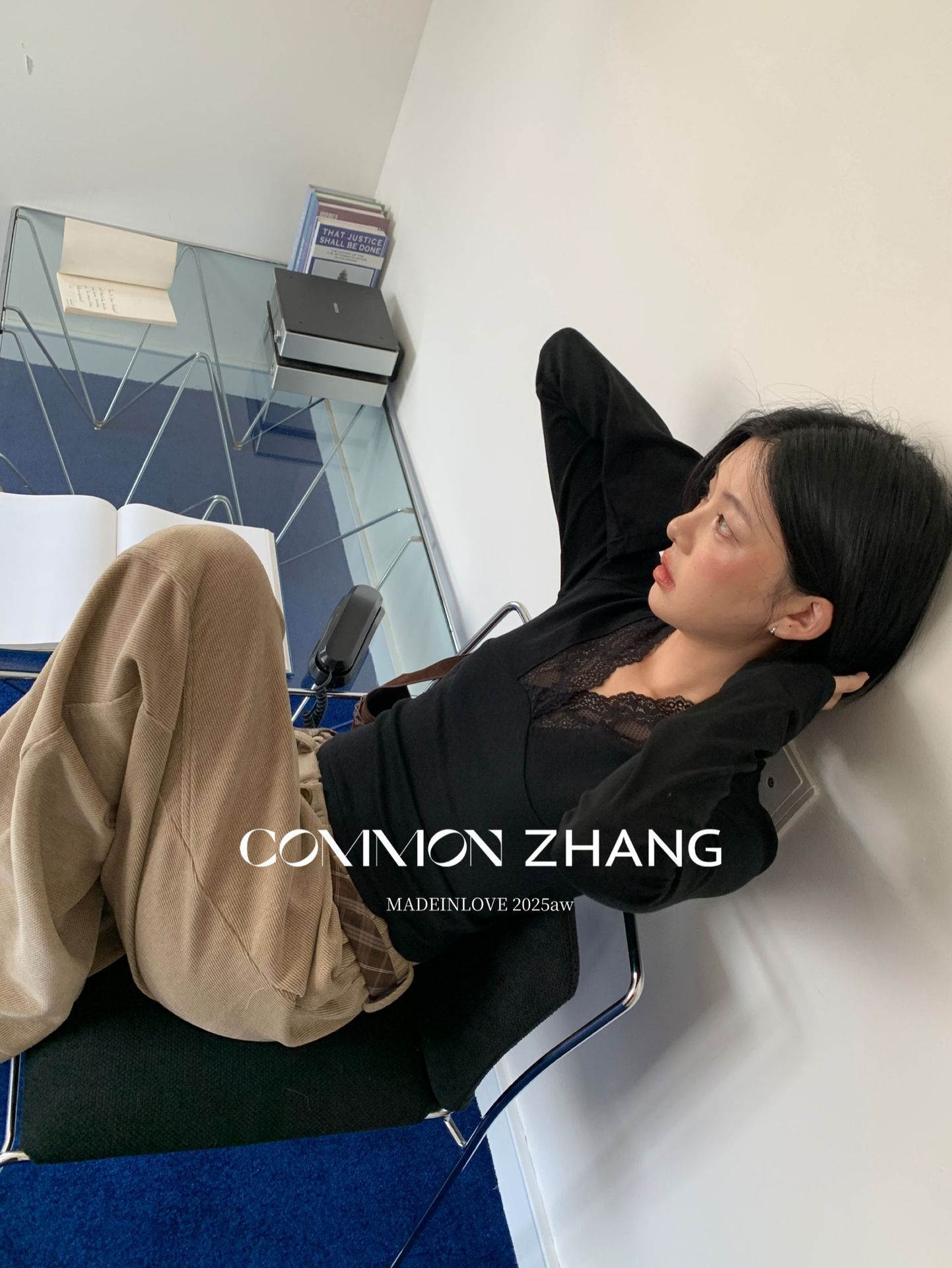*o-ha-you*【FCZB400078】秋蕾絲拼接V領針織衫女名媛修身顯瘦長袖打底T恤-2色