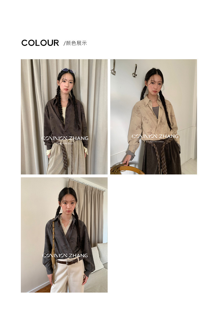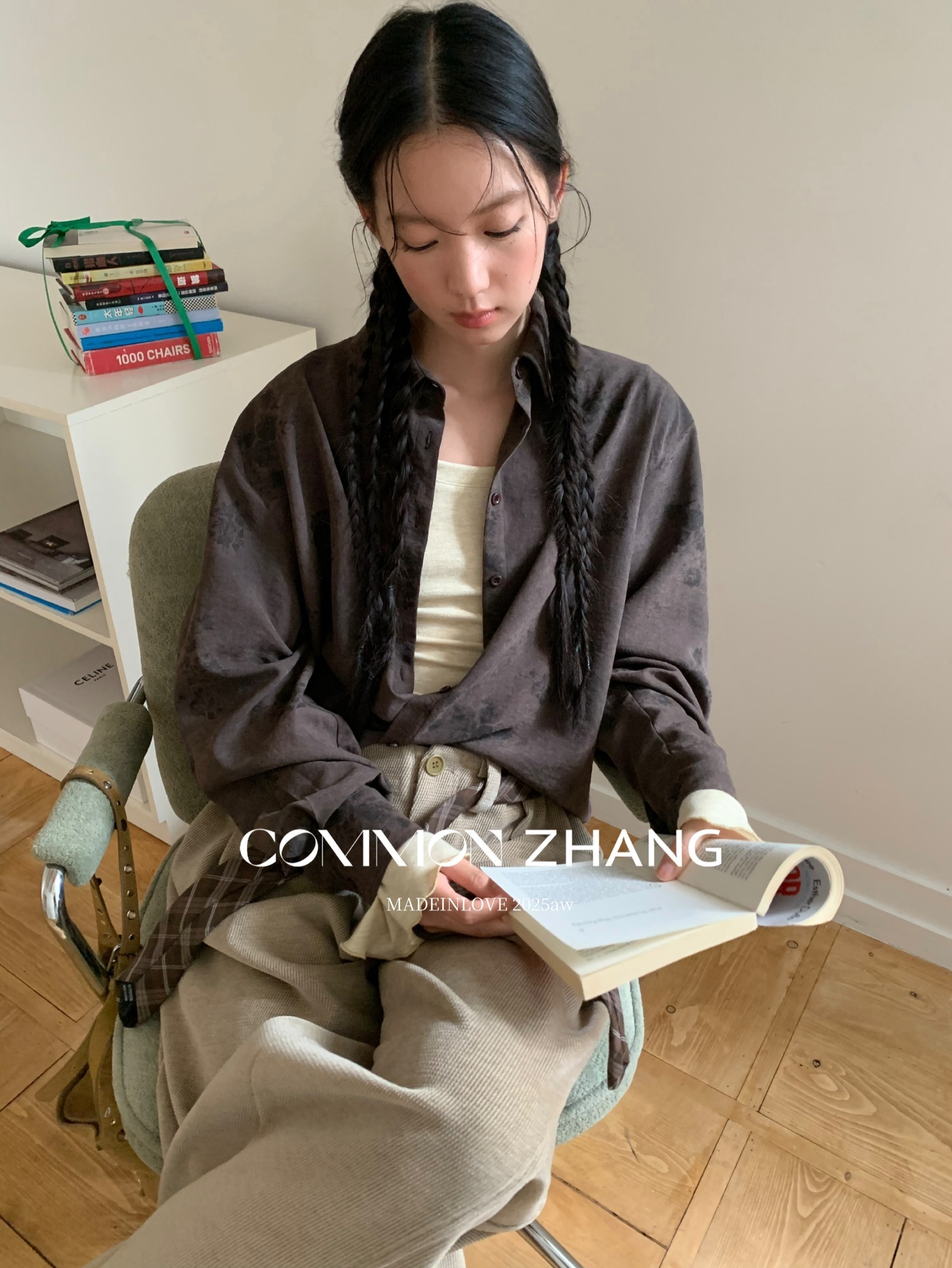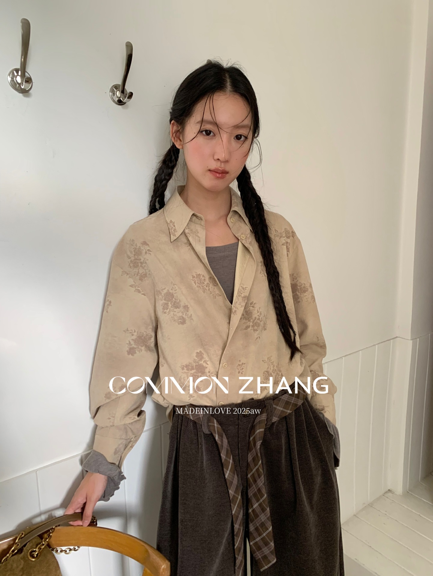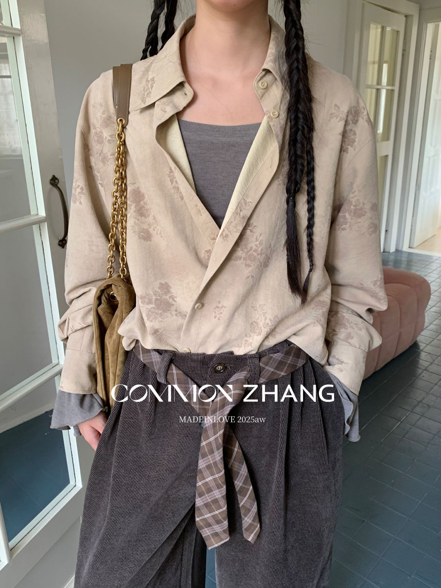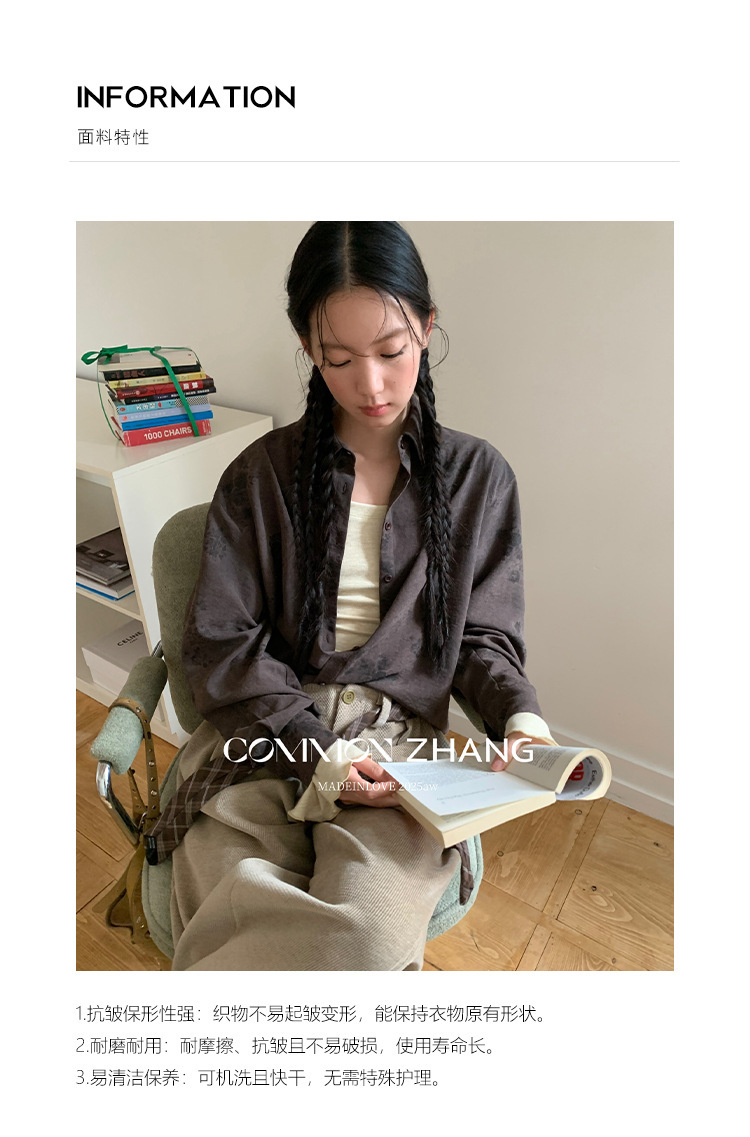 *o-ha-you*【FCZB403062】秋輕熟風復古印花寬鬆休閒襯衫女中長款深色上衣-3色