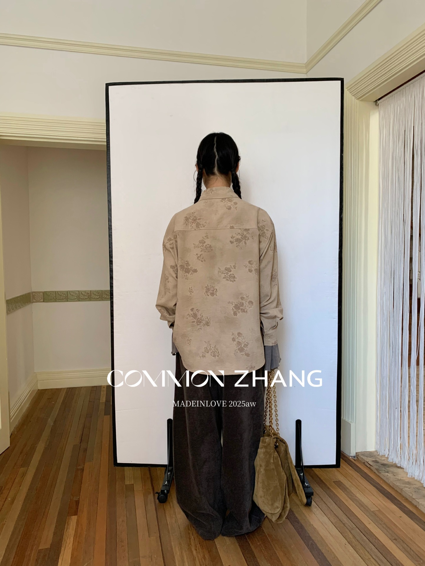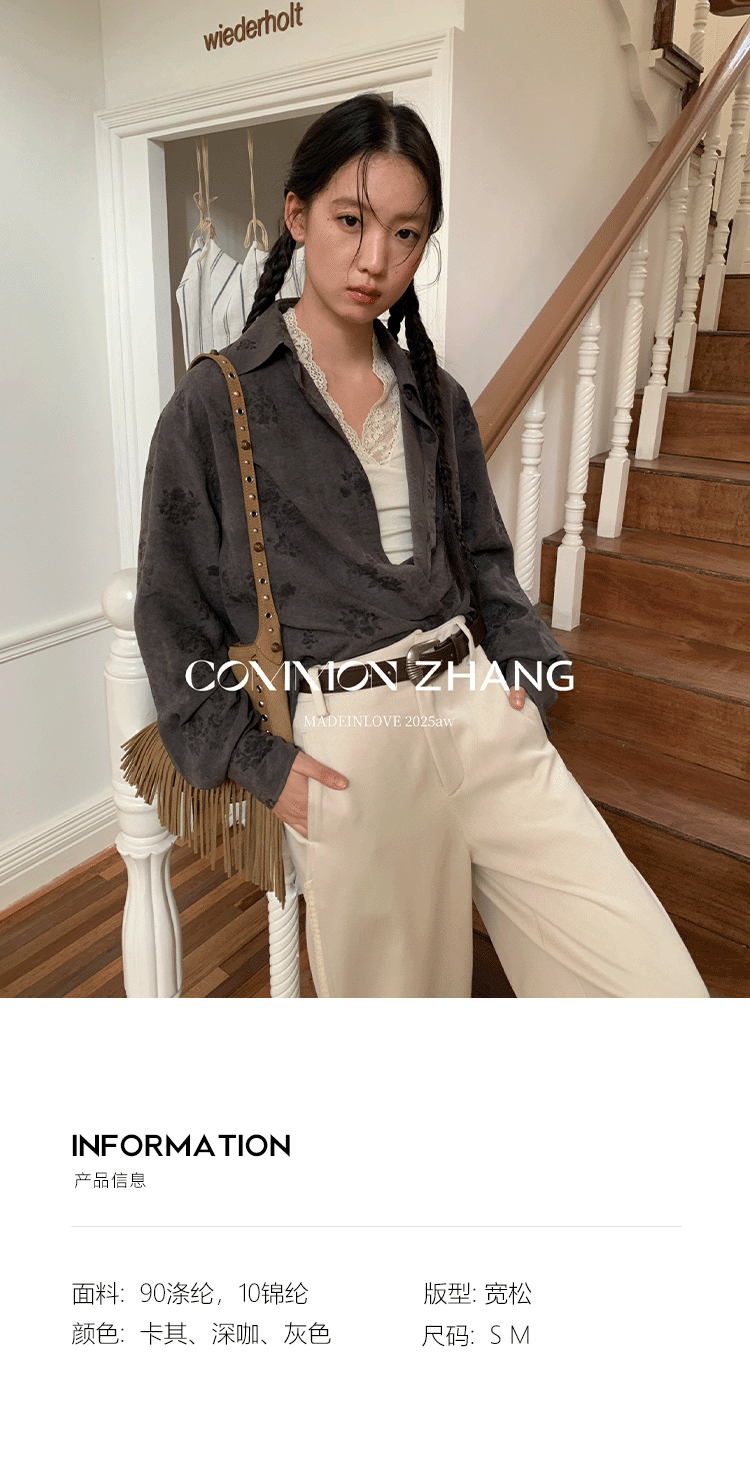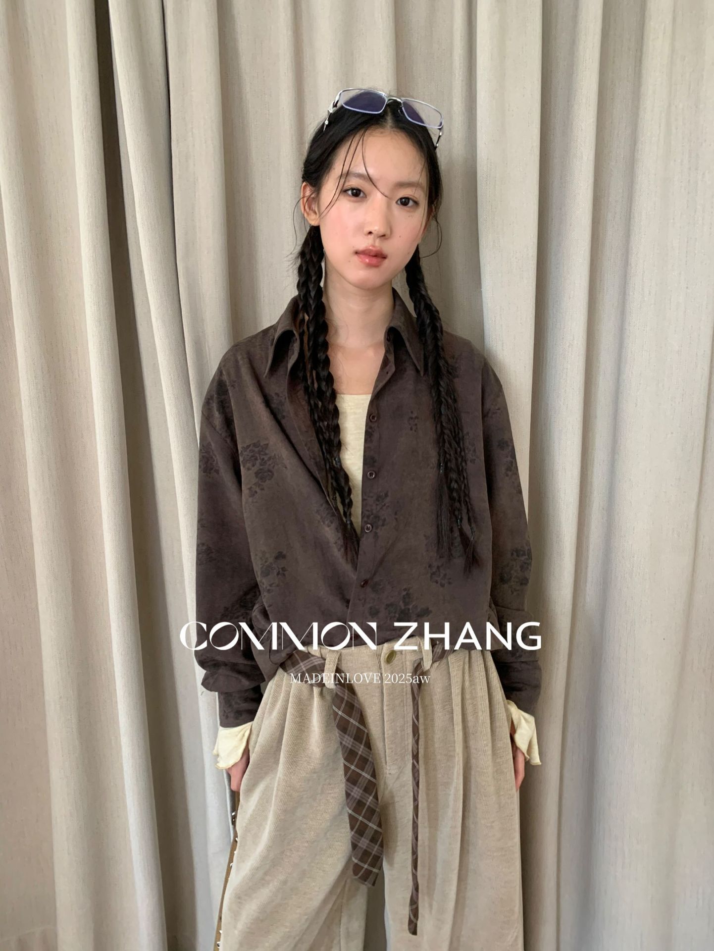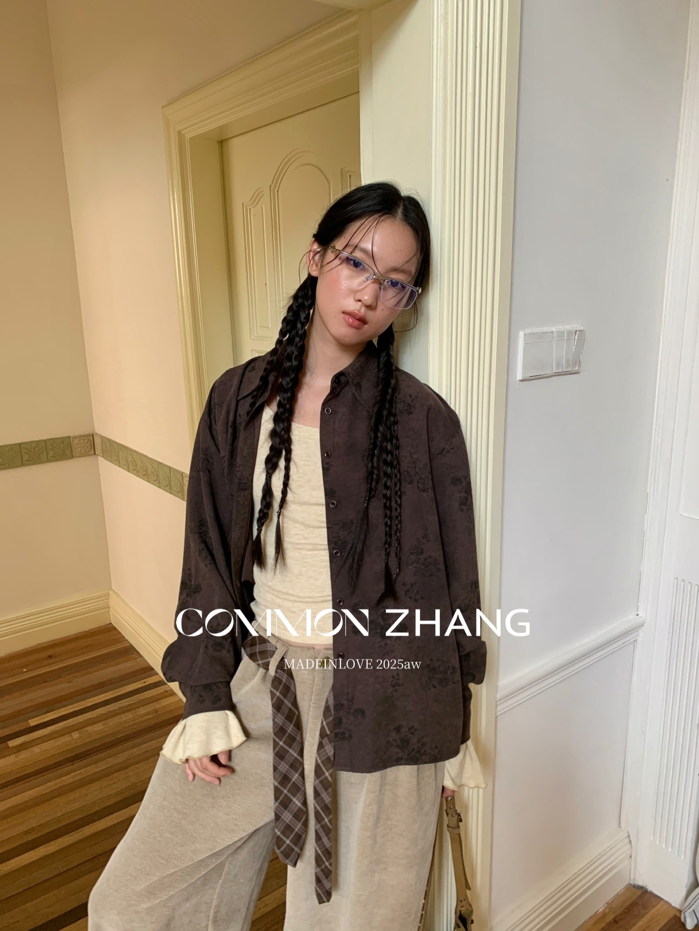 *o-ha-you*【FCZB403062】秋輕熟風復古印花寬鬆休閒襯衫女中長款深色上衣-3色