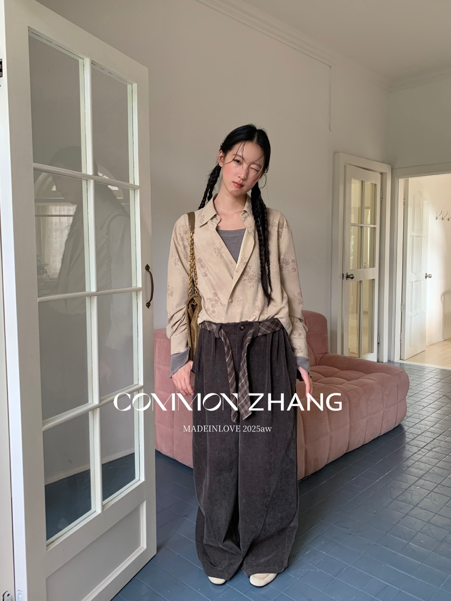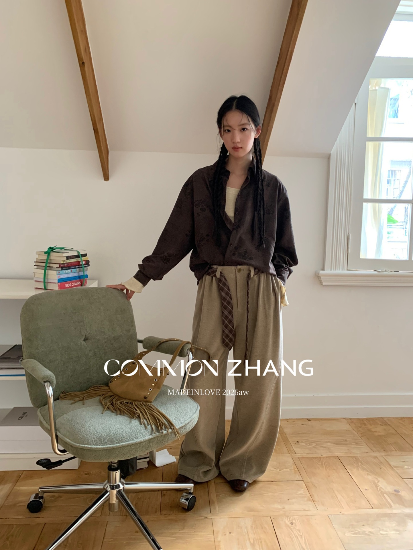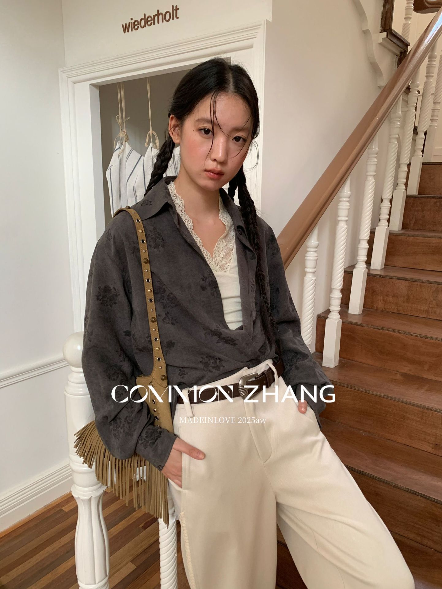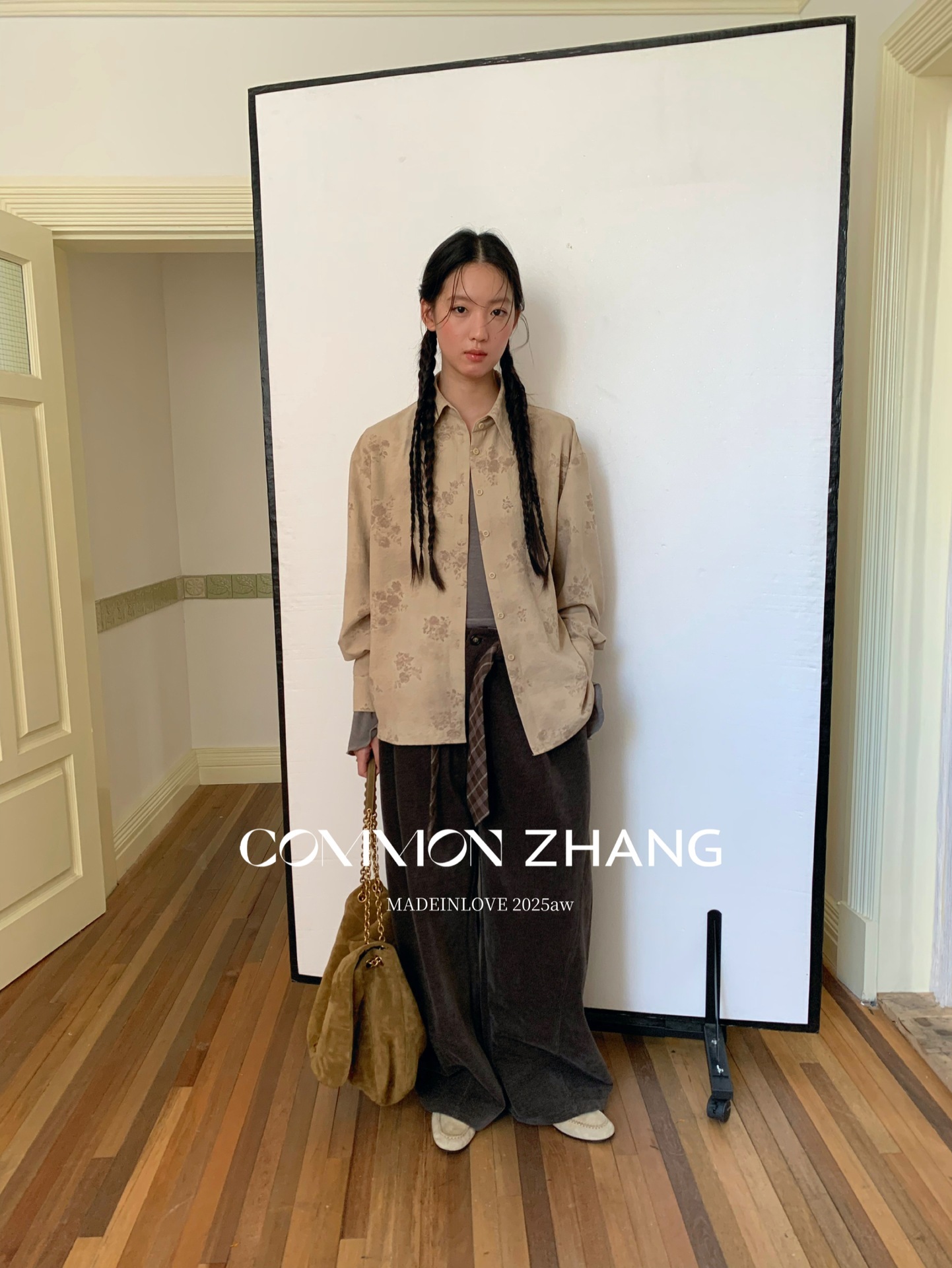 *o-ha-you*【FCZB403062】秋輕熟風復古印花寬鬆休閒襯衫女中長款深色上衣-3色