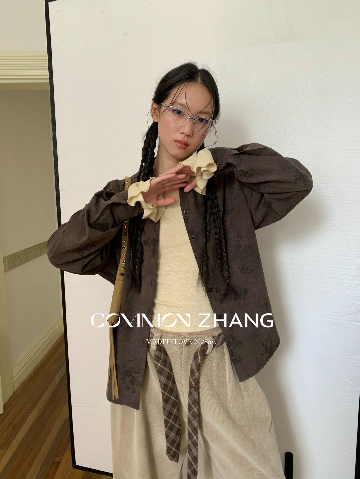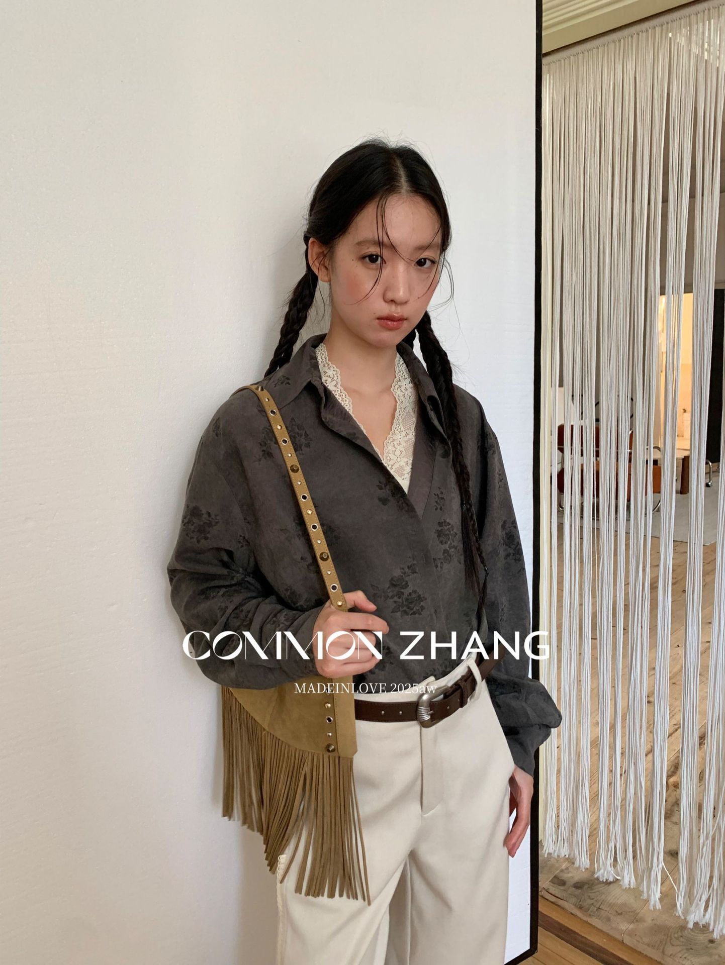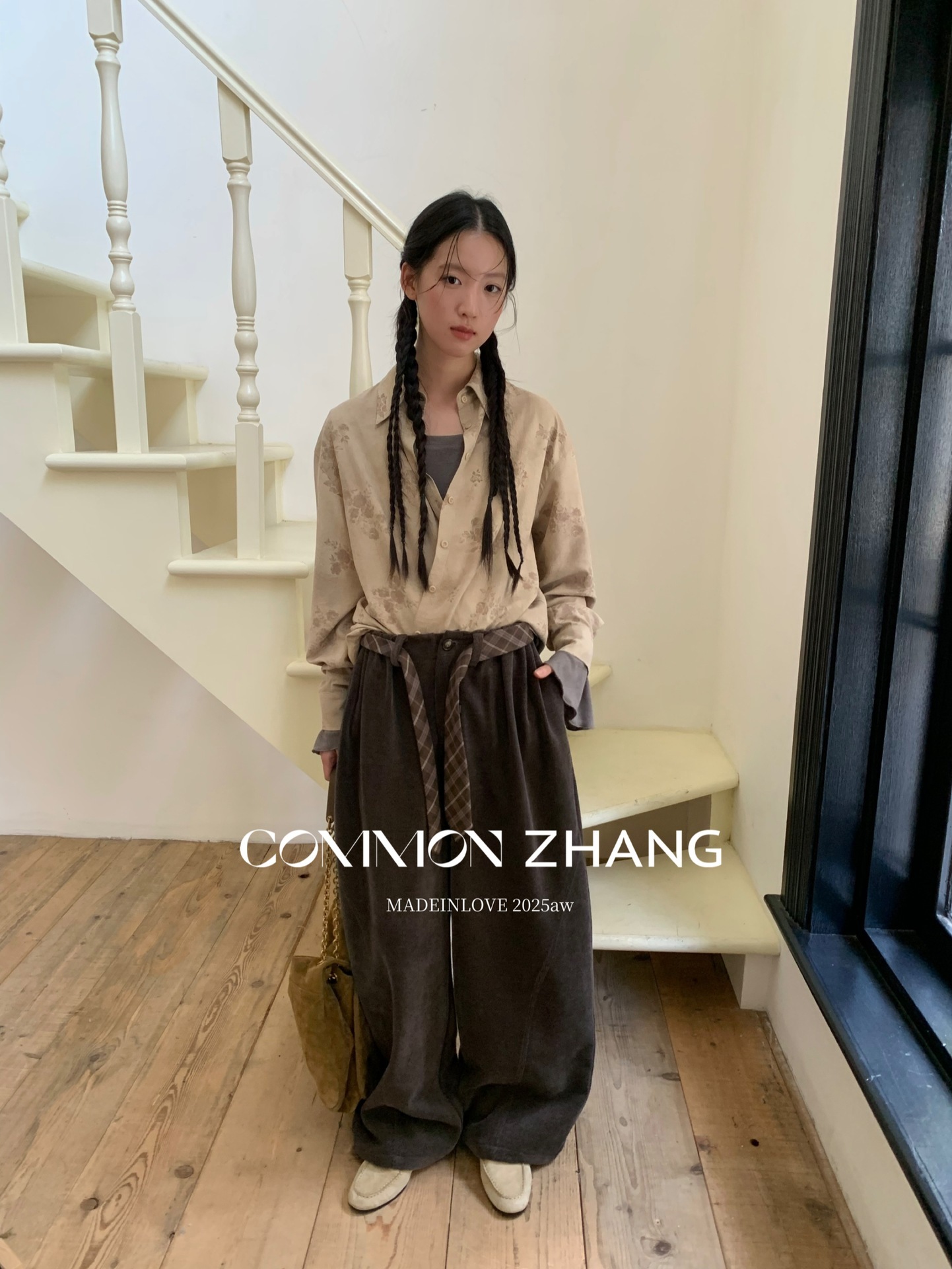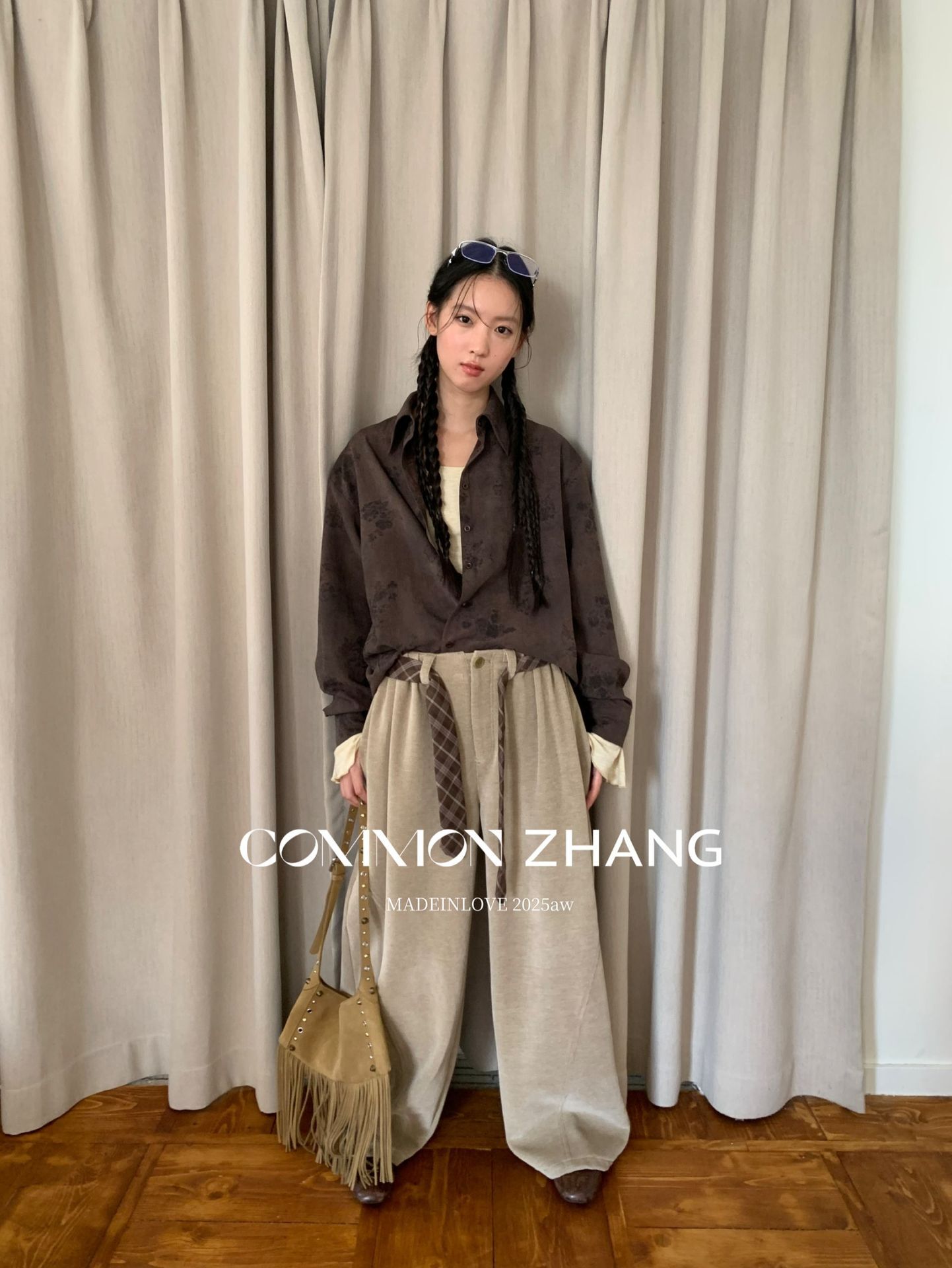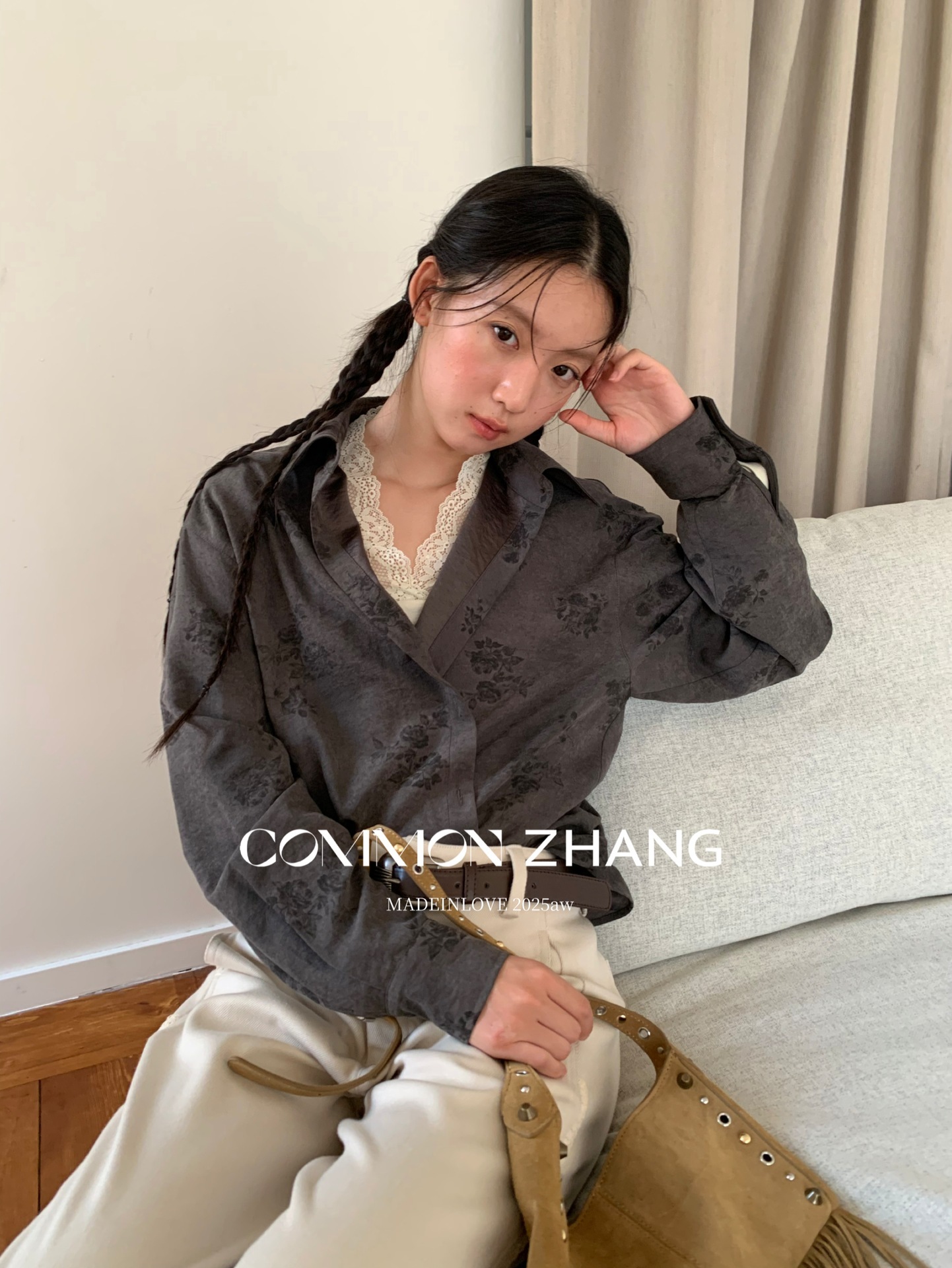 *o-ha-you*【FCZB403062】秋輕熟風復古印花寬鬆休閒襯衫女中長款深色上衣-3色