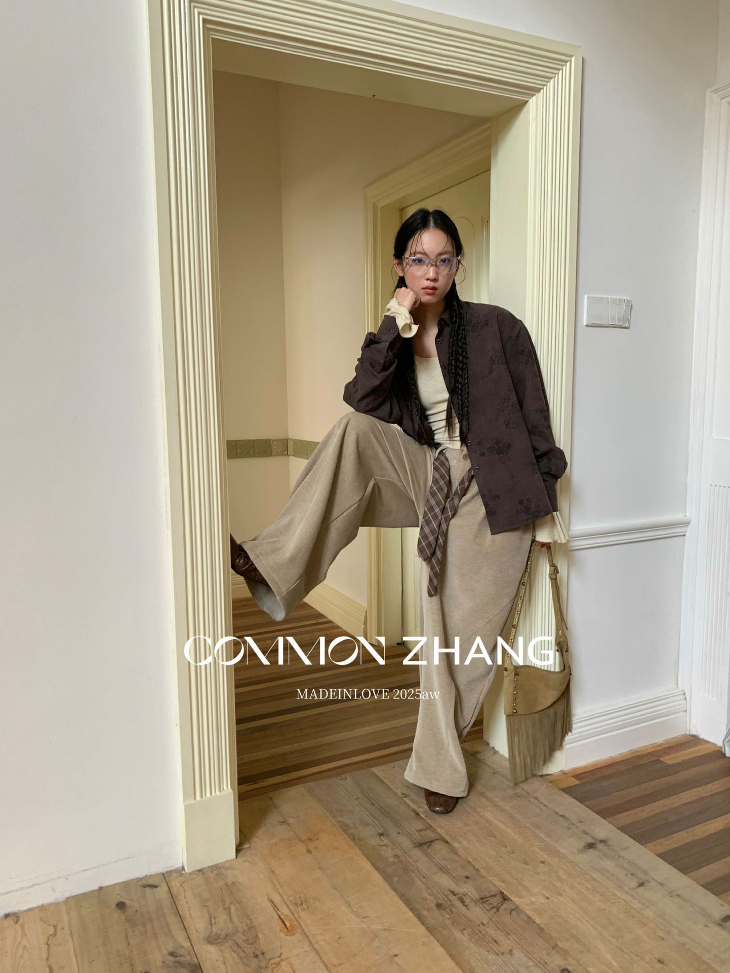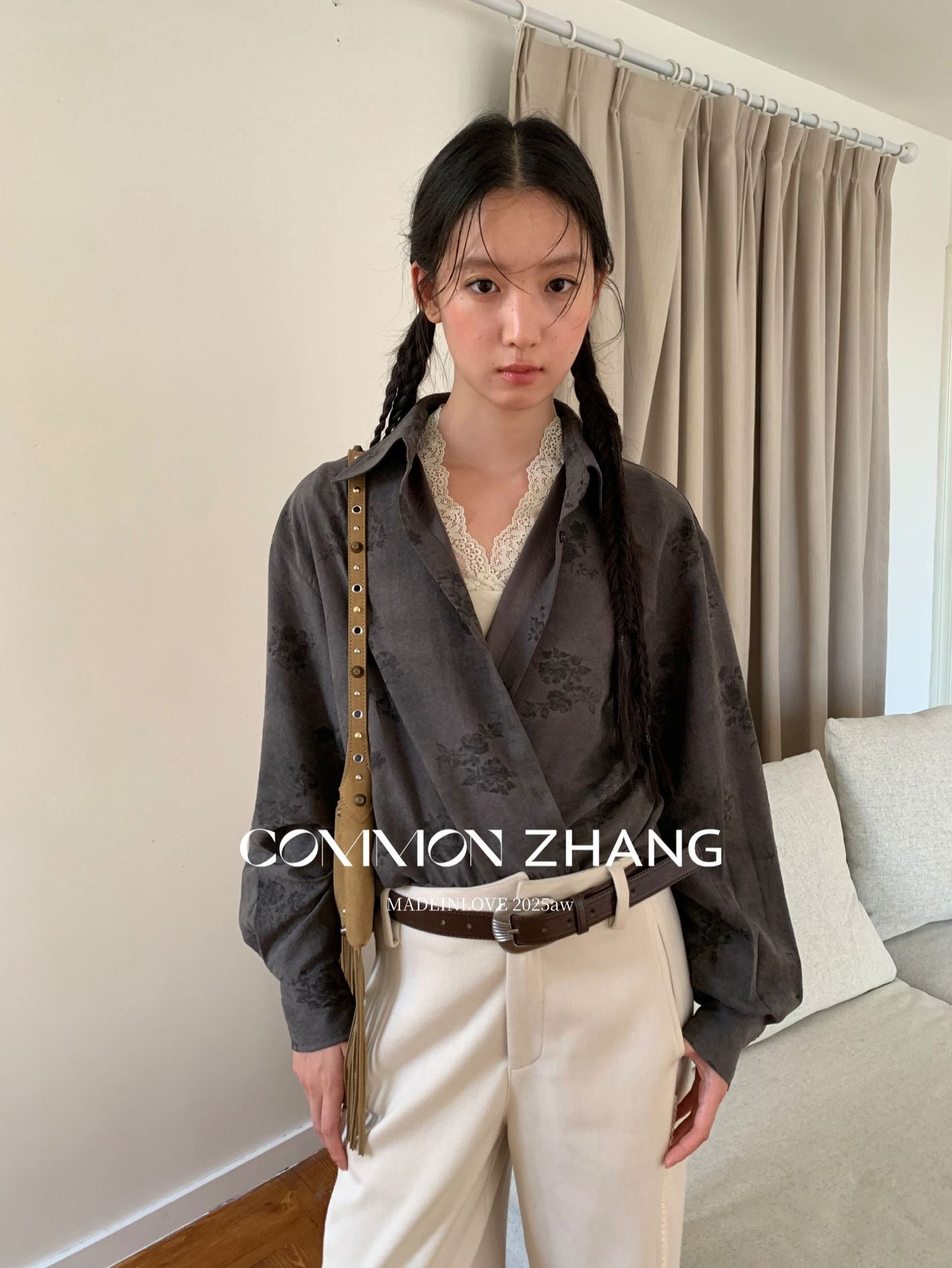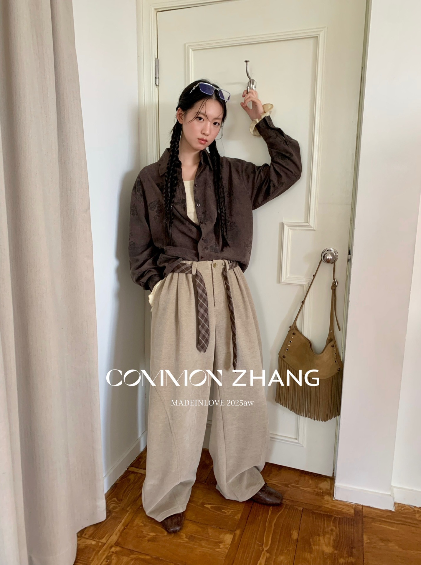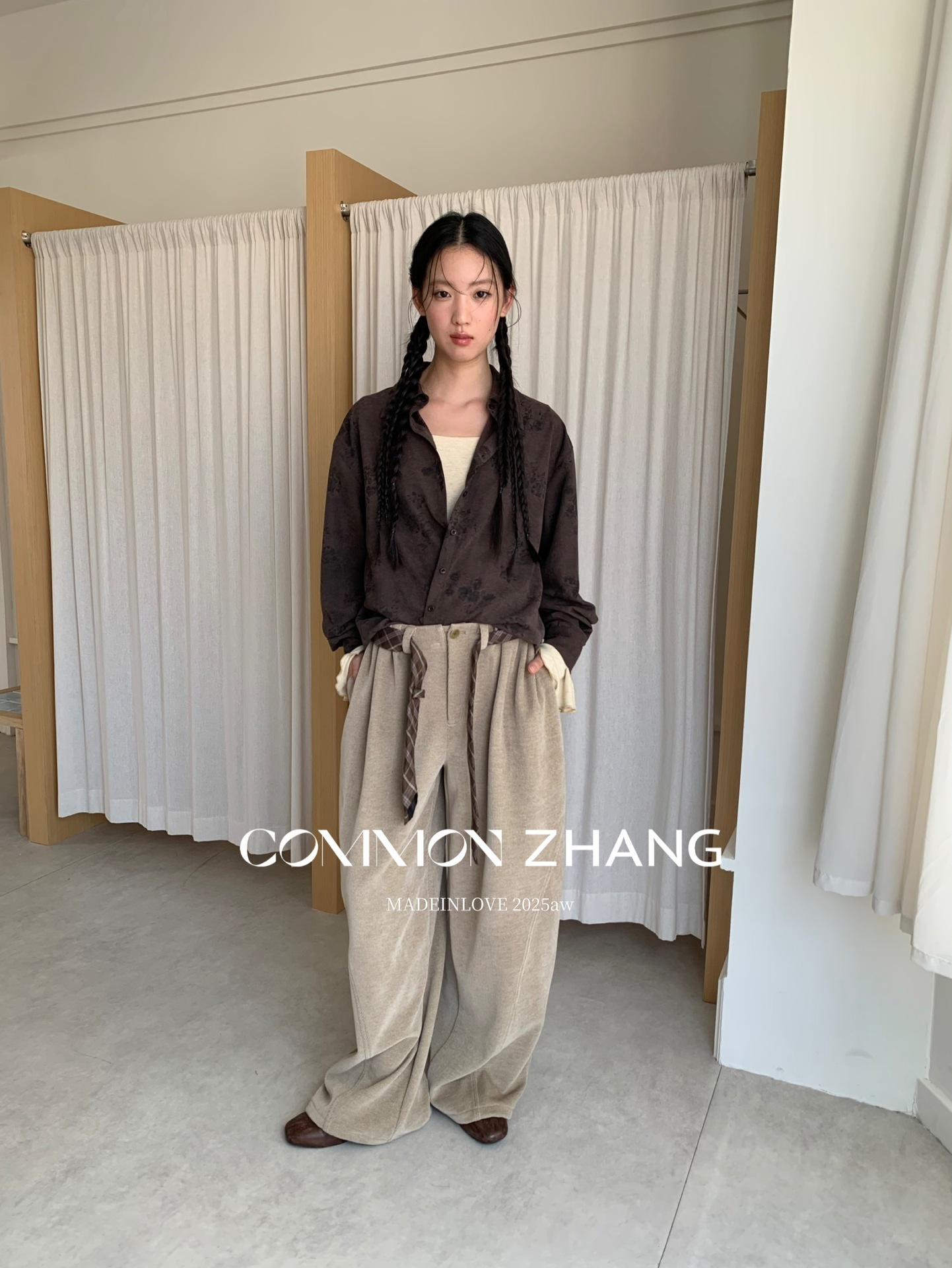 *o-ha-you*【FCZB403062】秋輕熟風復古印花寬鬆休閒襯衫女中長款深色上衣-3色