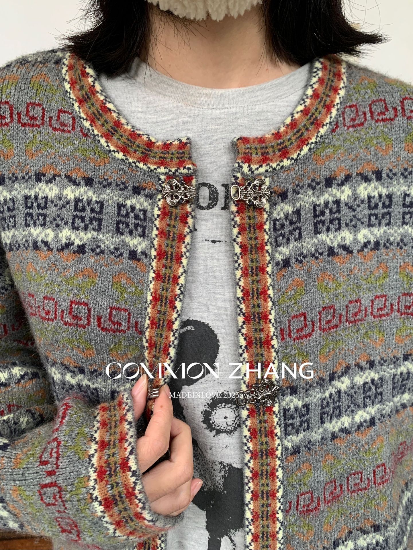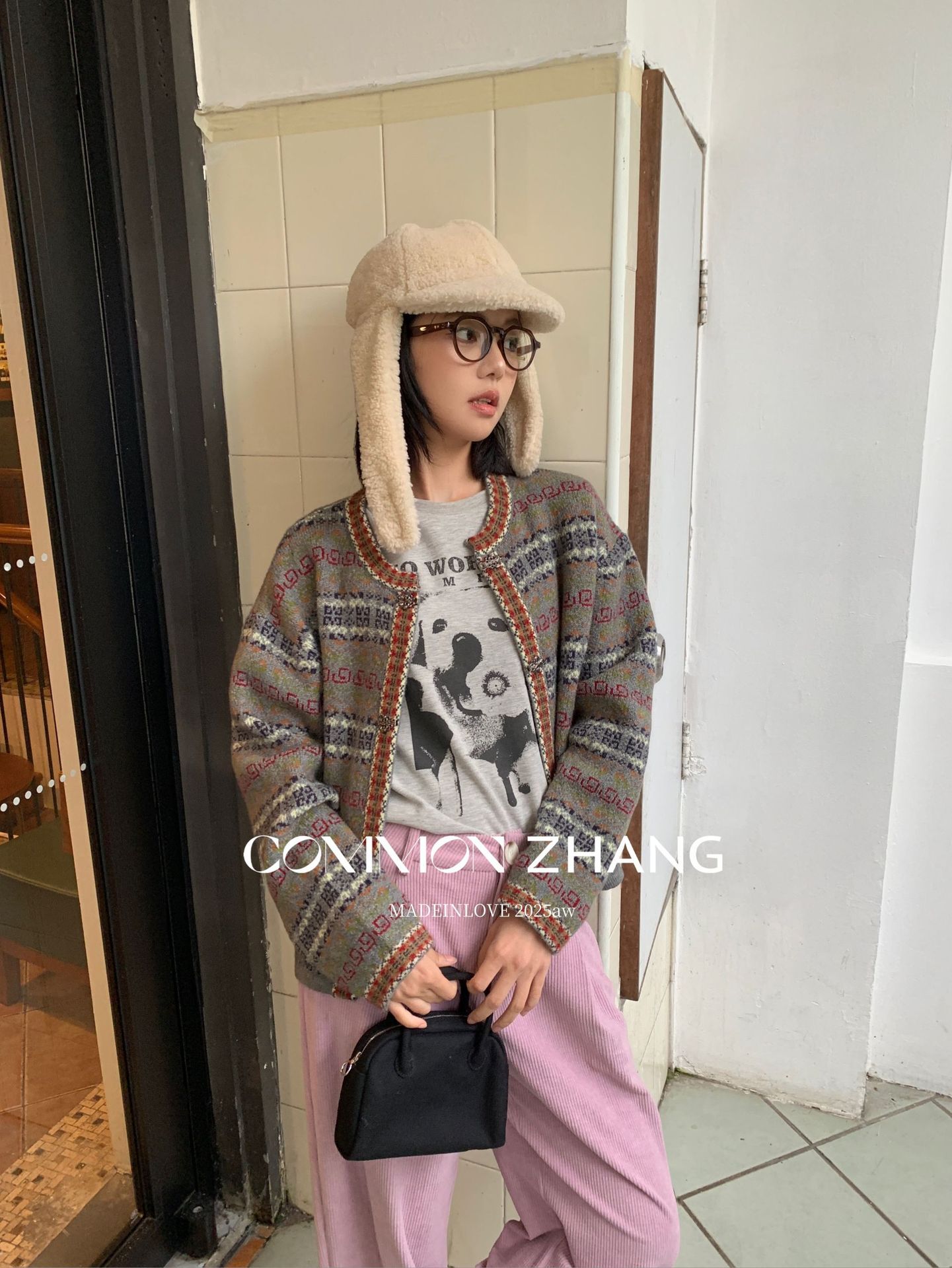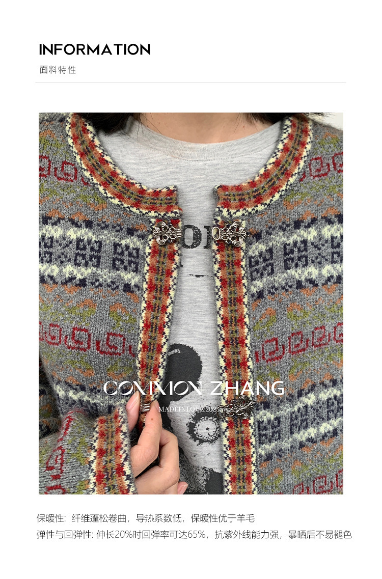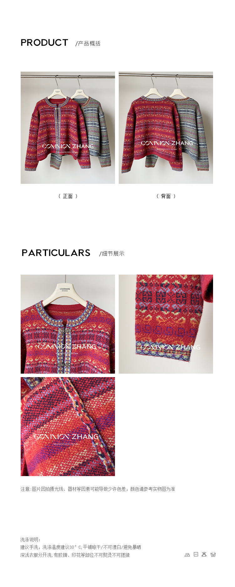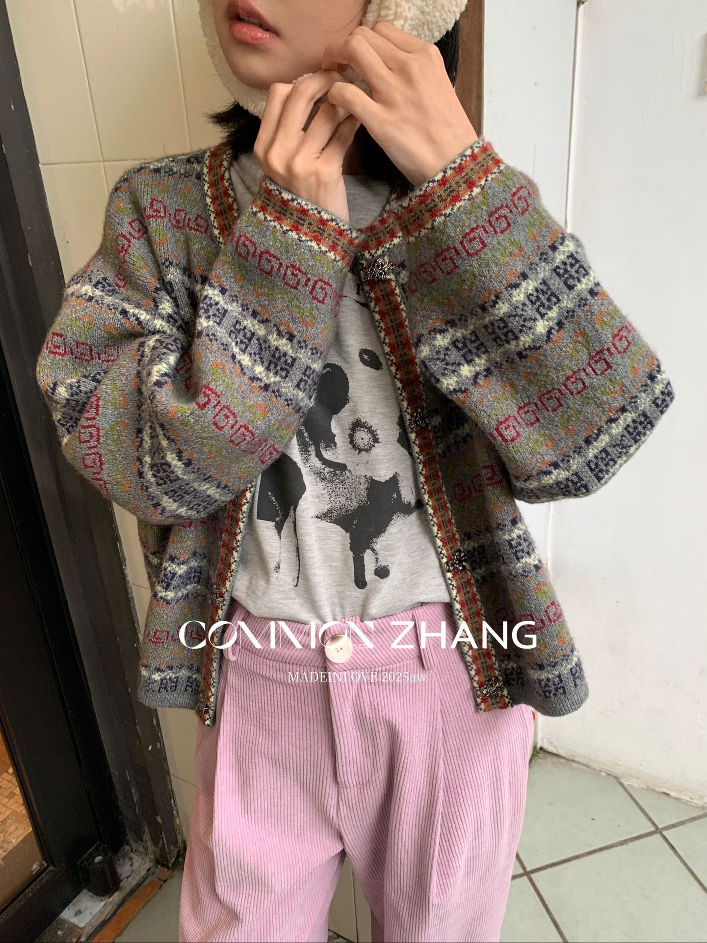 *o-ha-you*【FCZCB045206】秋冬民族風復古提花毛衣短外套女百搭休閒針織衫-2色