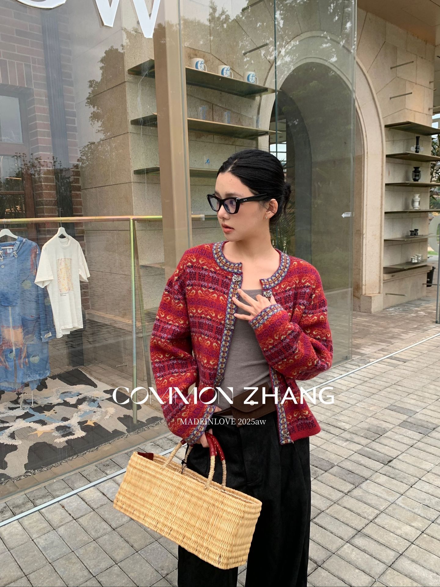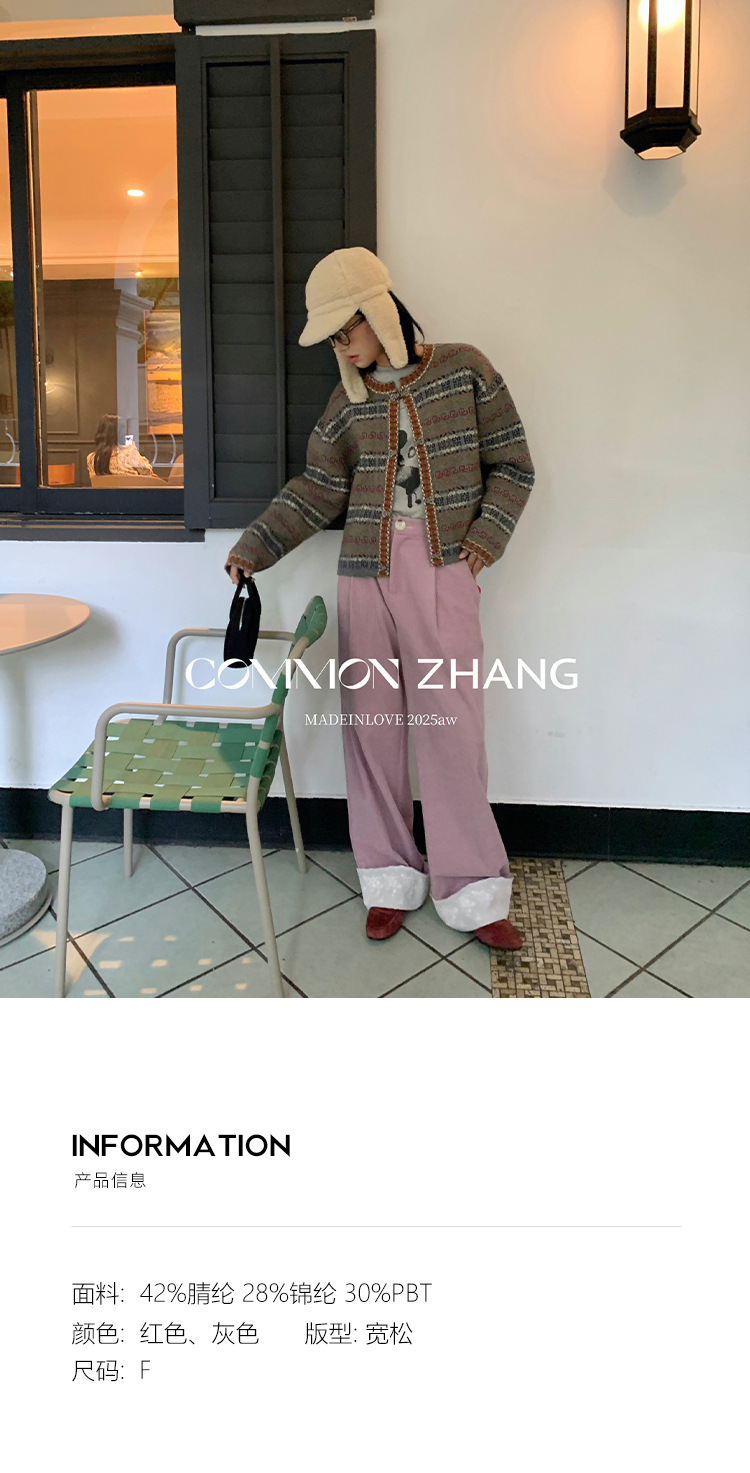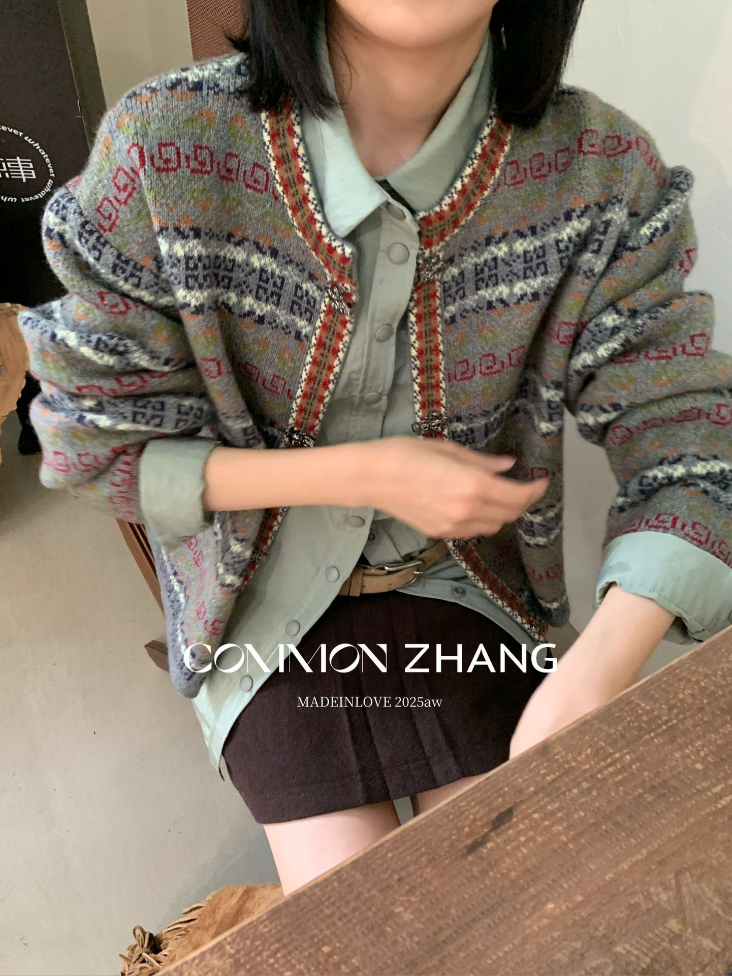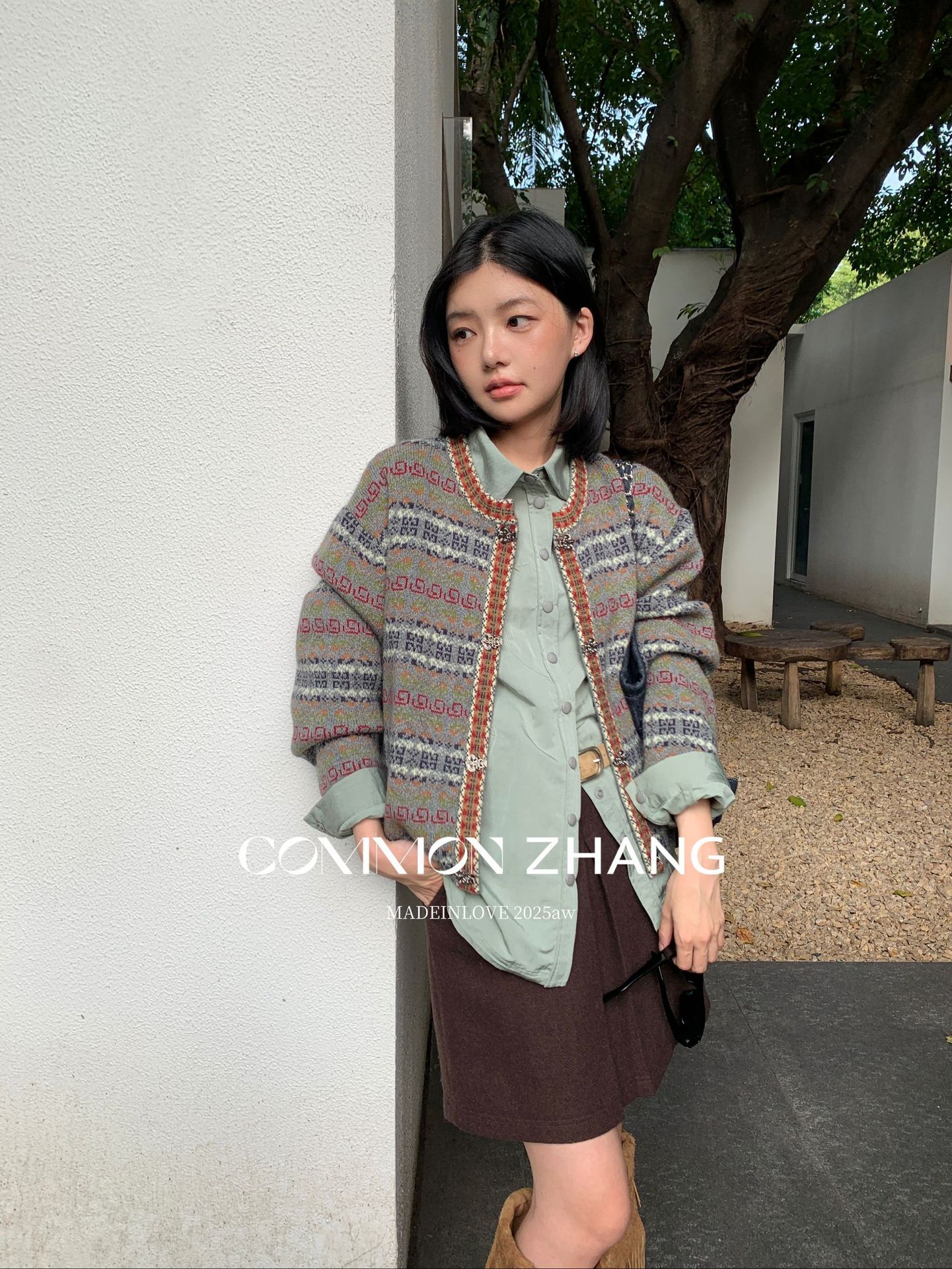 *o-ha-you*【FCZCB045206】秋冬民族風復古提花毛衣短外套女百搭休閒針織衫-2色