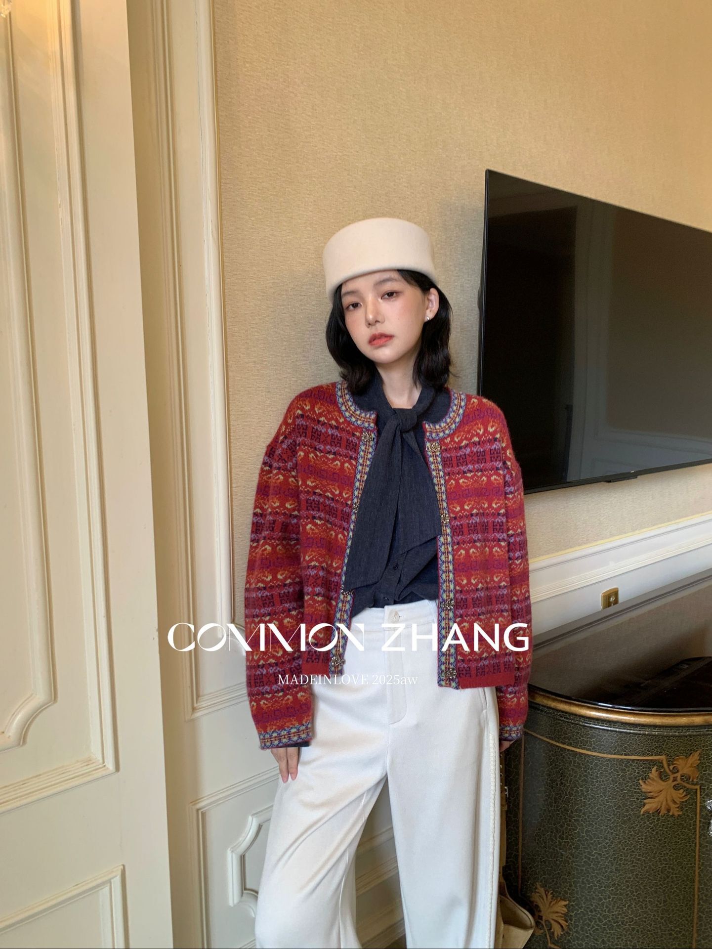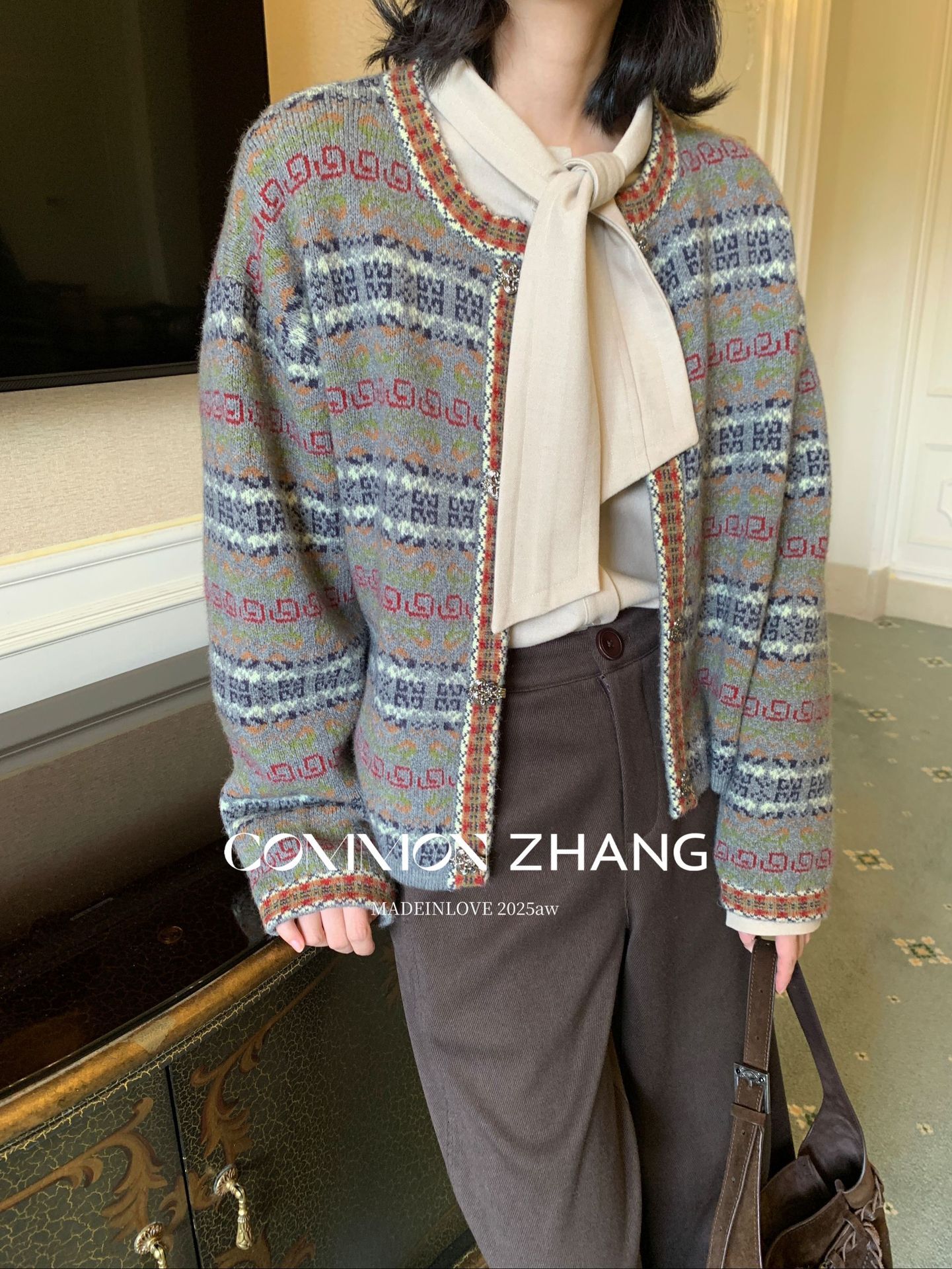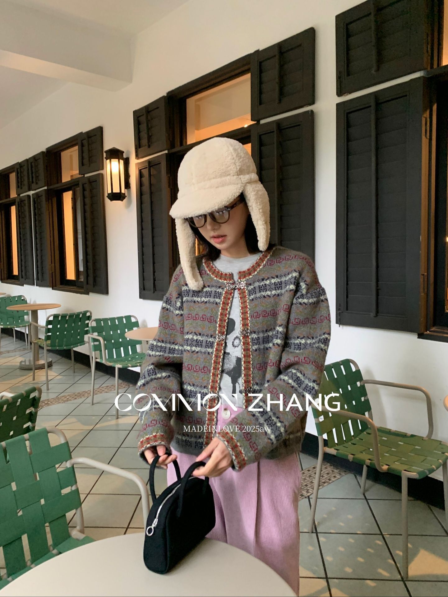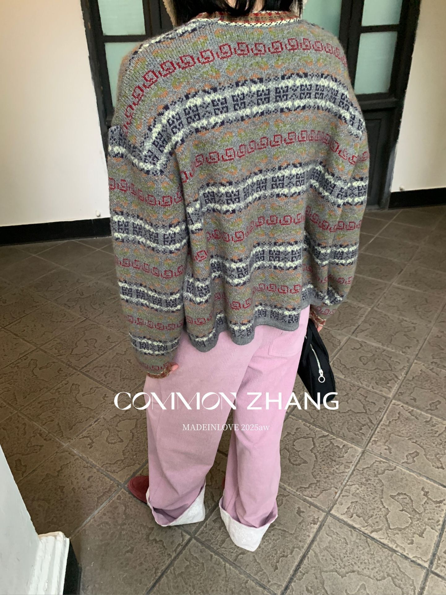 *o-ha-you*【FCZCB045206】秋冬民族風復古提花毛衣短外套女百搭休閒針織衫-2色