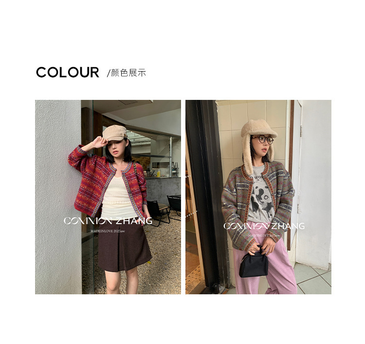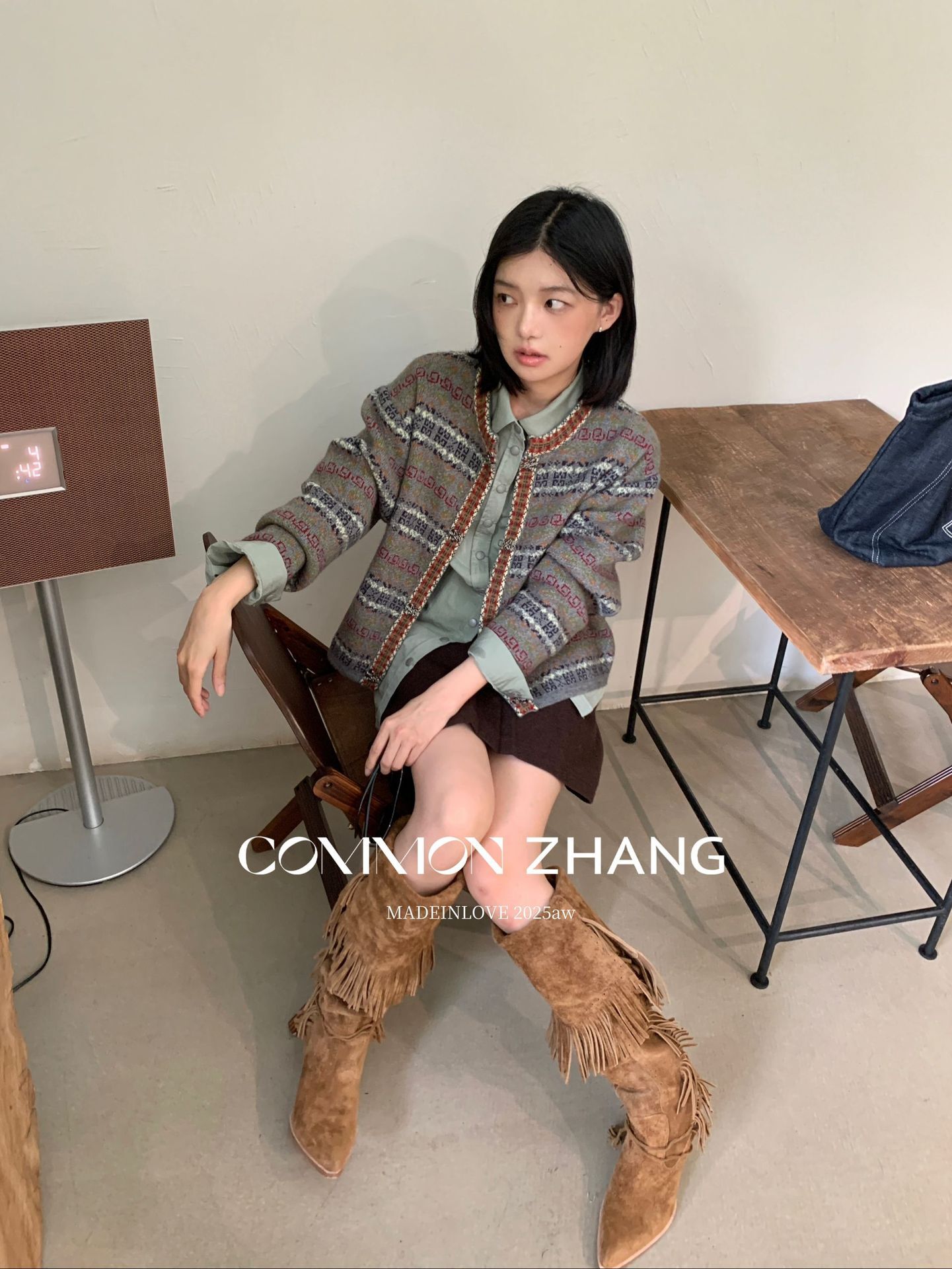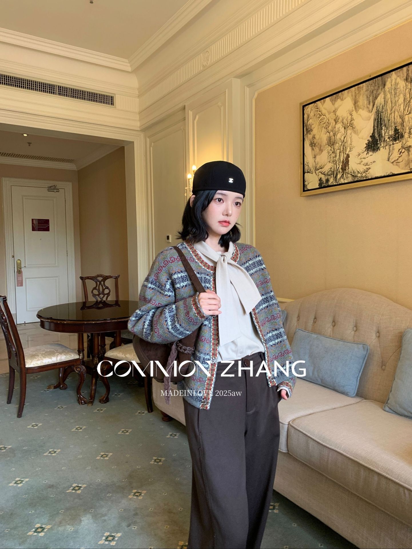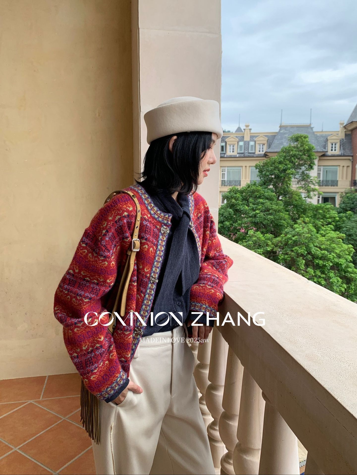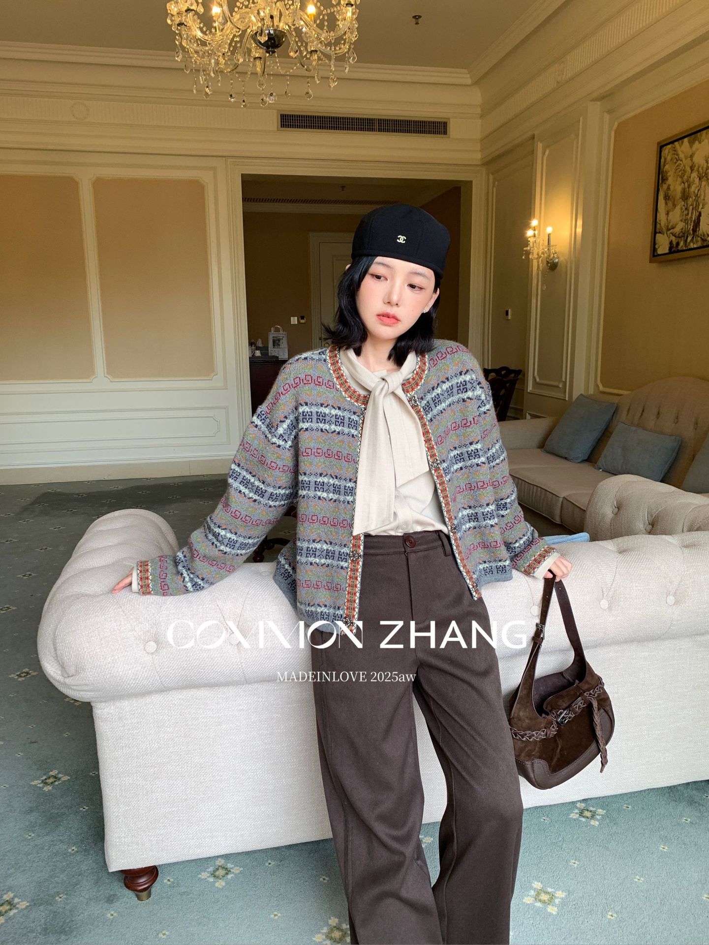 *o-ha-you*【FCZCB045206】秋冬民族風復古提花毛衣短外套女百搭休閒針織衫-2色