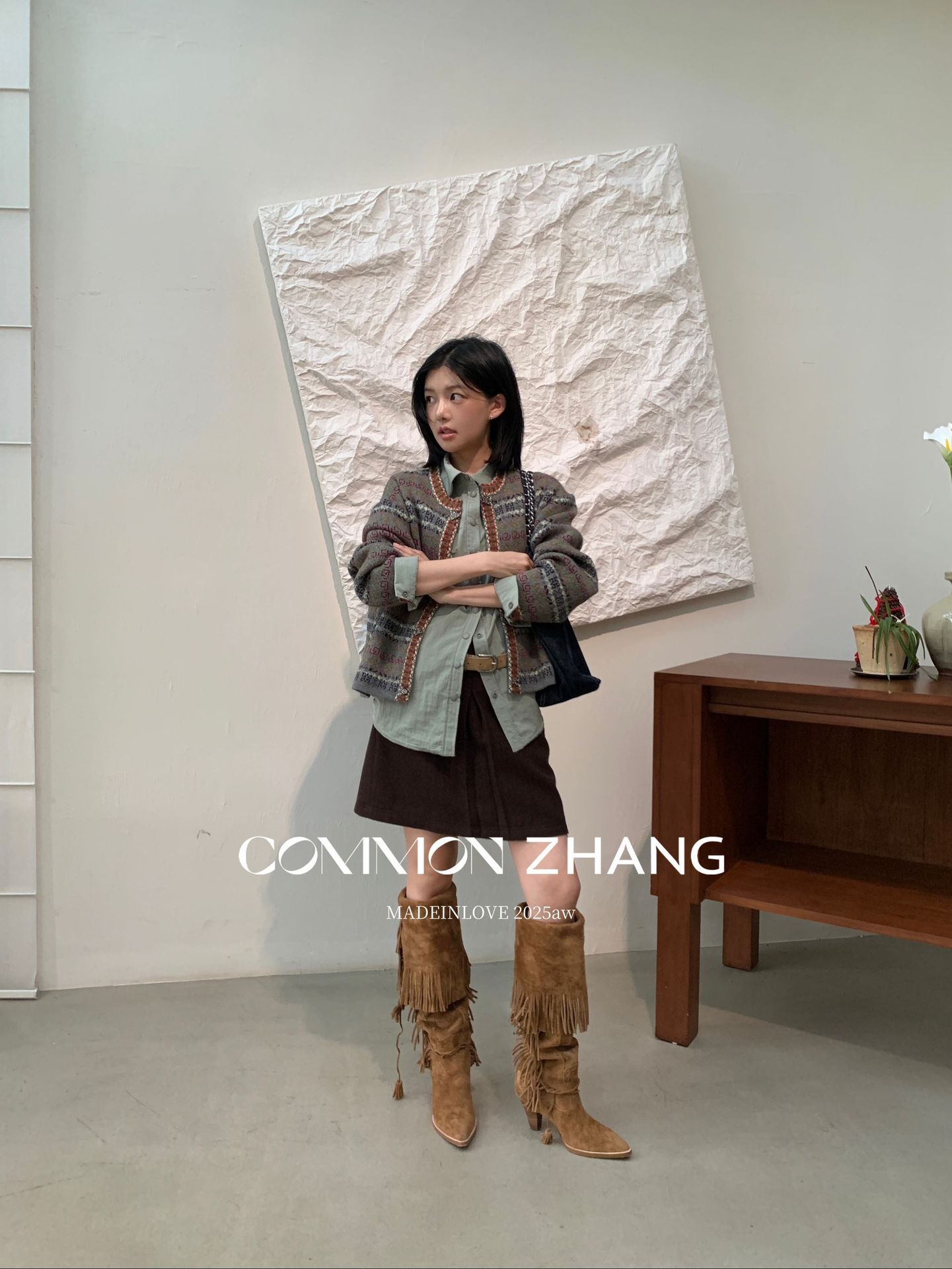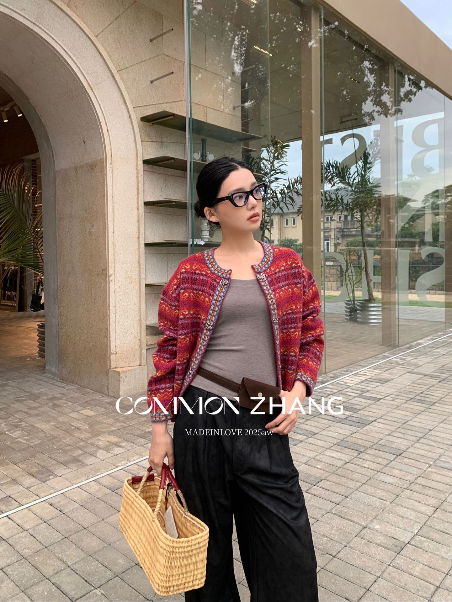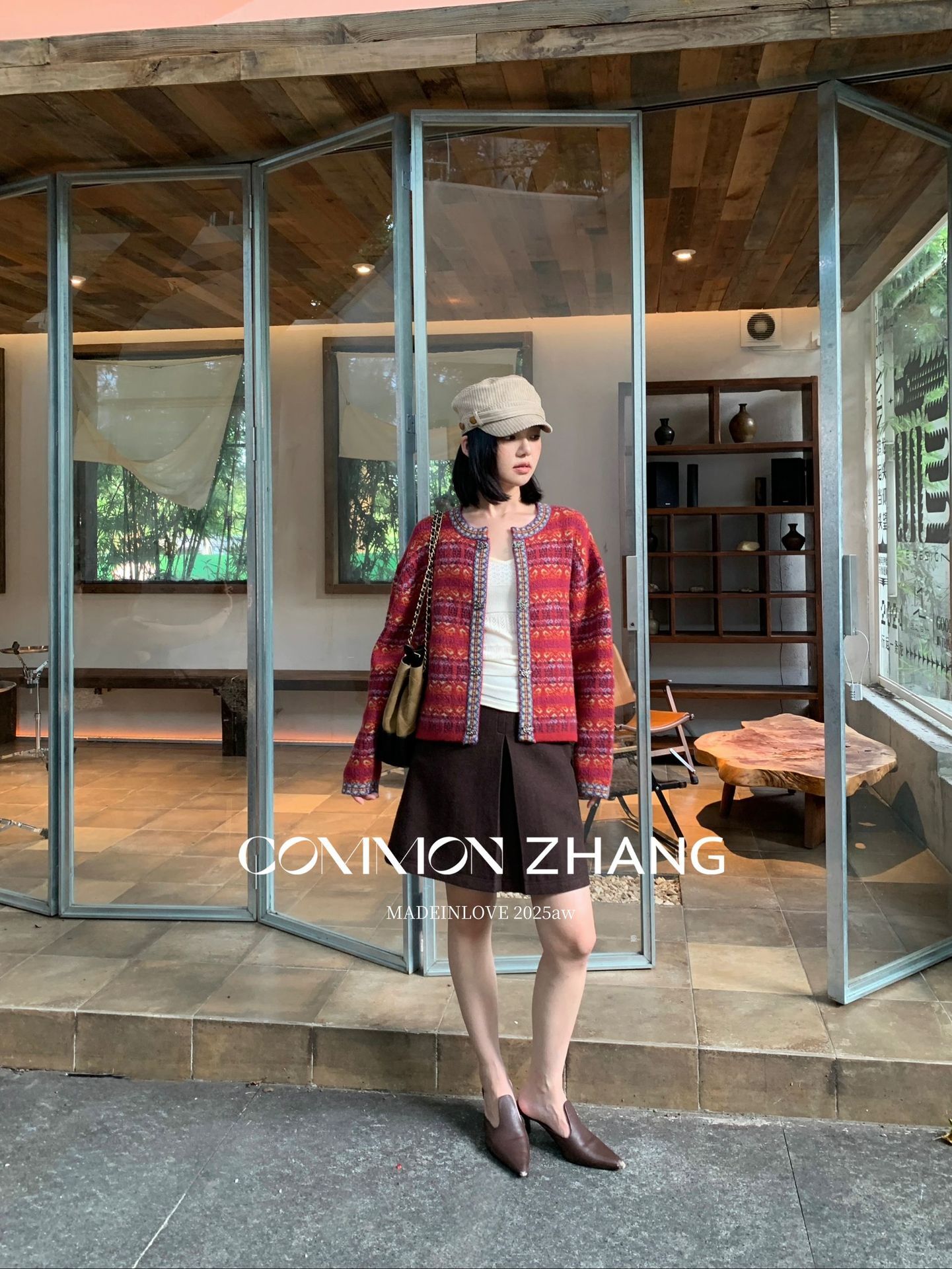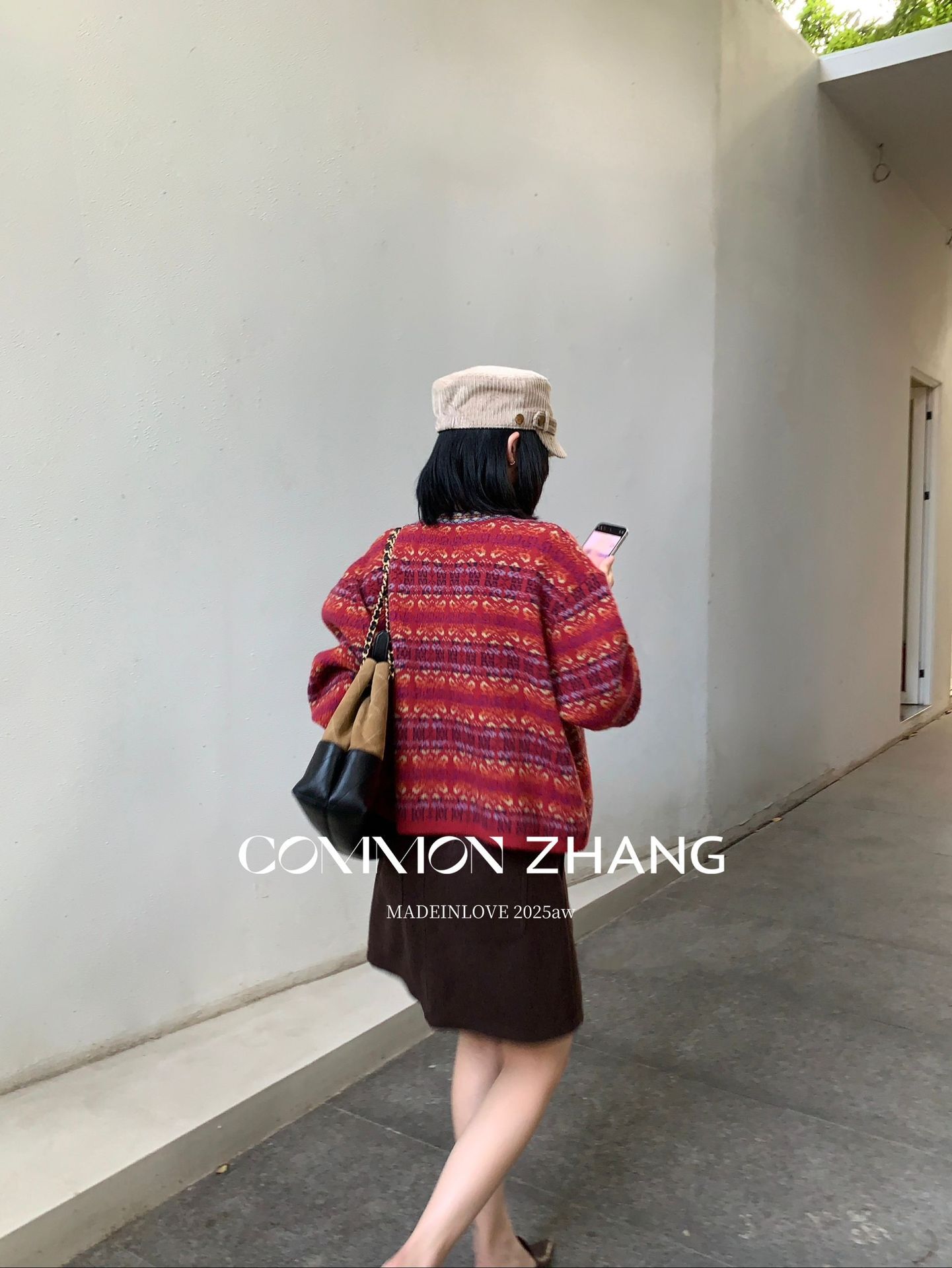 *o-ha-you*【FCZCB045206】秋冬民族風復古提花毛衣短外套女百搭休閒針織衫-2色