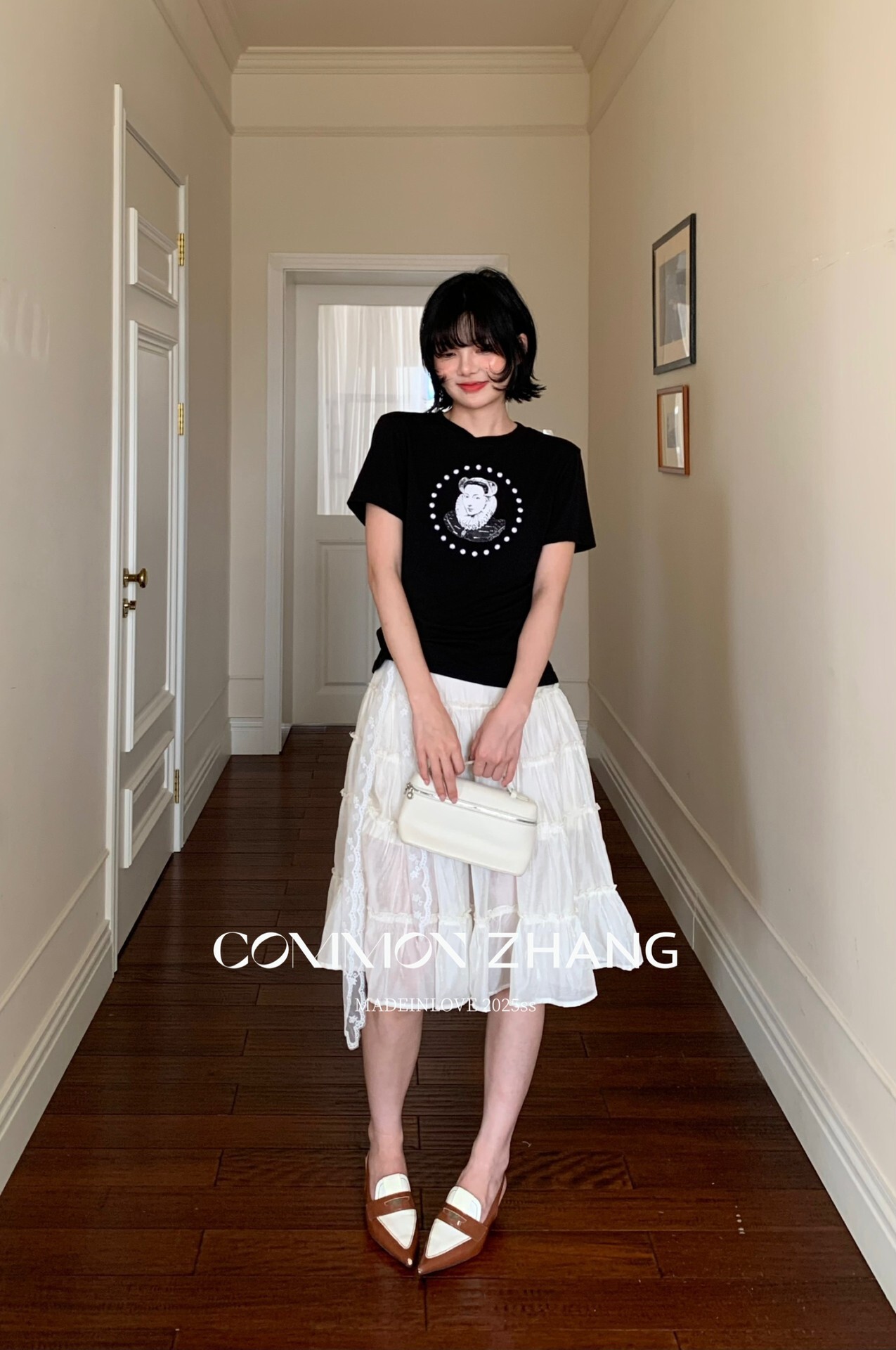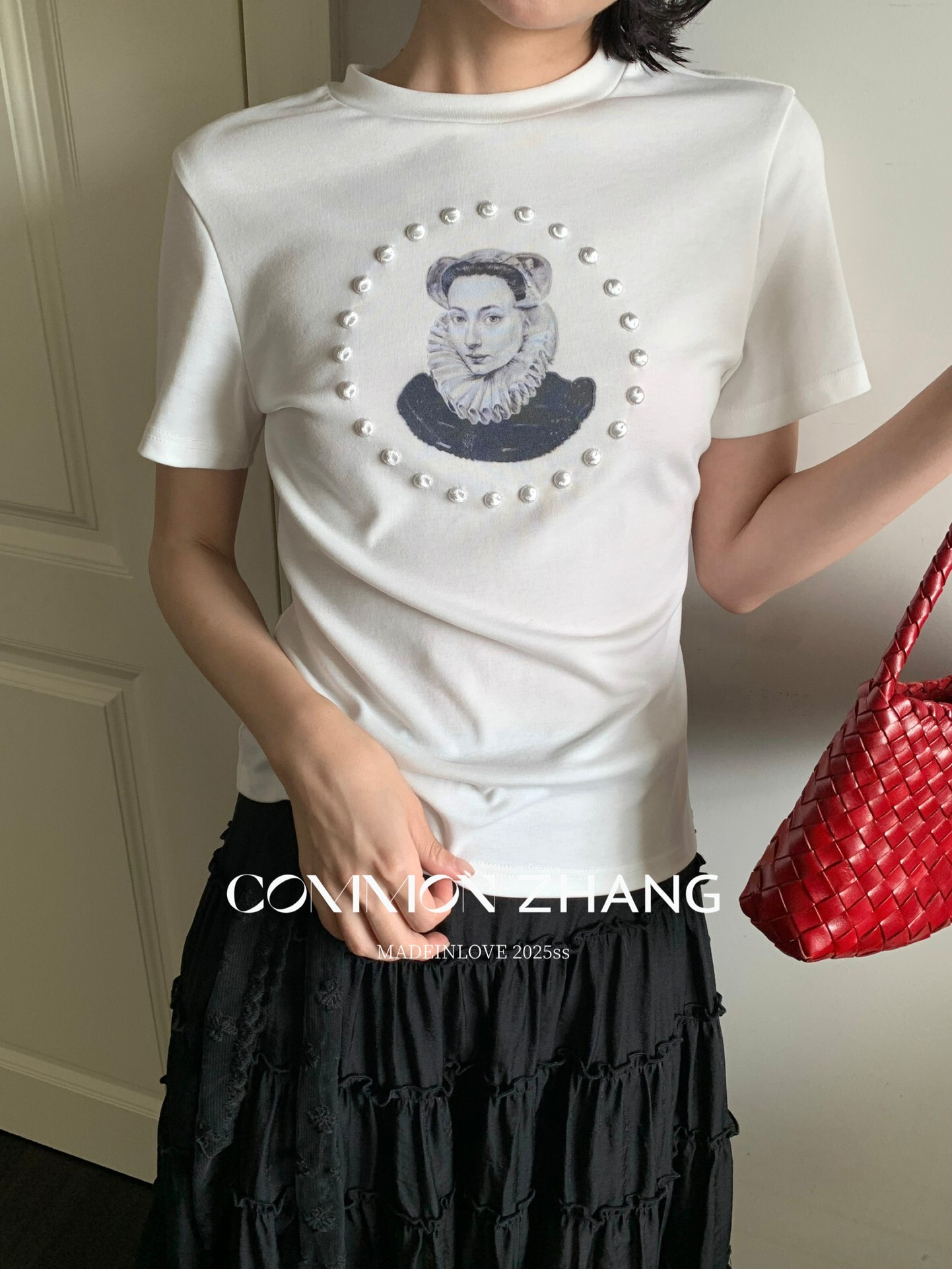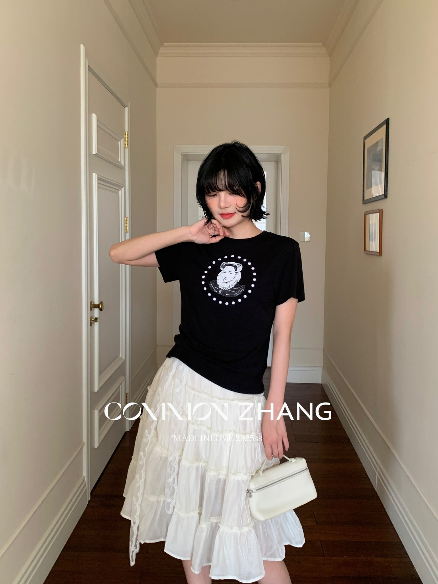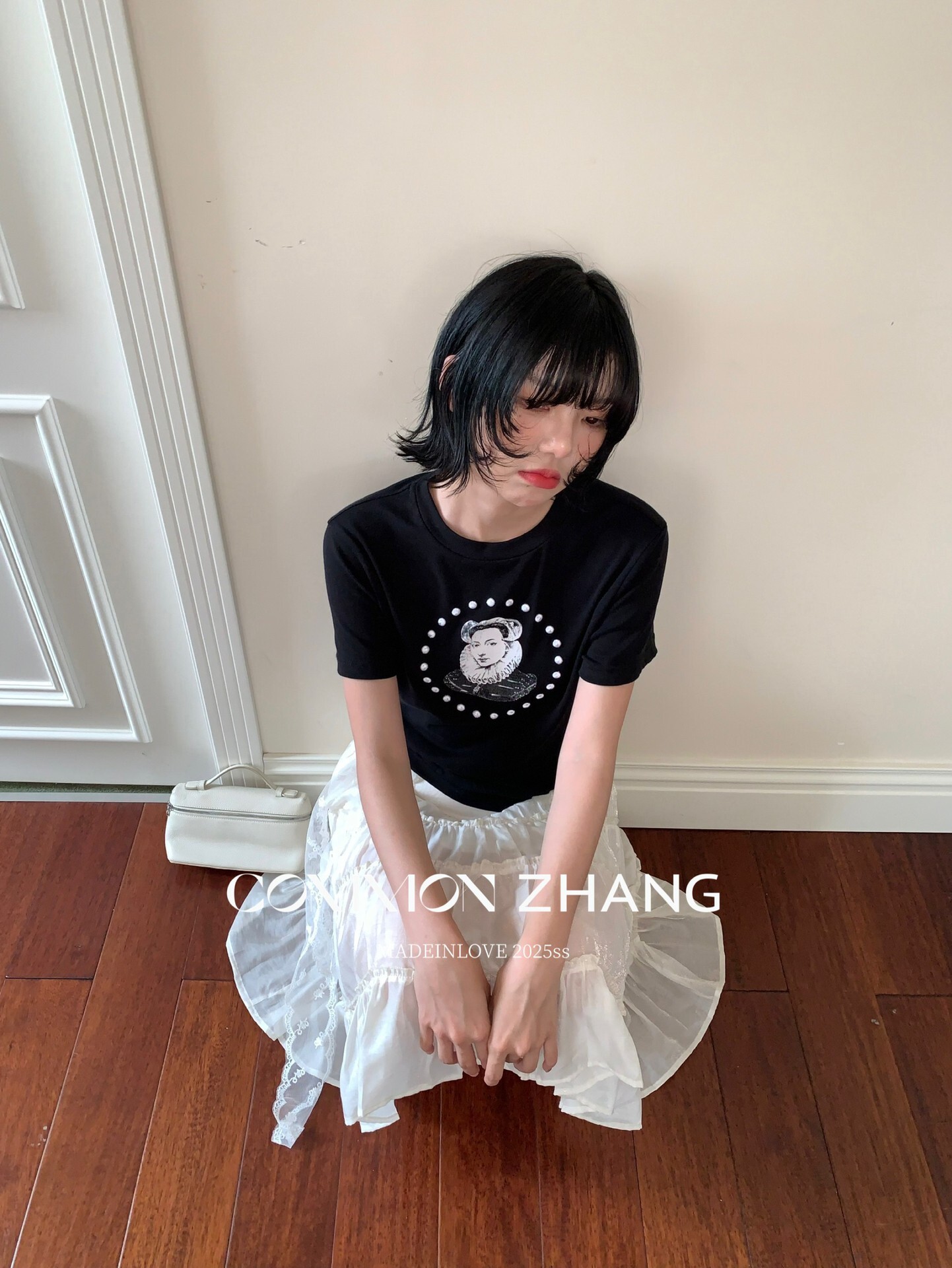 *o-ha-you*【FCZCB100235】夏季韓版人物印花繡花休閒慵懶正肩百搭短袖T恤-2色
