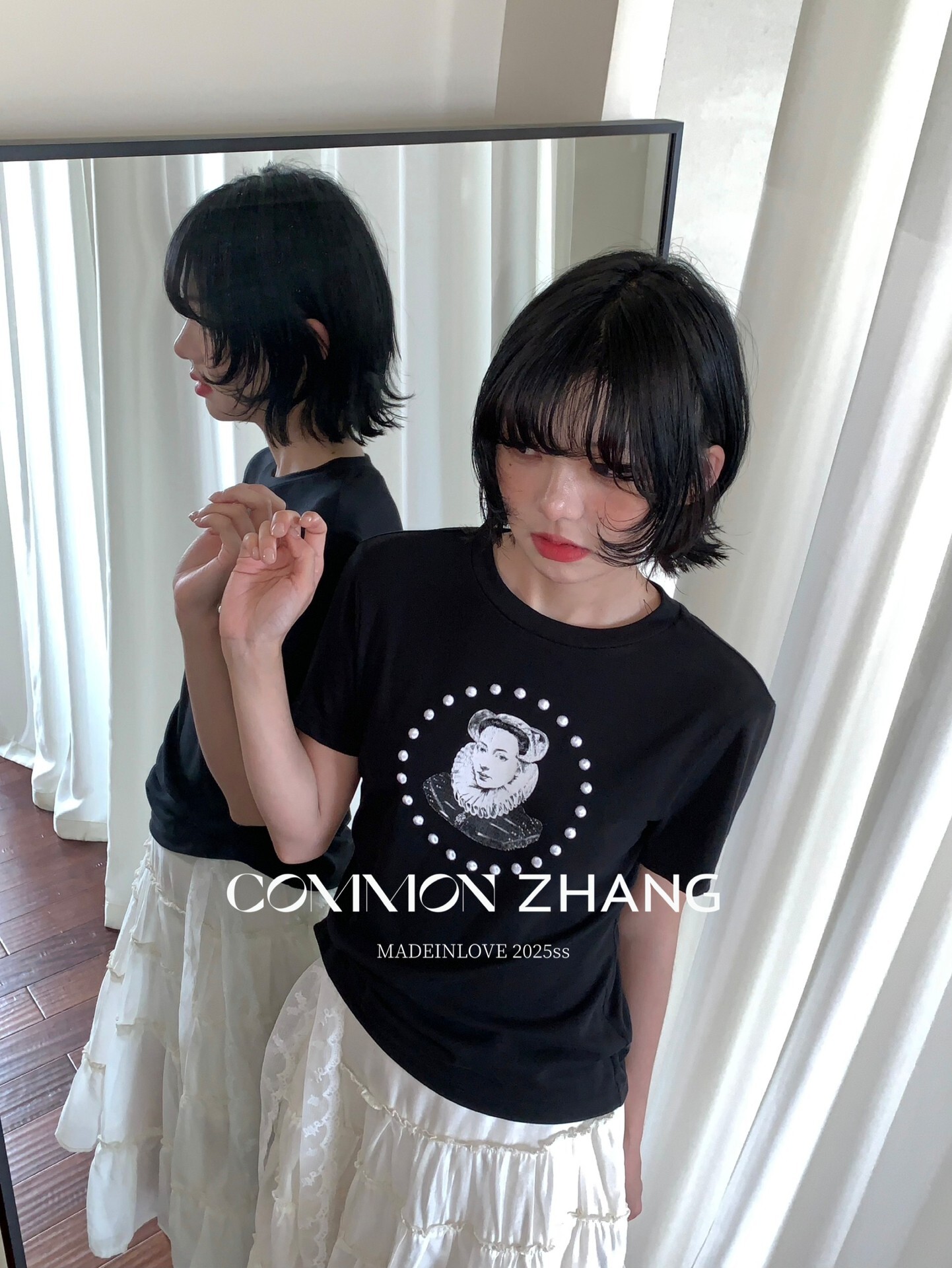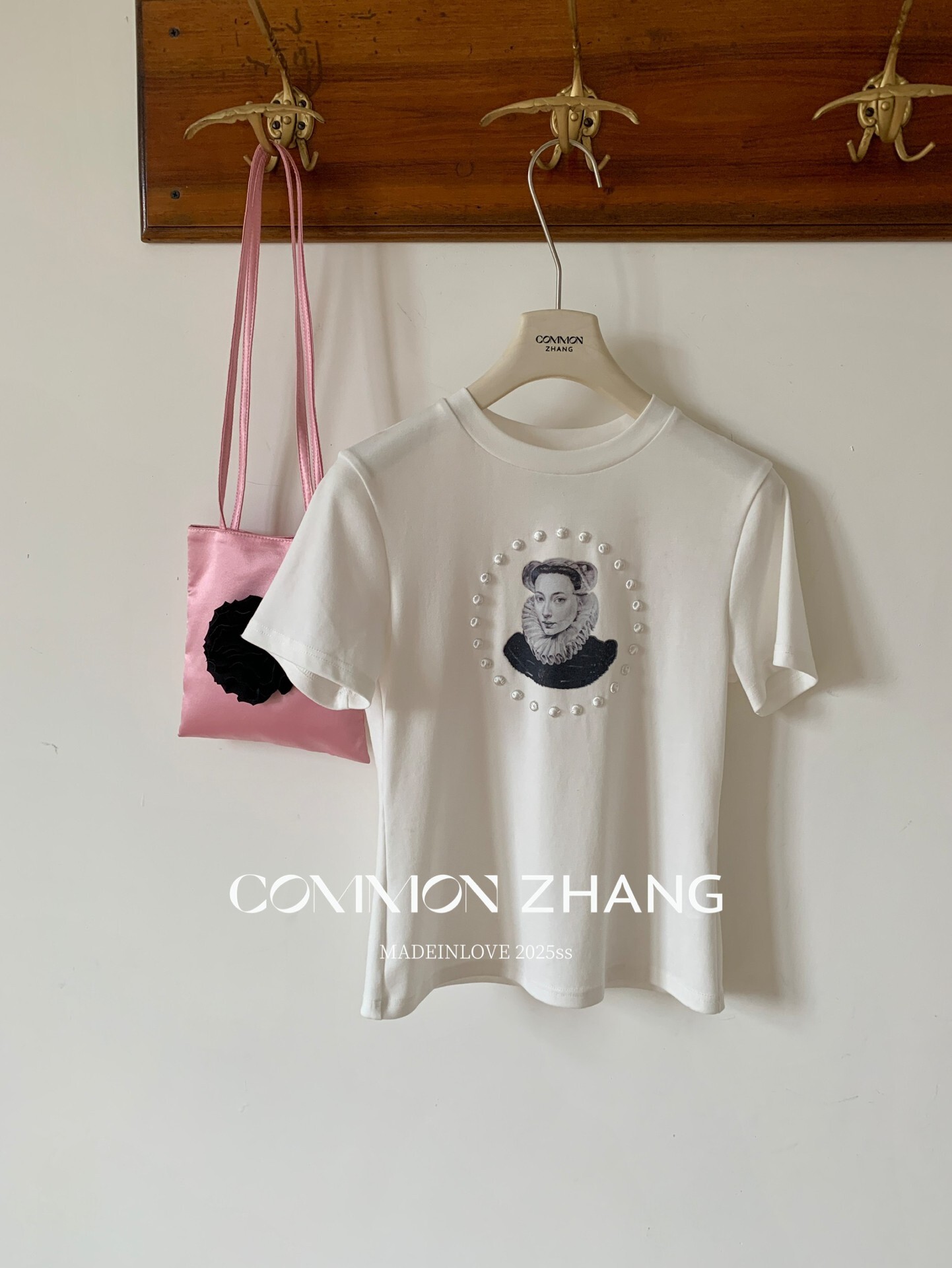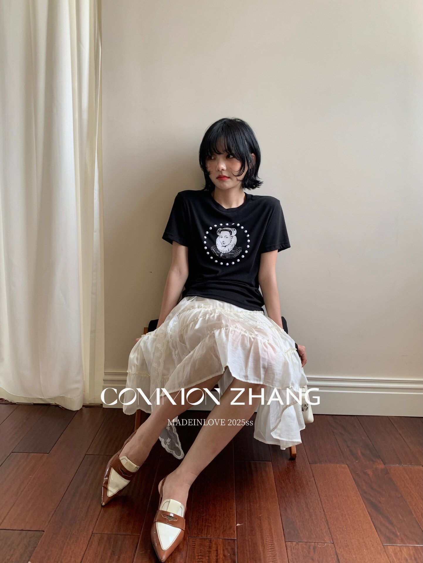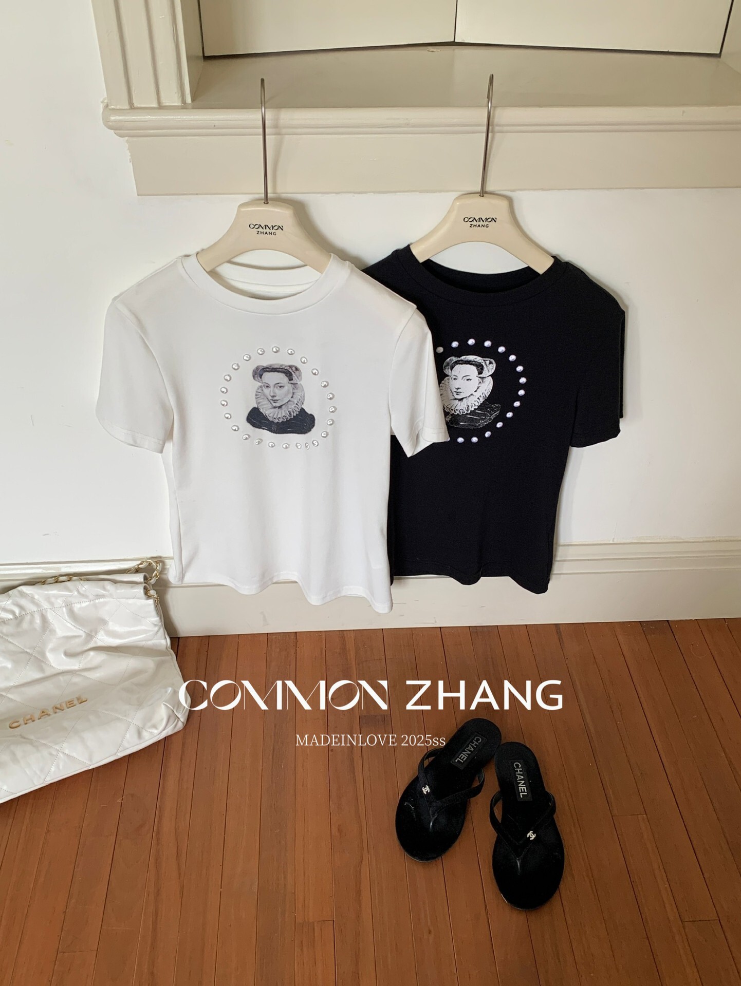 *o-ha-you*【FCZCB100235】夏季韓版人物印花繡花休閒慵懶正肩百搭短袖T恤-2色