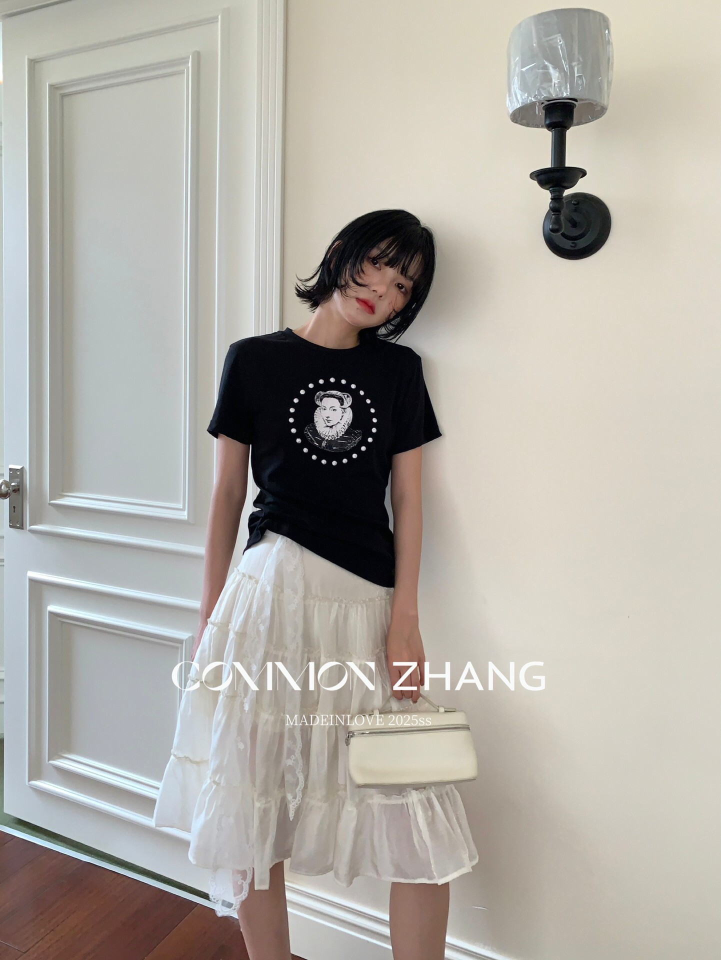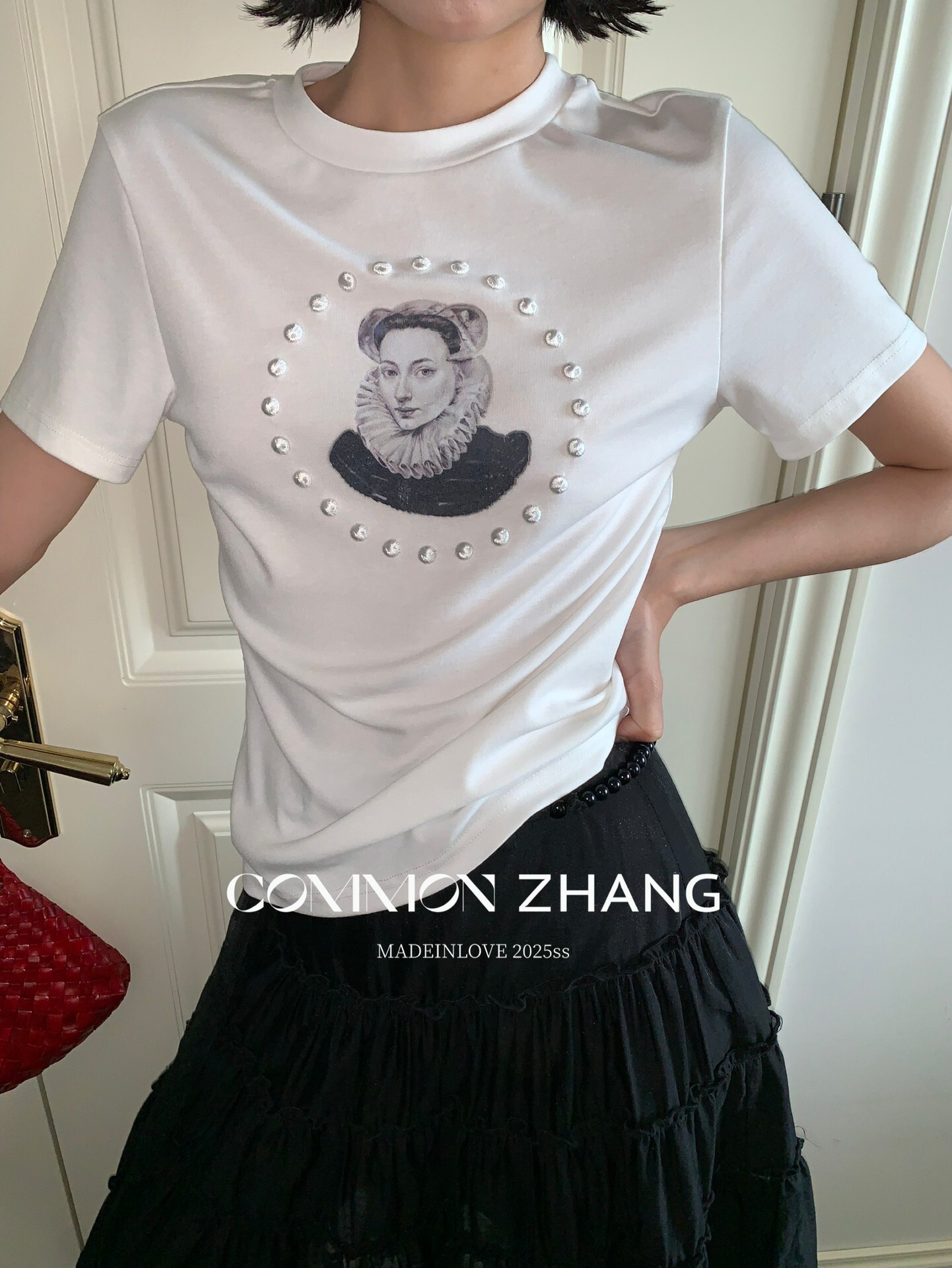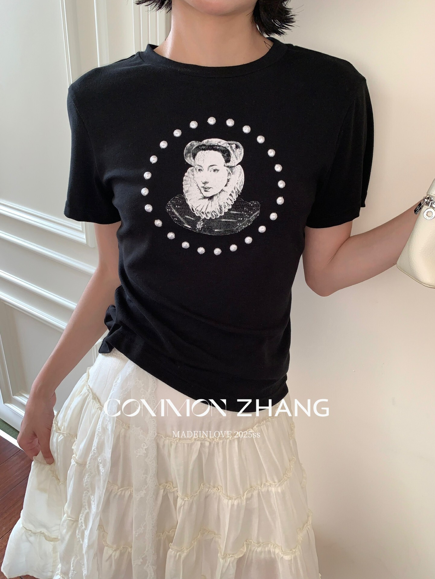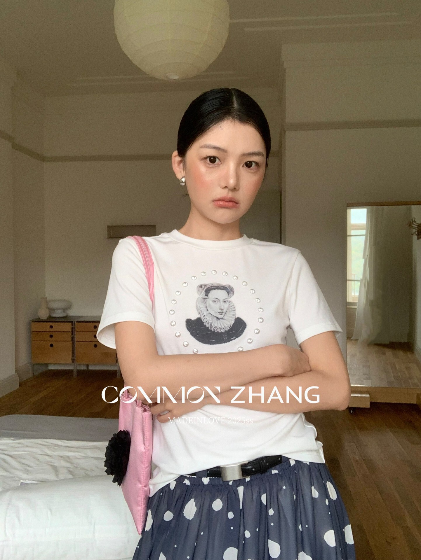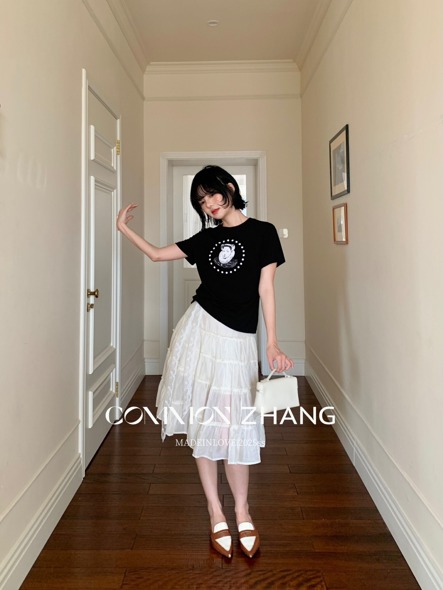 *o-ha-you*【FCZCB100235】夏季韓版人物印花繡花休閒慵懶正肩百搭短袖T恤-2色