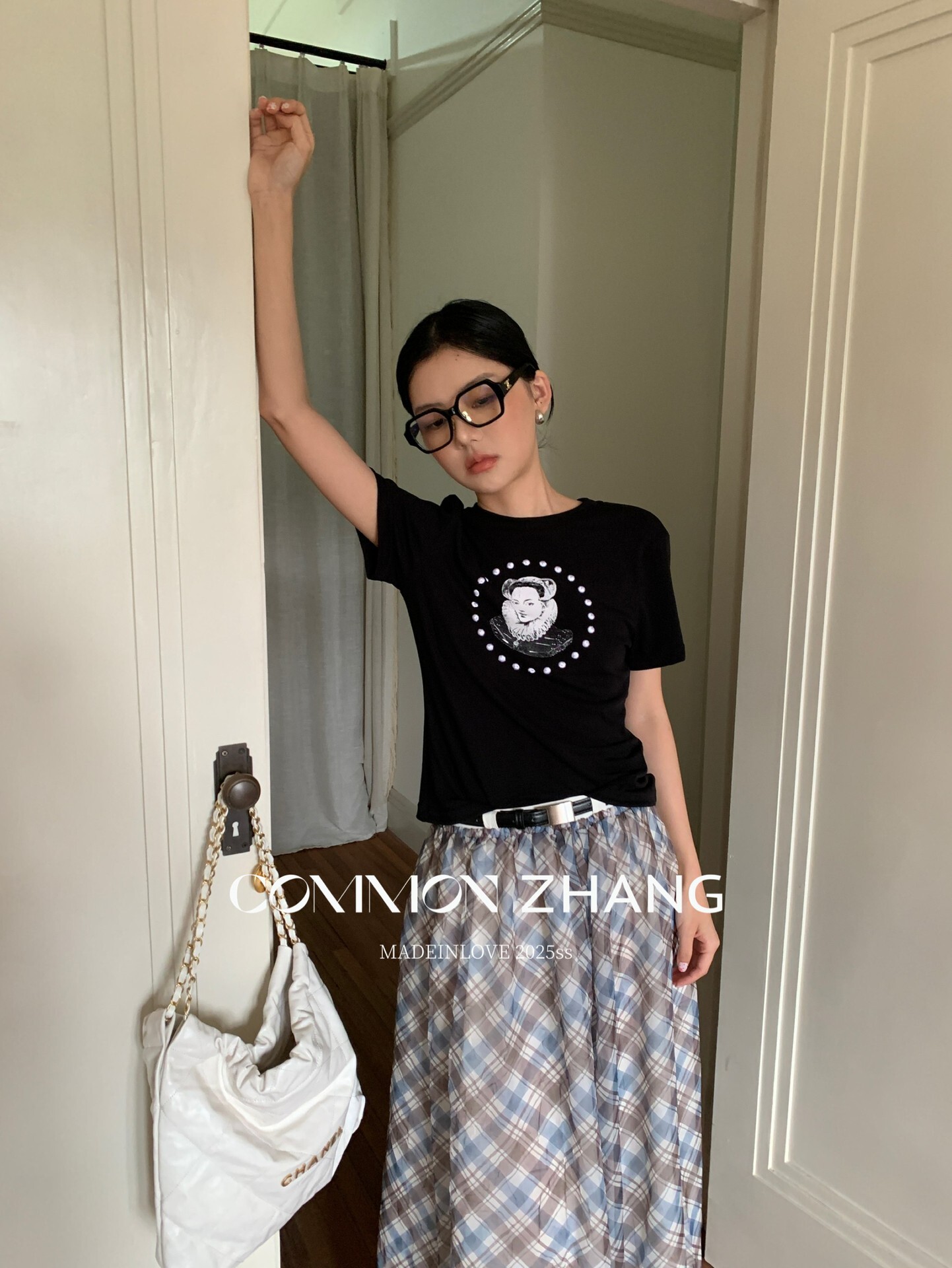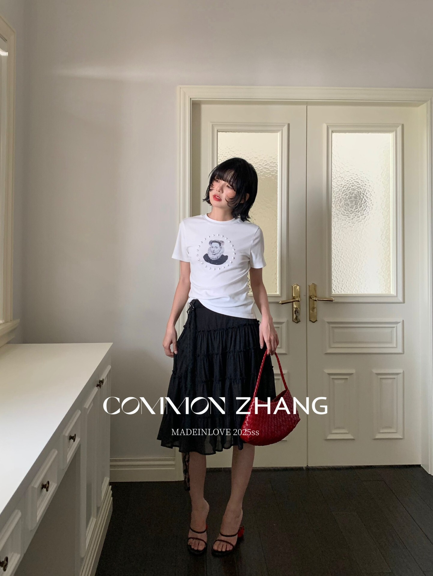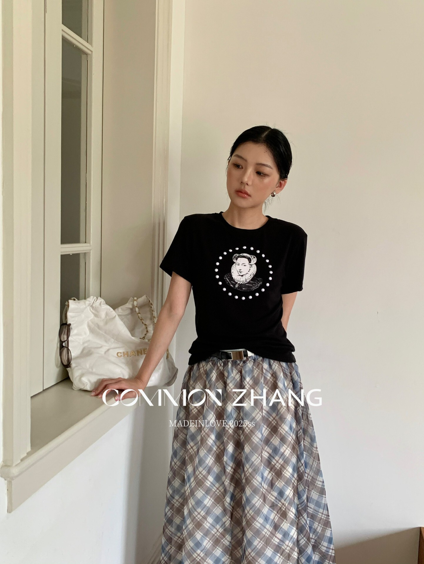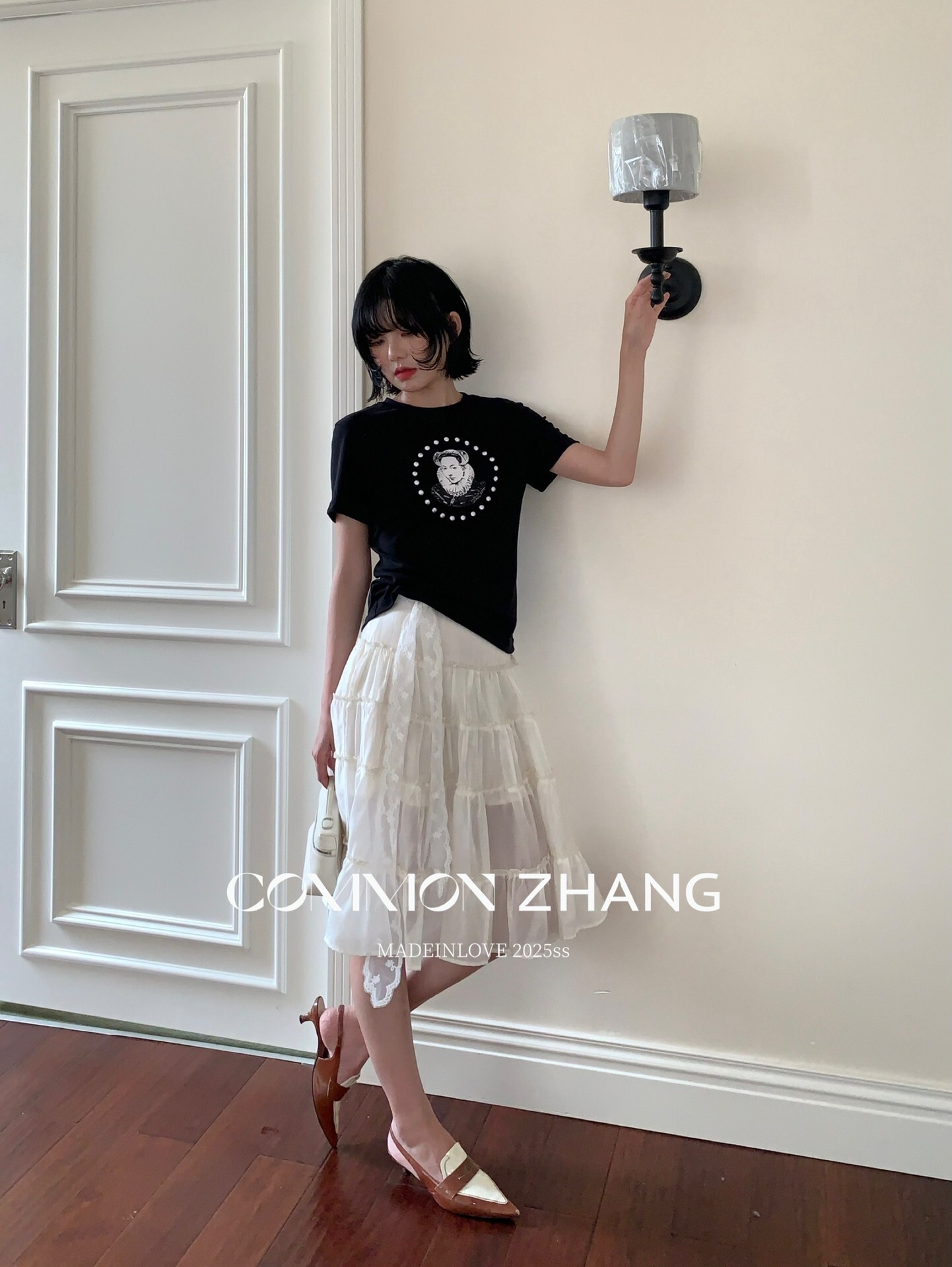 *o-ha-you*【FCZCB100235】夏季韓版人物印花繡花休閒慵懶正肩百搭短袖T恤-2色