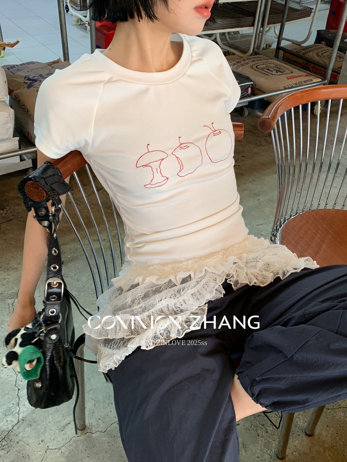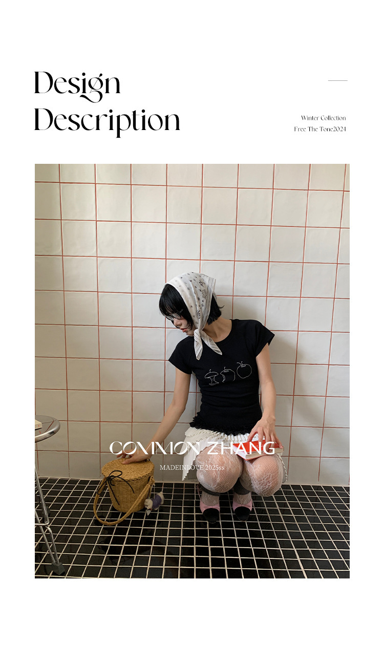 *o-ha-you*【FCZCB100475】夏季韓版水果刺繡小眾圓領正肩基礎顯瘦短袖T恤-3色-如有需要請先諮詢
