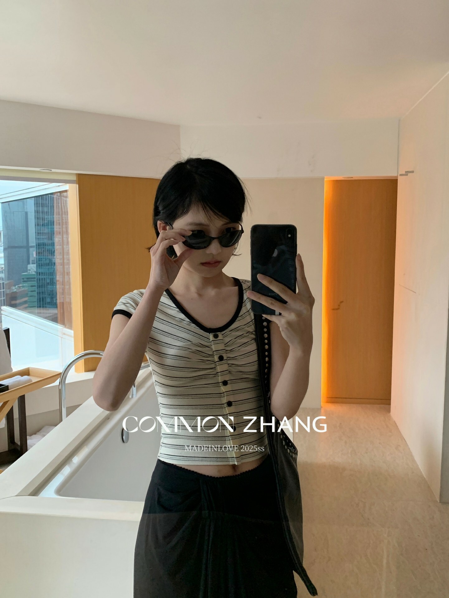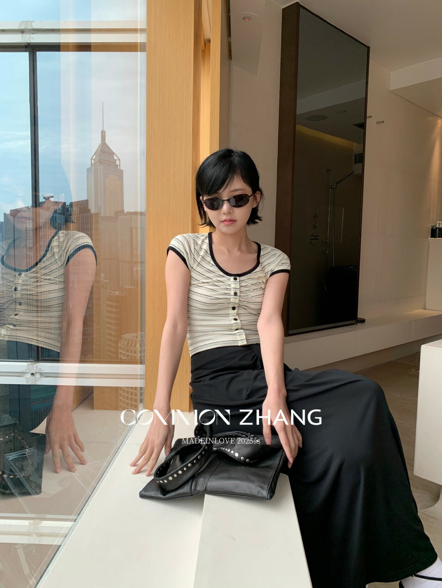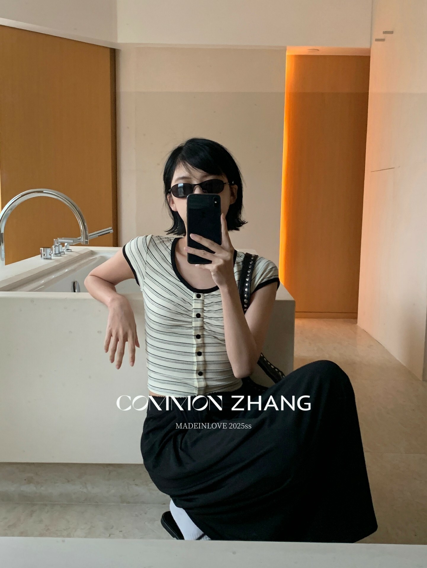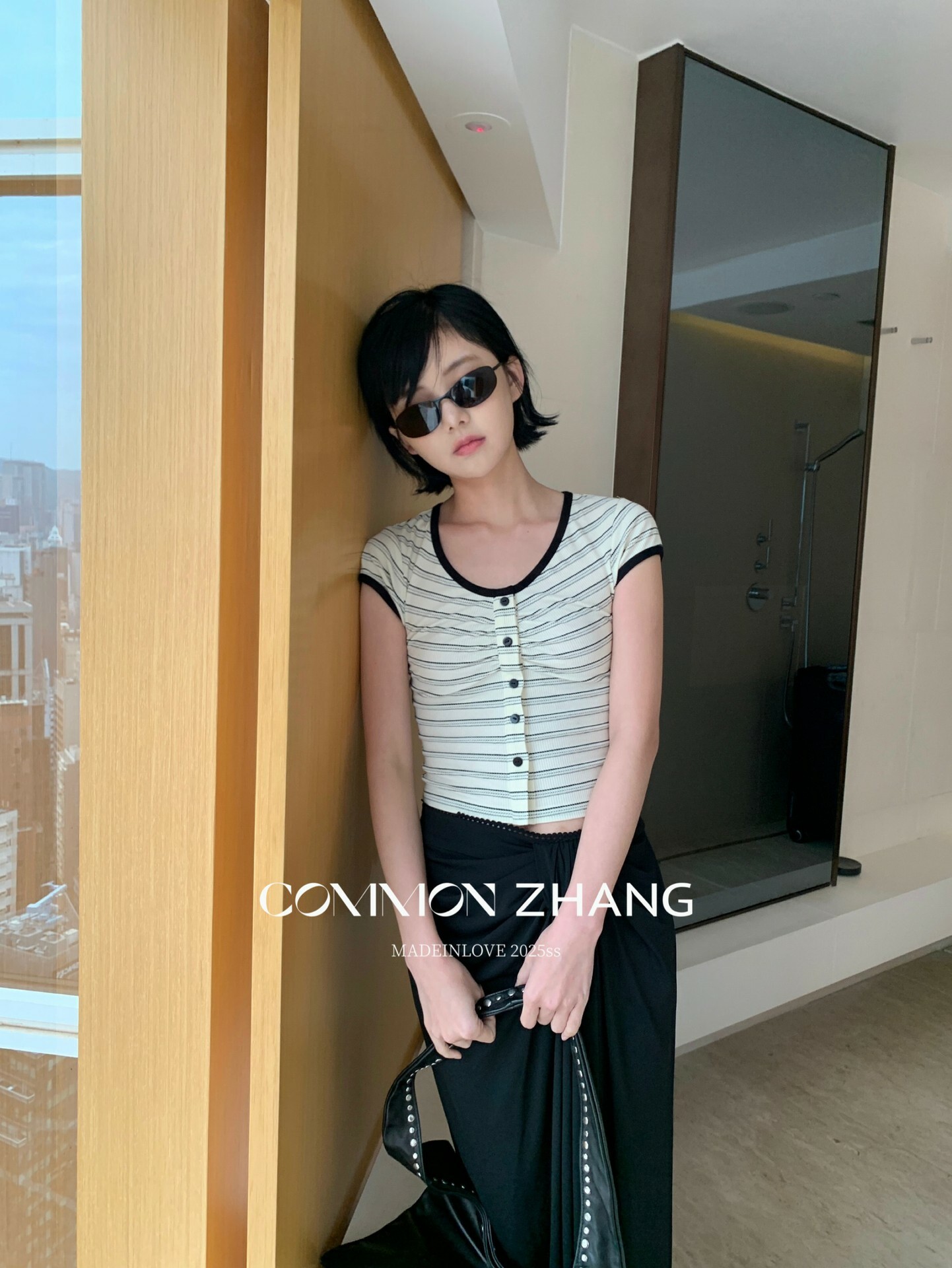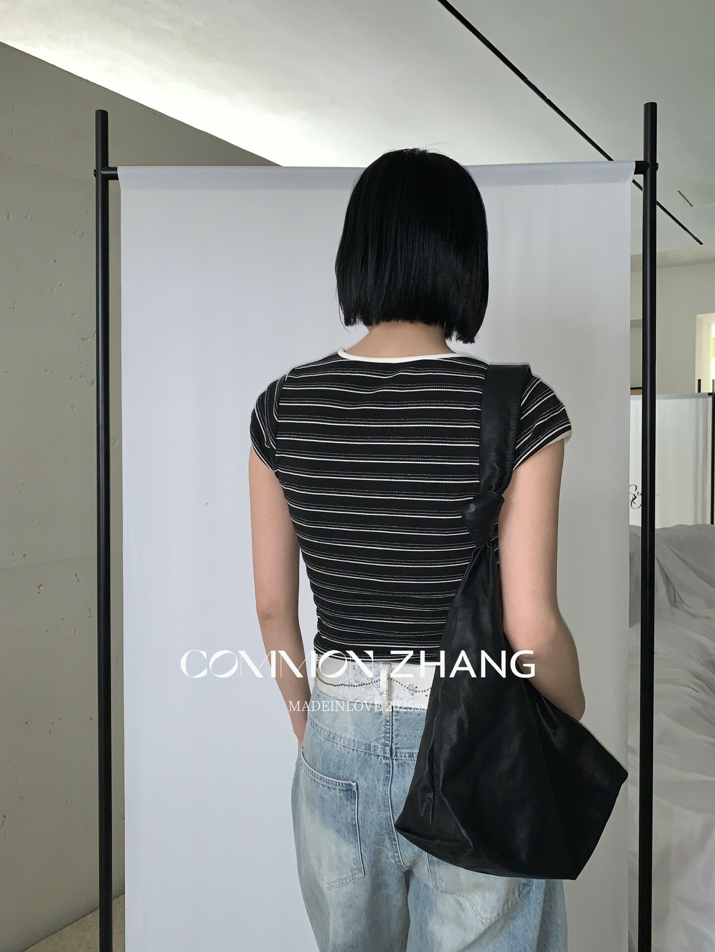 *o-ha-you*【FCZCB100480】夏季韓風小眾復古條紋圓領正肩假扣針織短袖T恤-2色