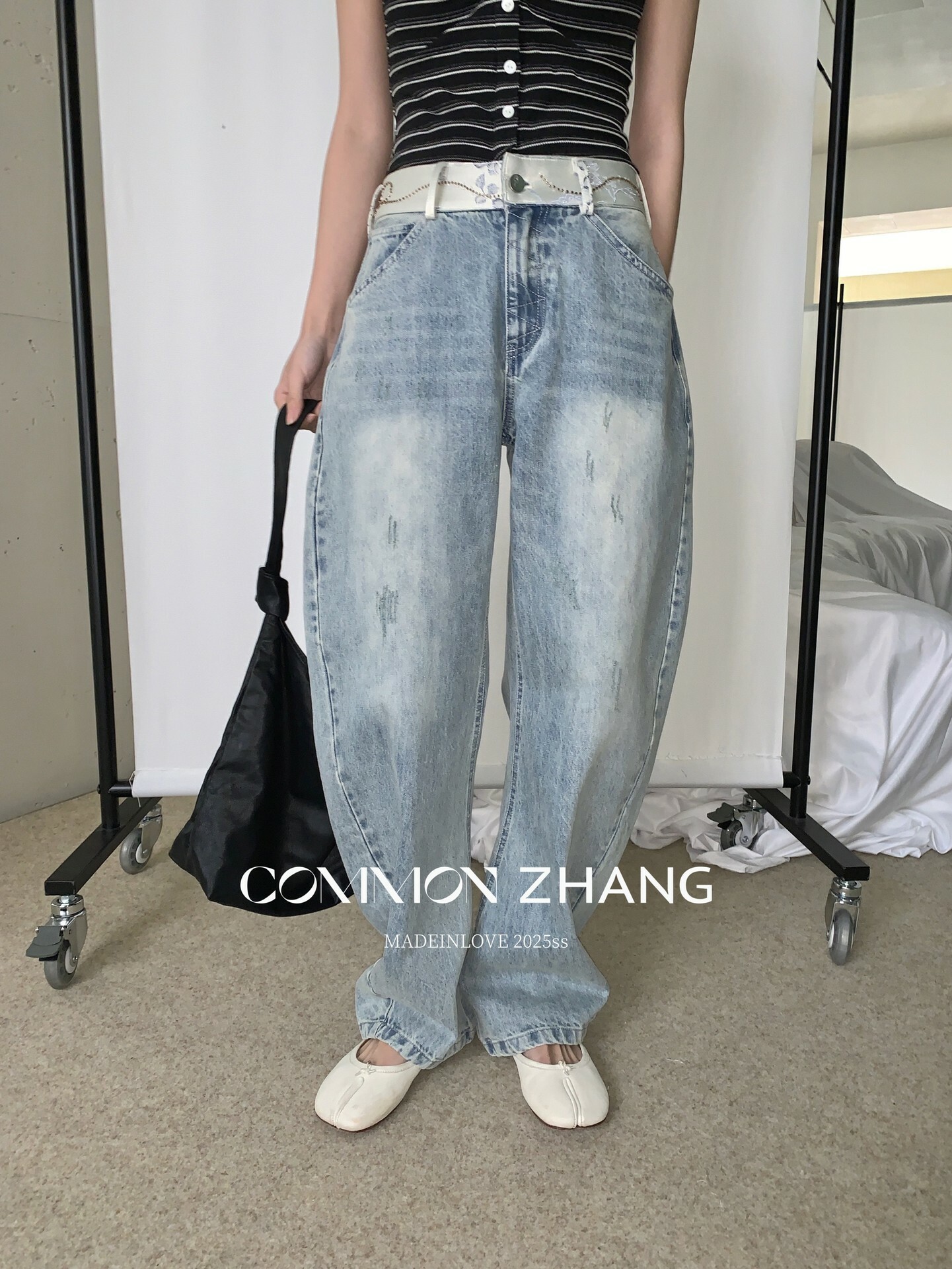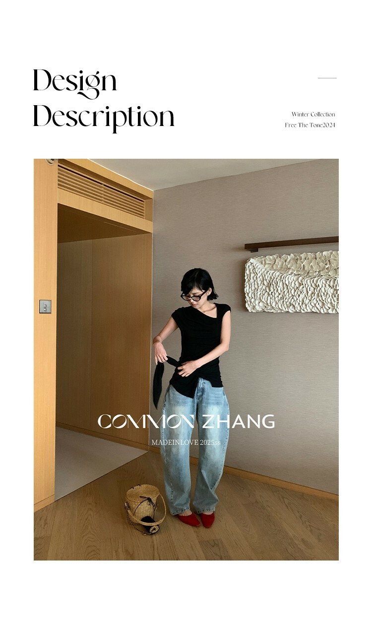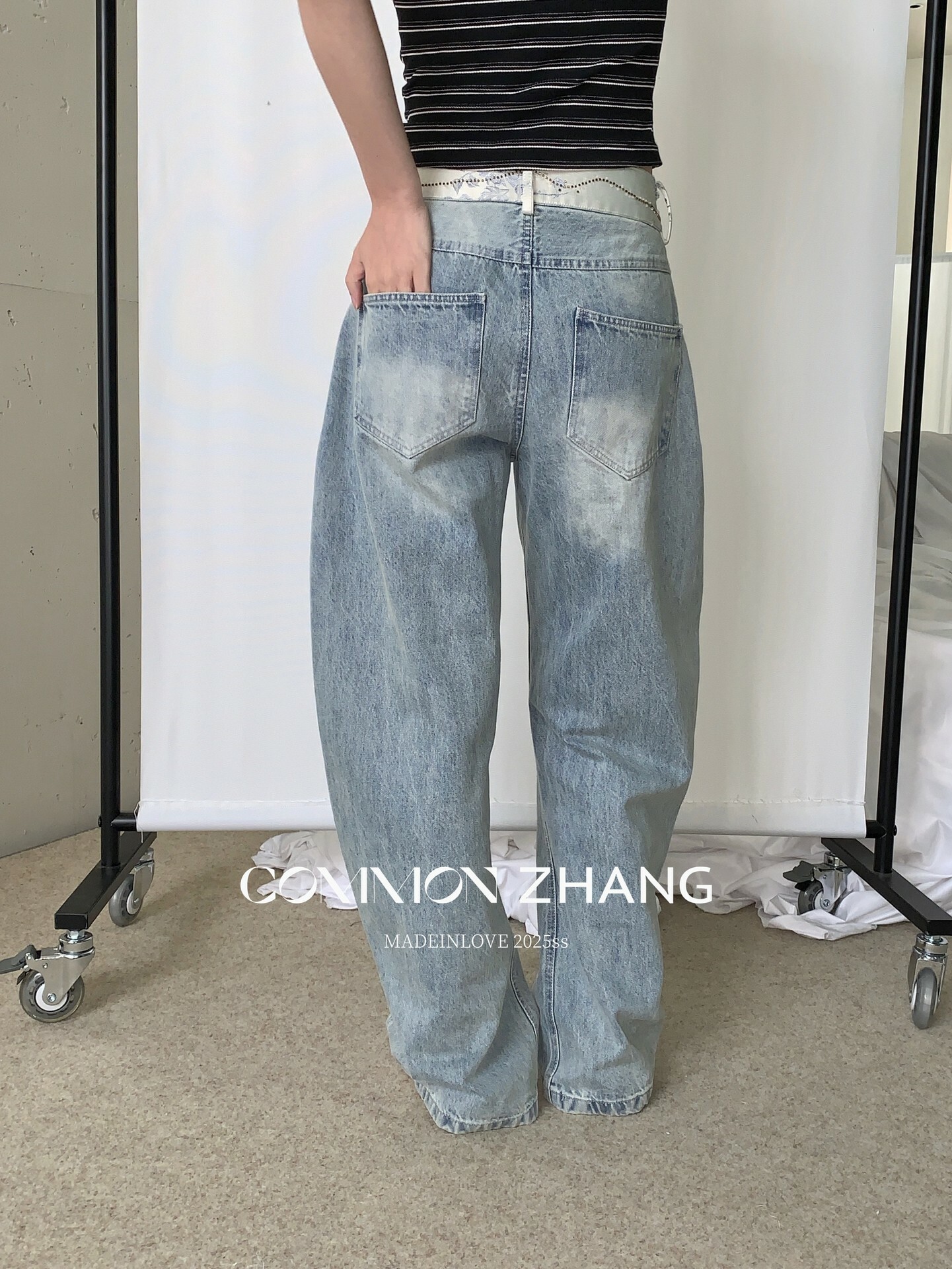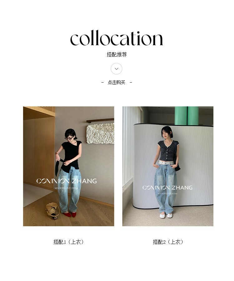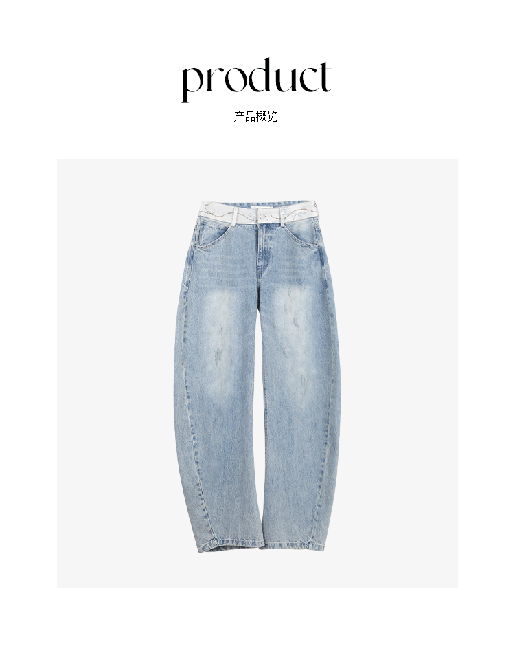 *o-ha-you*【FCZCB101332】夏日韓風時髦低腰垂感拖地闊腿淺藍抓痕彎刀牛仔褲-如有需要請先諮詢