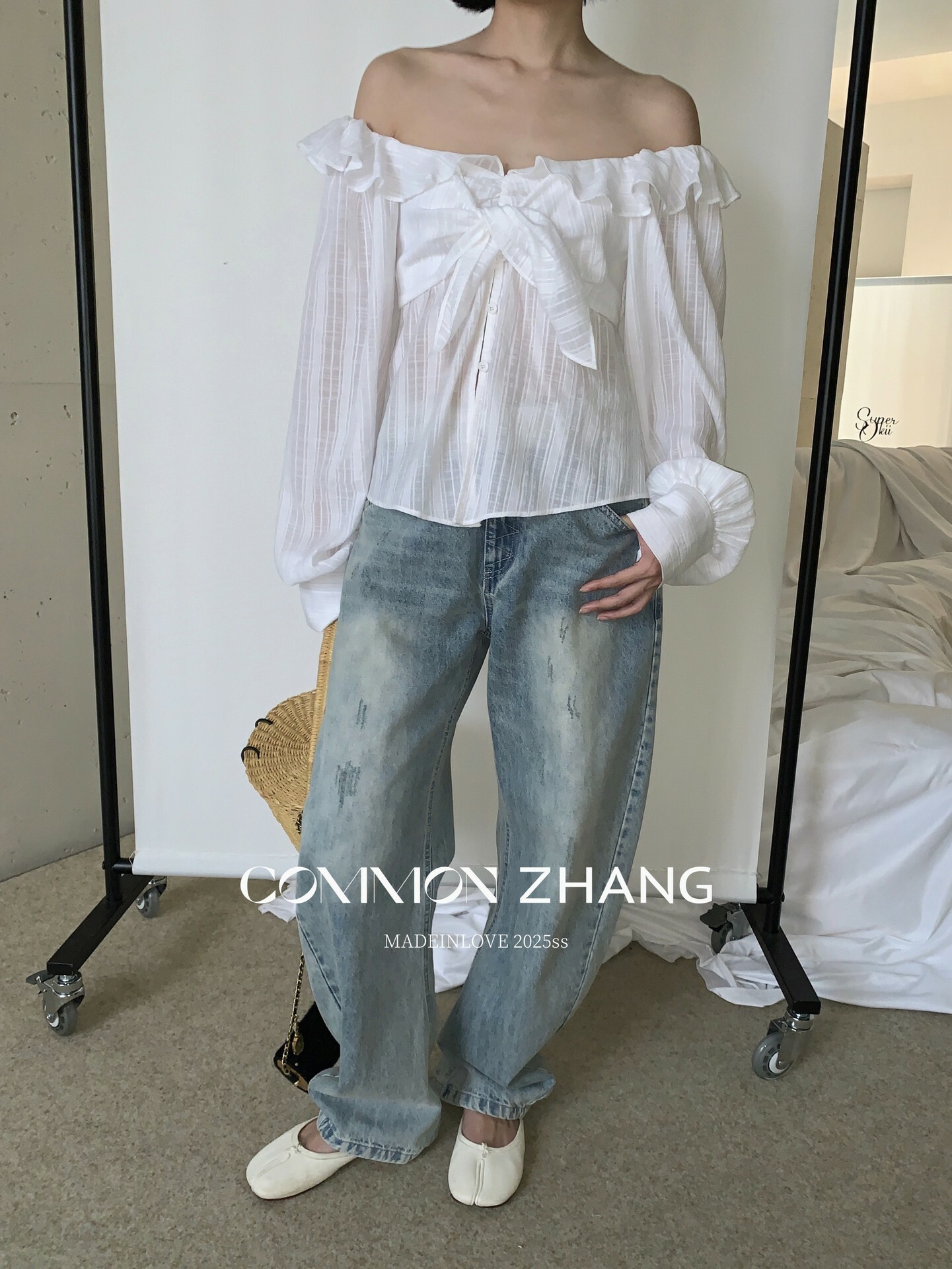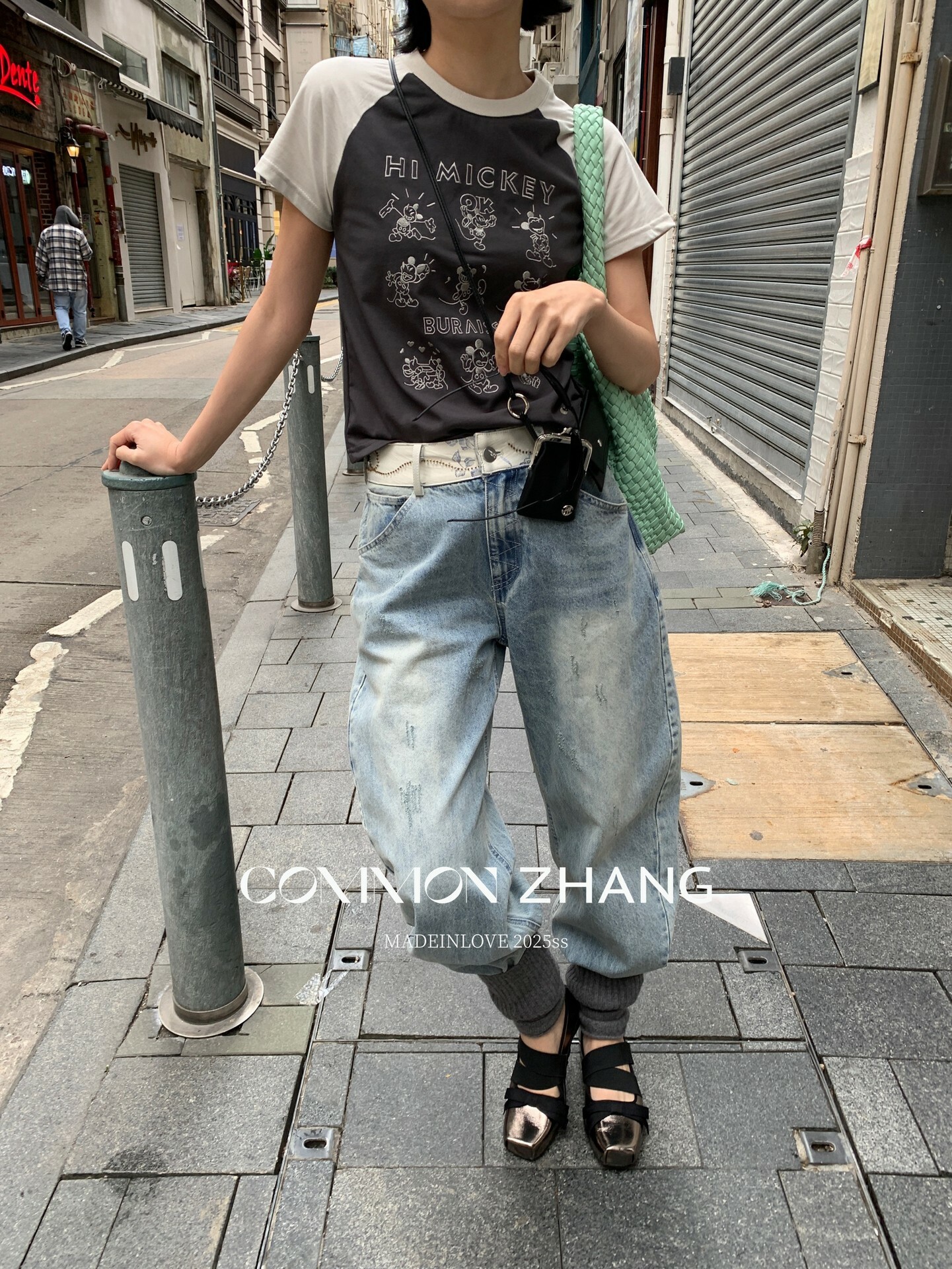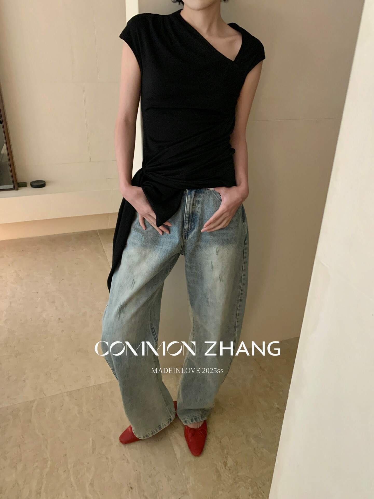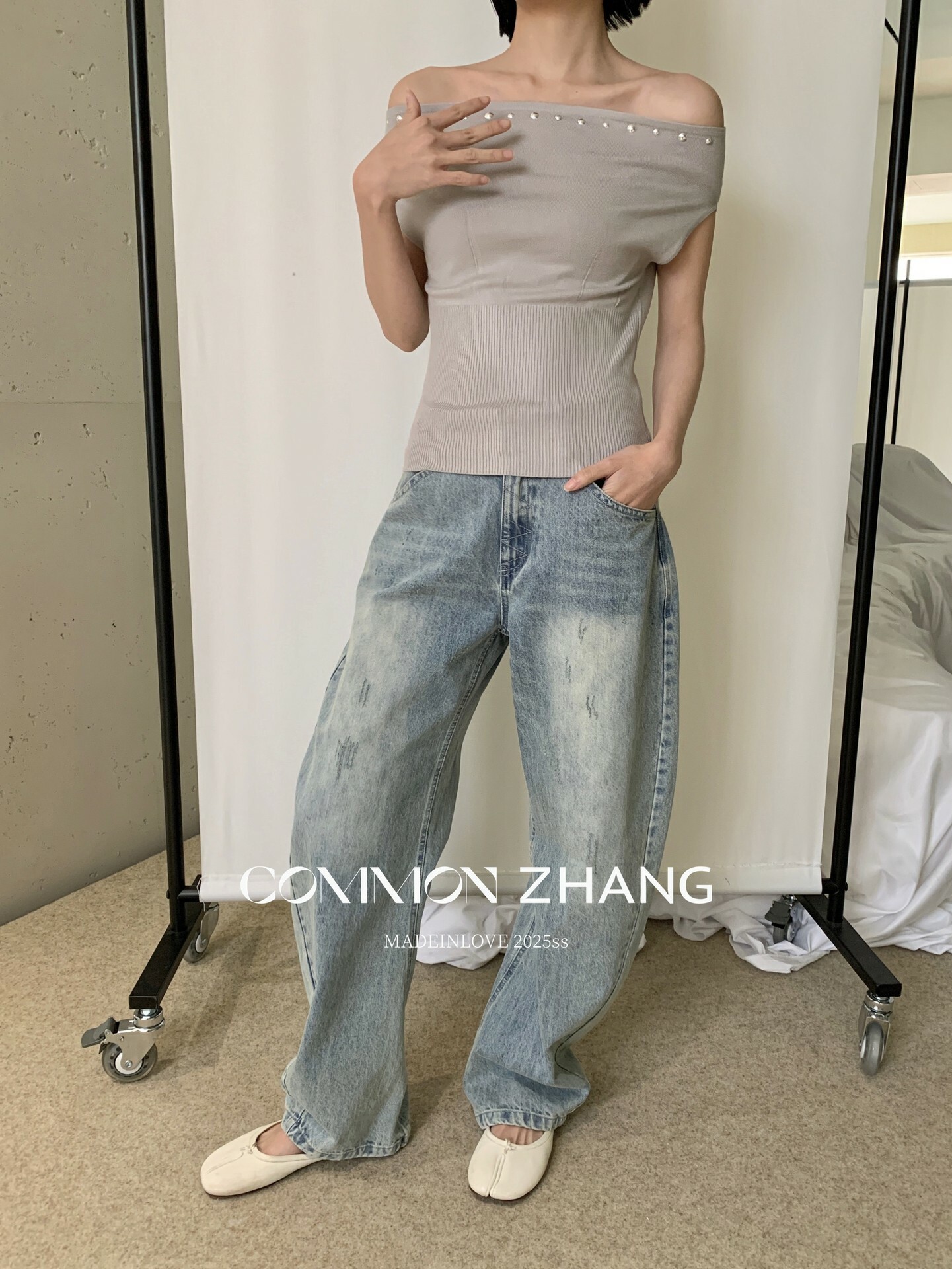*o-ha-you*【FCZCB101332】夏日韓風時髦低腰垂感拖地闊腿淺藍抓痕彎刀牛仔褲-如有需要請先諮詢