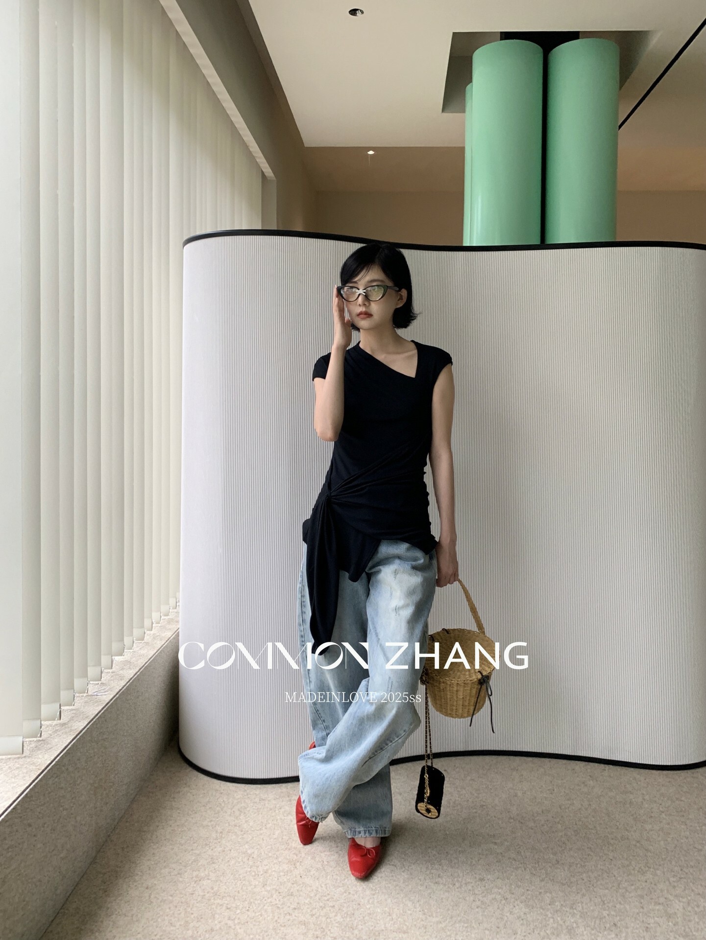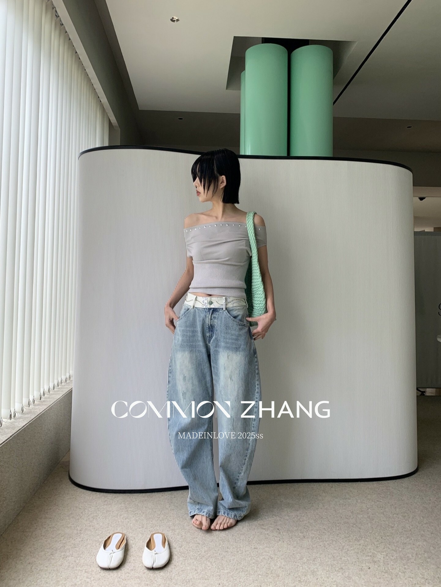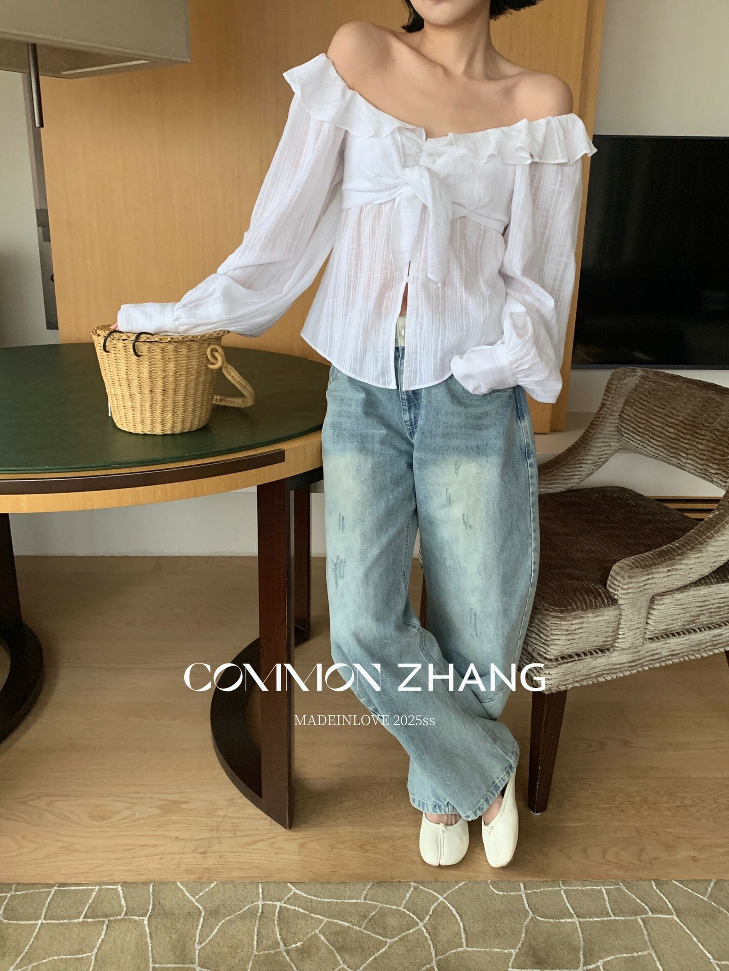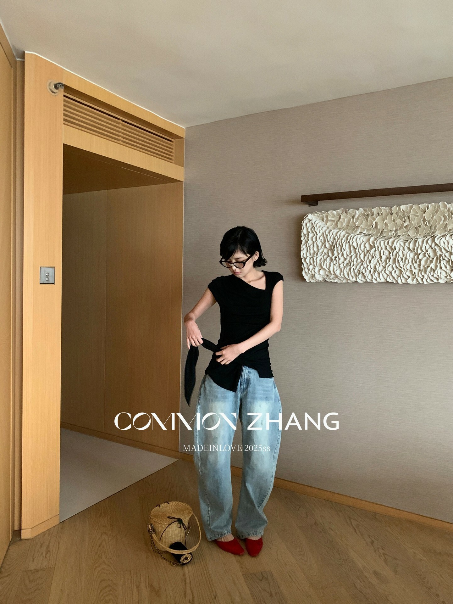 *o-ha-you*【FCZCB101332】夏日韓風時髦低腰垂感拖地闊腿淺藍抓痕彎刀牛仔褲-如有需要請先諮詢