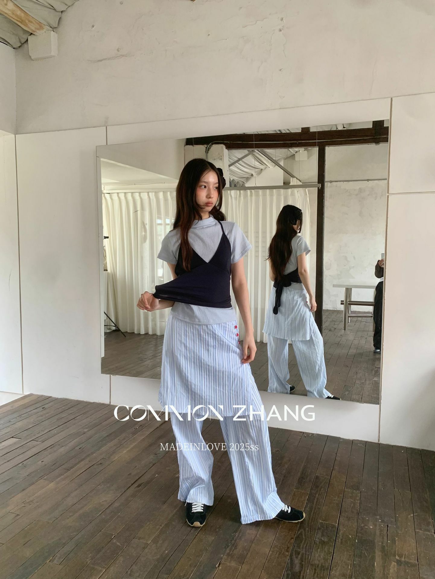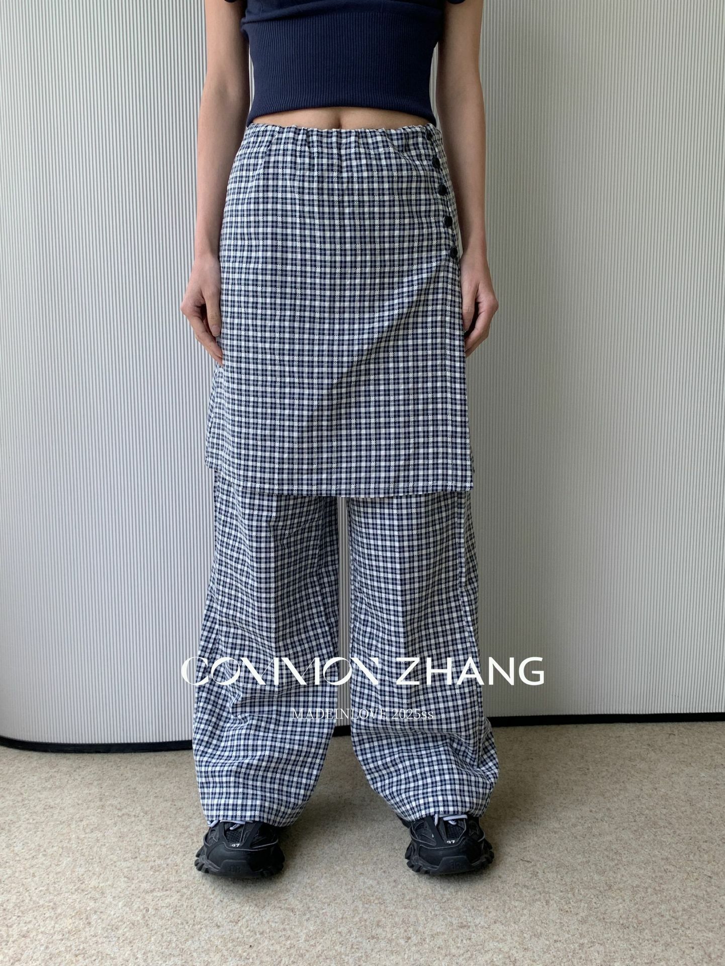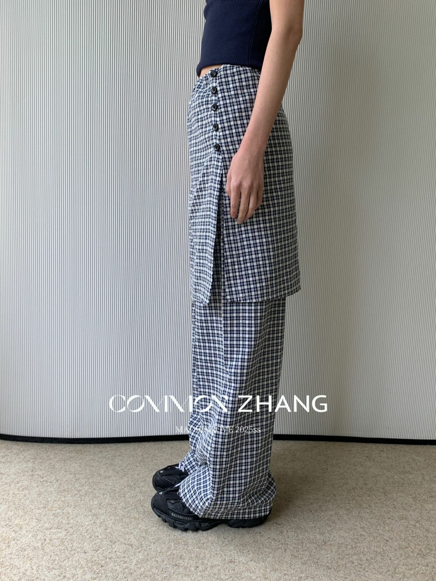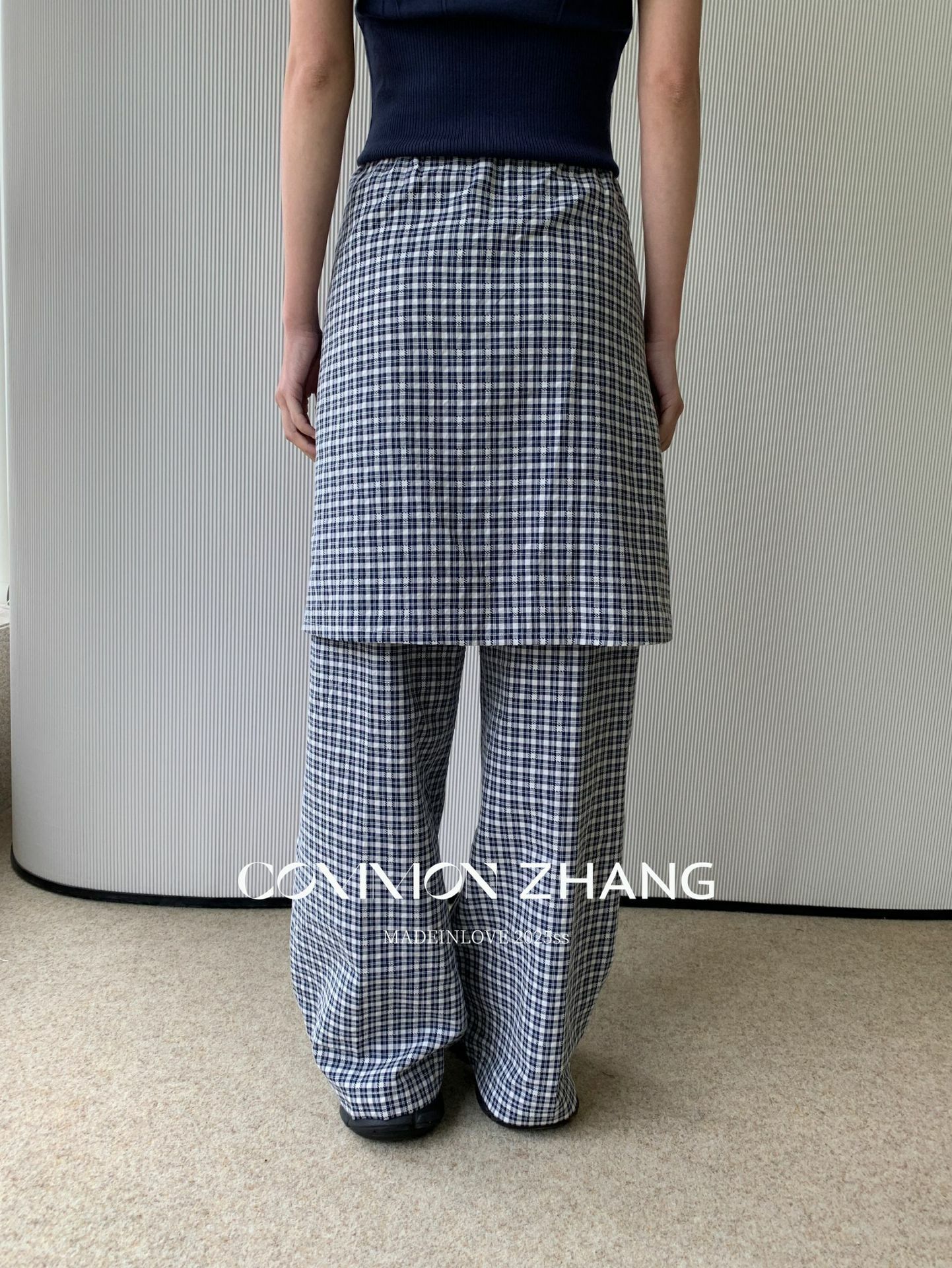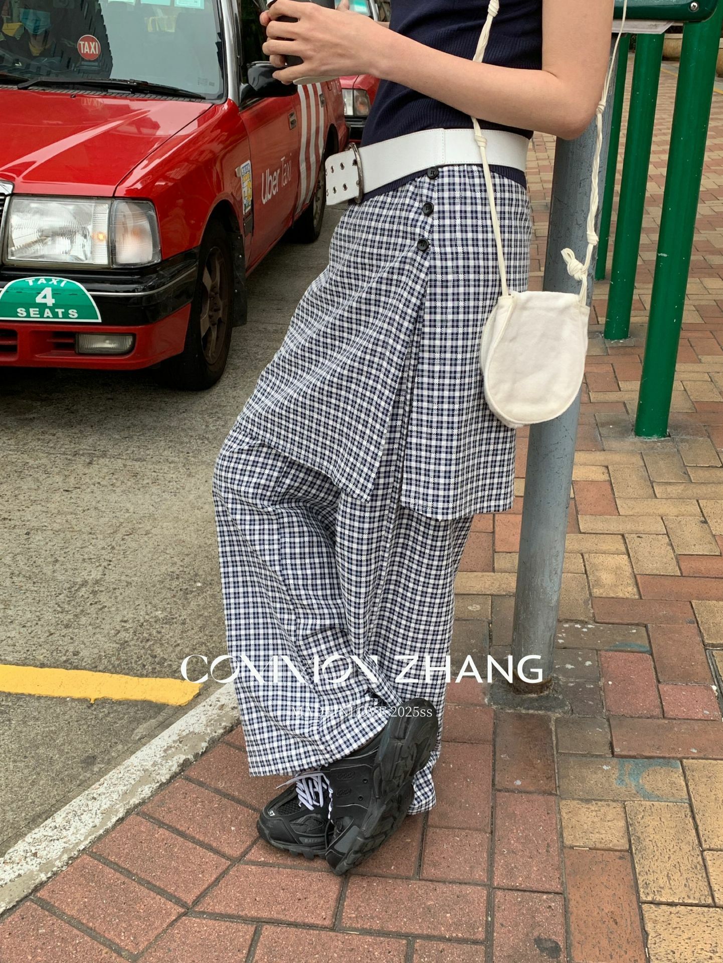 *o-ha-you*【FCZCB101402】夏季都會通勤疊穿格子條紋時髦低腰假兩件休閒褲-3色