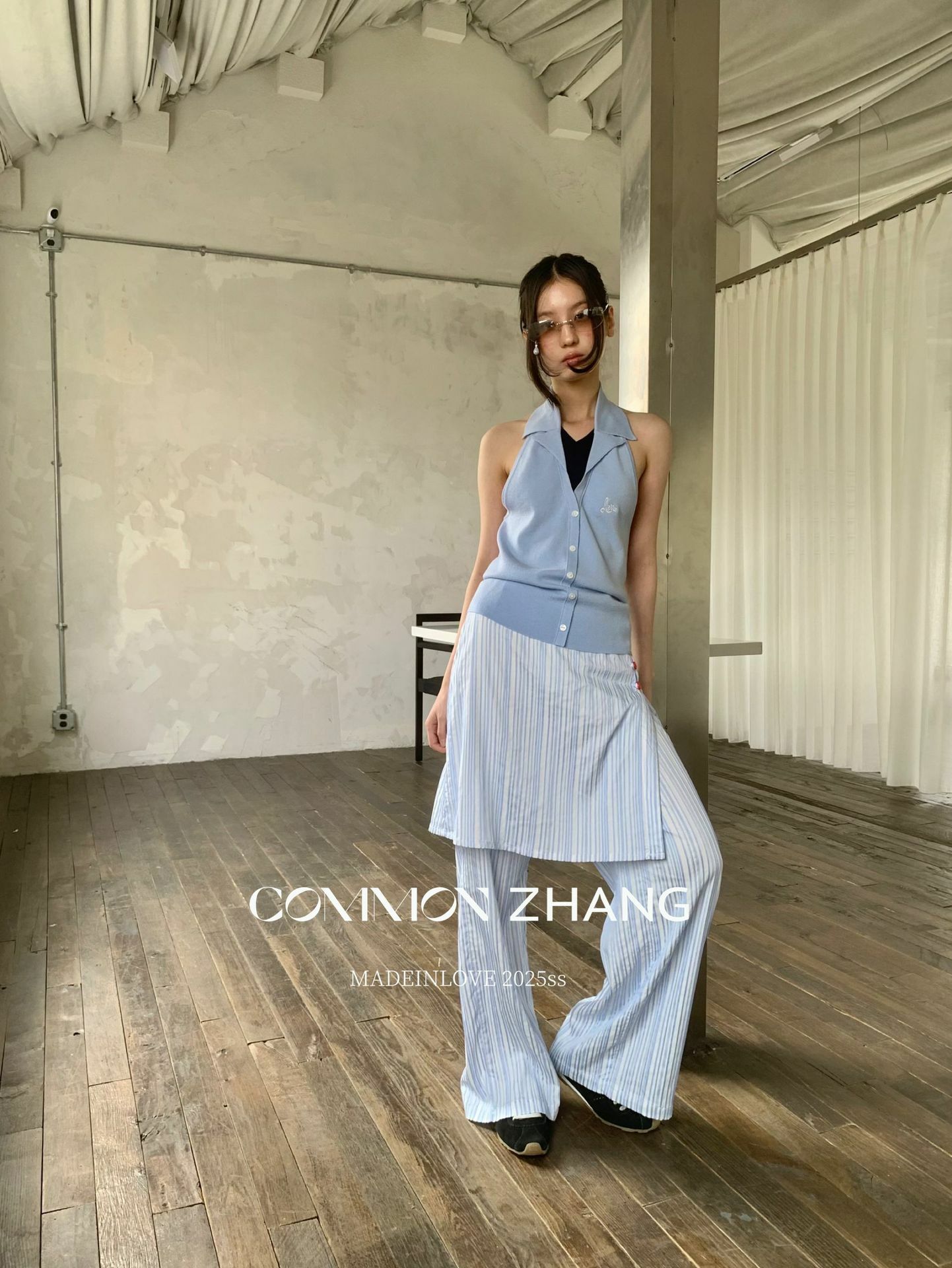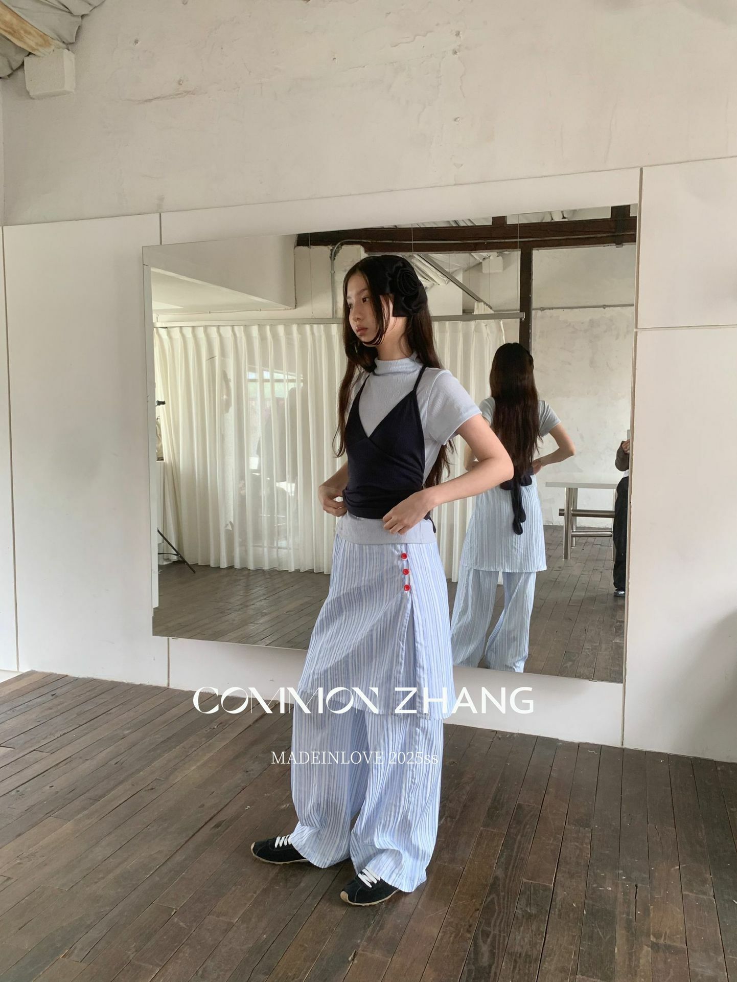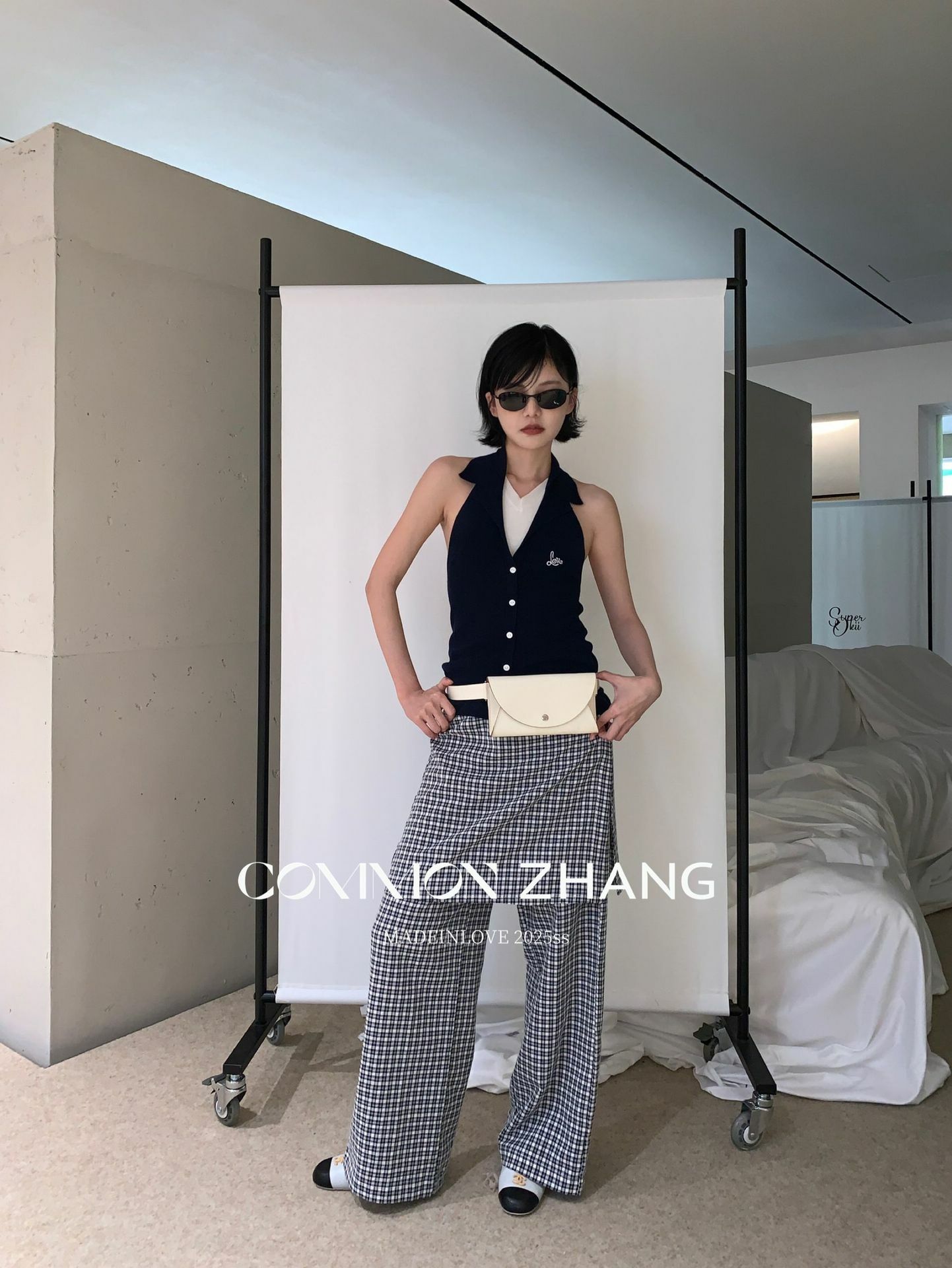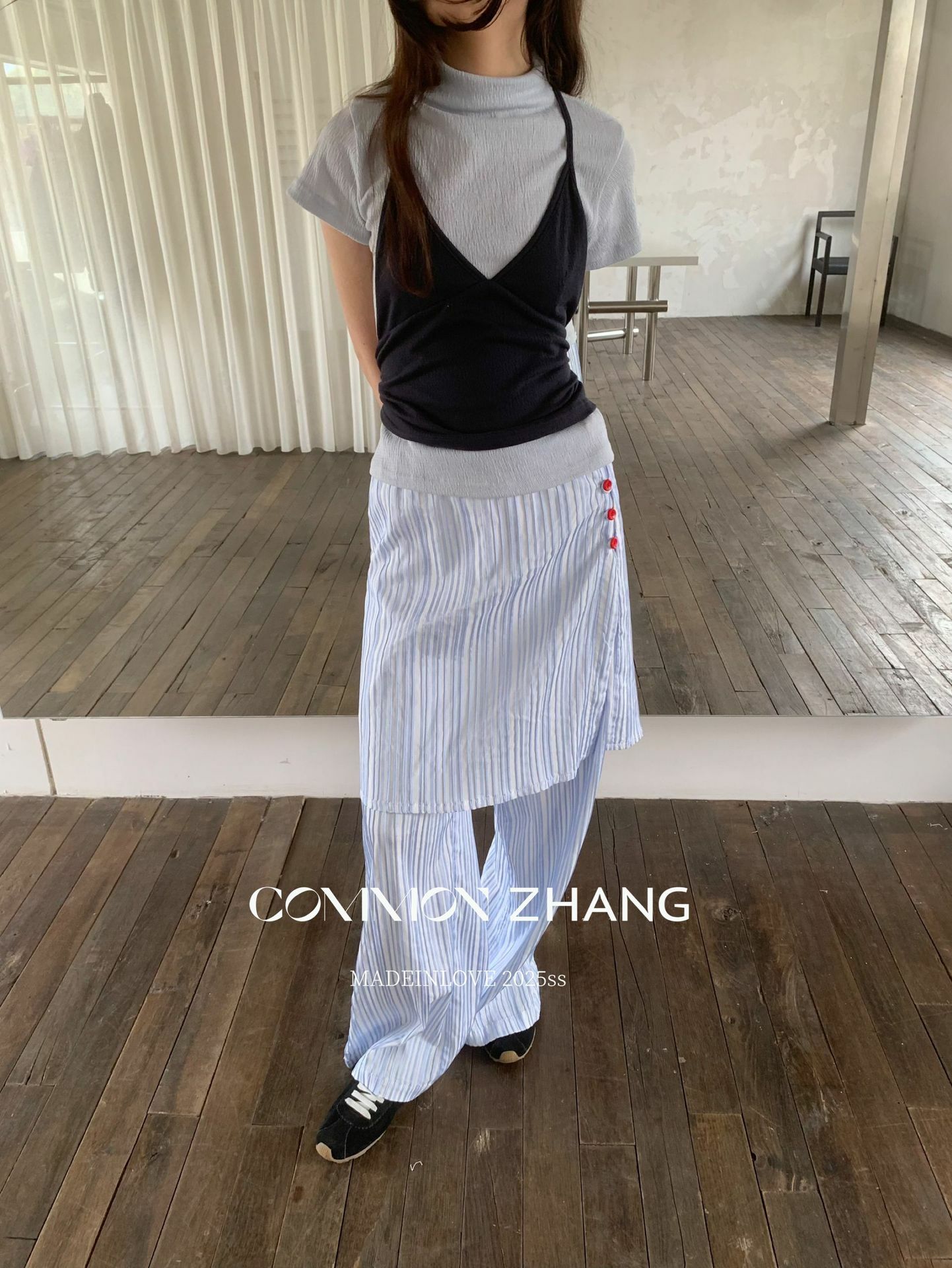 *o-ha-you*【FCZCB101402】夏季都會通勤疊穿格子條紋時髦低腰假兩件休閒褲-3色