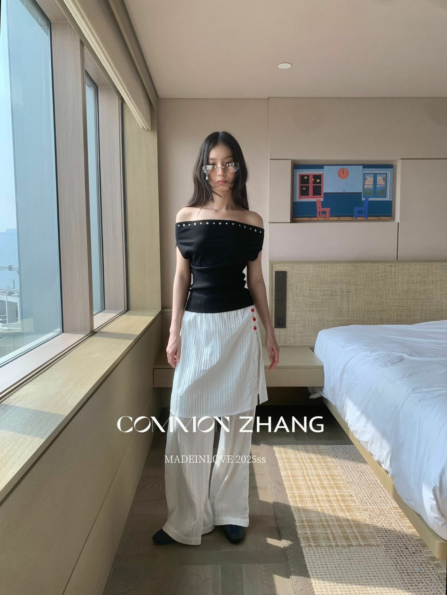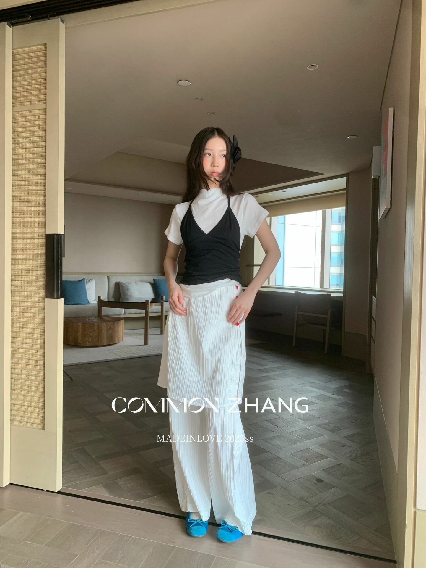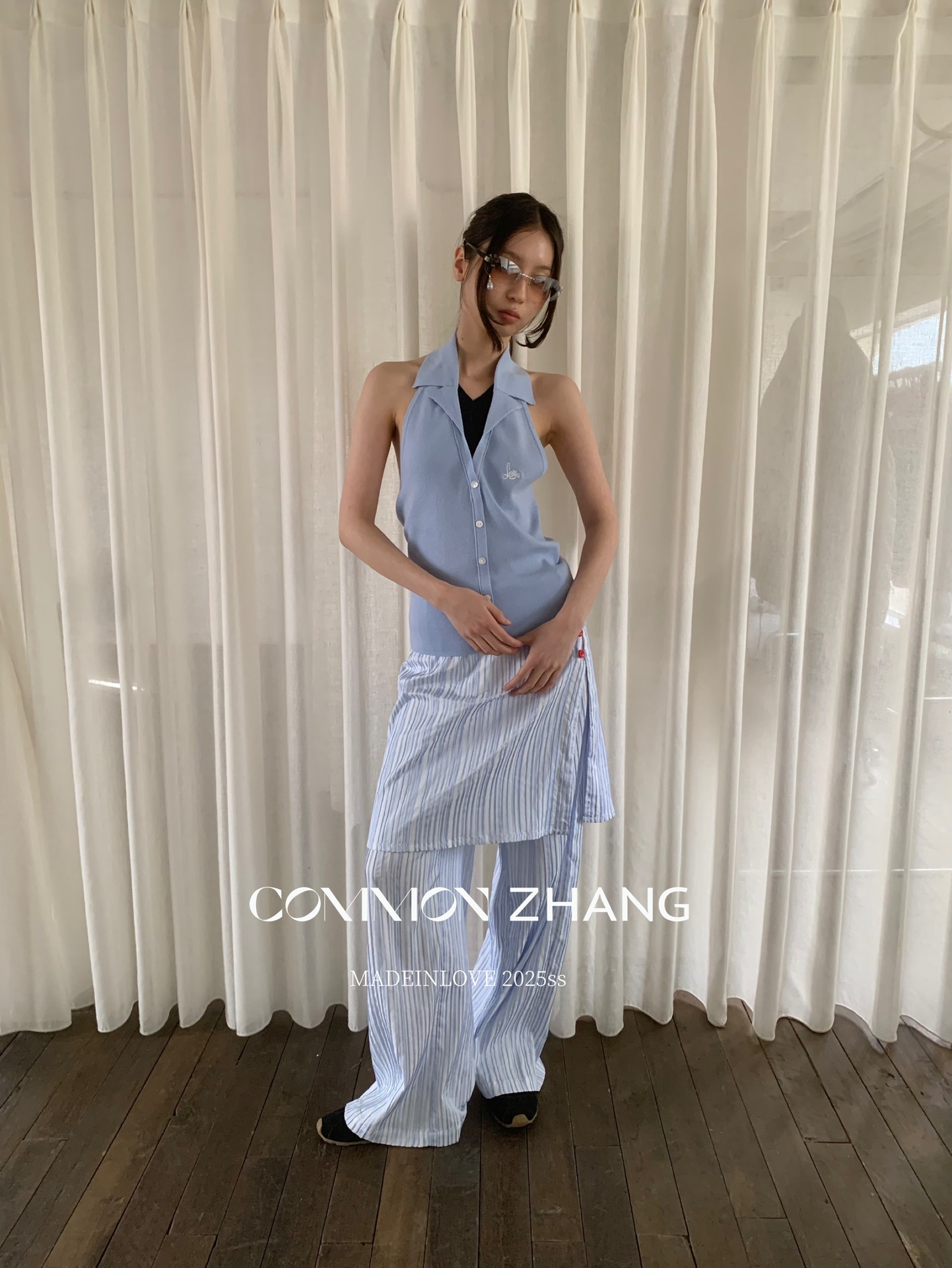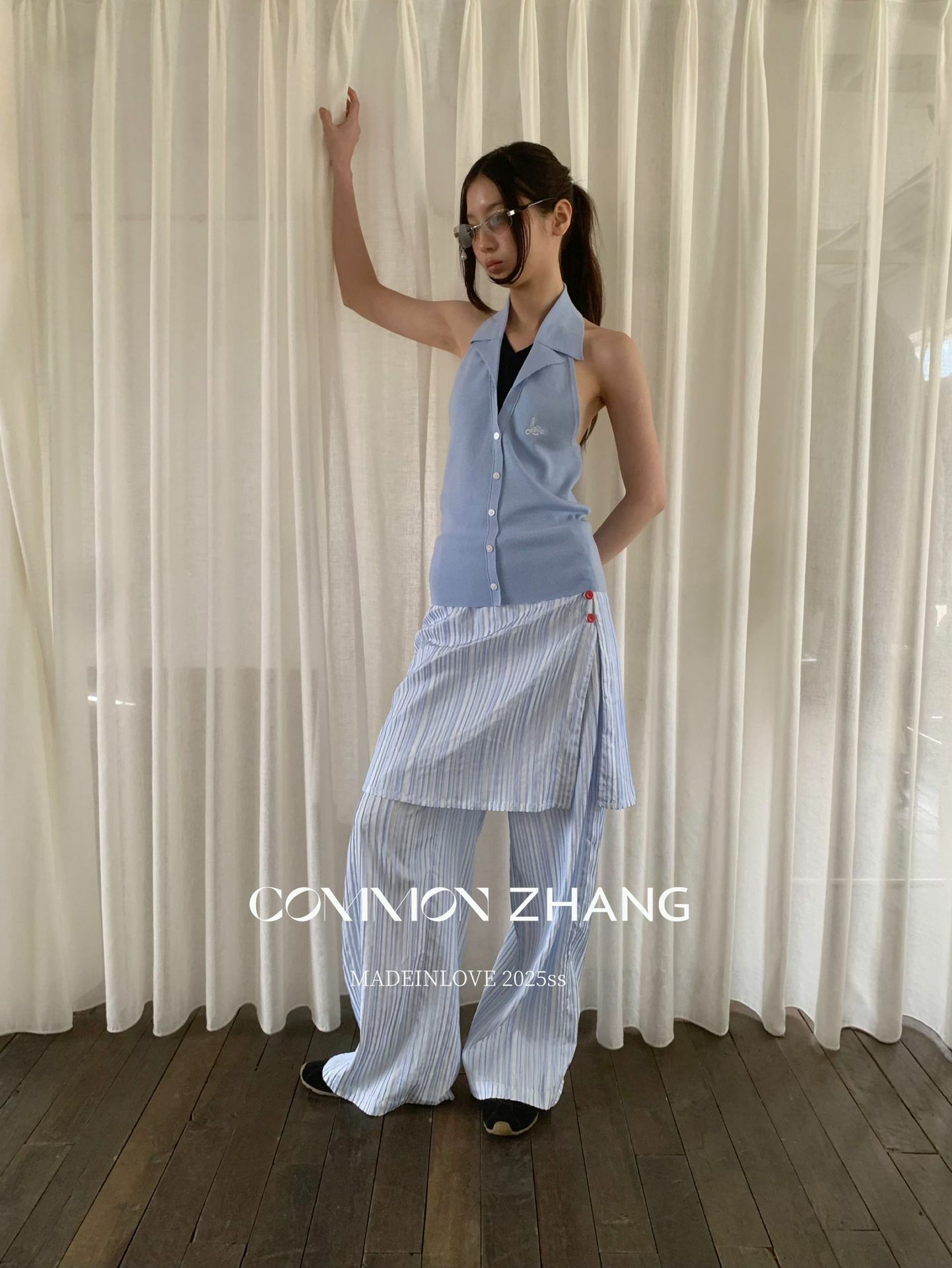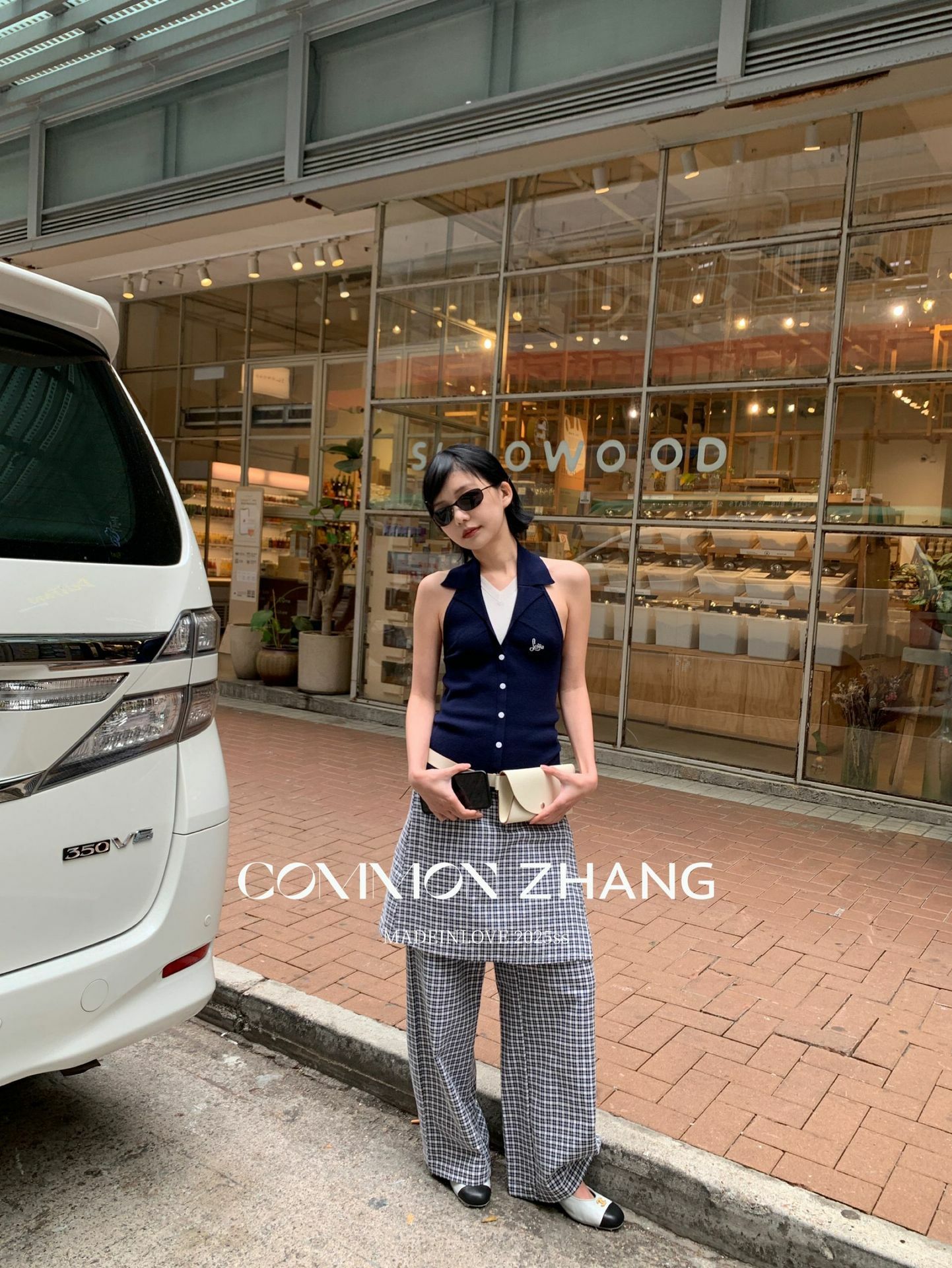 *o-ha-you*【FCZCB101402】夏季都會通勤疊穿格子條紋時髦低腰假兩件休閒褲-3色