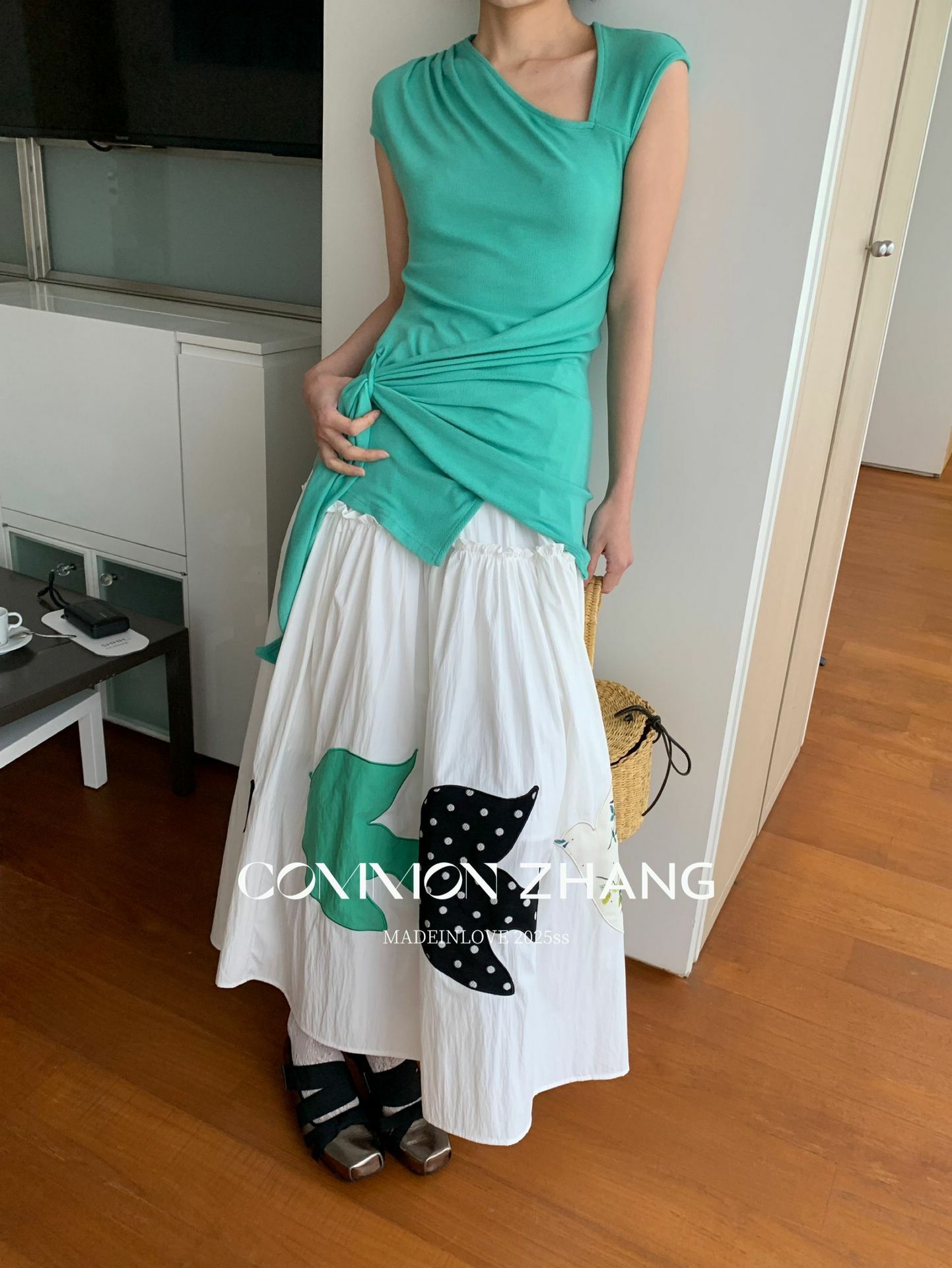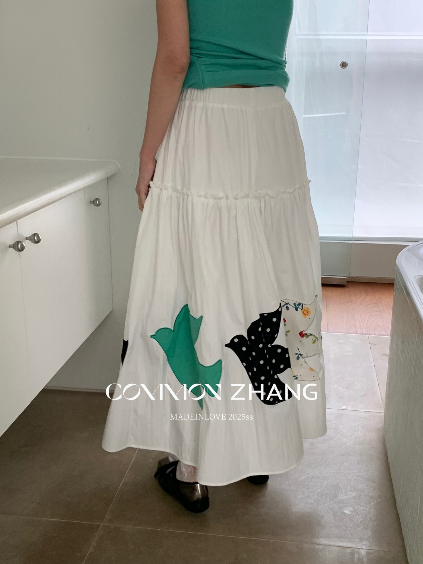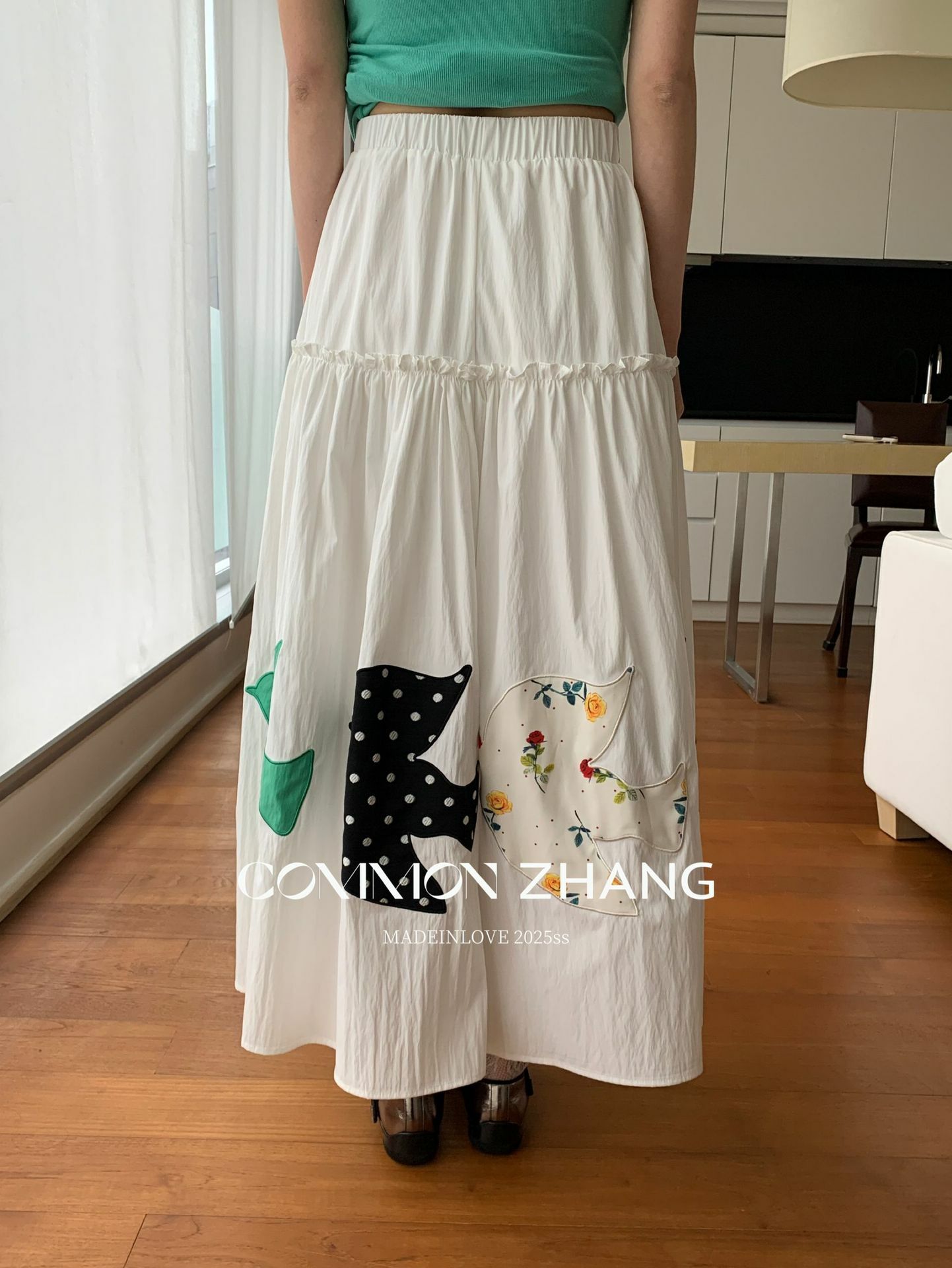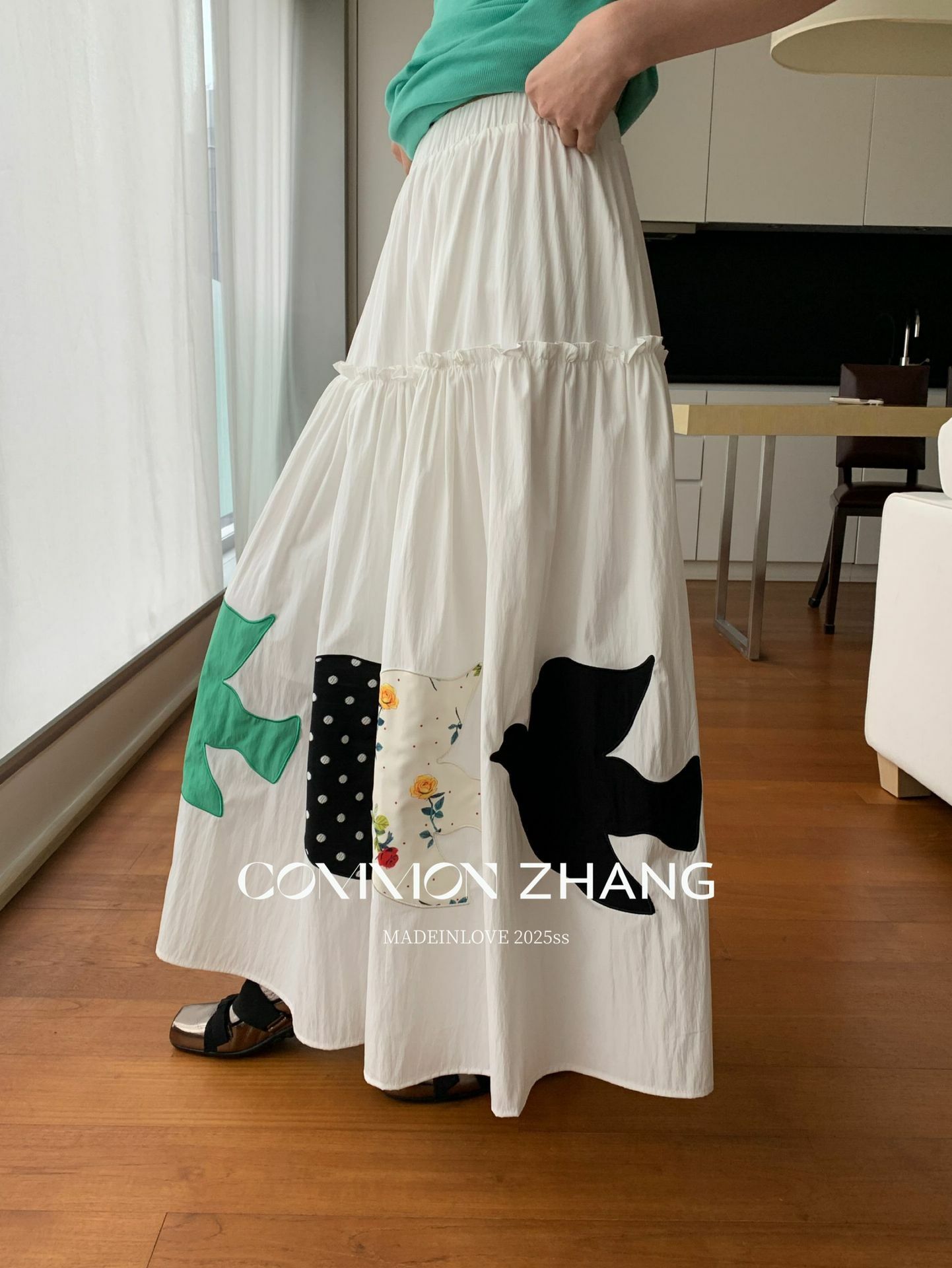 *o-ha-you*【FCZCB102187】夏季韓版減齡貼圖印花刺繡花邊拼接低腰A字半身裙