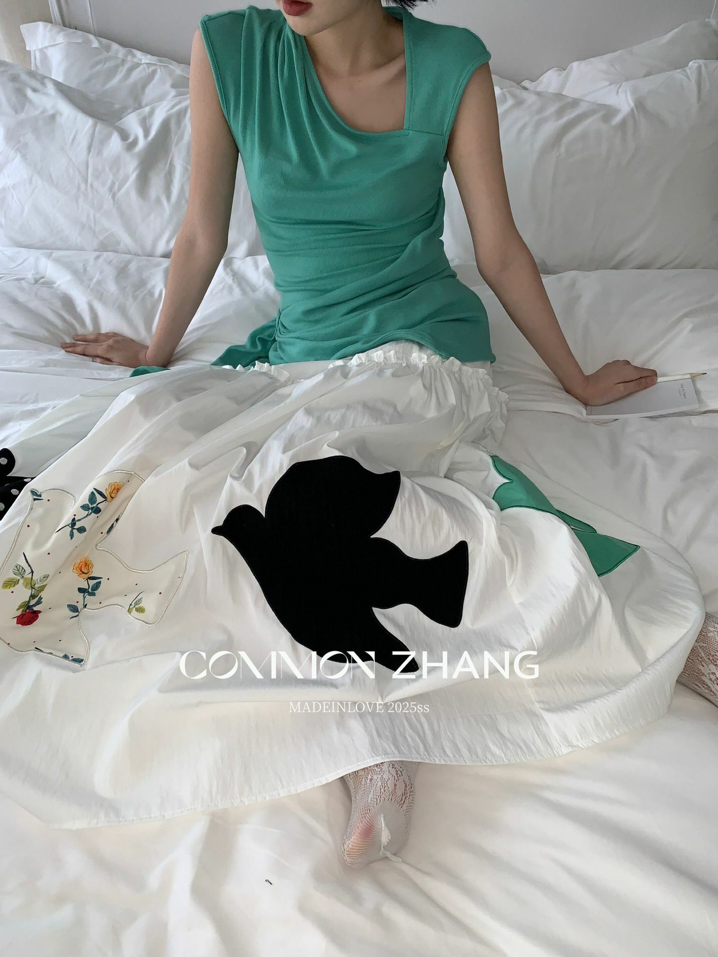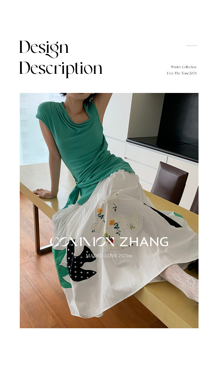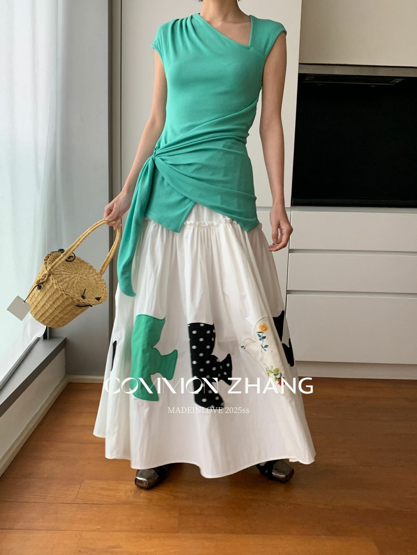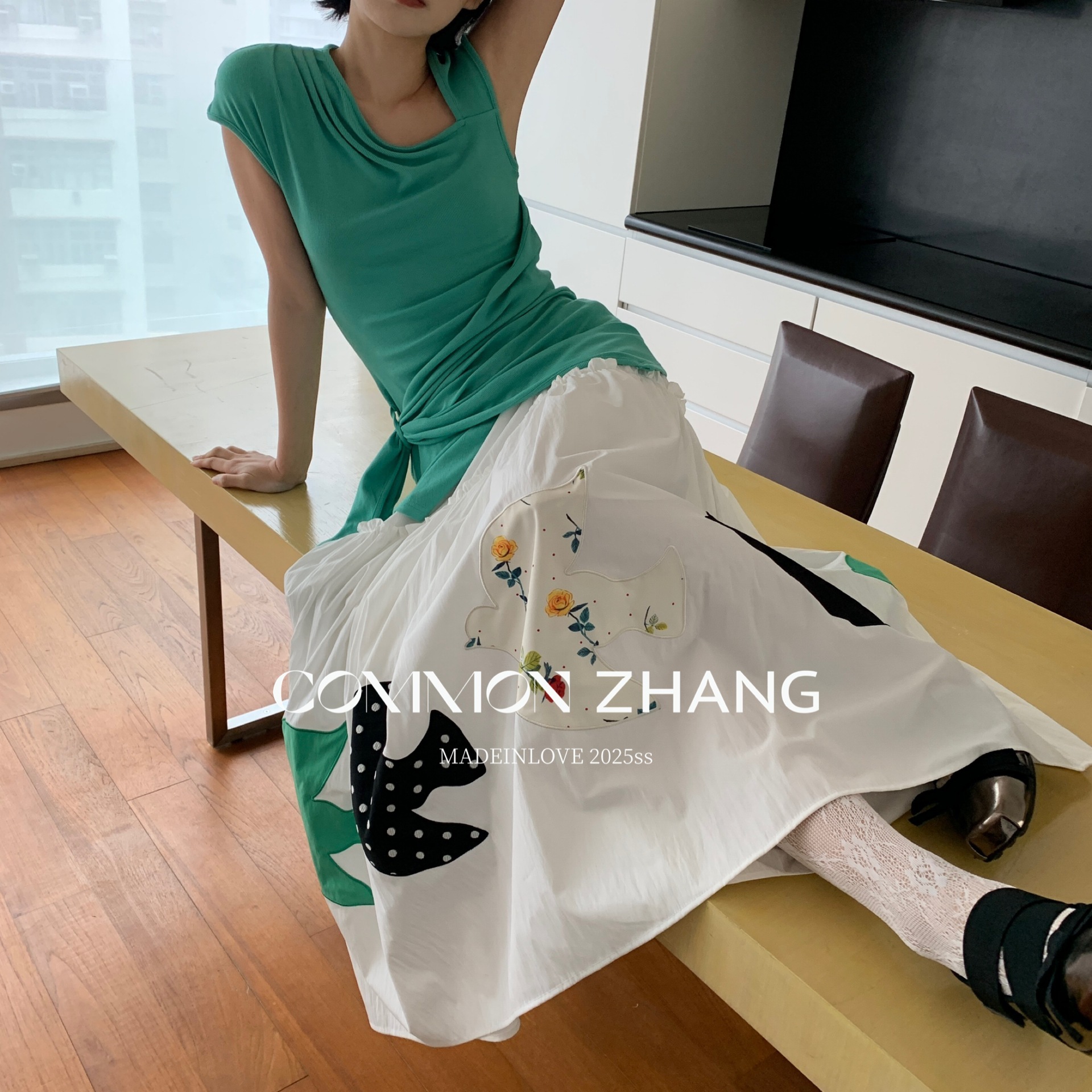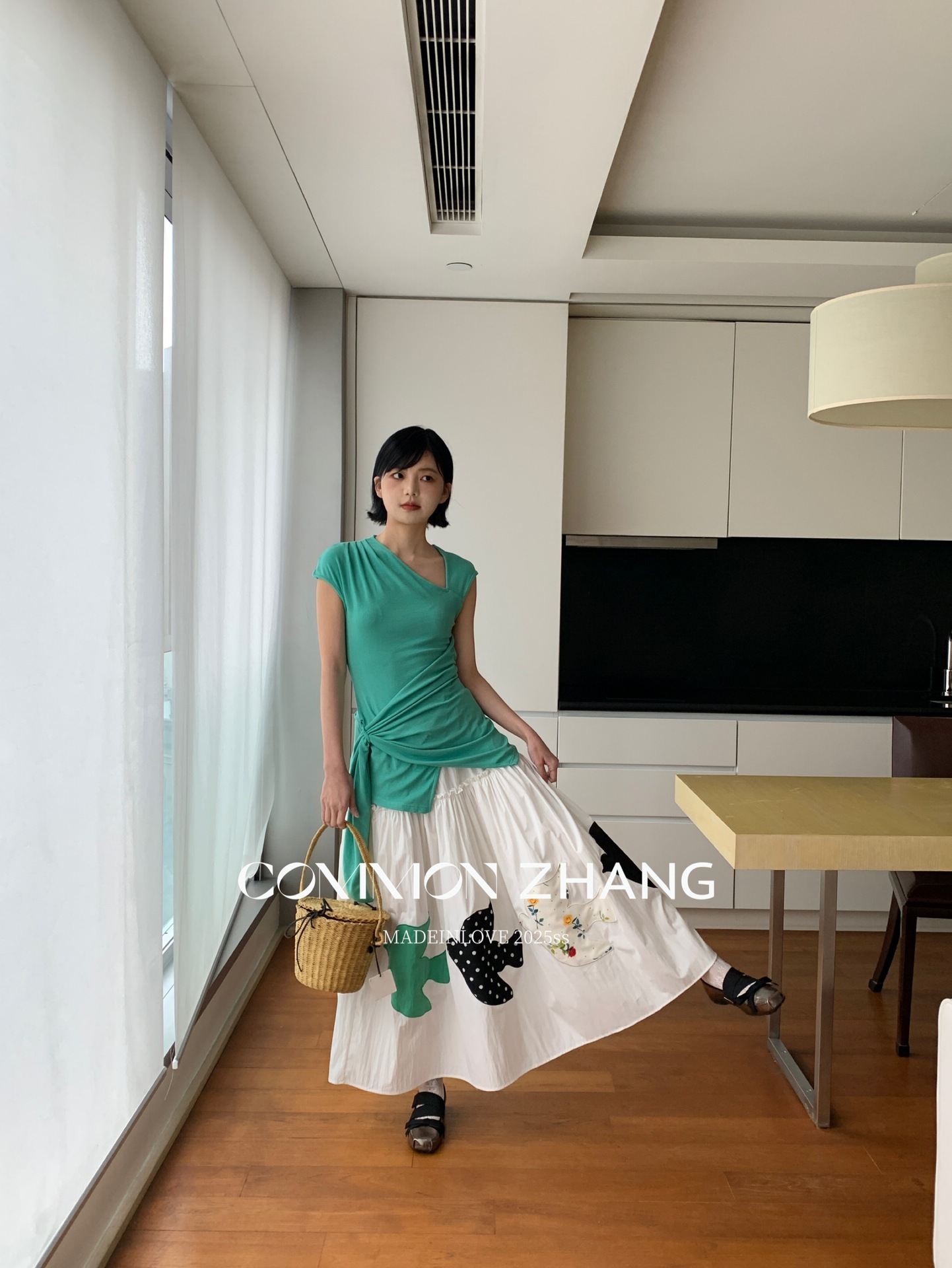 *o-ha-you*【FCZCB102187】夏季韓版減齡貼圖印花刺繡花邊拼接低腰A字半身裙