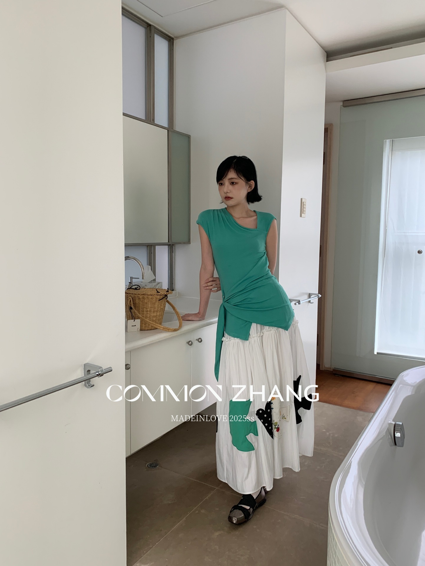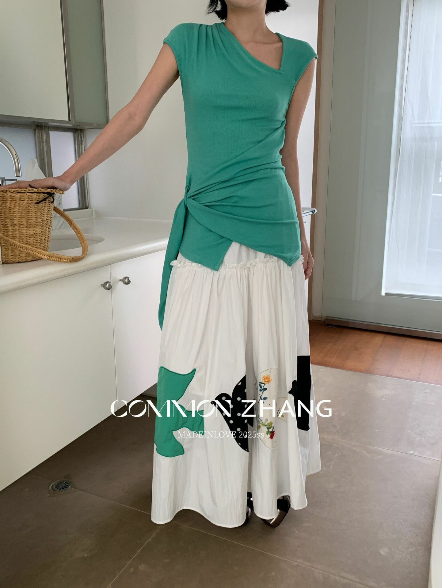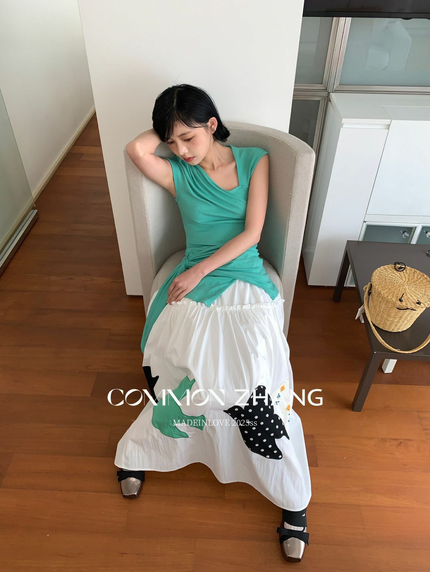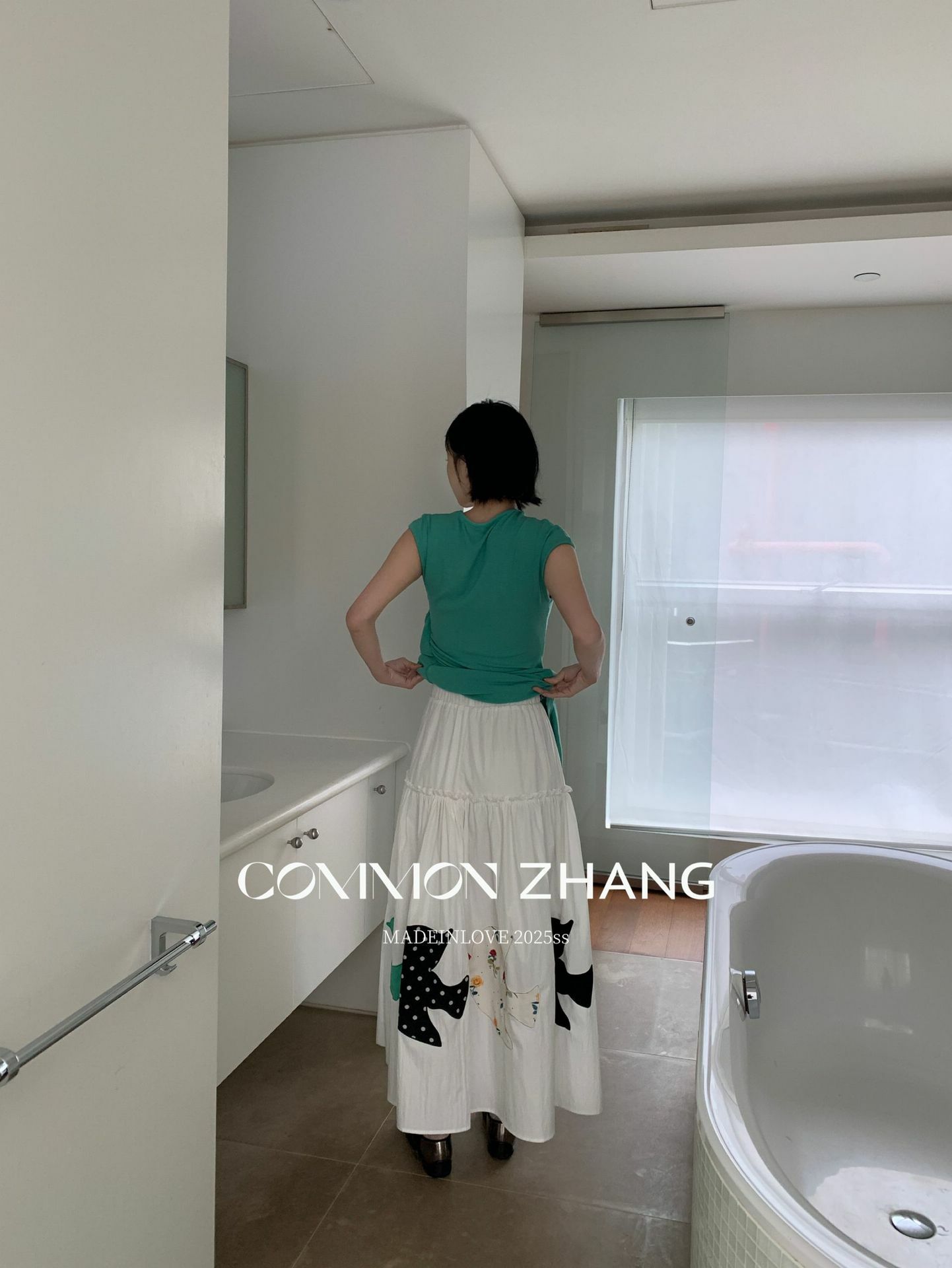 *o-ha-you*【FCZCB102187】夏季韓版減齡貼圖印花刺繡花邊拼接低腰A字半身裙