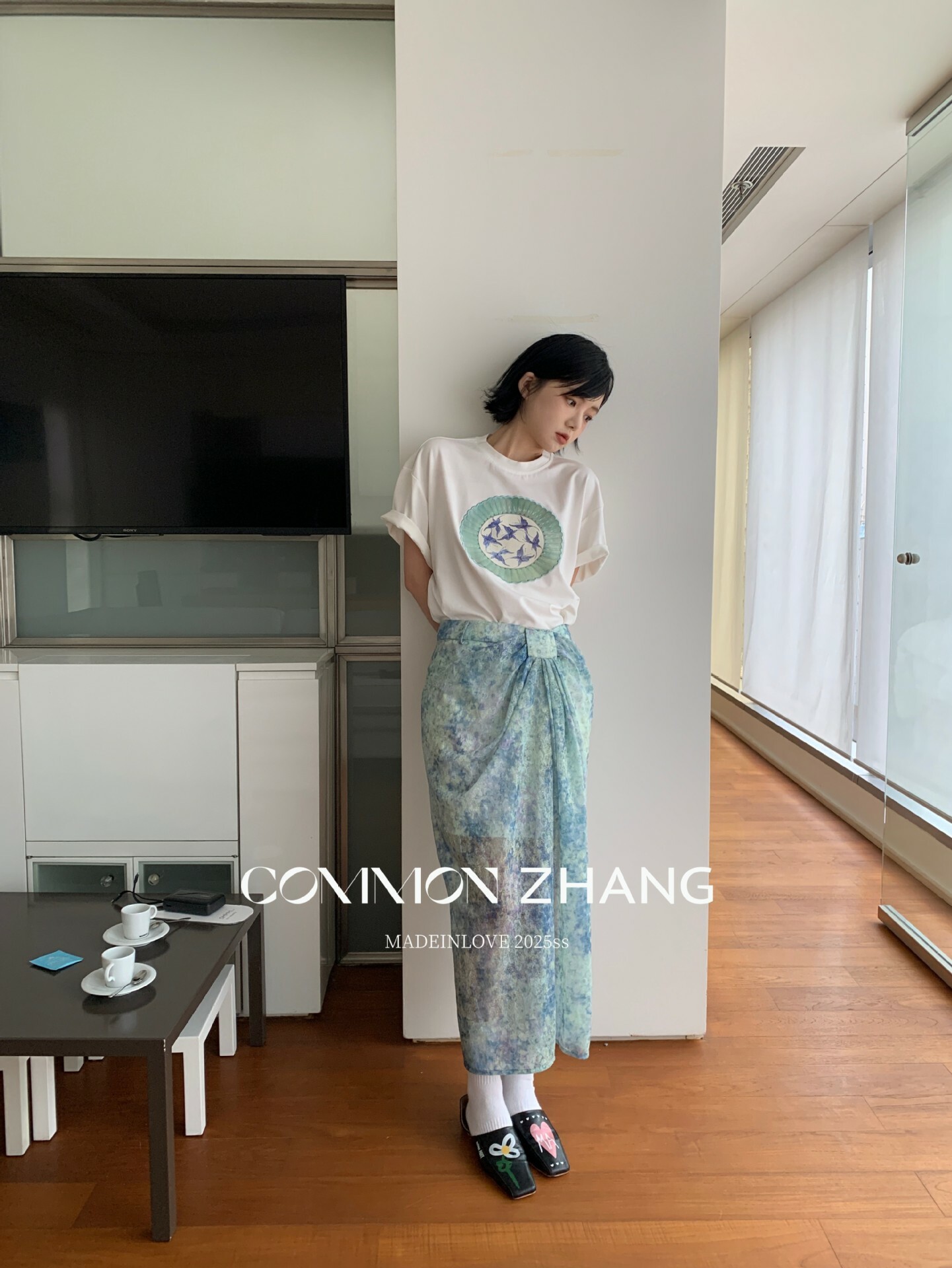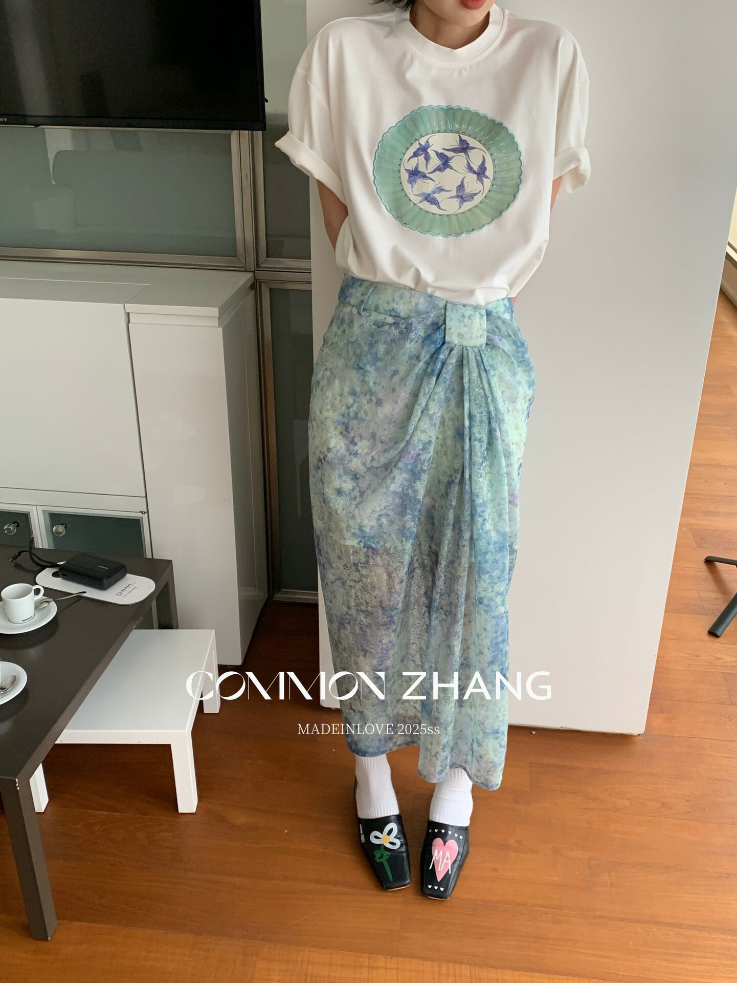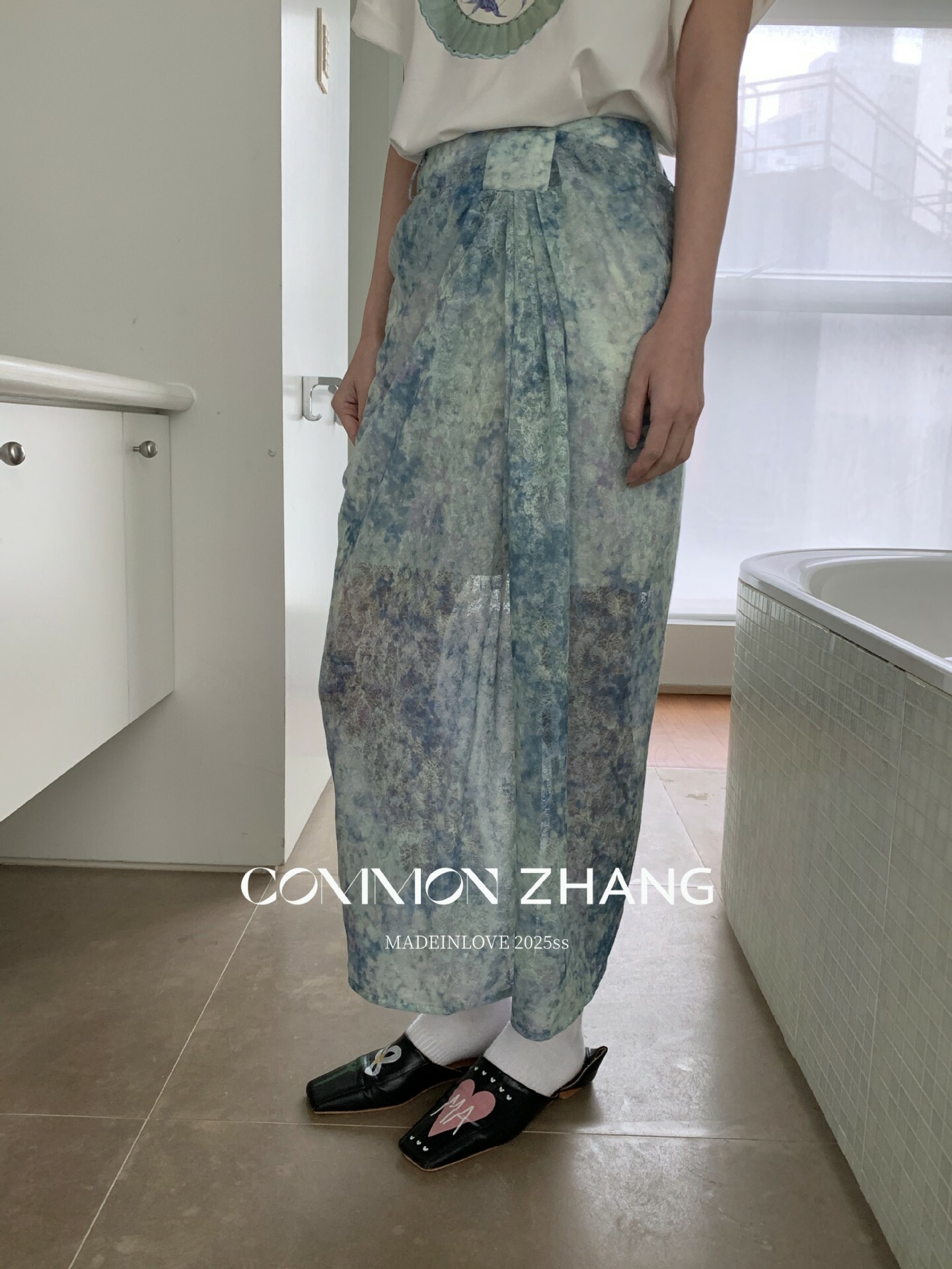 *o-ha-you*【FCZCB102263】夏季韓版碎花低腰透視疊穿時髦別緻褶皺A字半身裙