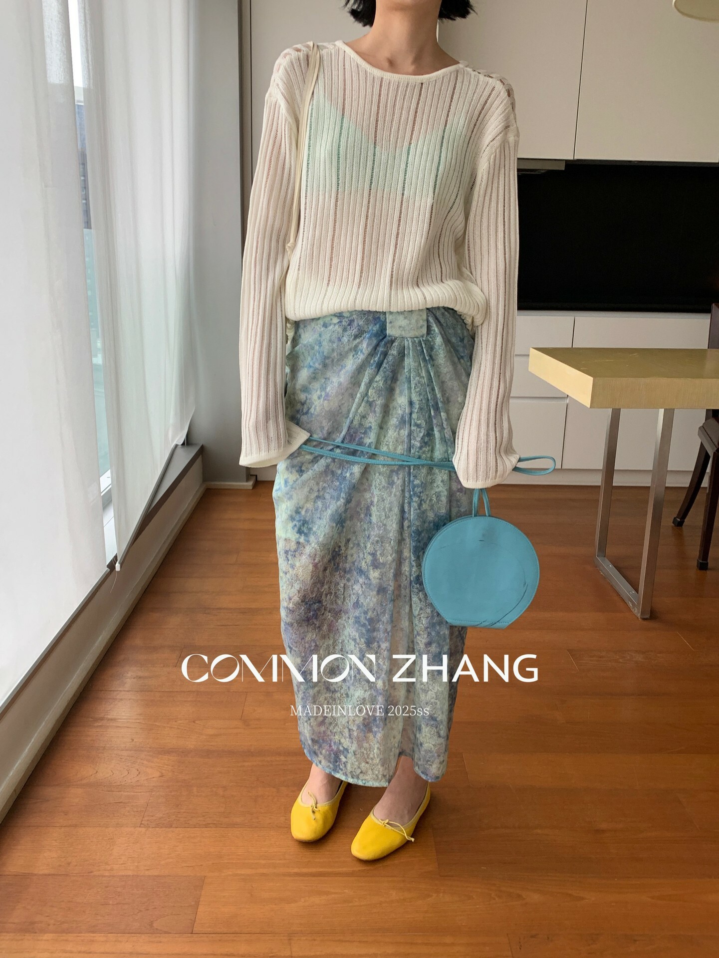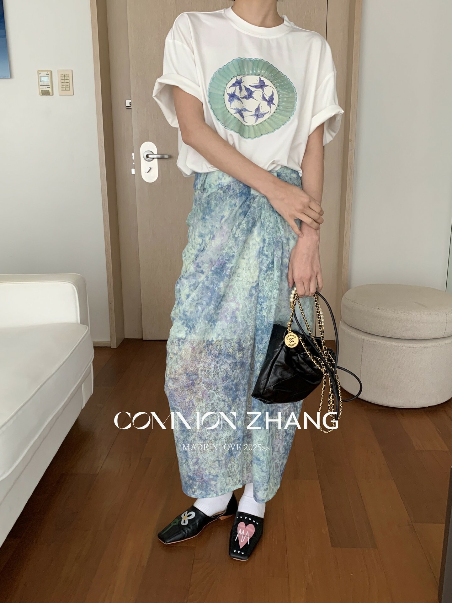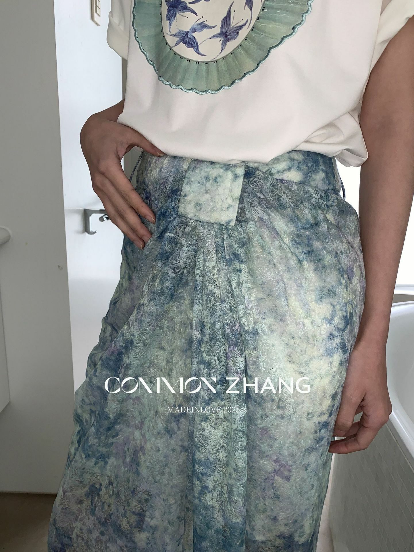 *o-ha-you*【FCZCB102263】夏季韓版碎花低腰透視疊穿時髦別緻褶皺A字半身裙