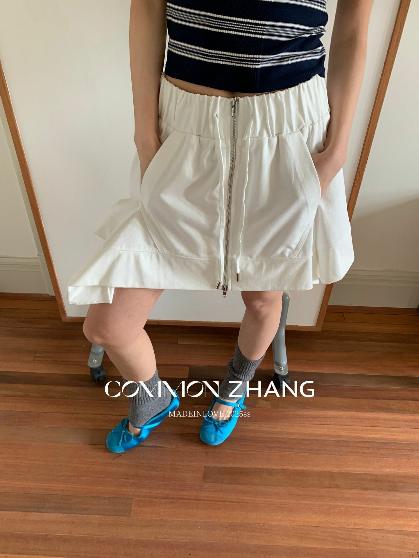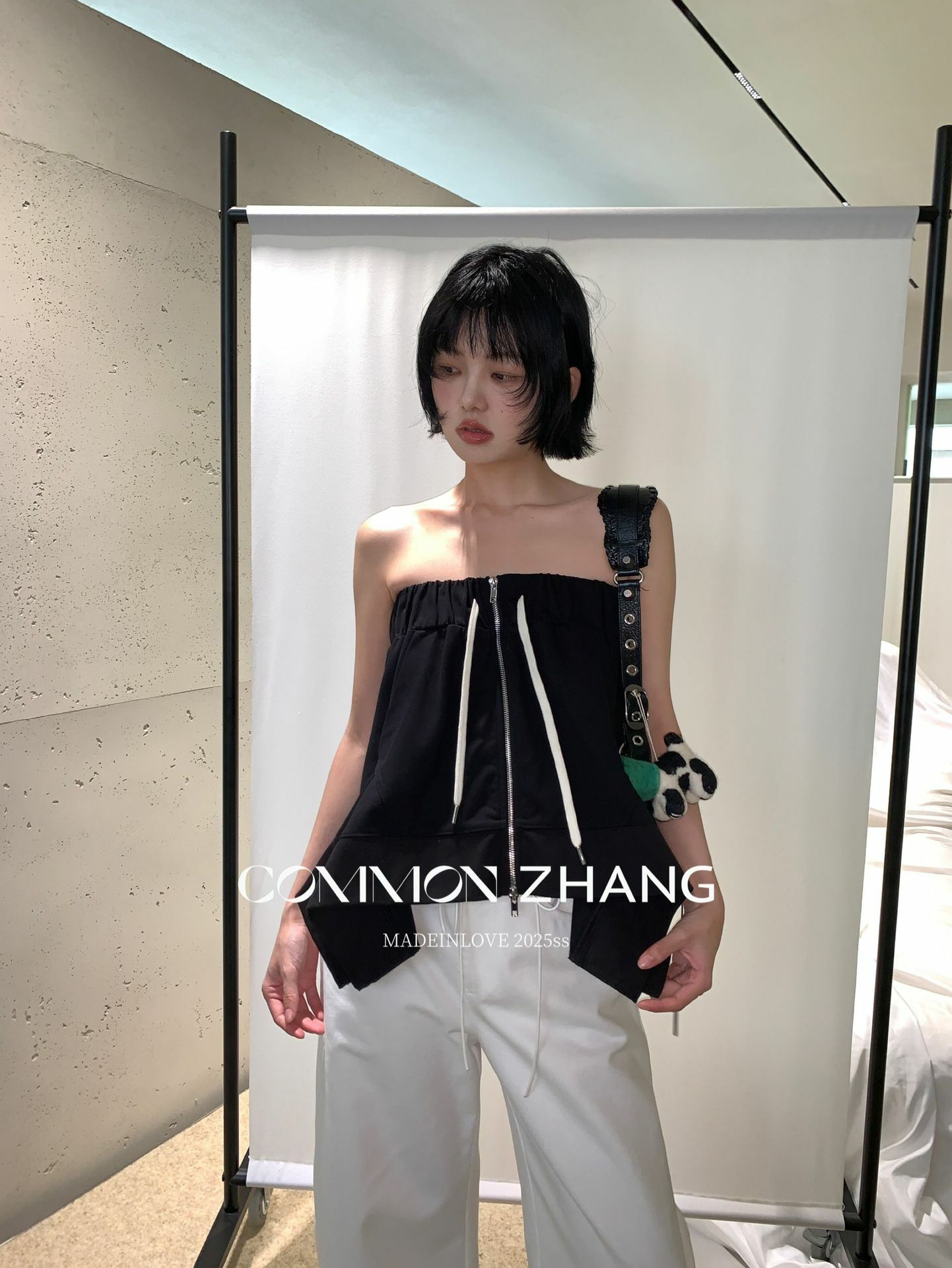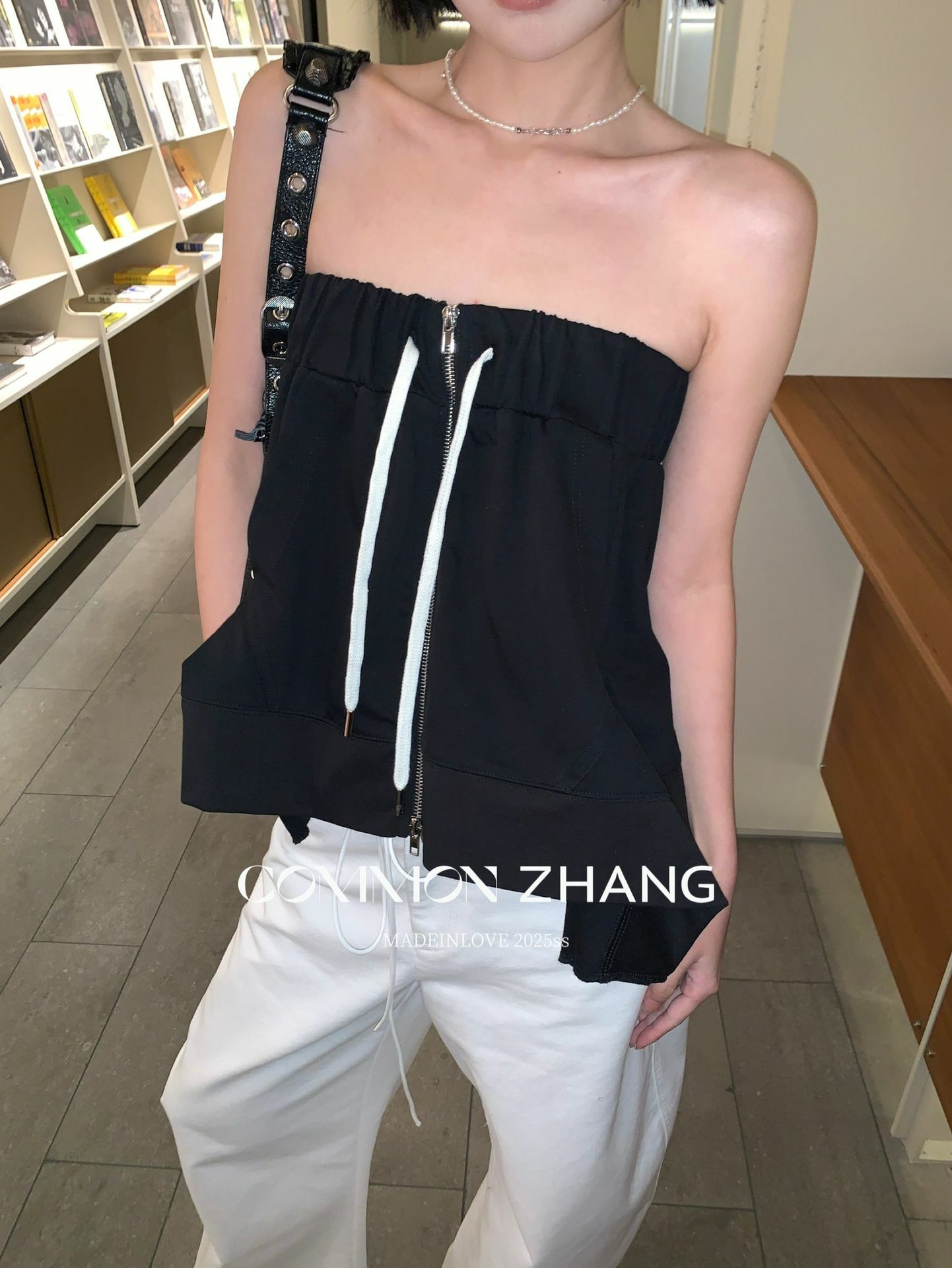 *o-ha-you*【FCZCB102393】夏季韓版設計感抽繩雙開拉鏈一穿兩用抹胸A字短裙-3色