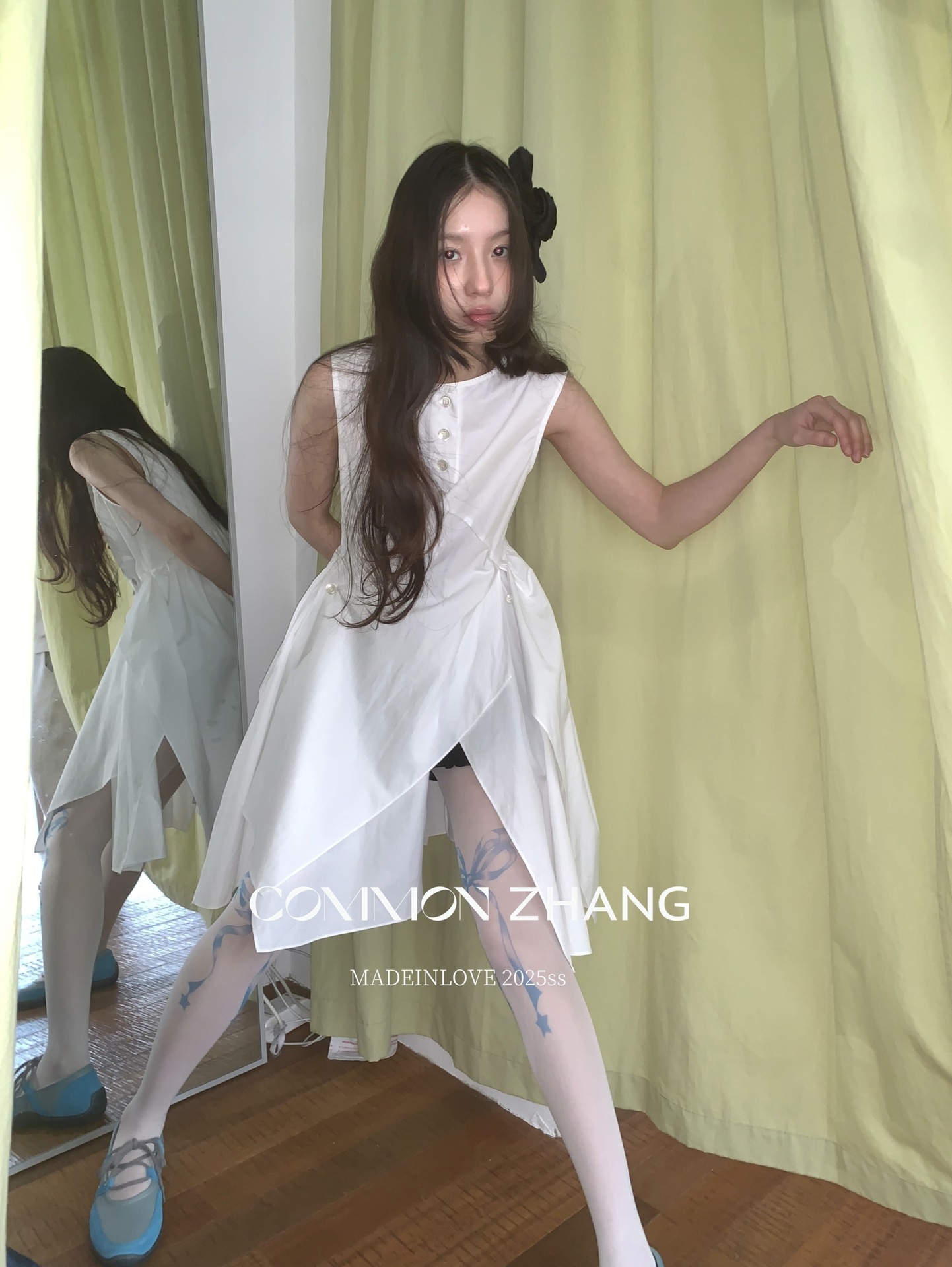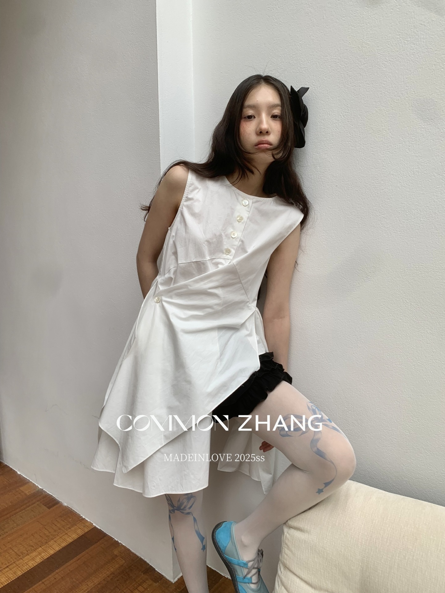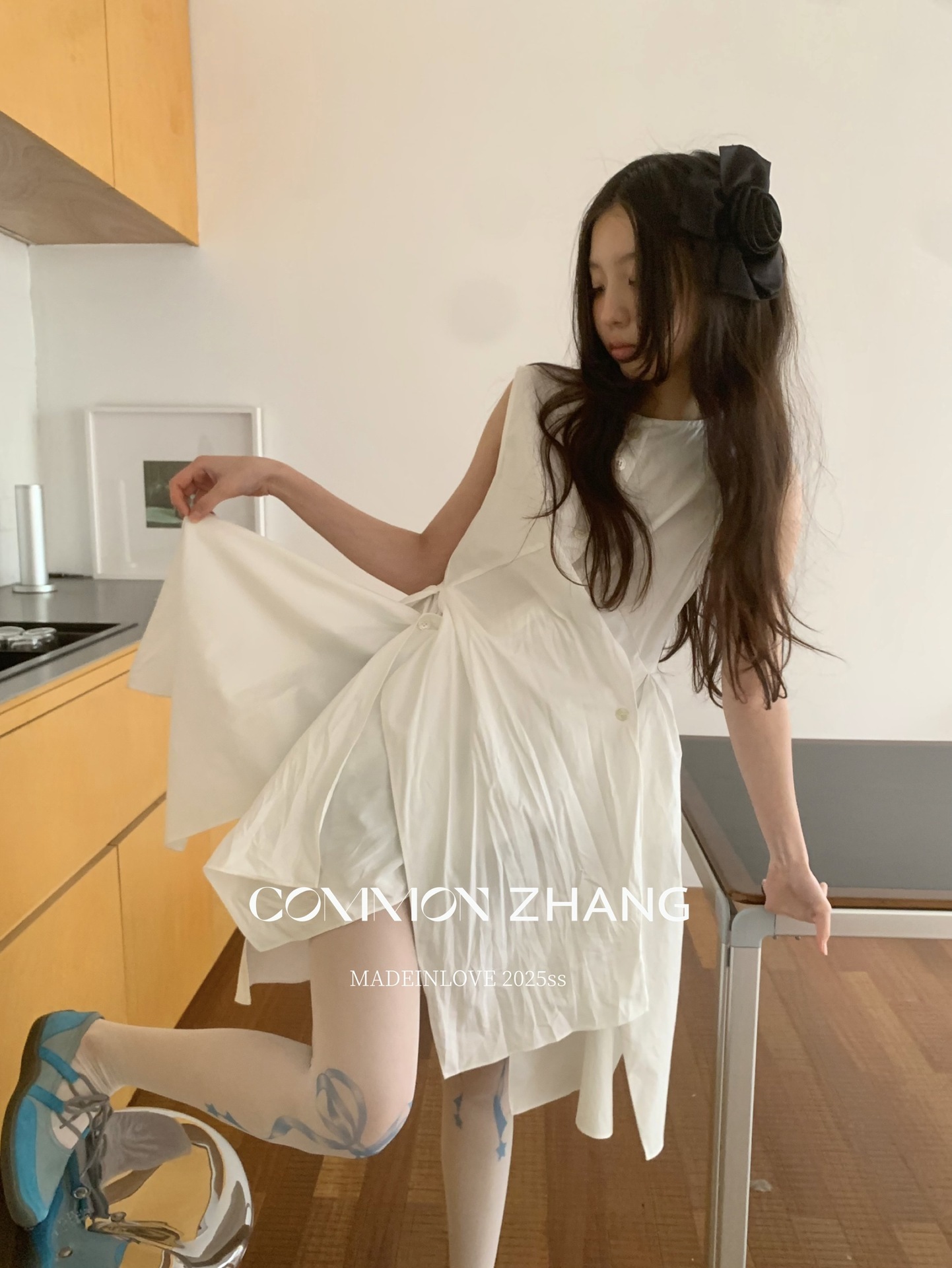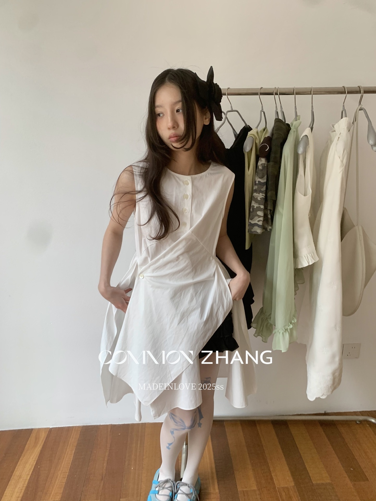 *o-ha-you*【FCZCB103186】夏季韓版小眾減齡不規則圓領無袖坎肩襯衫連衣裙洋裝-2色
