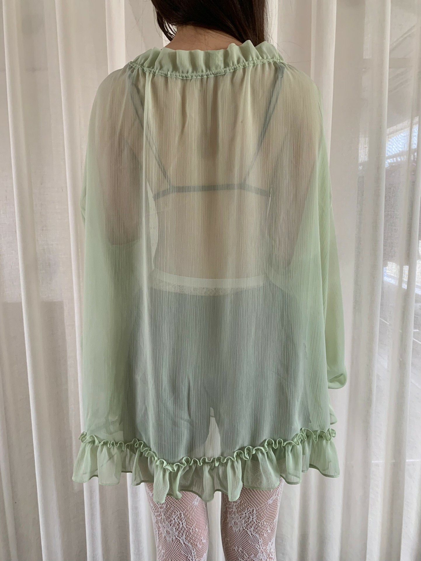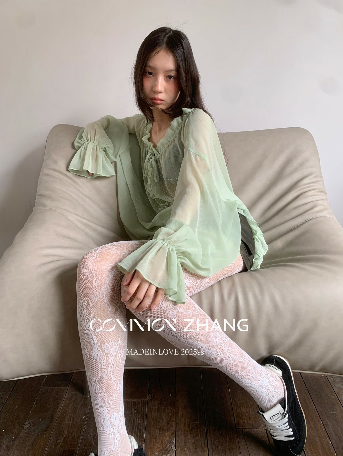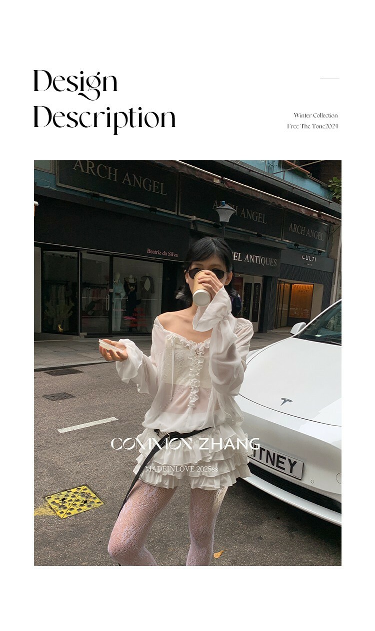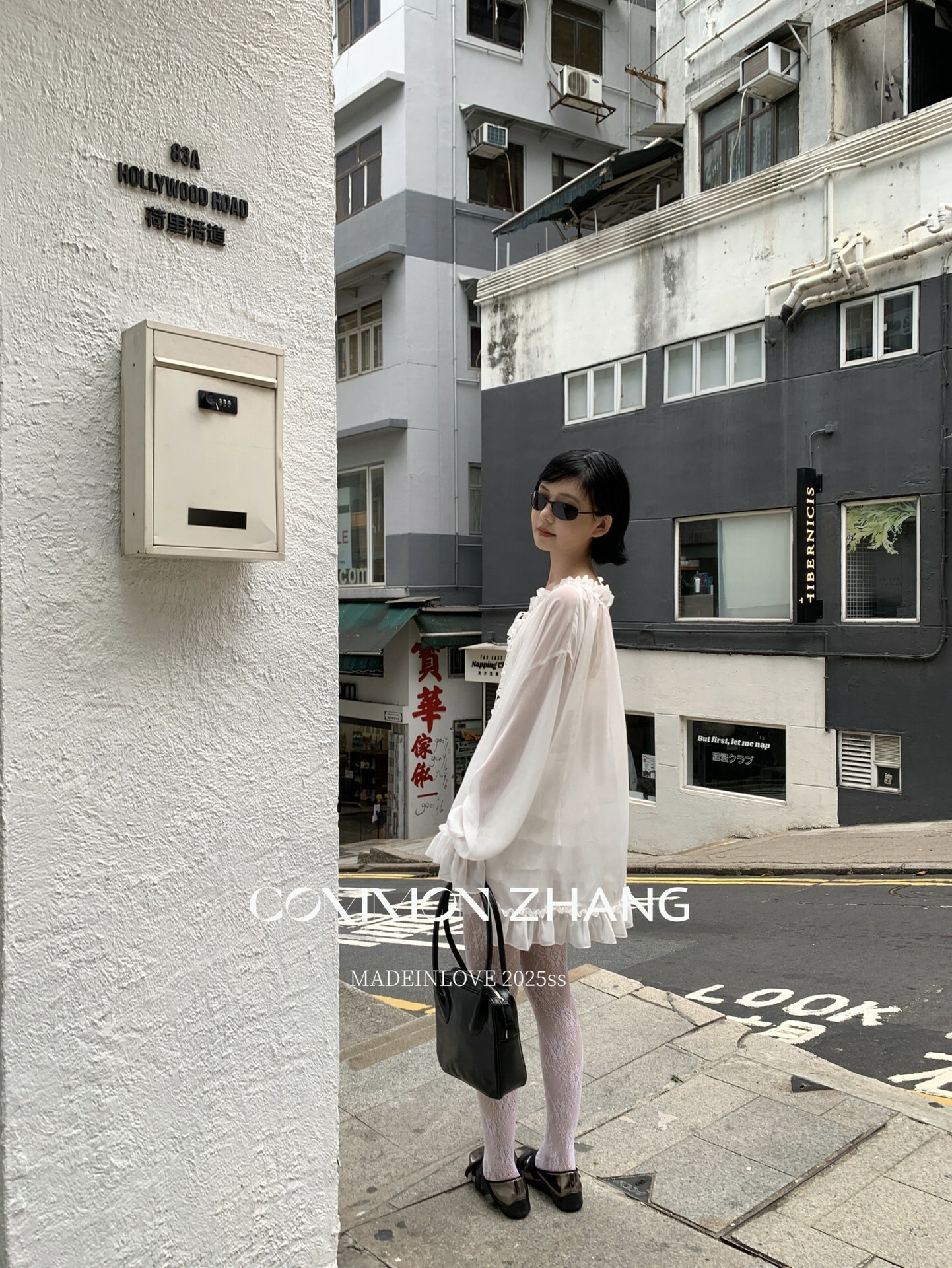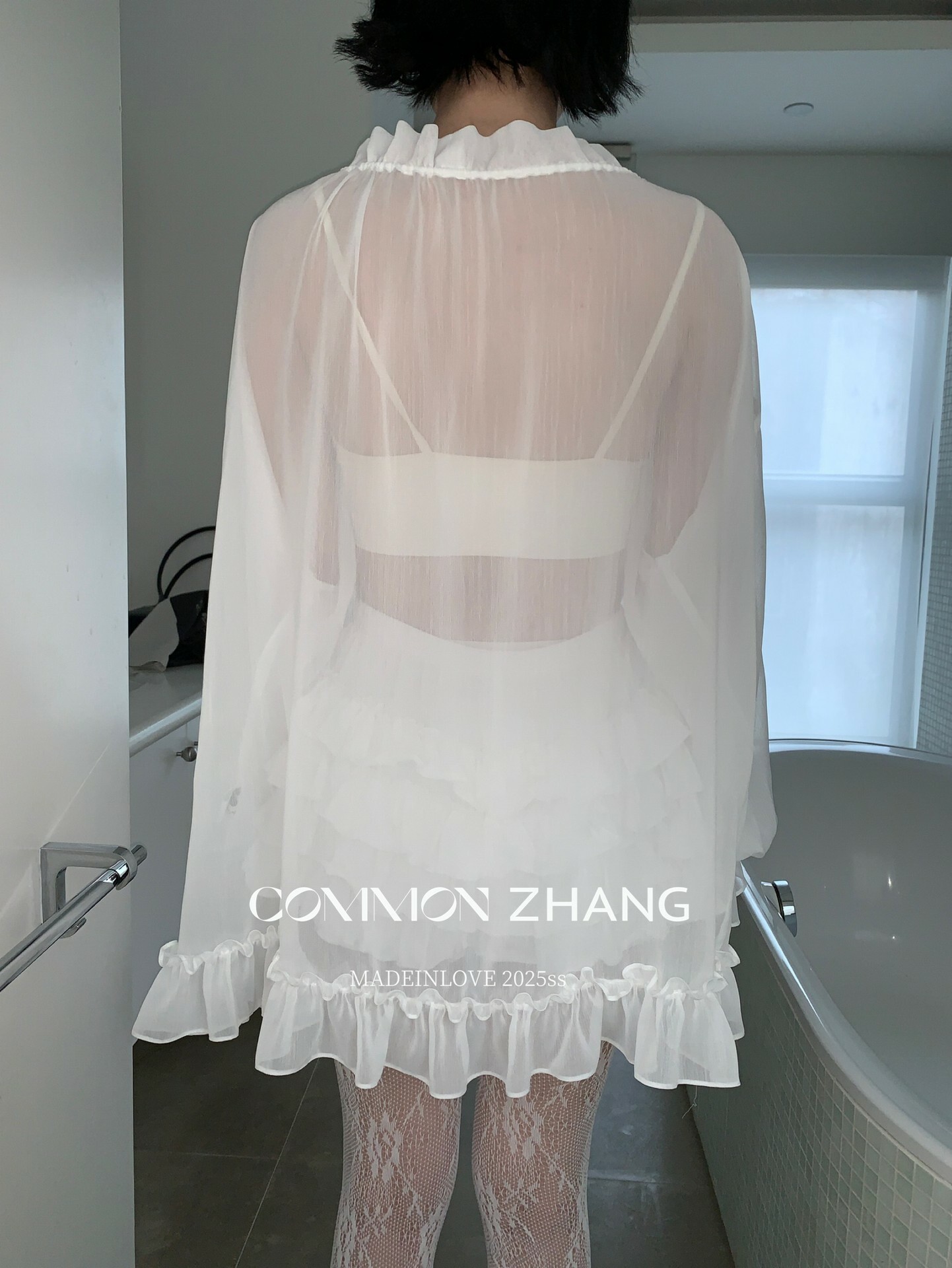 *o-ha-you*【FCZCB103542】夏季性感透視水滴珠花邊拼接繫帶一字肩百搭小衫-2色