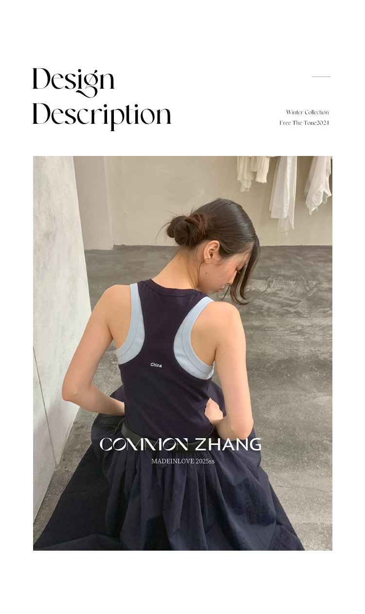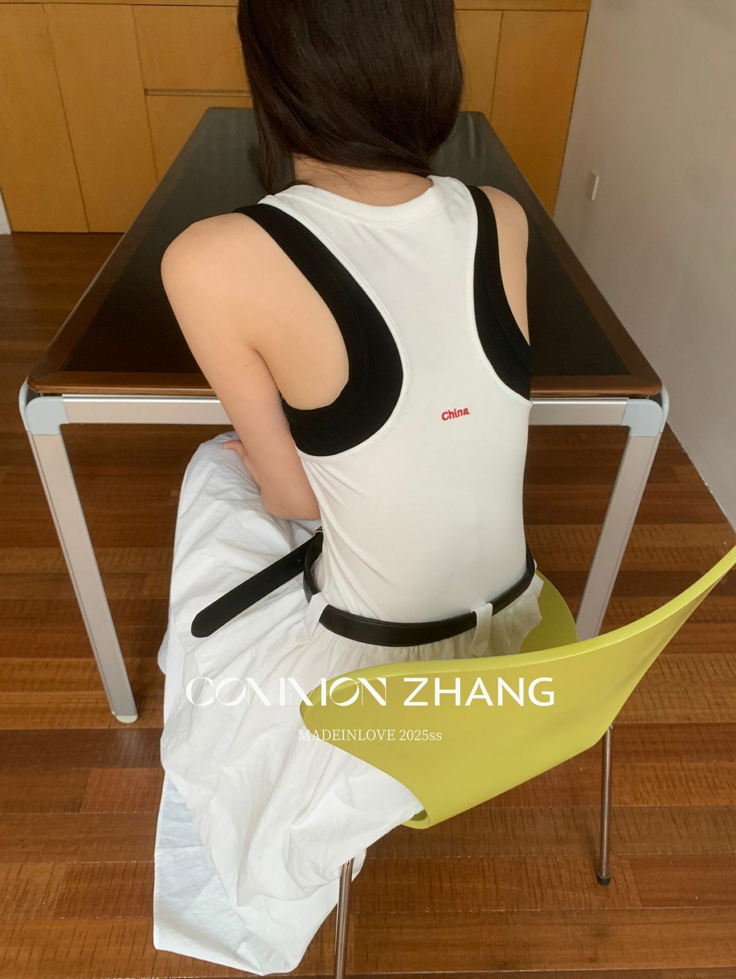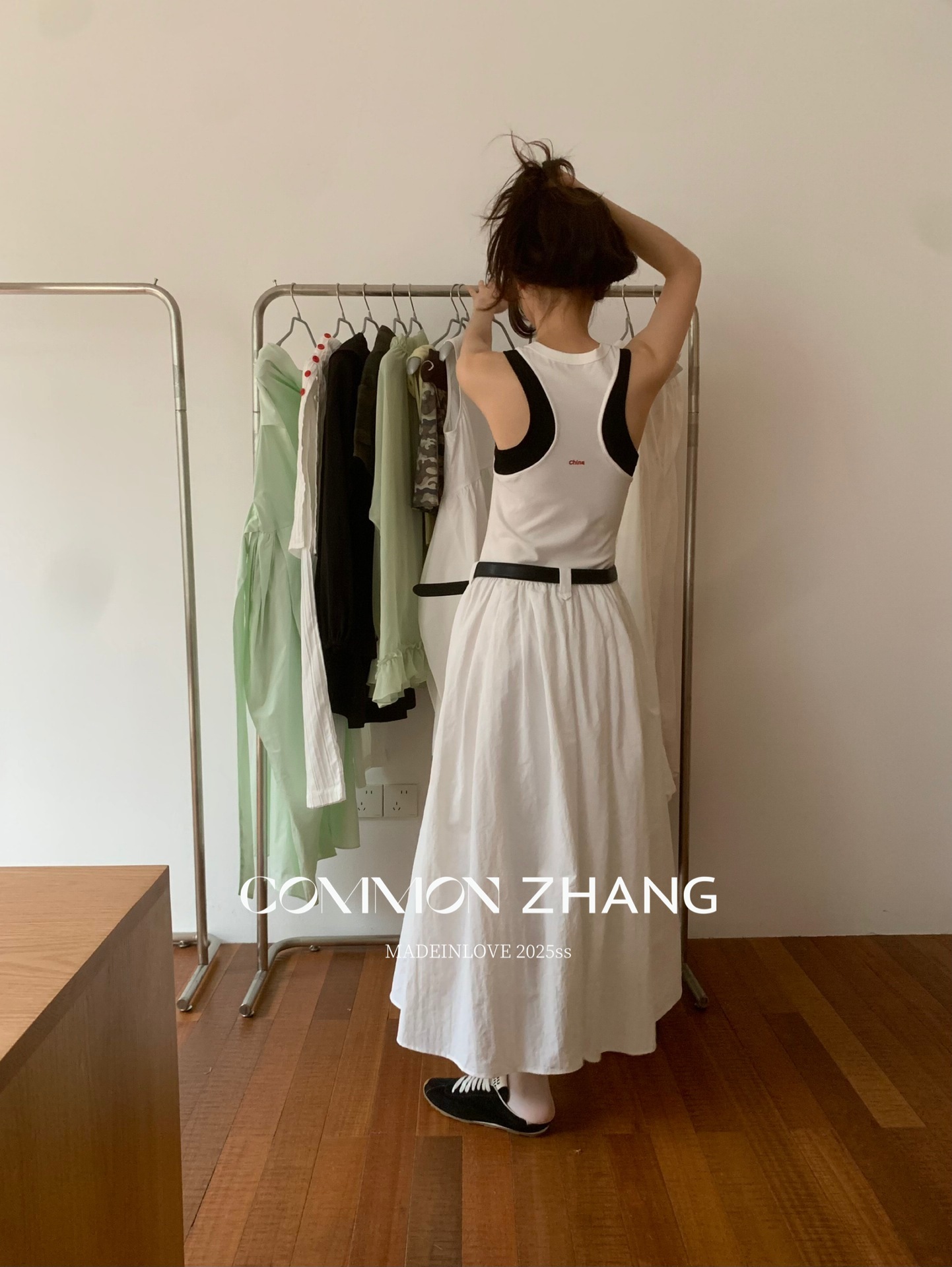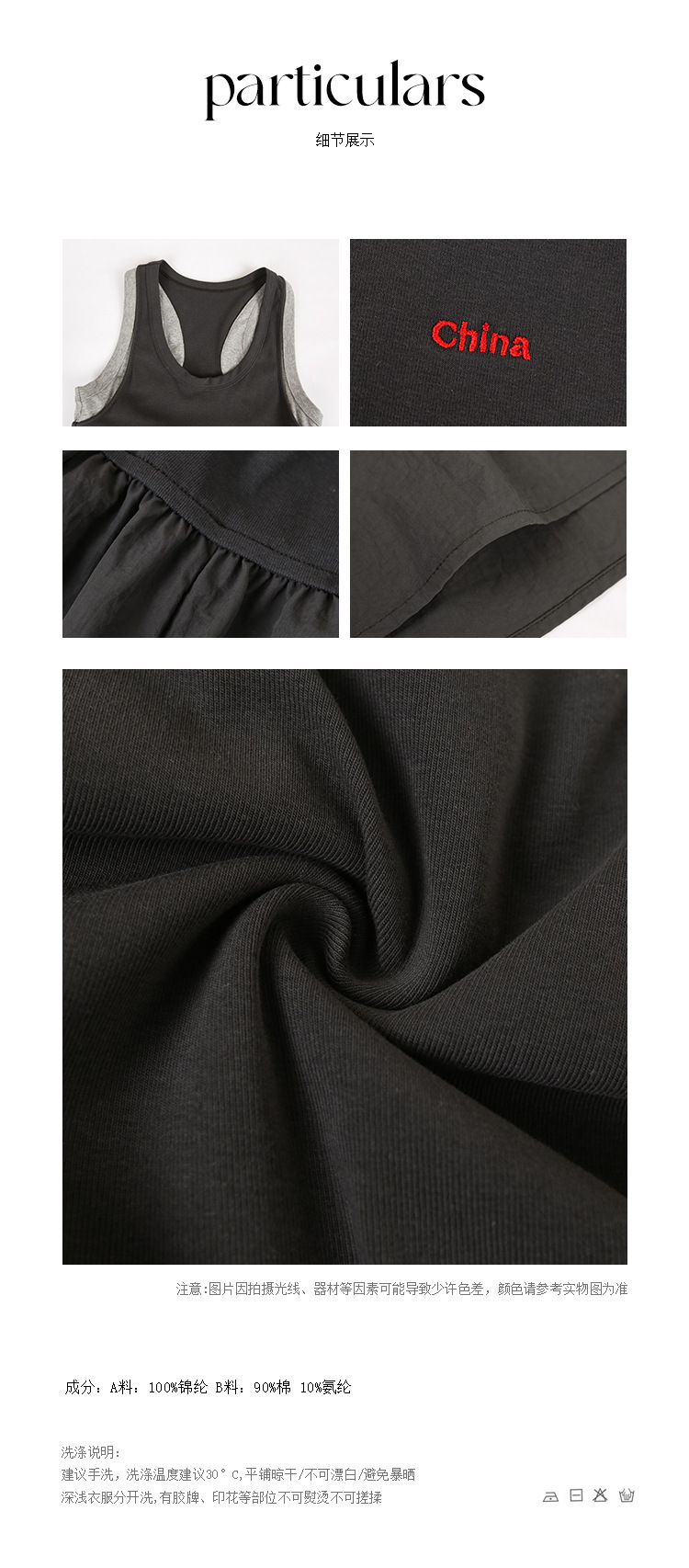 *o-ha-you*【FCZCB106107-1】夏季字母繡撞色拼色針織拼接A字背心連衣裙洋裝-4色