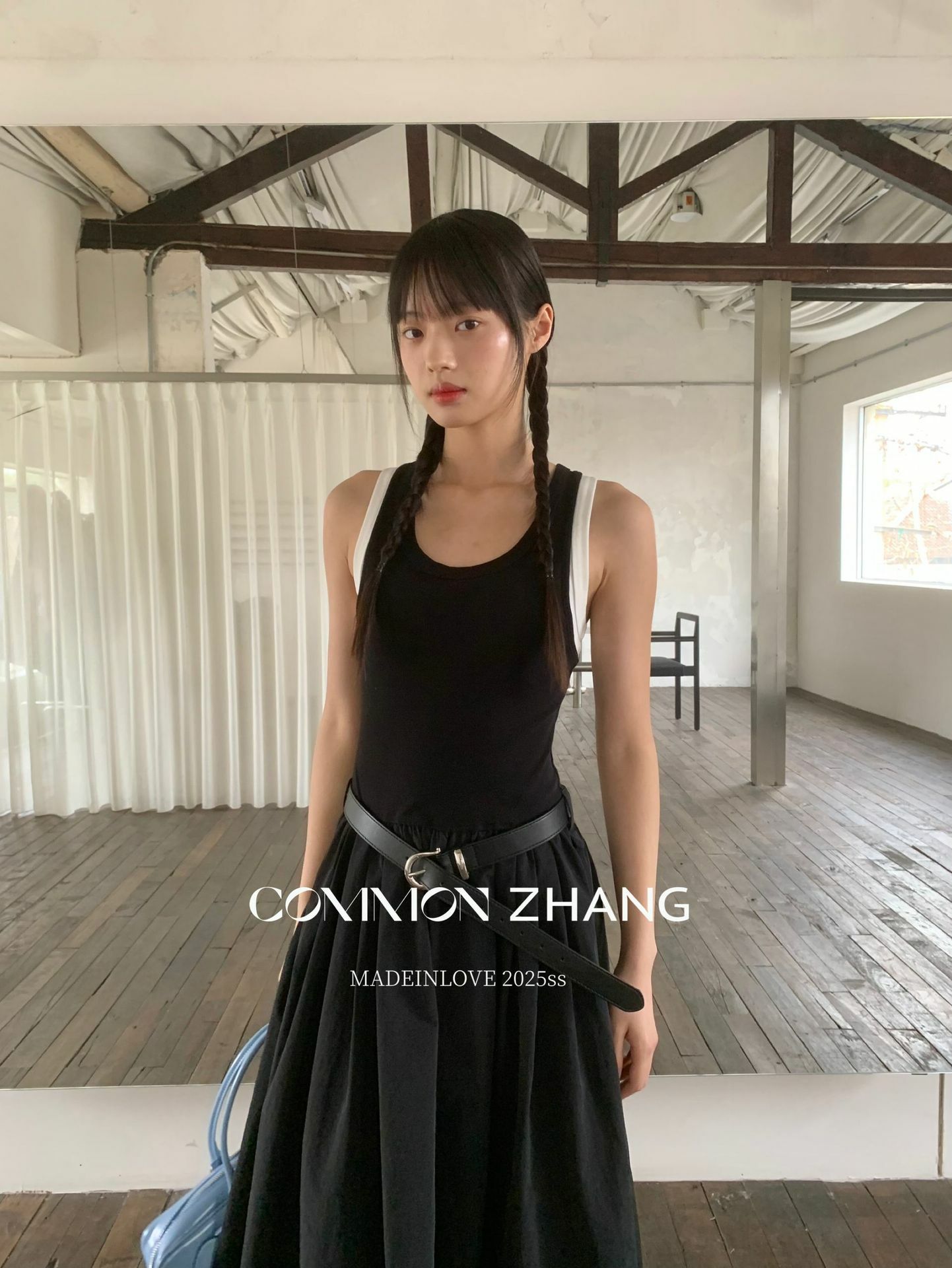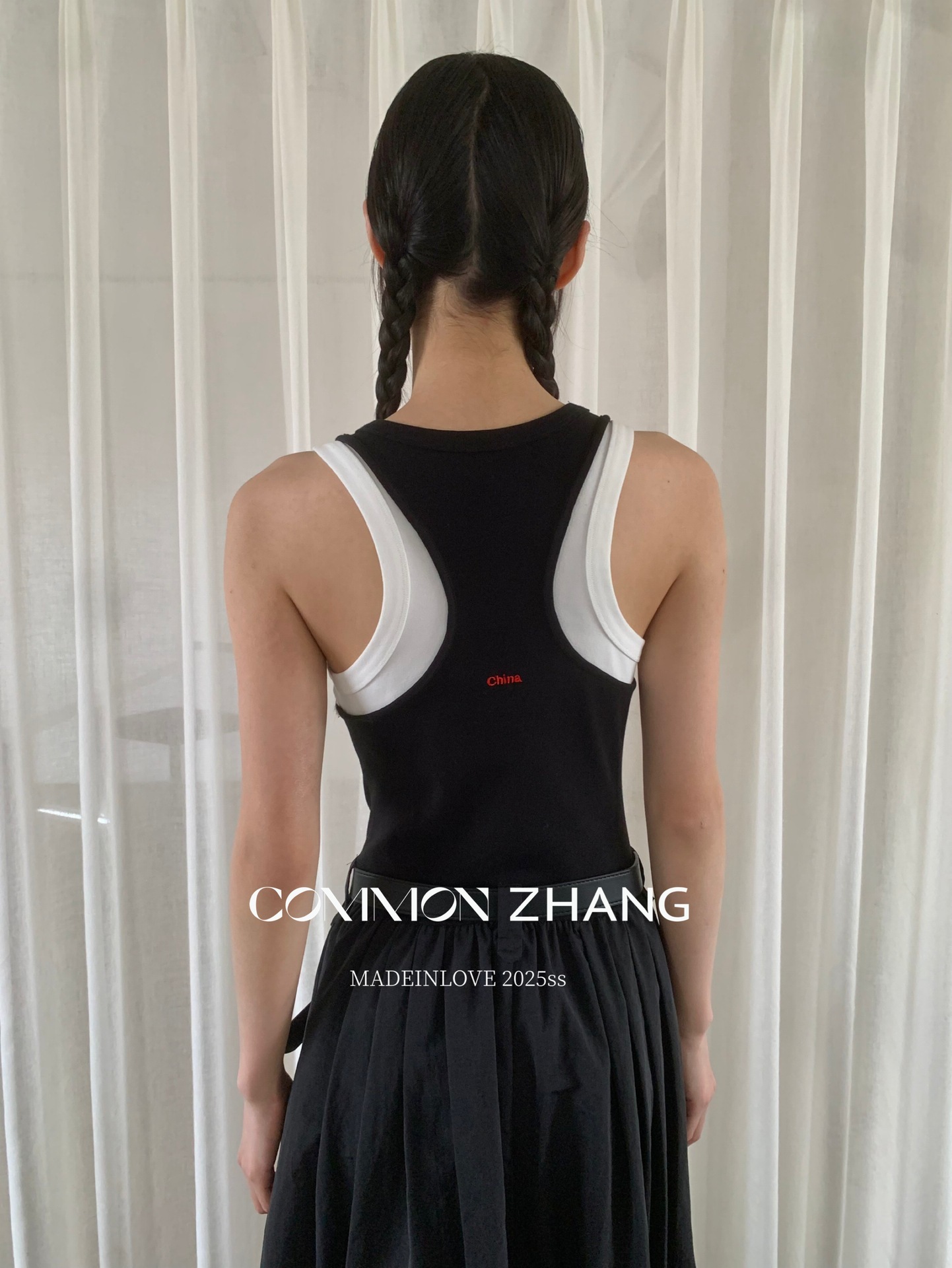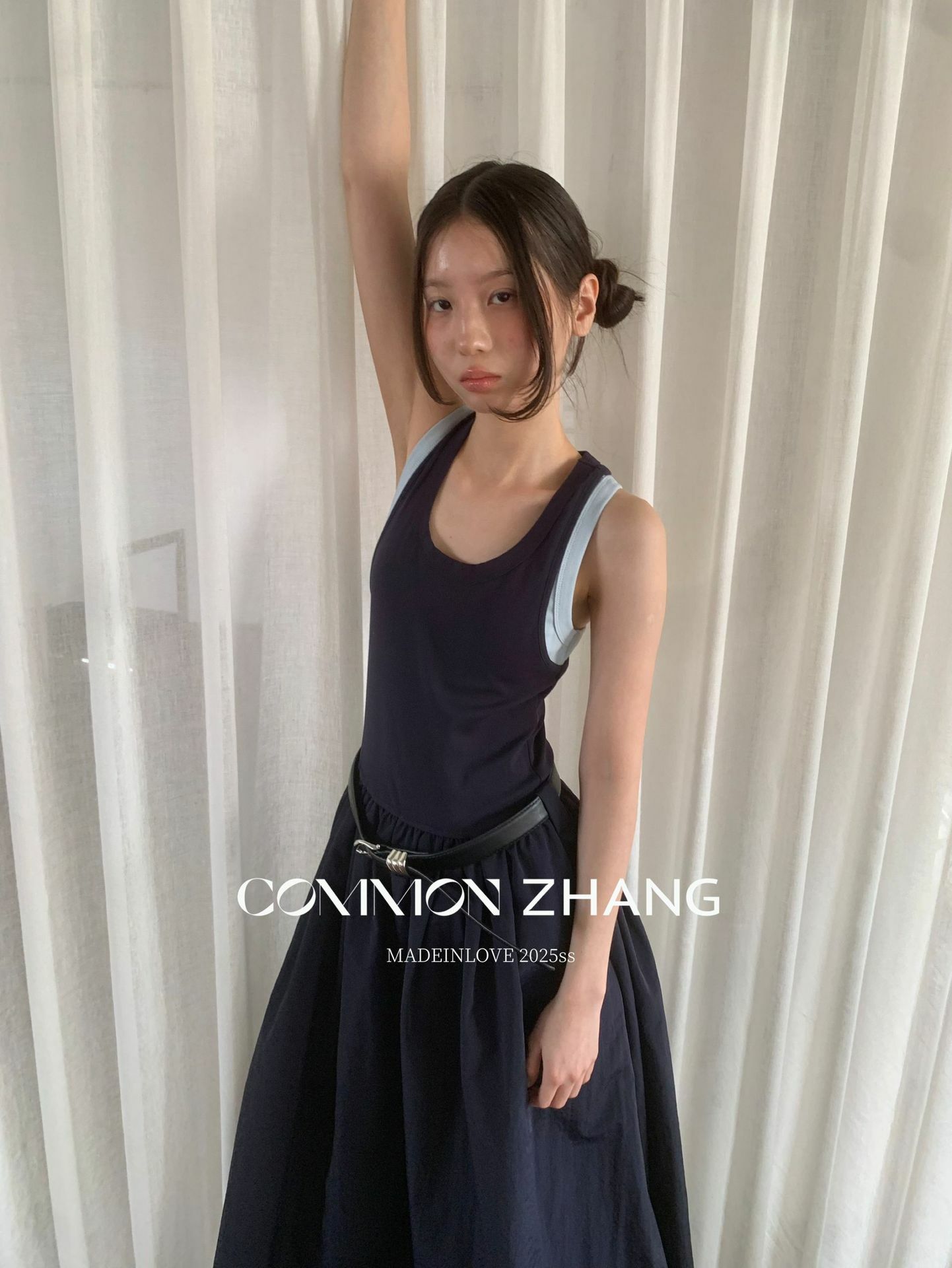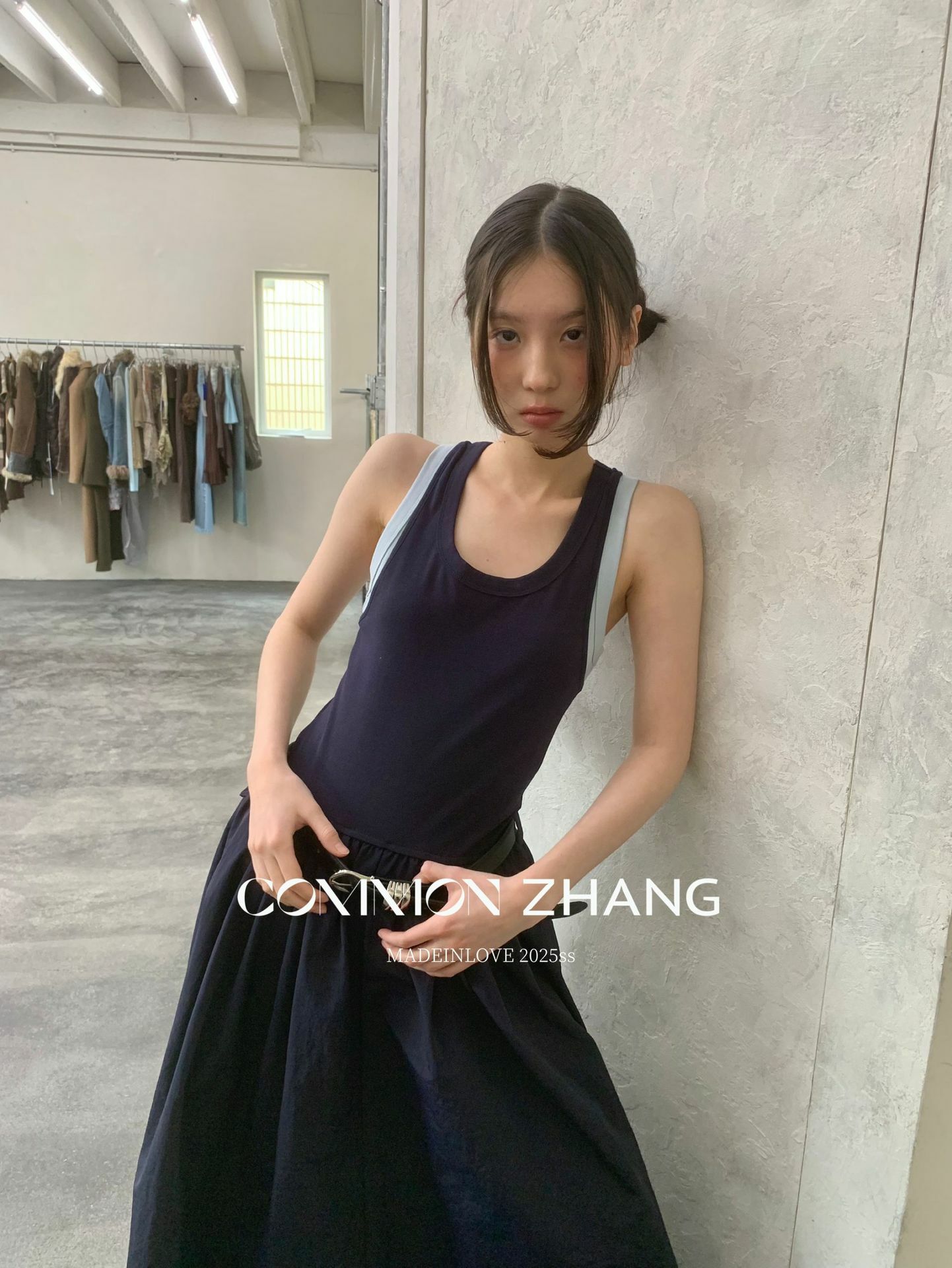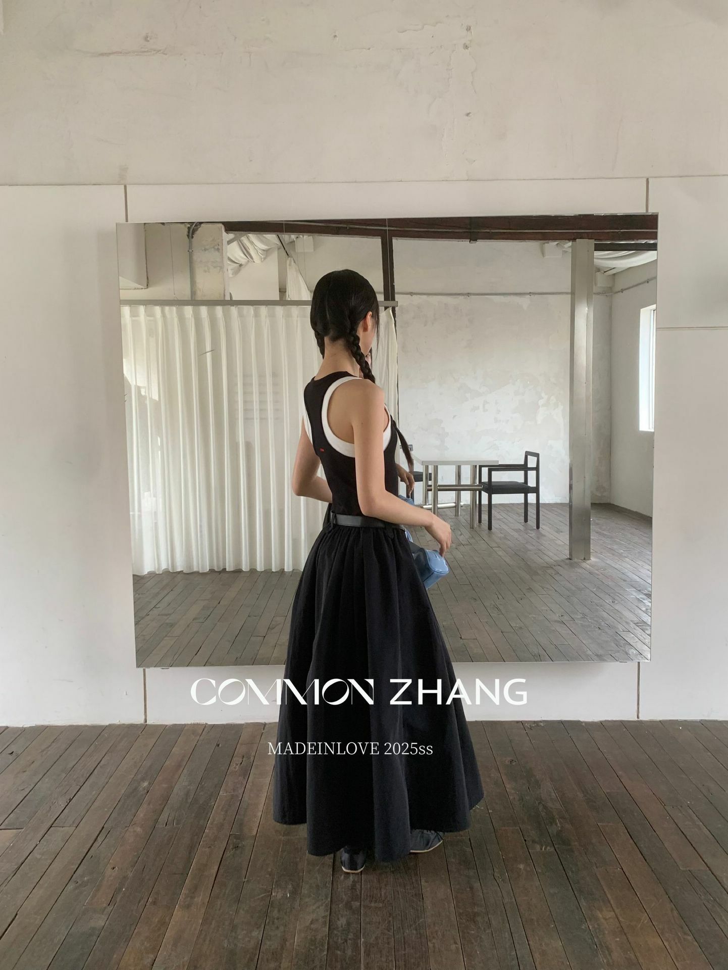 *o-ha-you*【FCZCB106107-1】夏季字母繡撞色拼色針織拼接A字背心連衣裙洋裝-4色