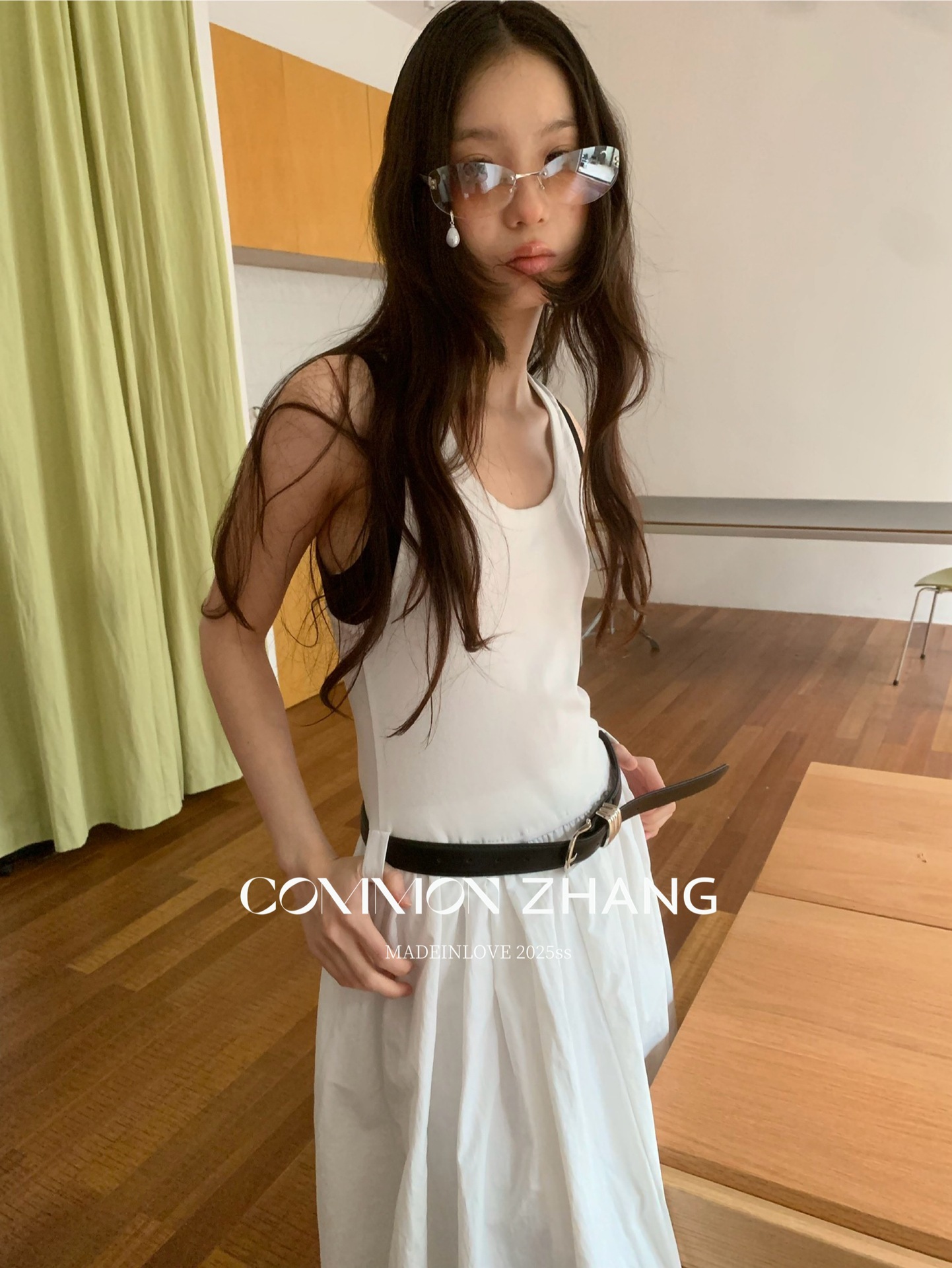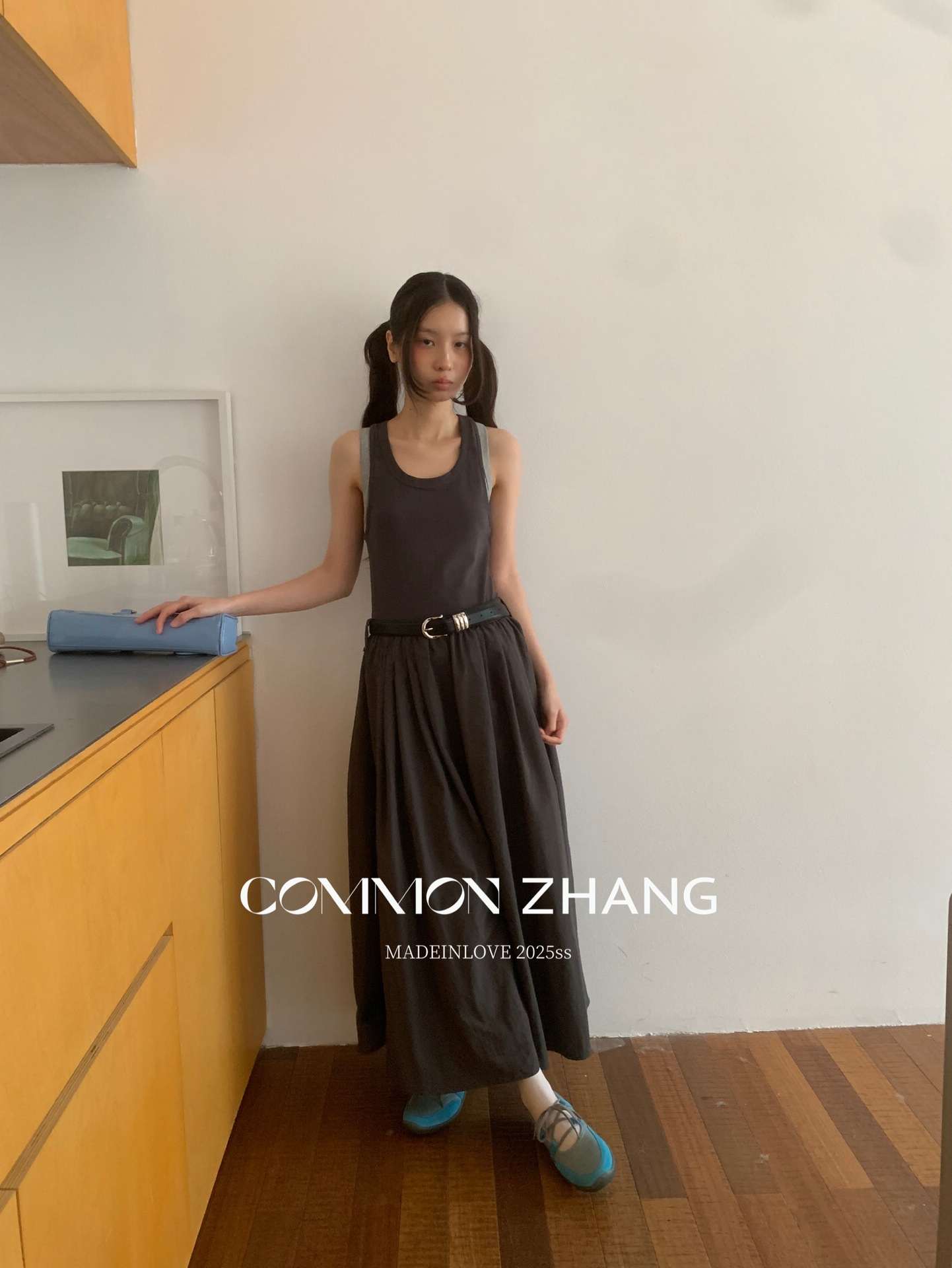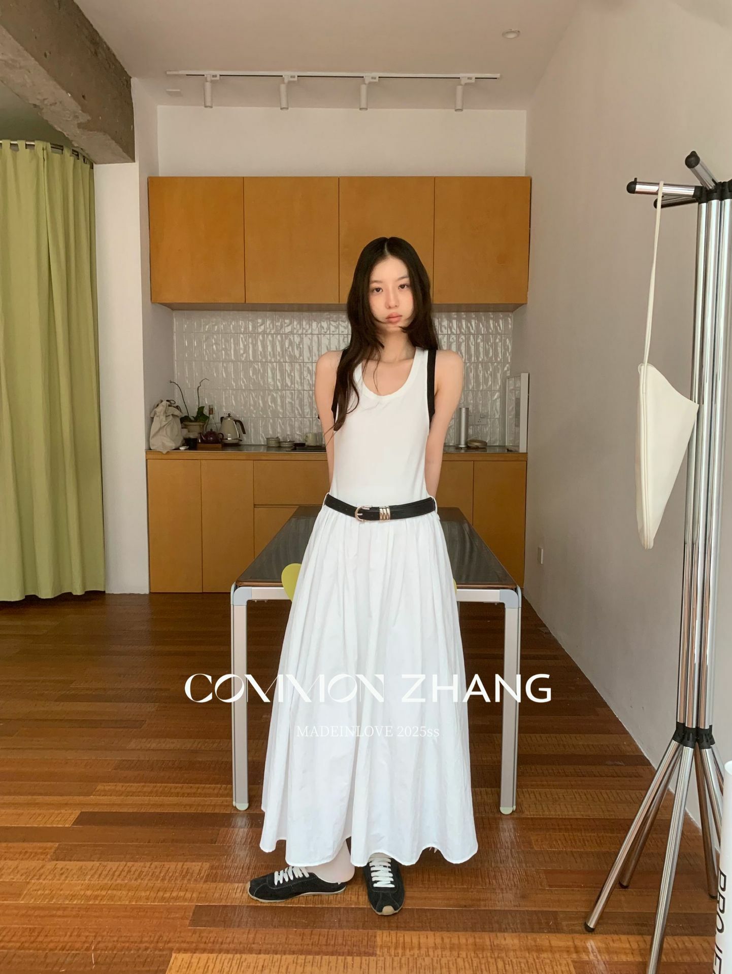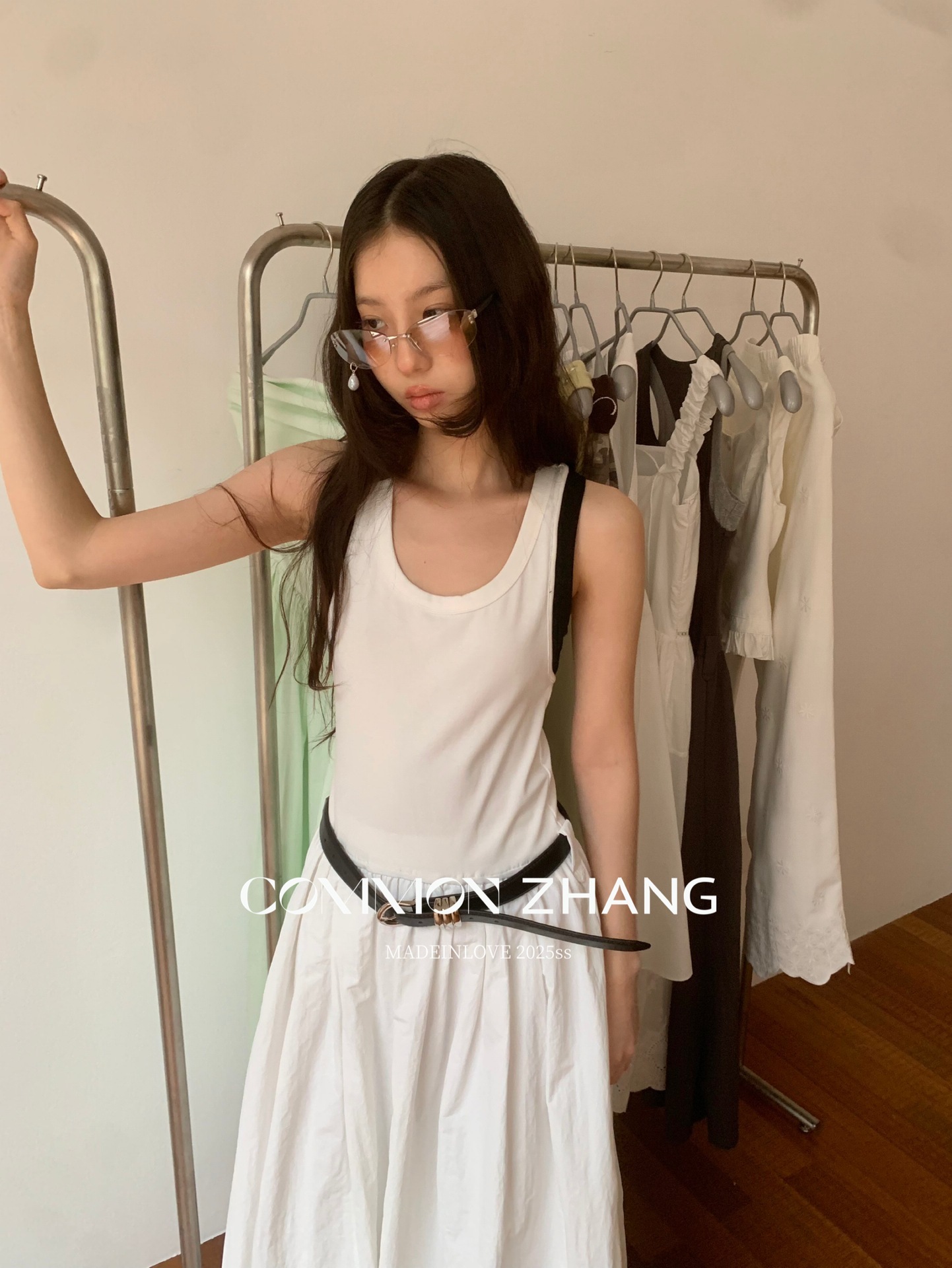 *o-ha-you*【FCZCB106107-1】夏季字母繡撞色拼色針織拼接A字背心連衣裙洋裝-4色