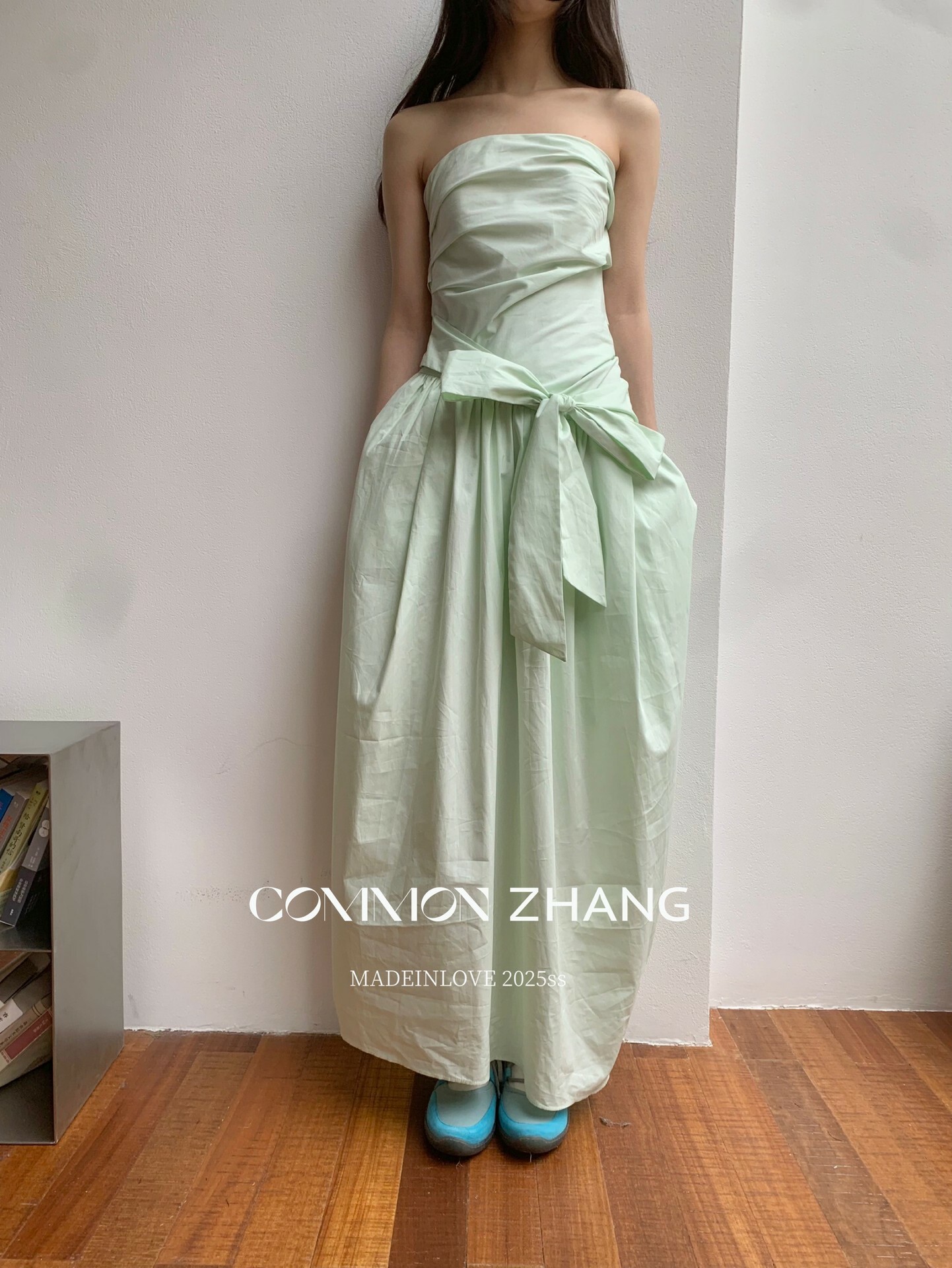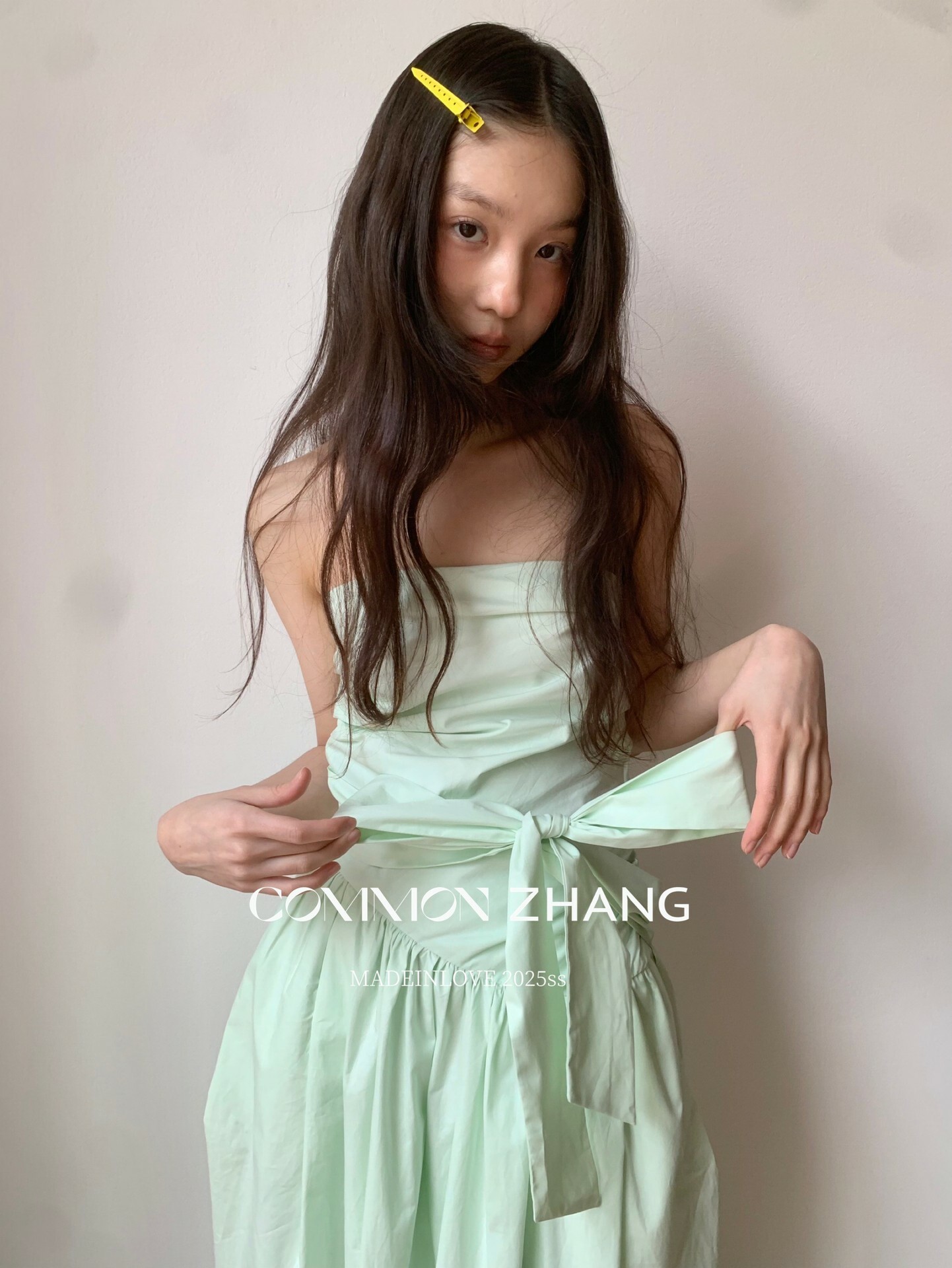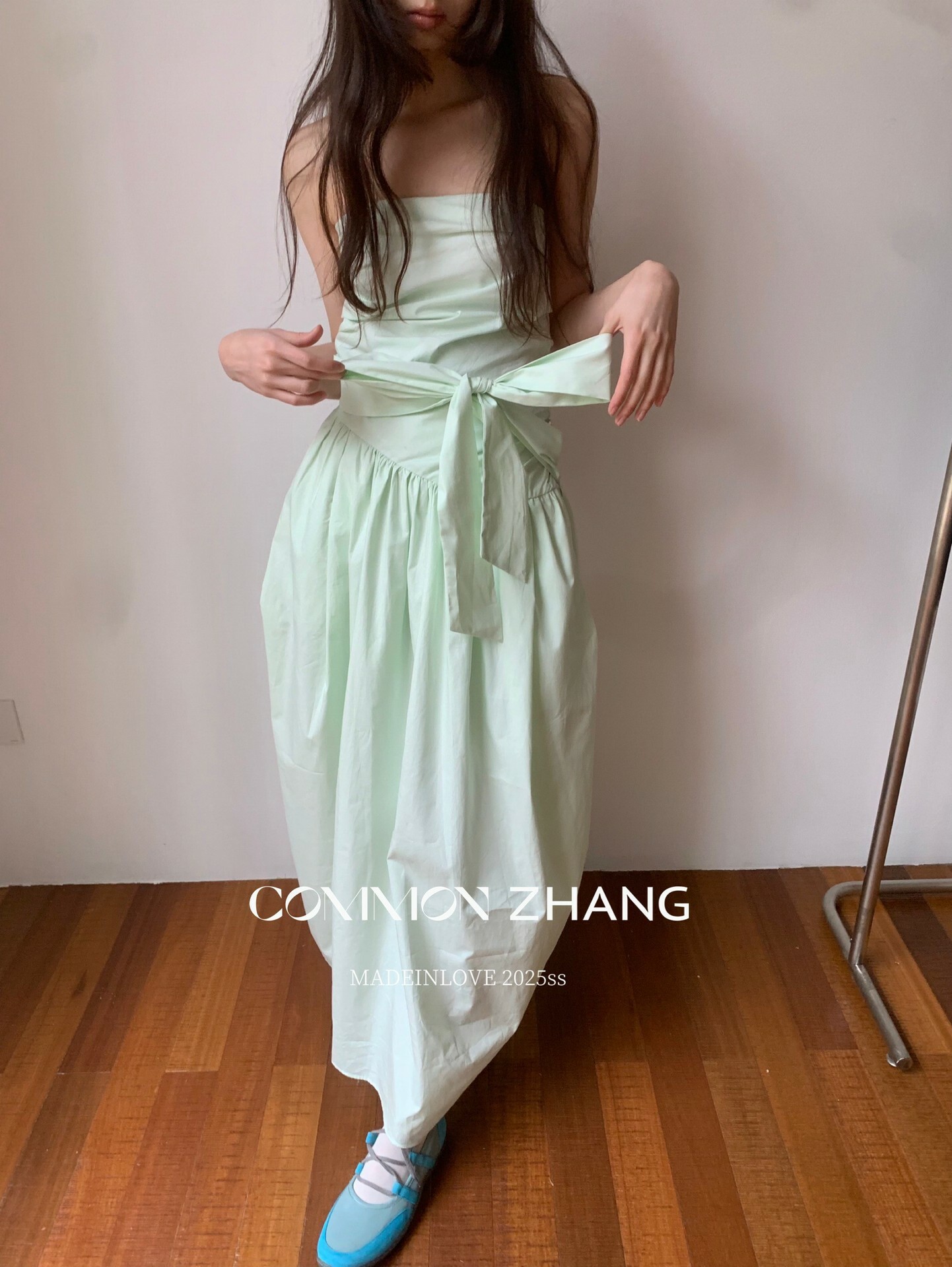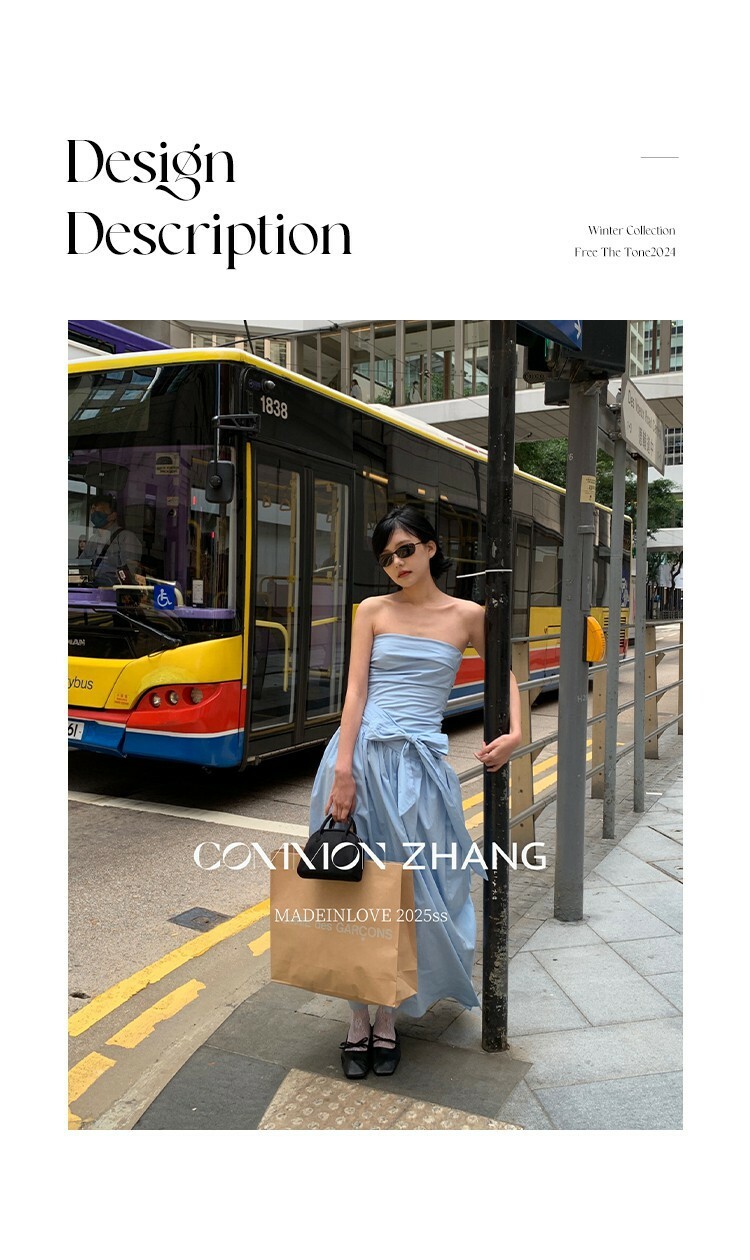 *o-ha-you*【FCZCB106292】通勤時髦淺春系韓風繫帶蝴蝶結純色A字抹胸連衣裙洋裝-4色-如有需要請先諮詢