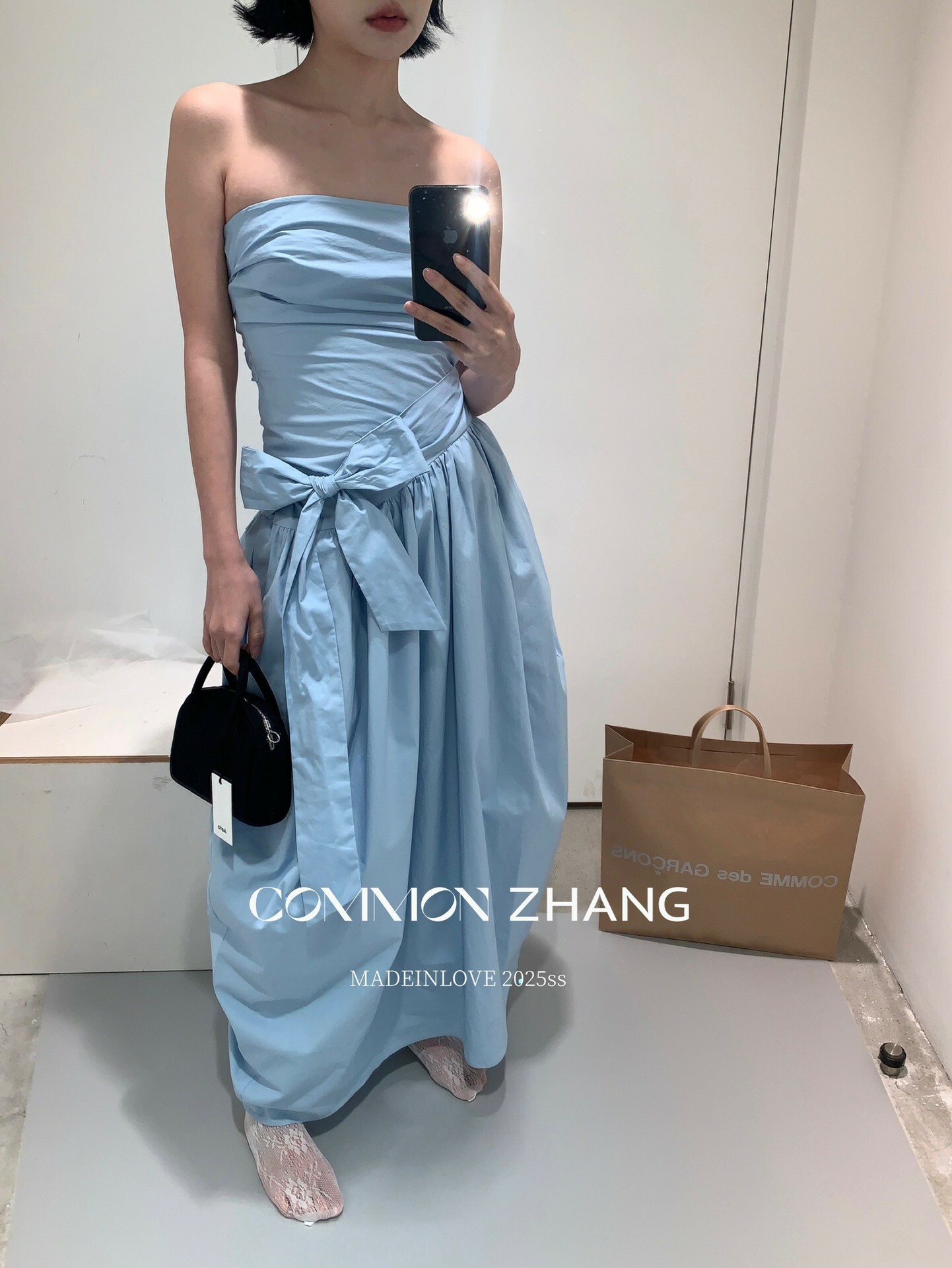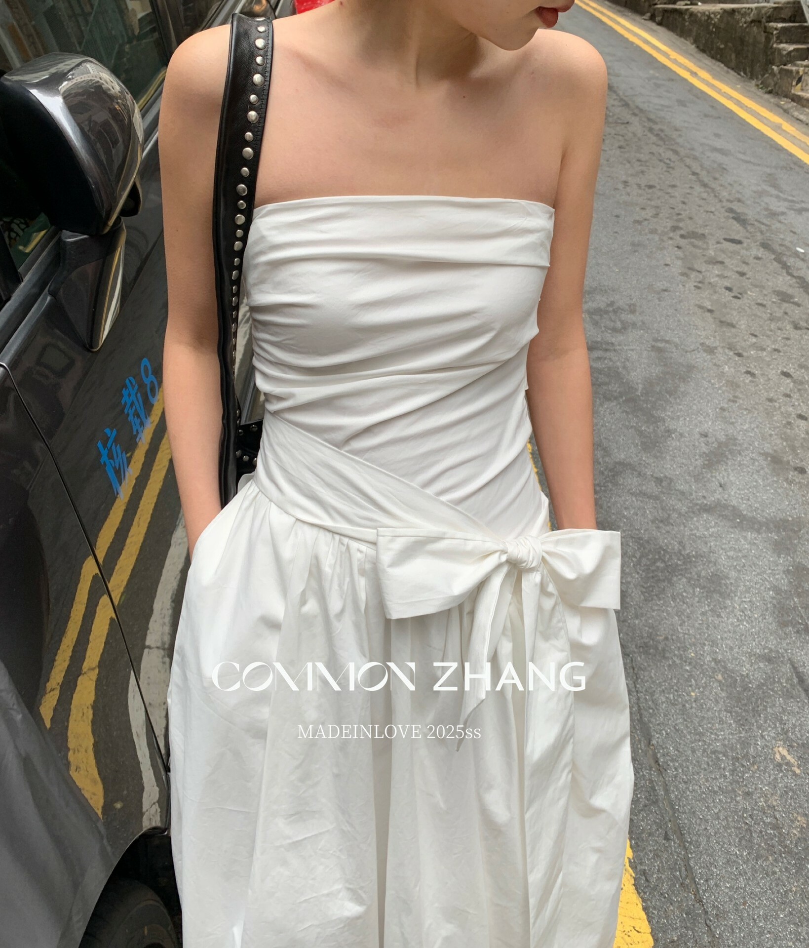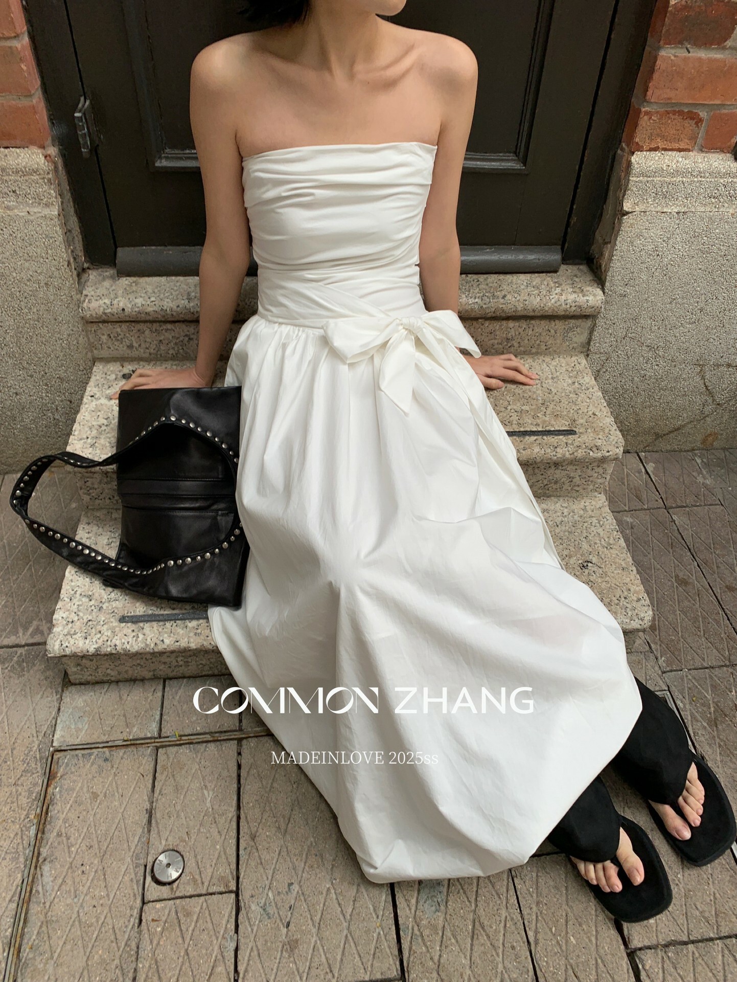 *o-ha-you*【FCZCB106292】通勤時髦淺春系韓風繫帶蝴蝶結純色A字抹胸連衣裙洋裝-4色-如有需要請先諮詢