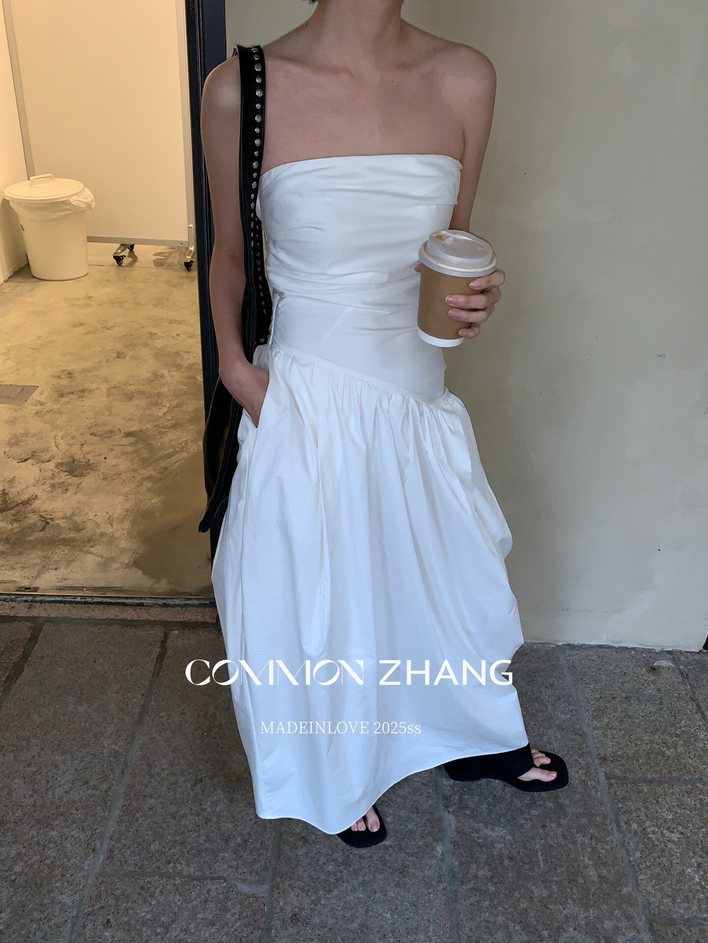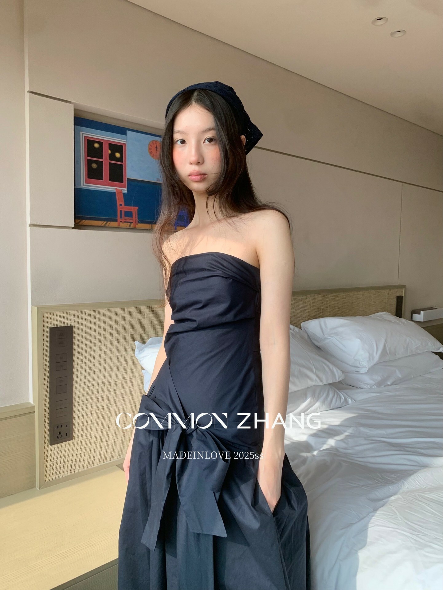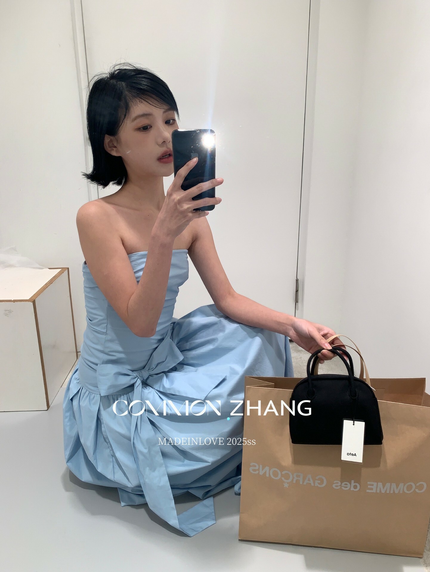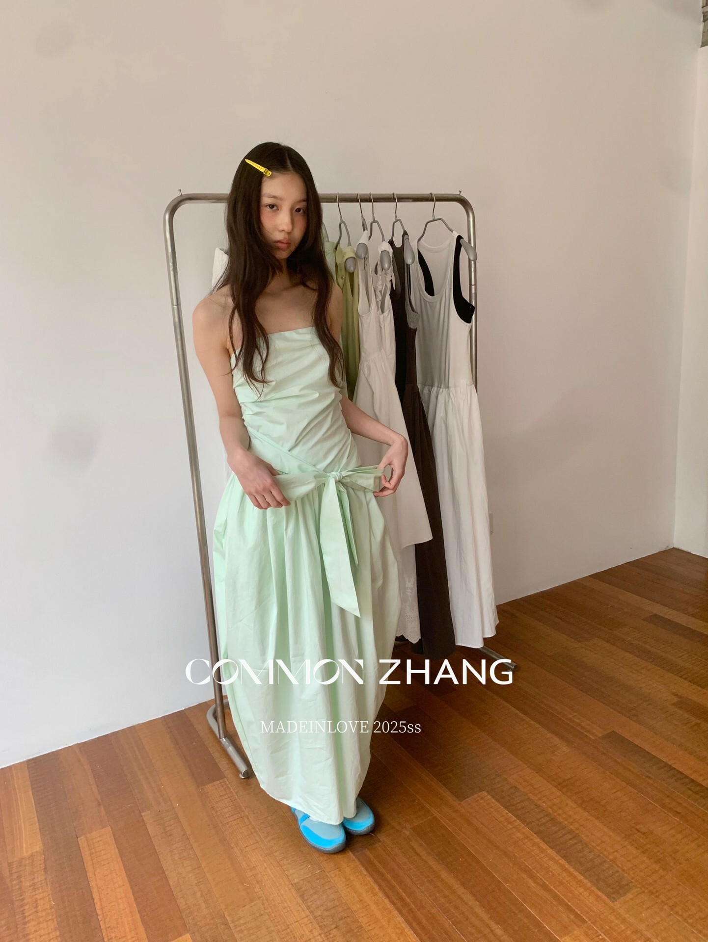 *o-ha-you*【FCZCB106292】通勤時髦淺春系韓風繫帶蝴蝶結純色A字抹胸連衣裙洋裝-4色-如有需要請先諮詢
