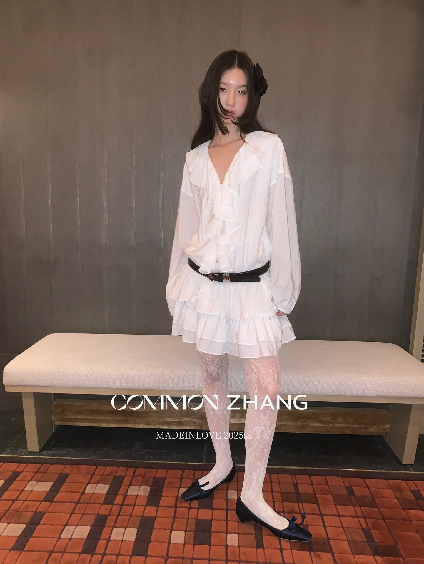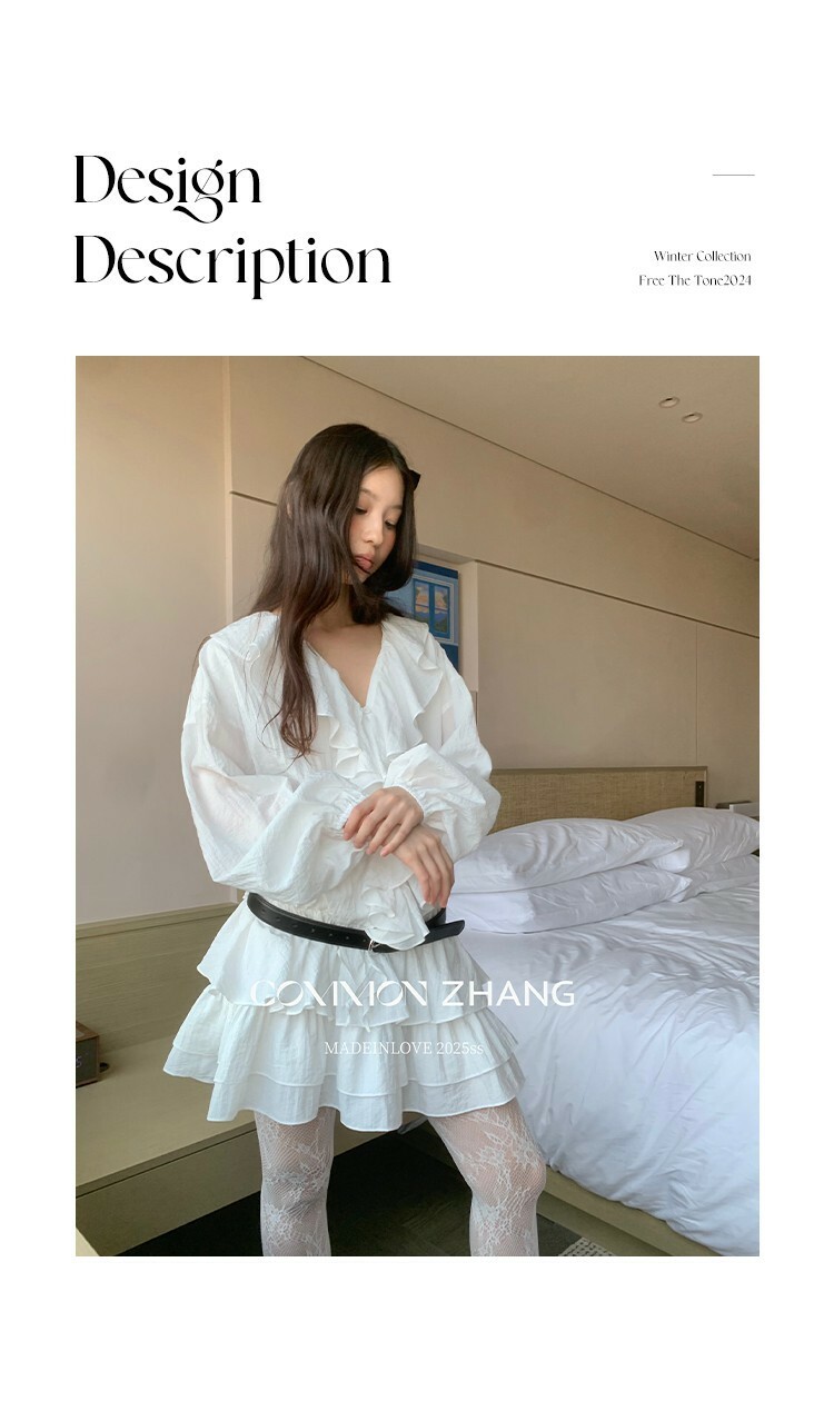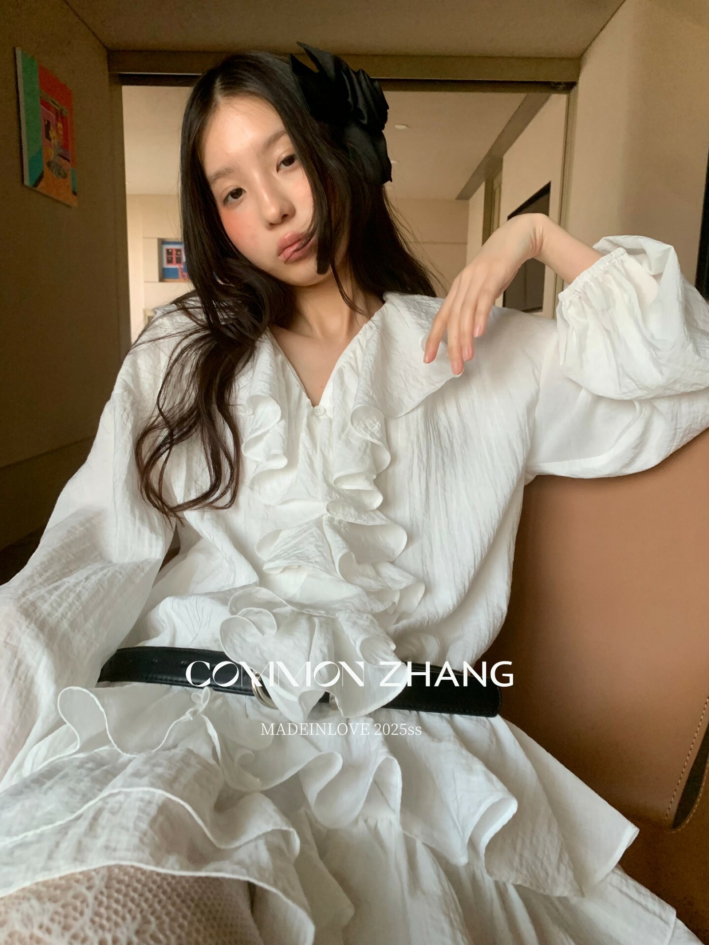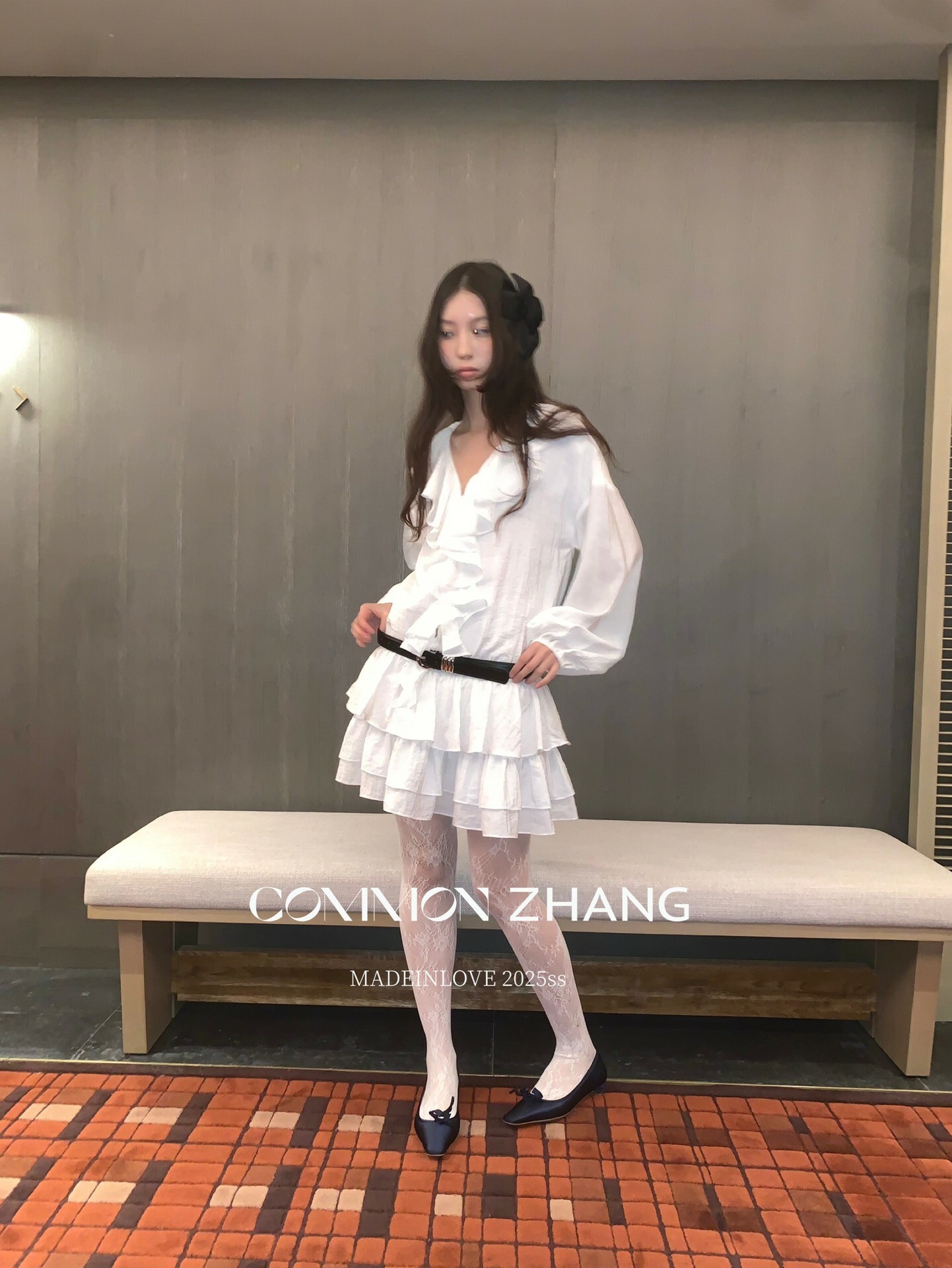 *o-ha-you*【FCZCB106528】夏季法式減齡V領花邊拼接收腰顯瘦層次感連衣裙洋裝-2色