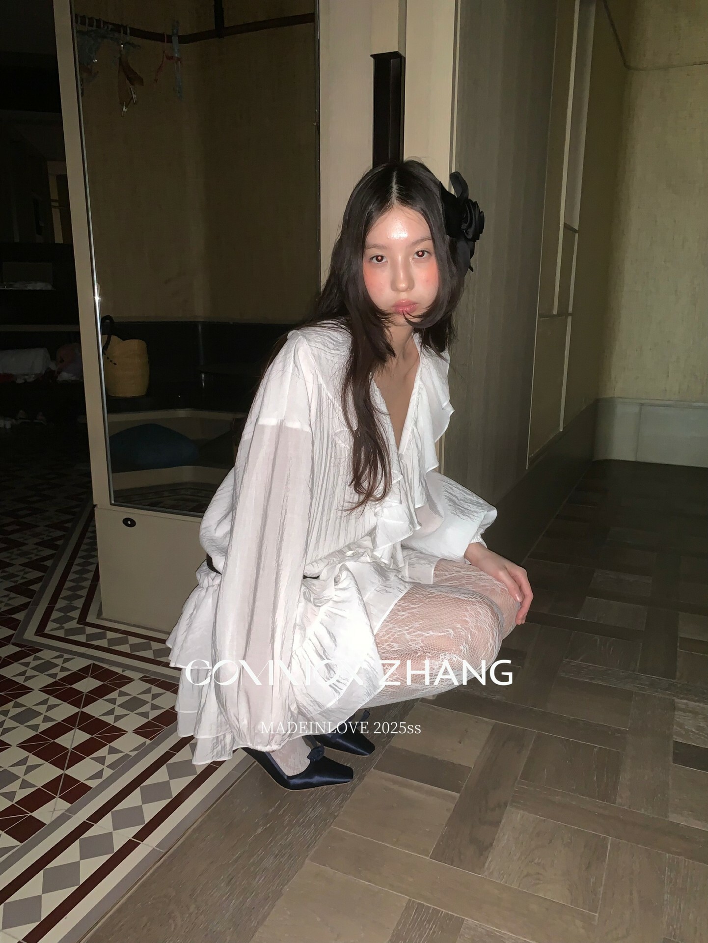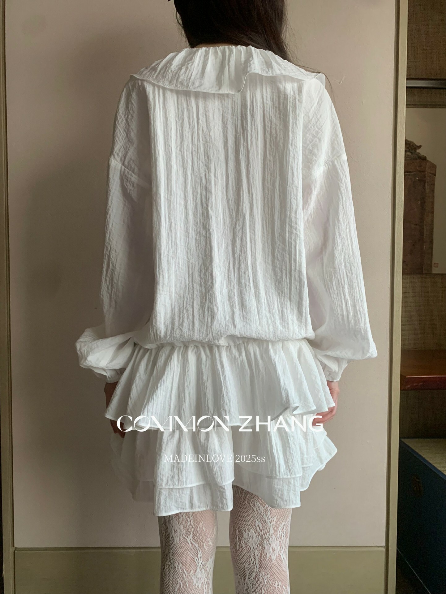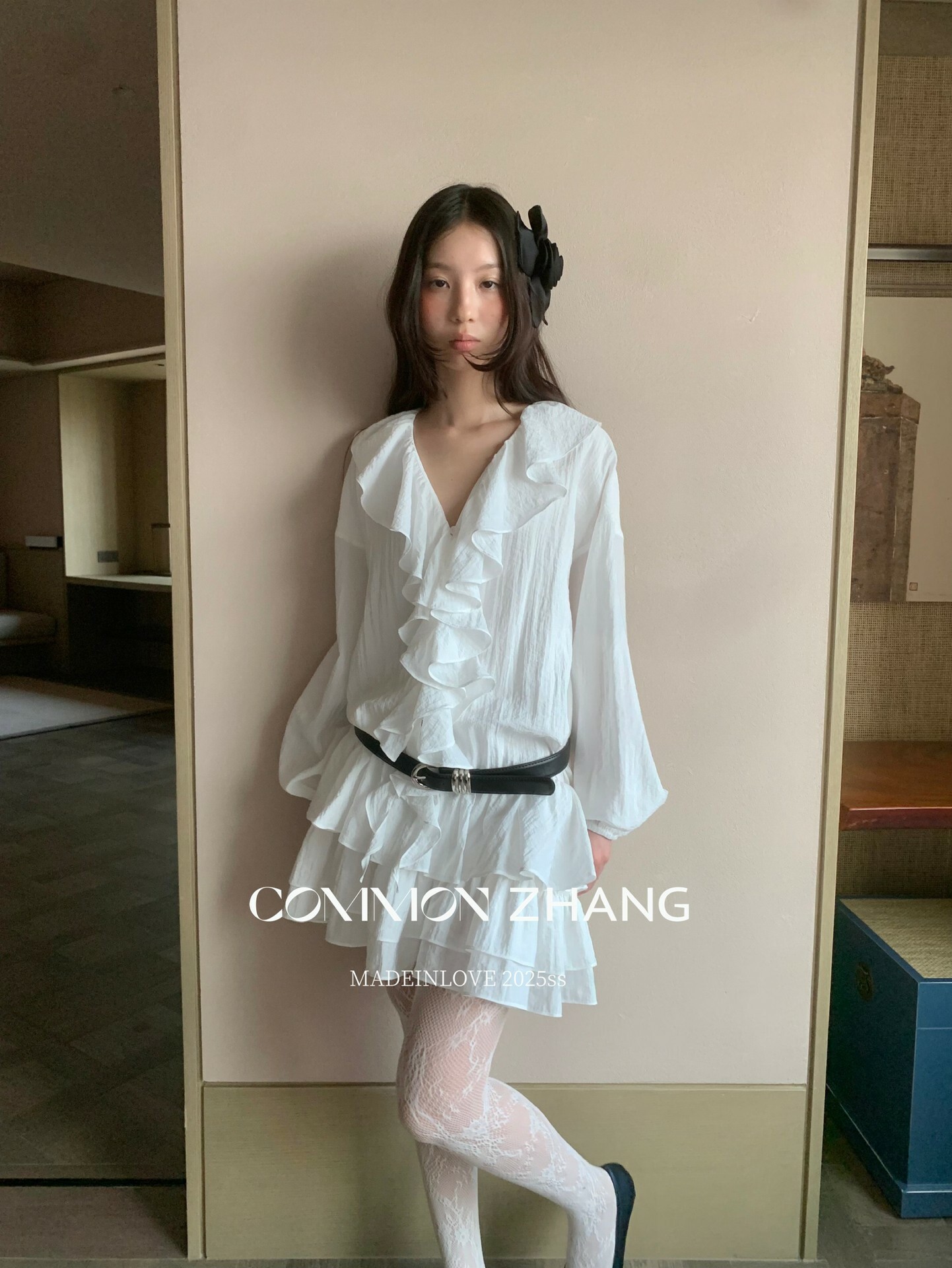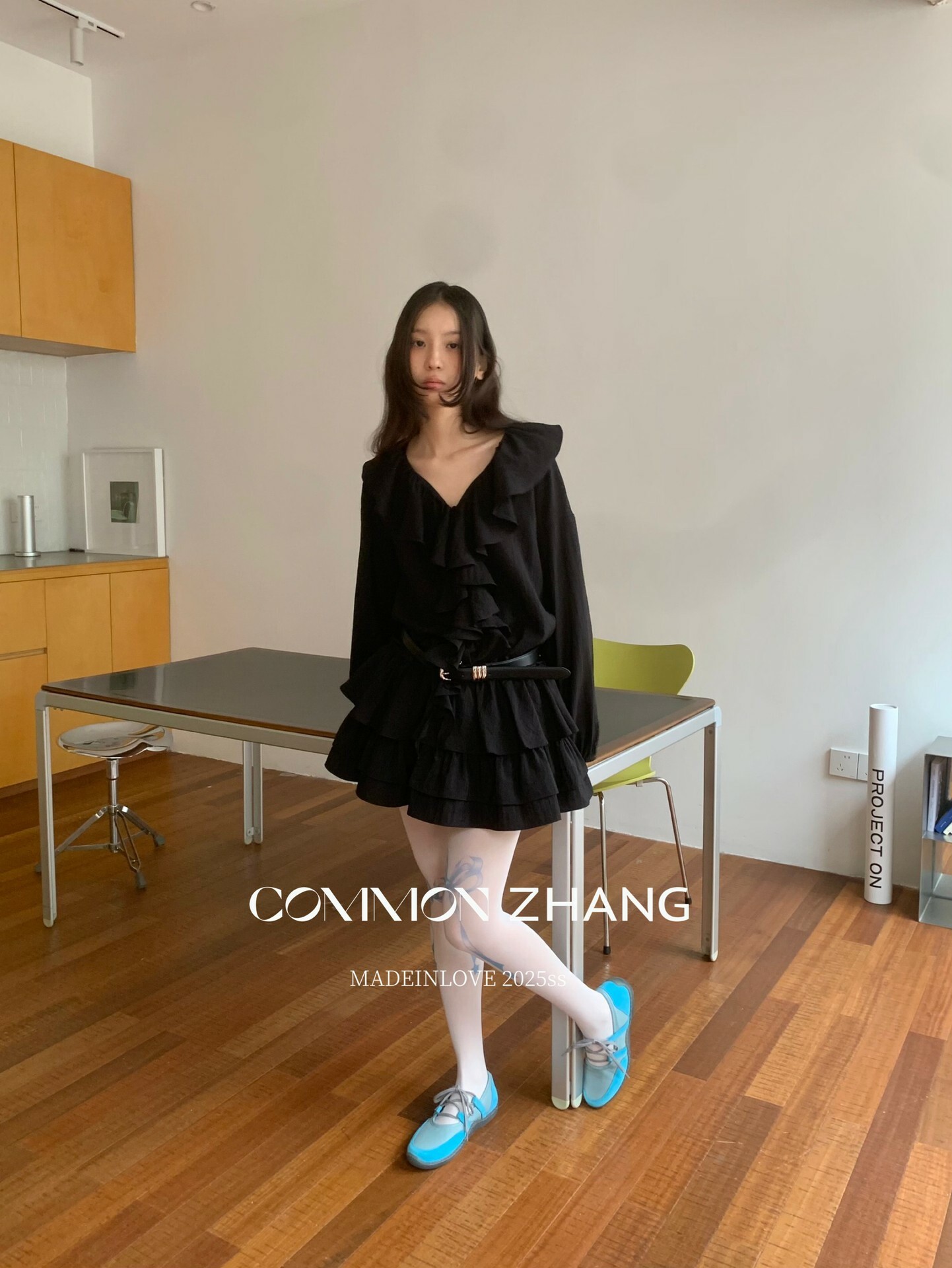 *o-ha-you*【FCZCB106528】夏季法式減齡V領花邊拼接收腰顯瘦層次感連衣裙洋裝-2色