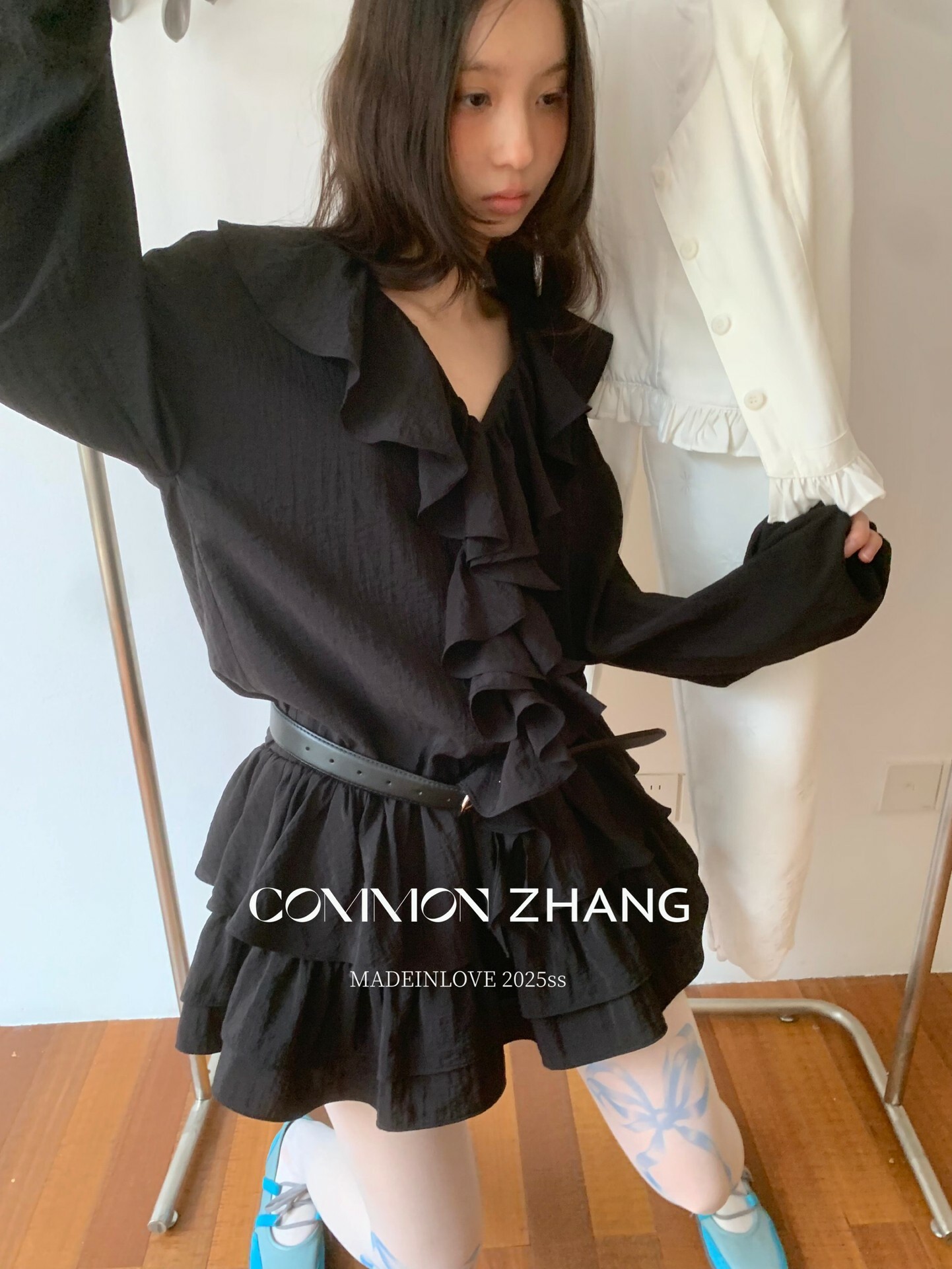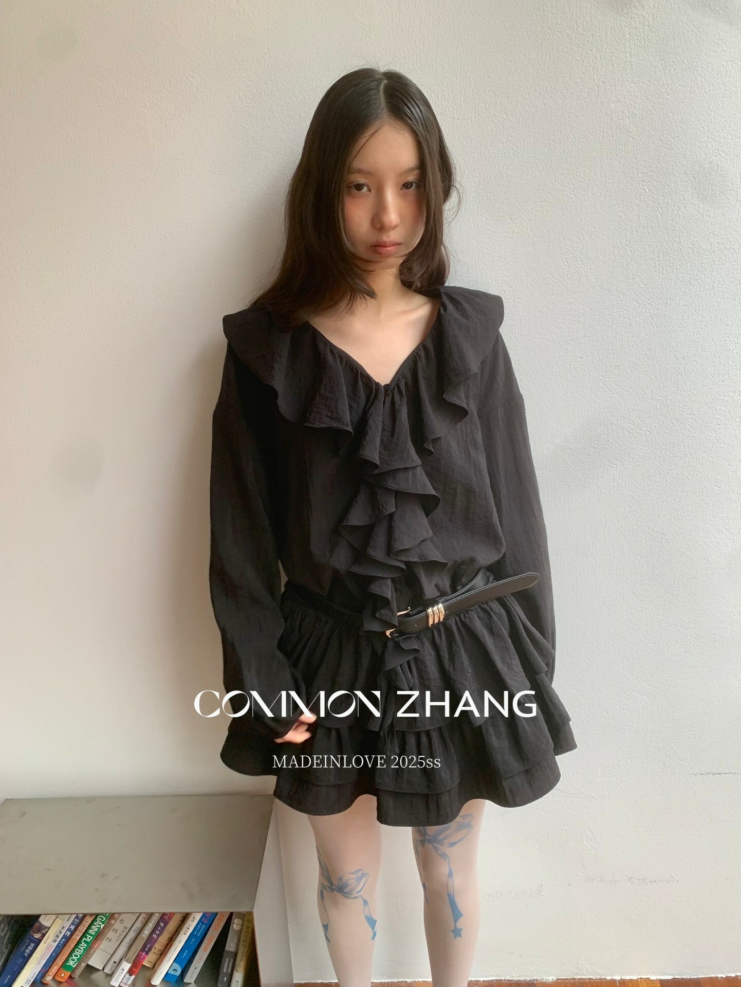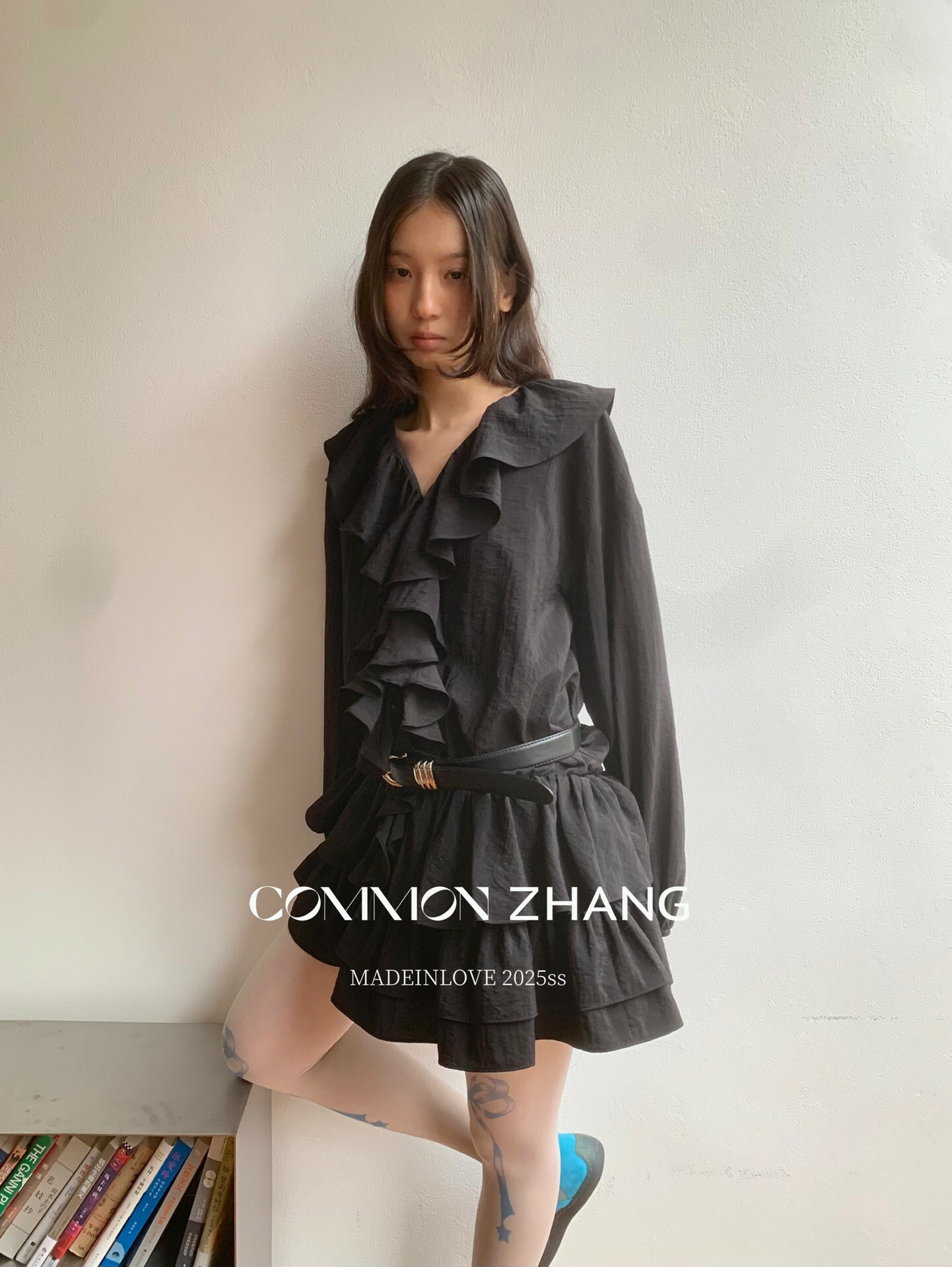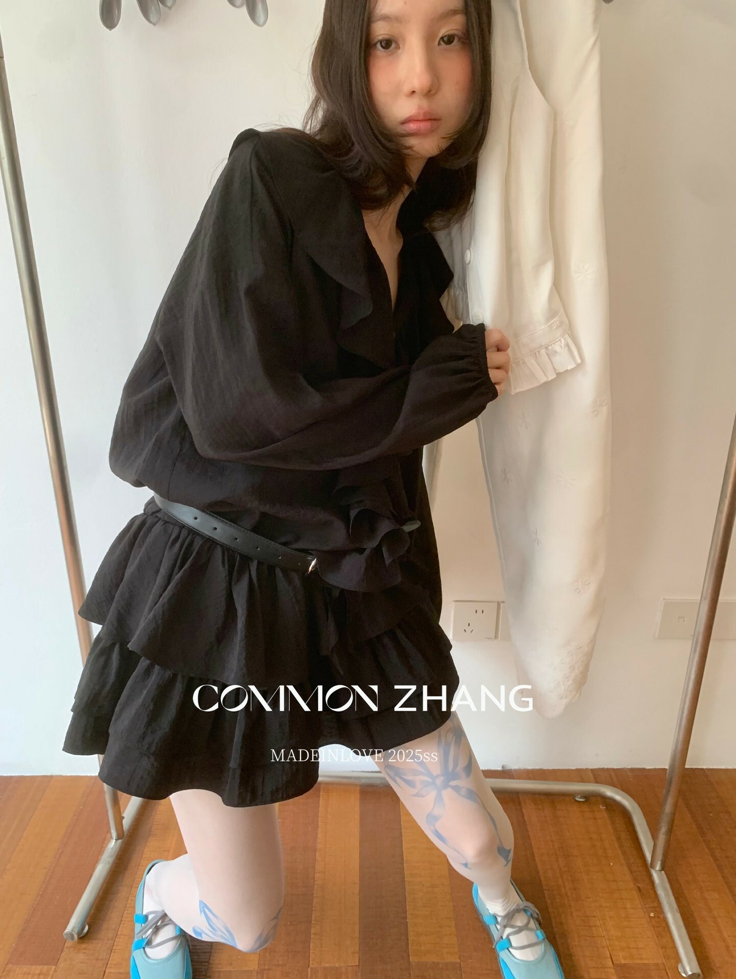 *o-ha-you*【FCZCB106528】夏季法式減齡V領花邊拼接收腰顯瘦層次感連衣裙洋裝-2色