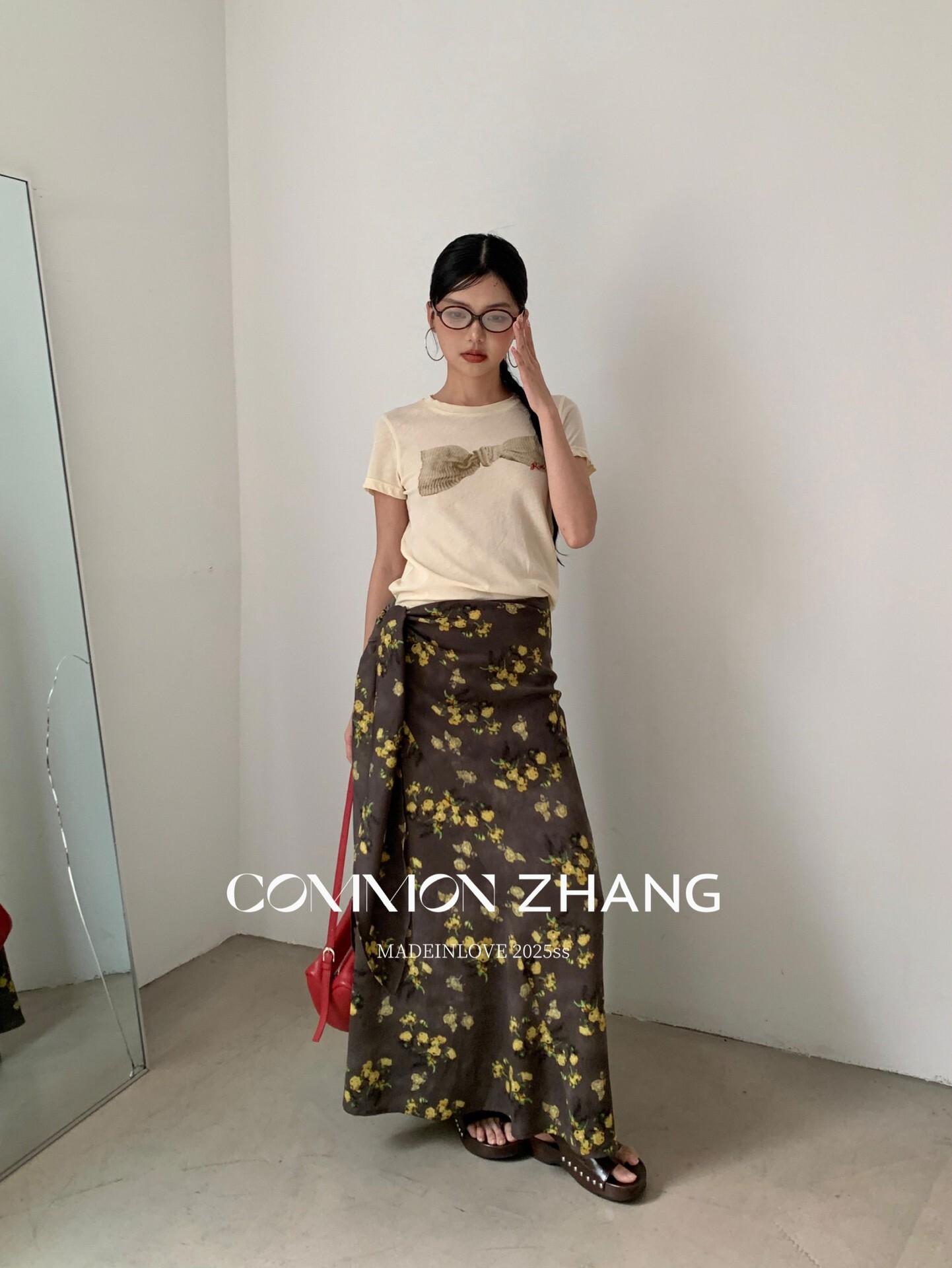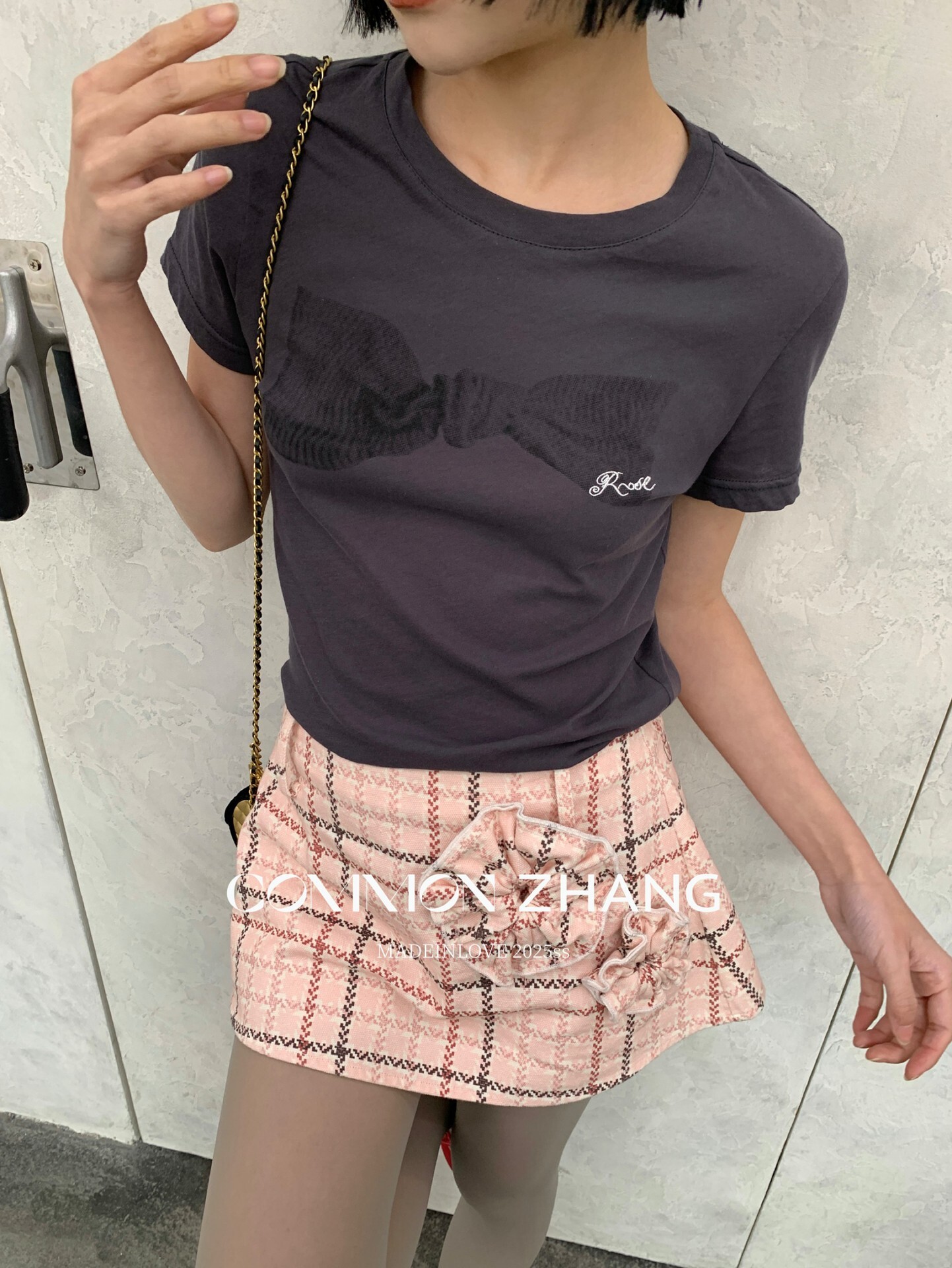 *o-ha-you*【FCZCB200639】夏季韓版慵懶休閒百搭蝴蝶結印花字母刺繡短袖T恤-2色