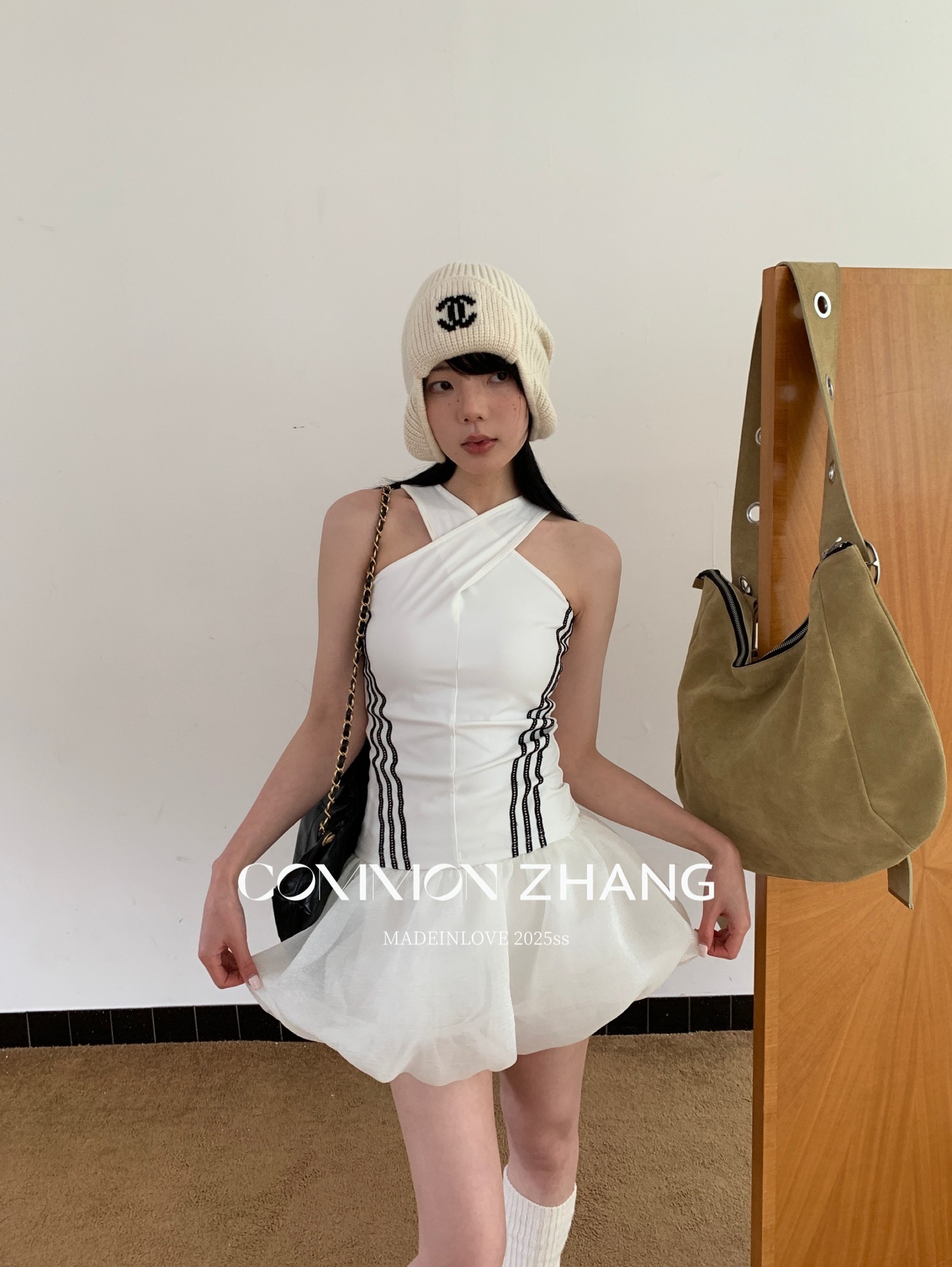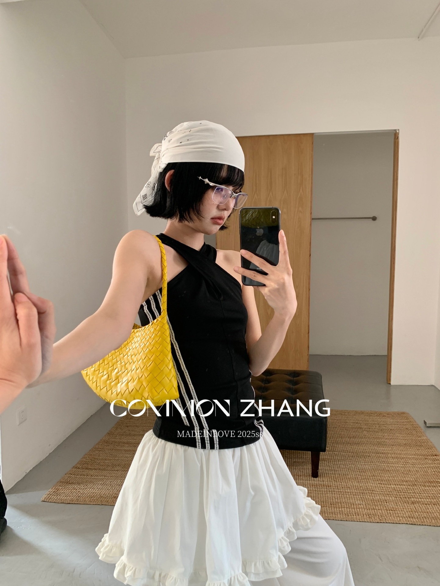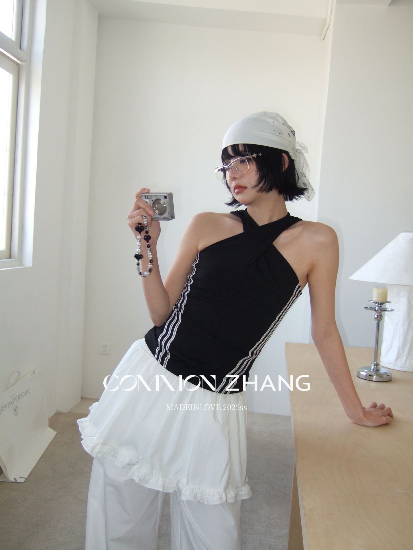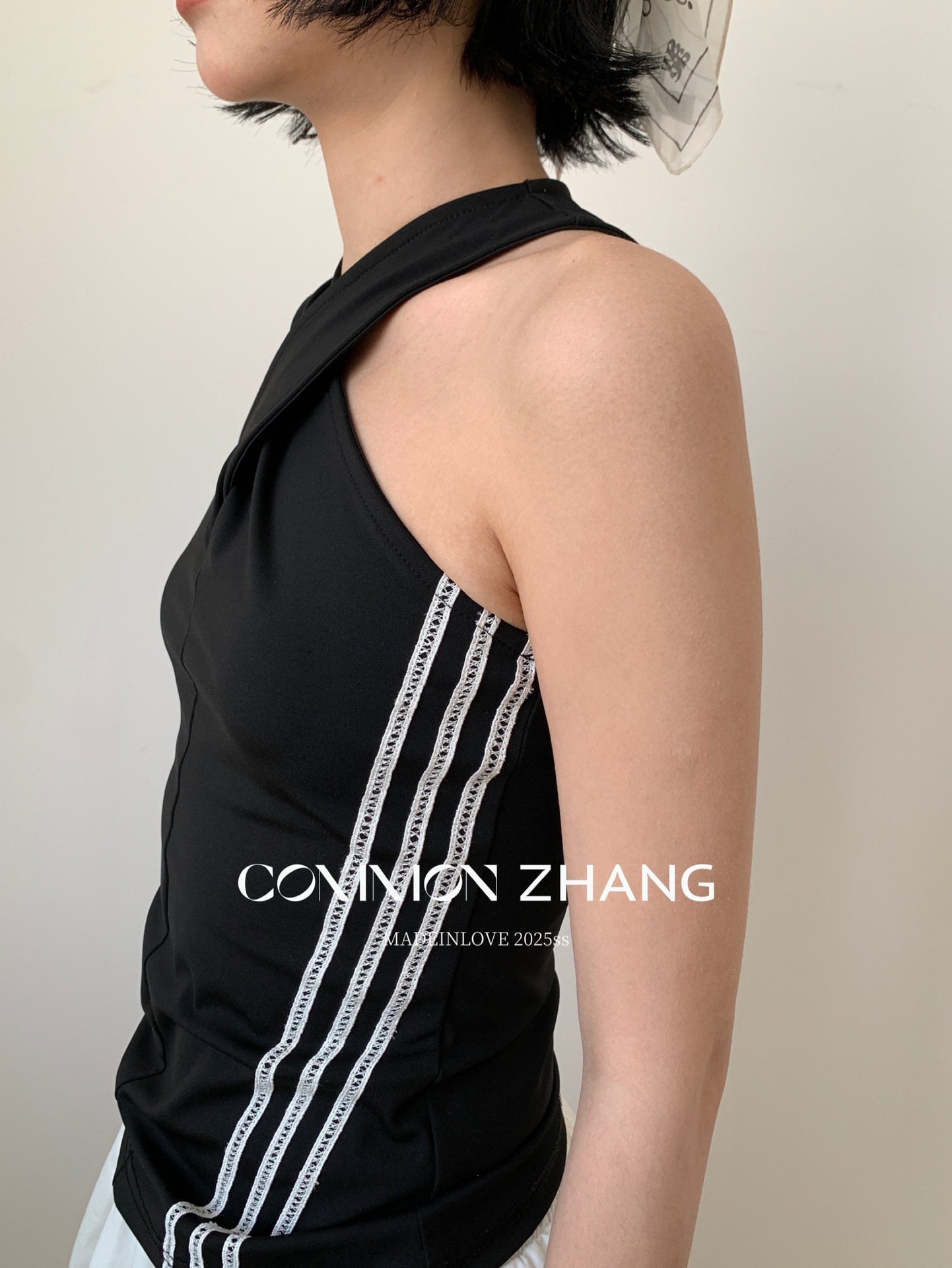 *o-ha-you*【FCZCB200713】夏季miu系減齡運動風交叉肩帶豎條紋收腰顯瘦背心-2色