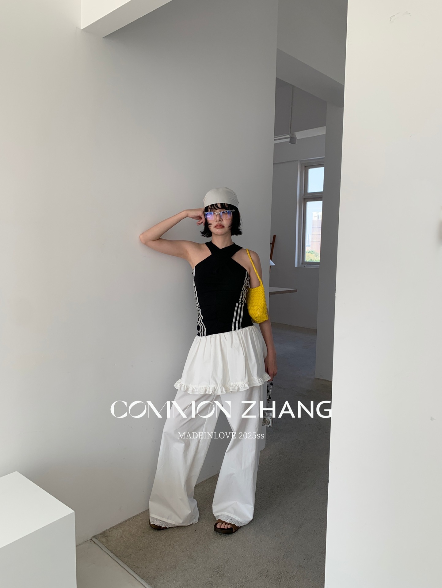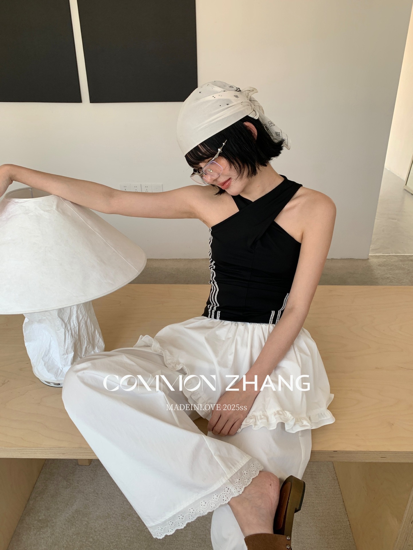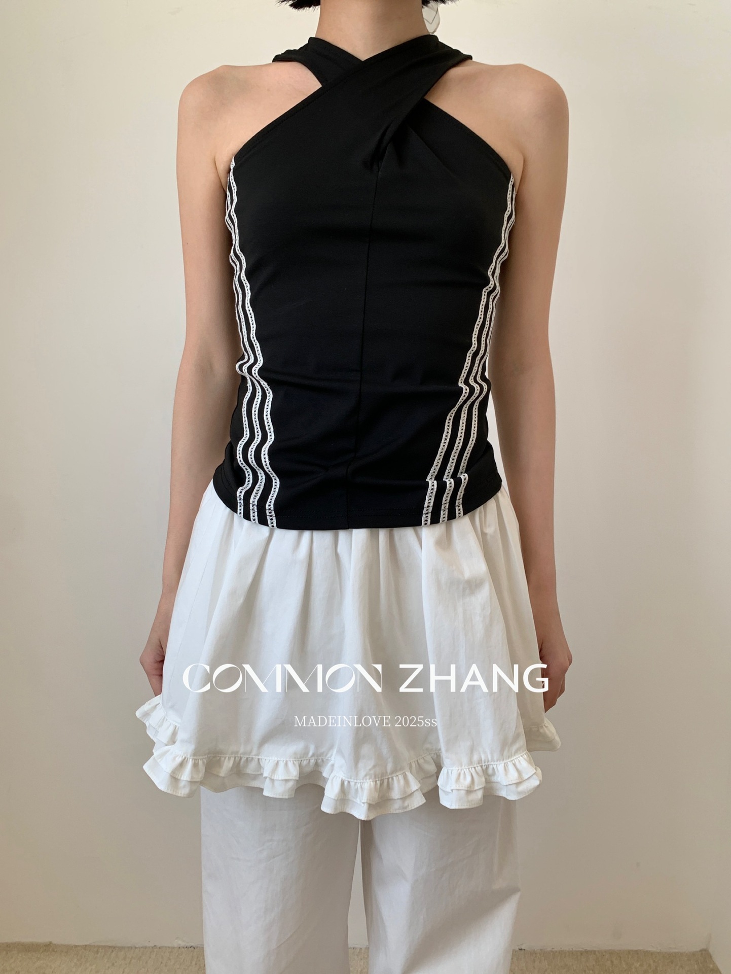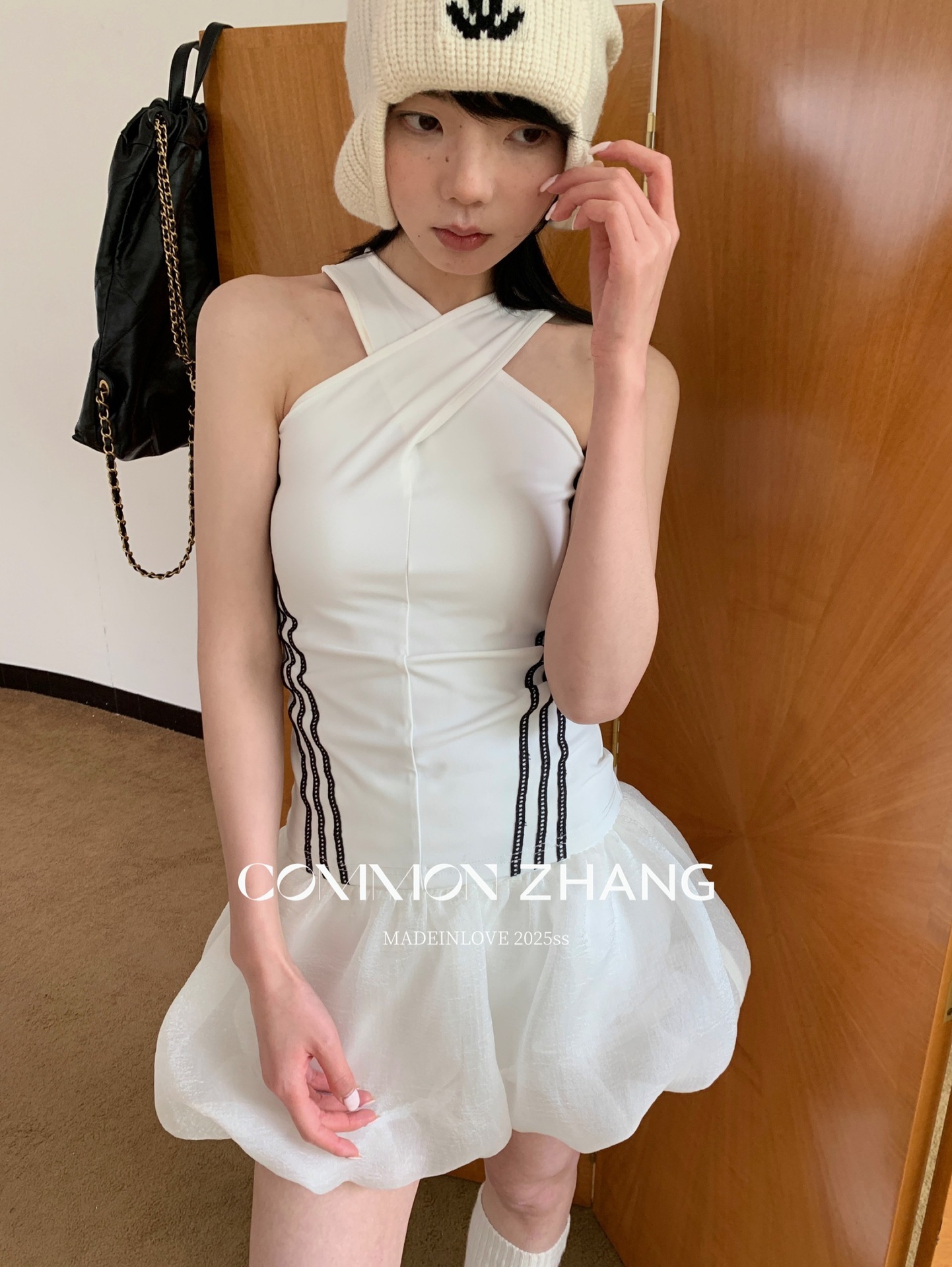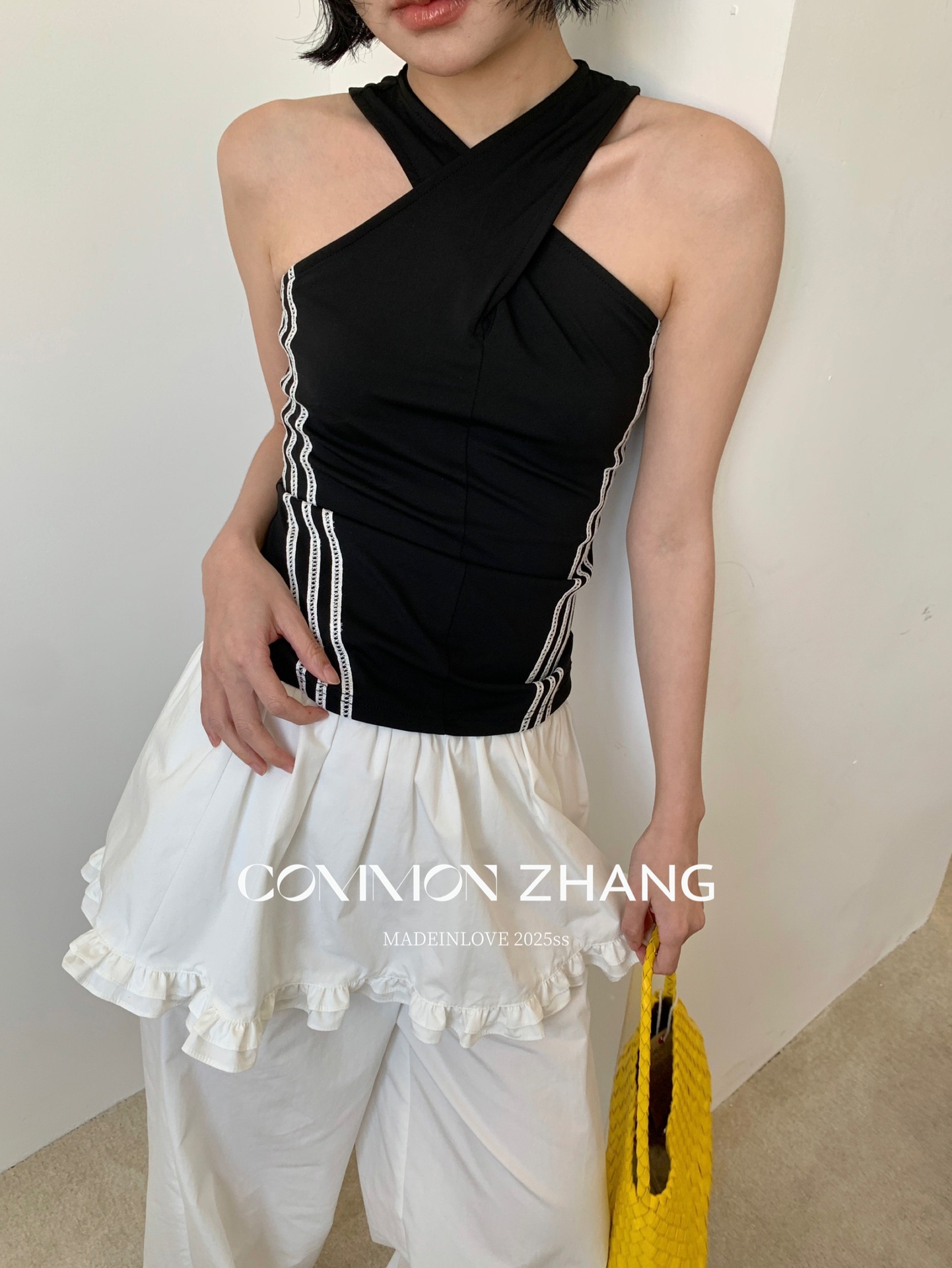 *o-ha-you*【FCZCB200713】夏季miu系減齡運動風交叉肩帶豎條紋收腰顯瘦背心-2色